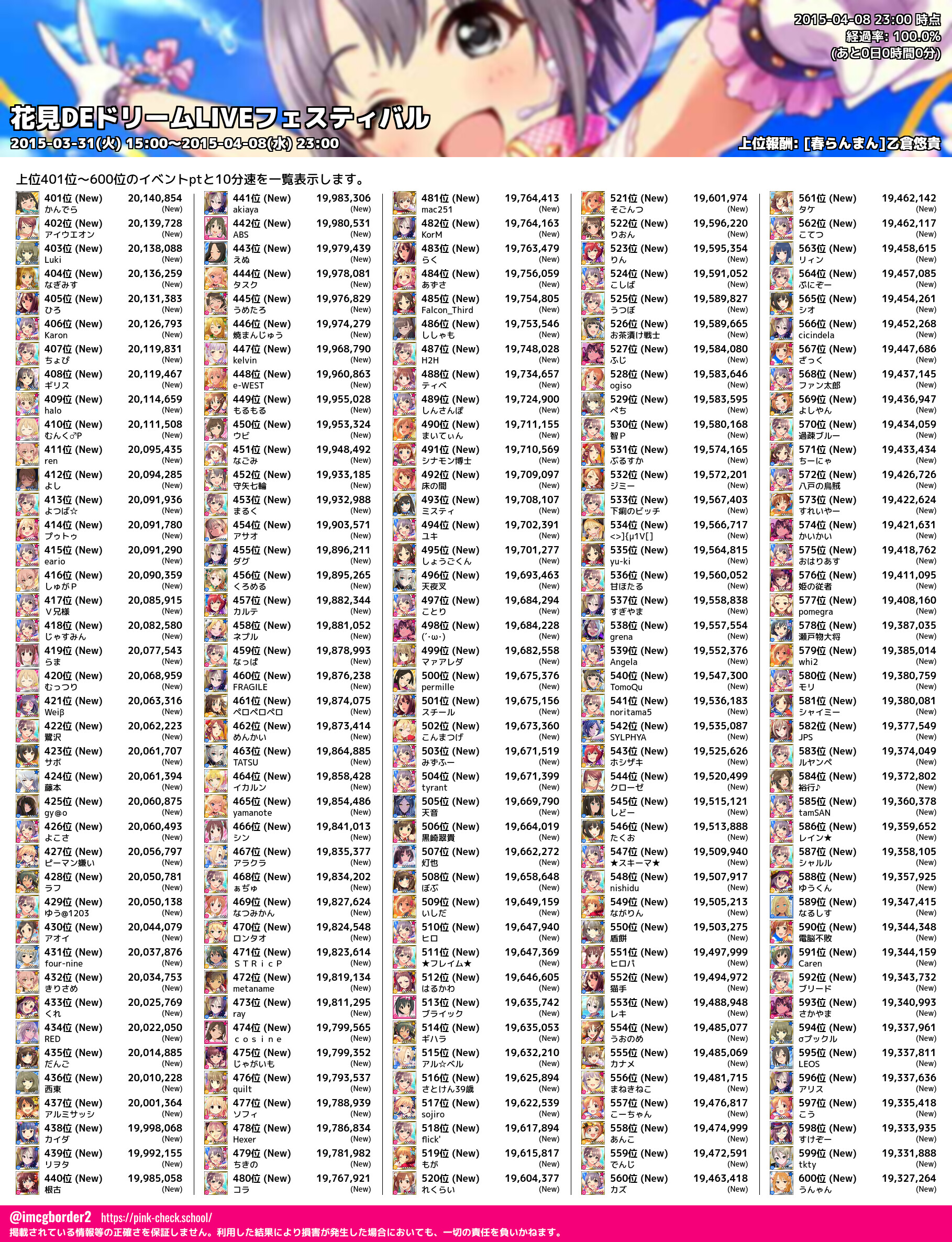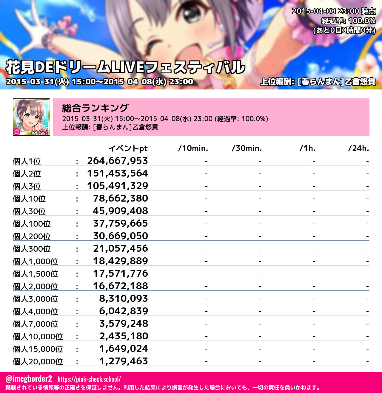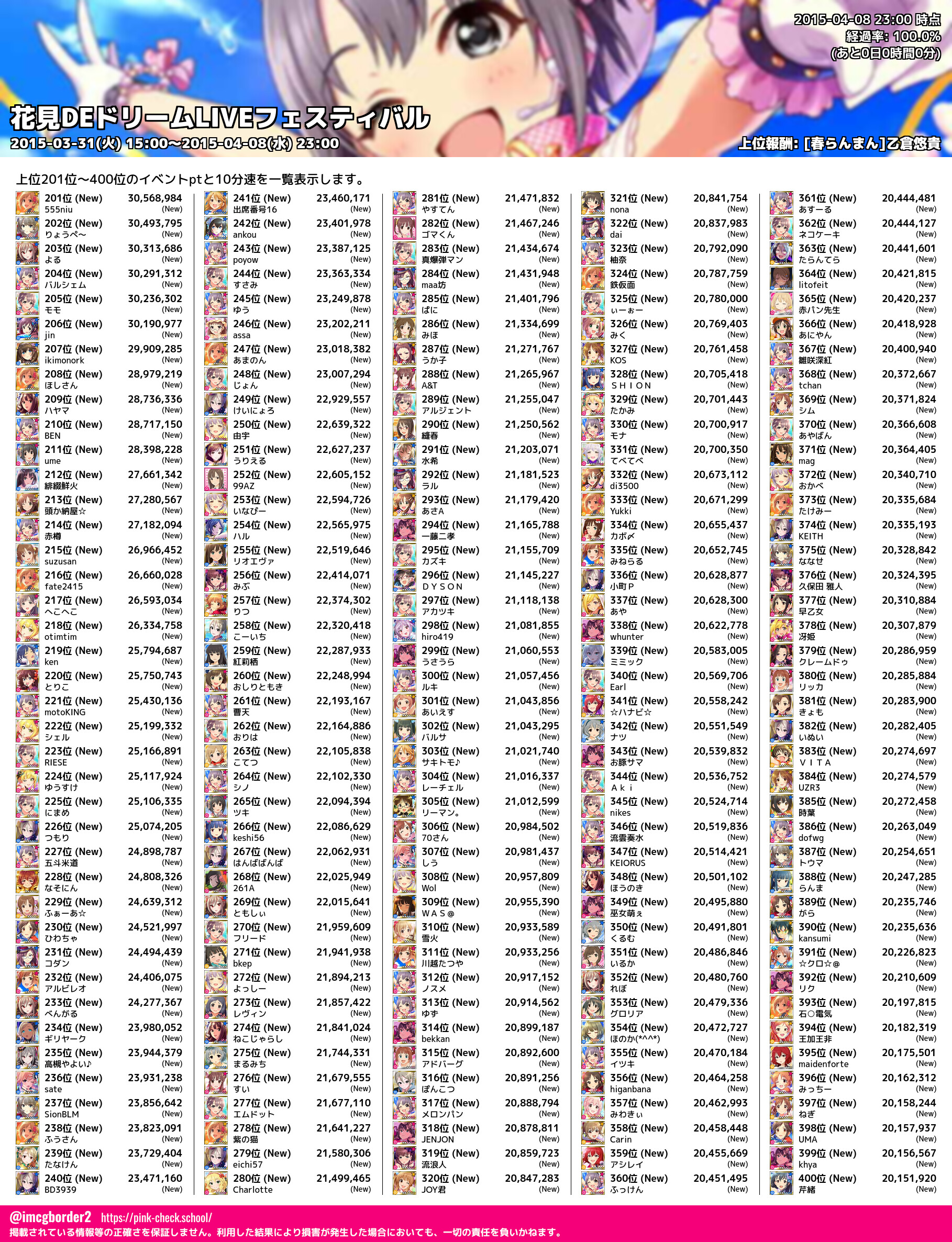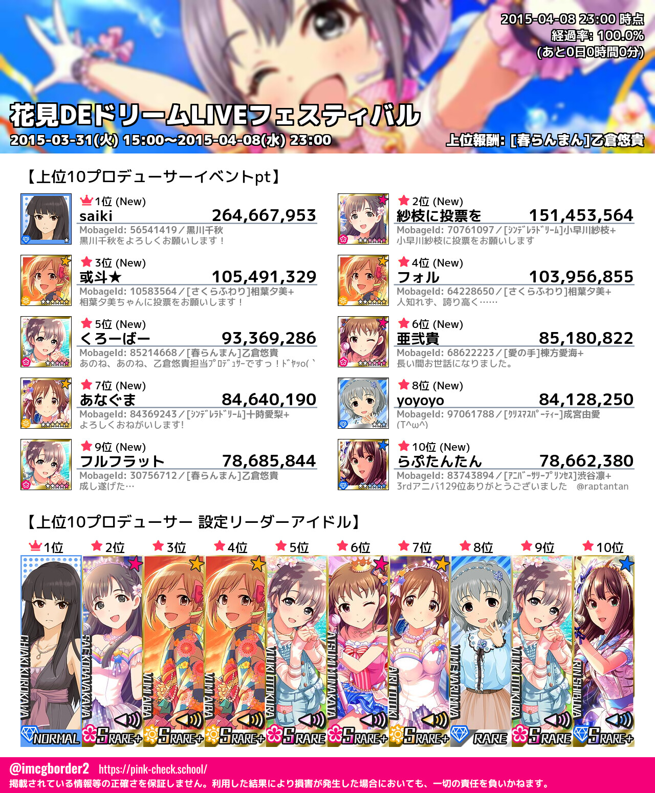 花見DEドリームLIVEフェスティバル 結果集計完了