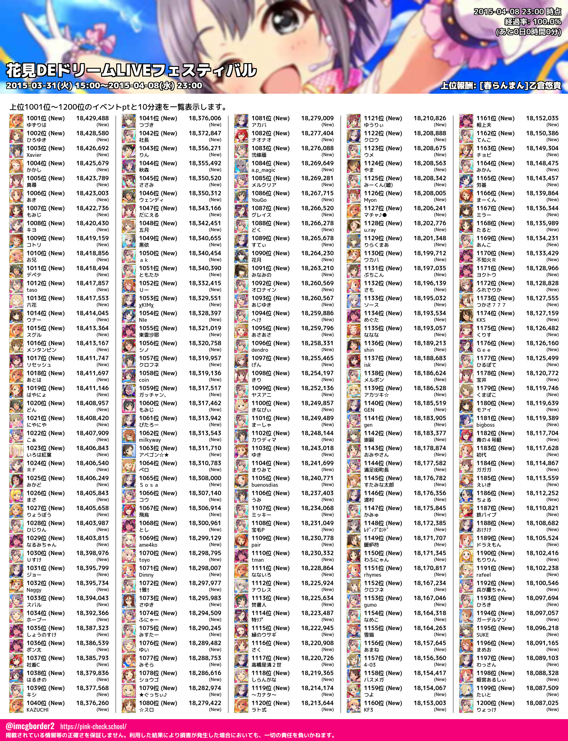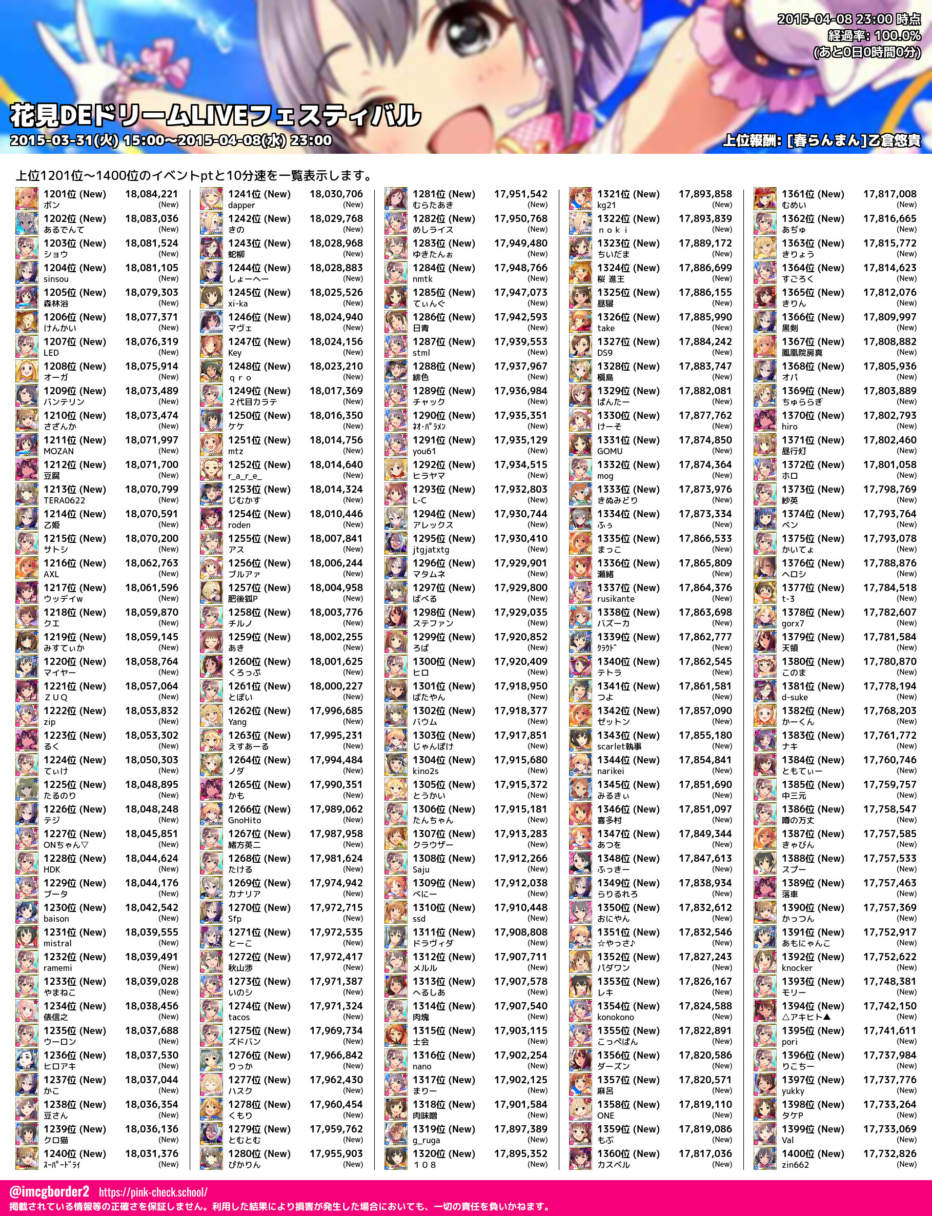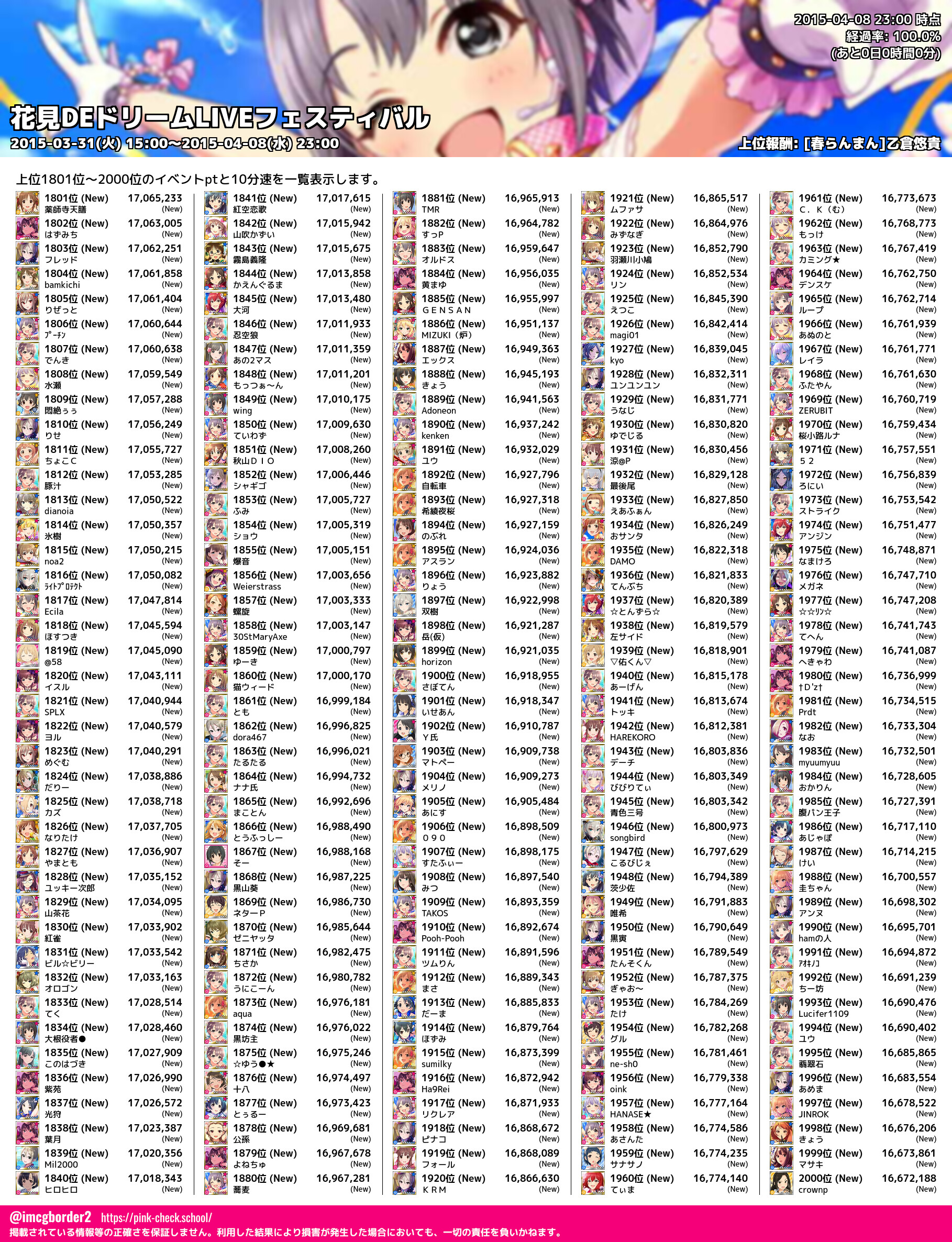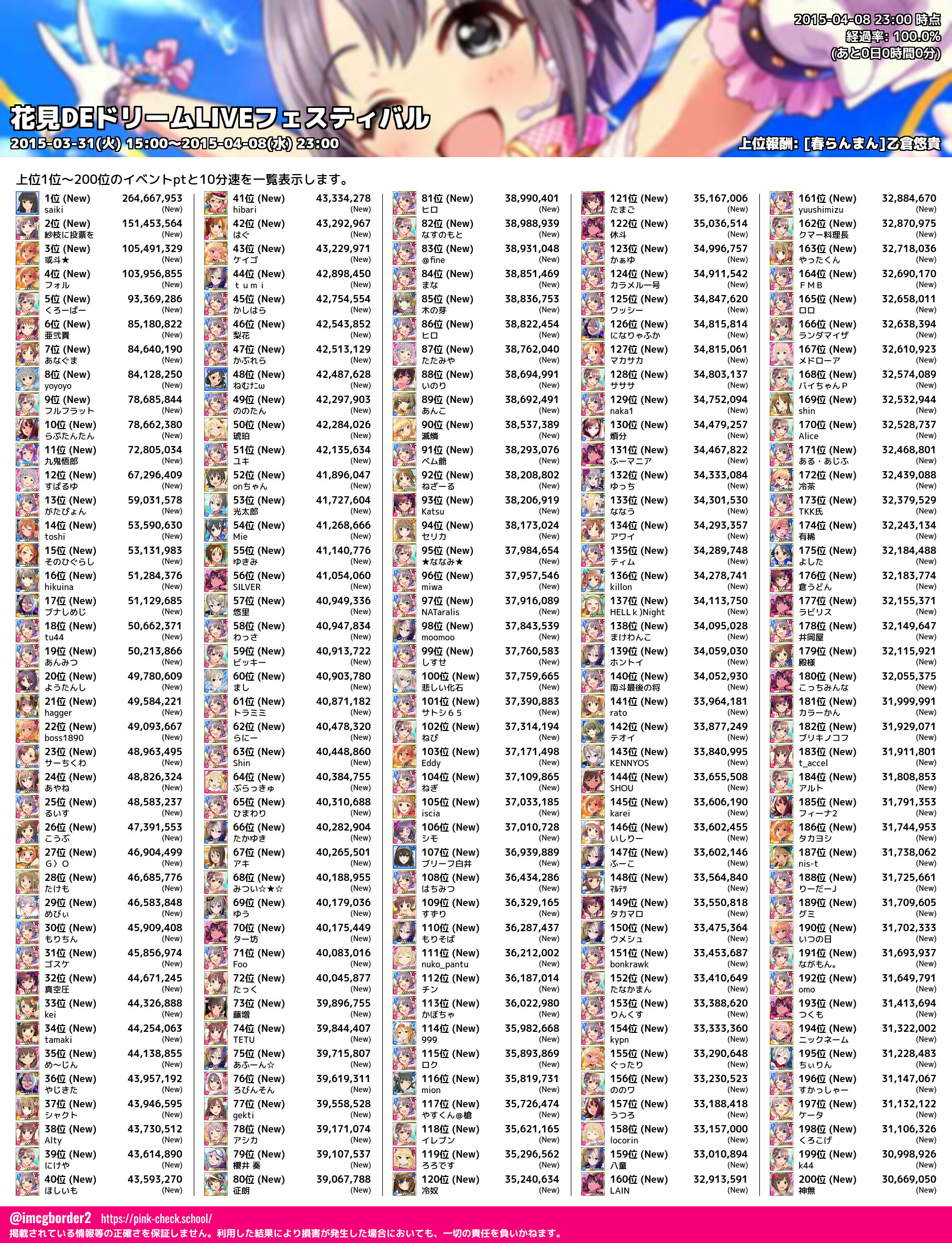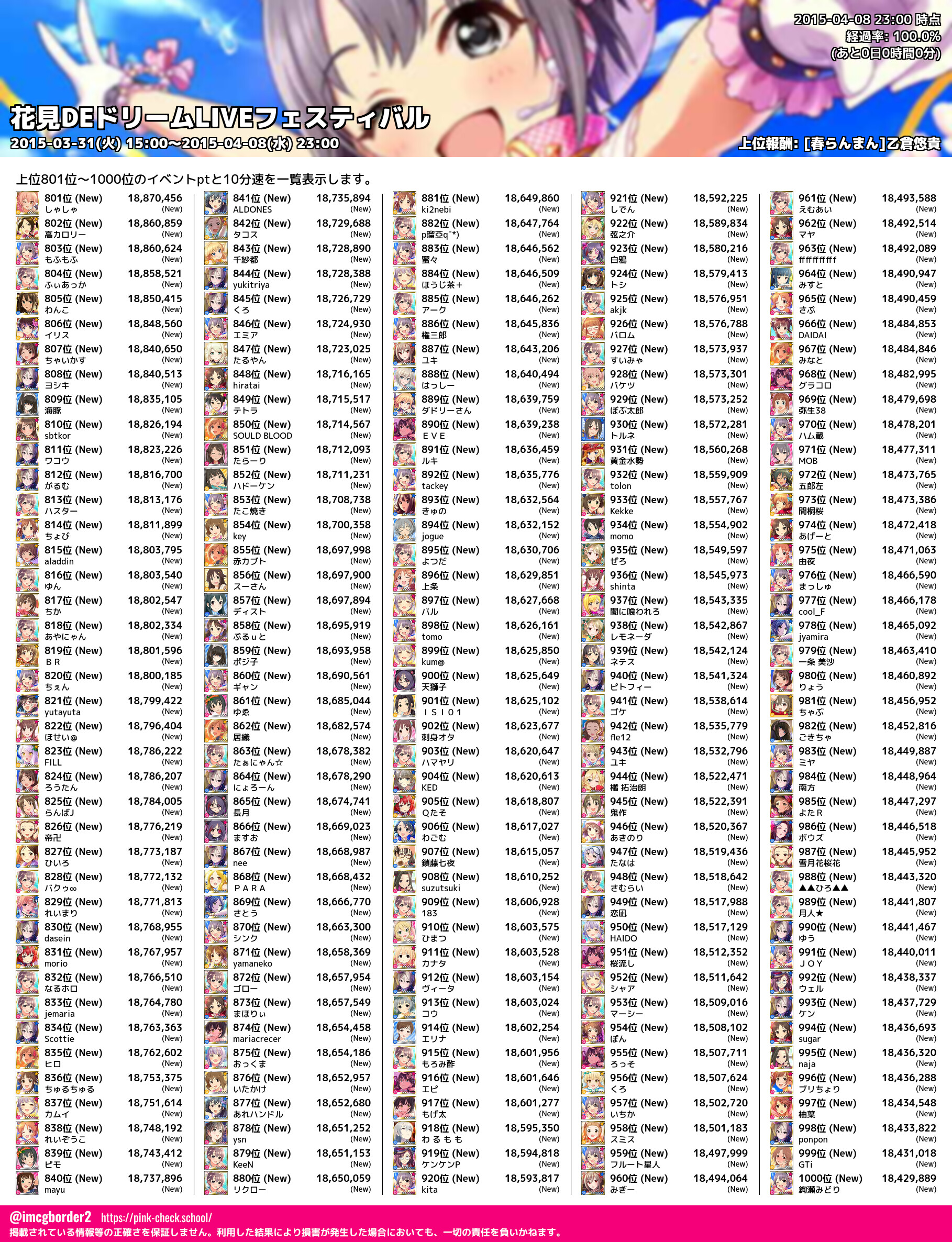 花見DEドリームLIVEフェスティバル 結果集計完了