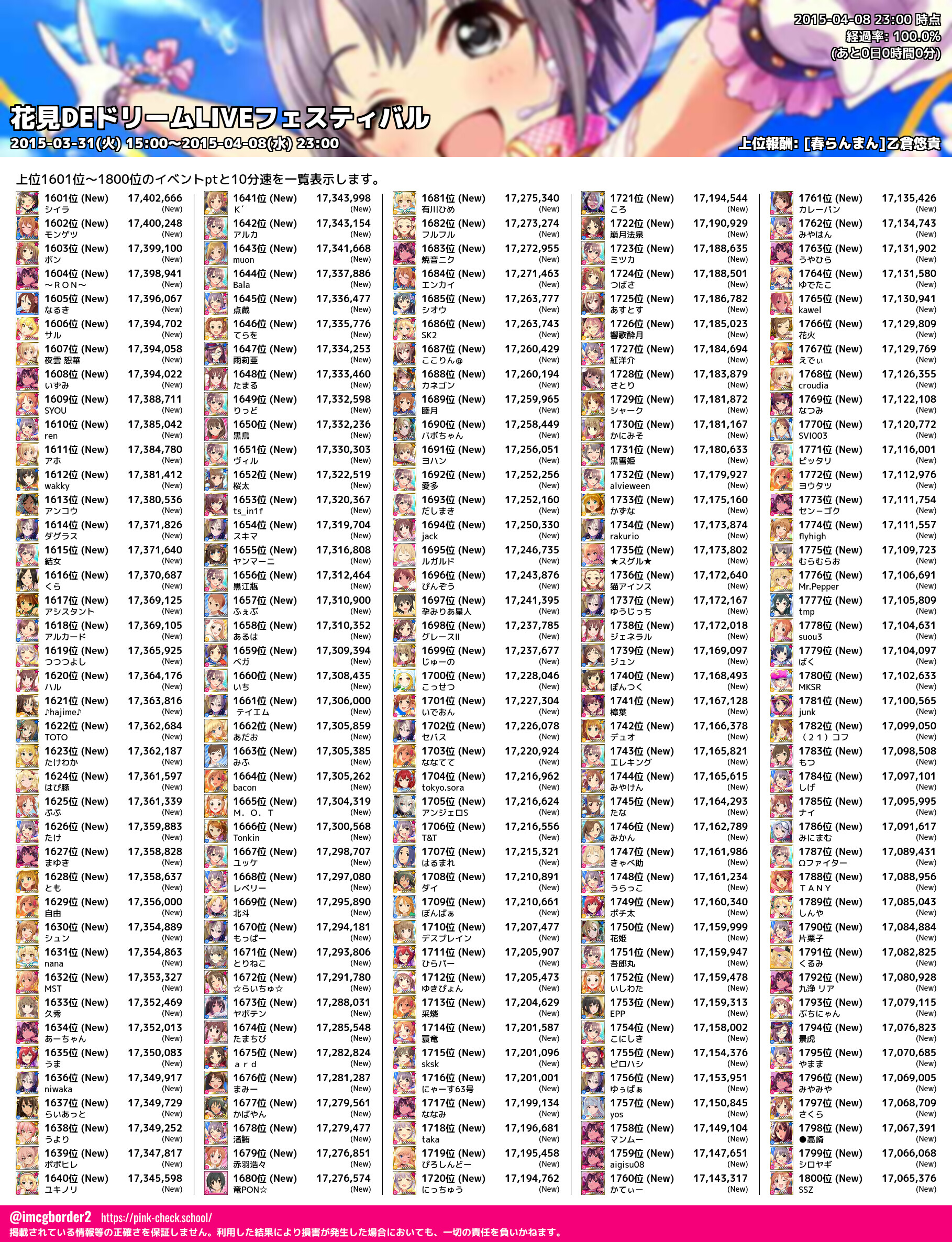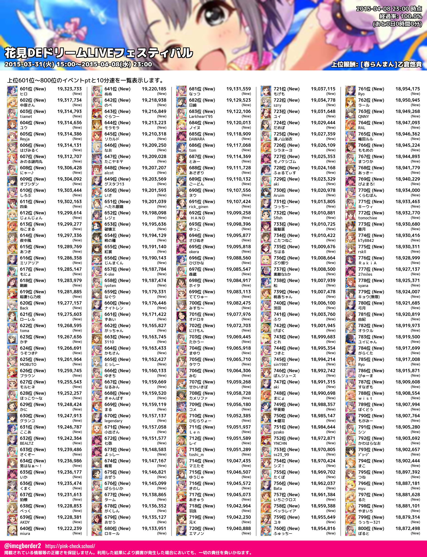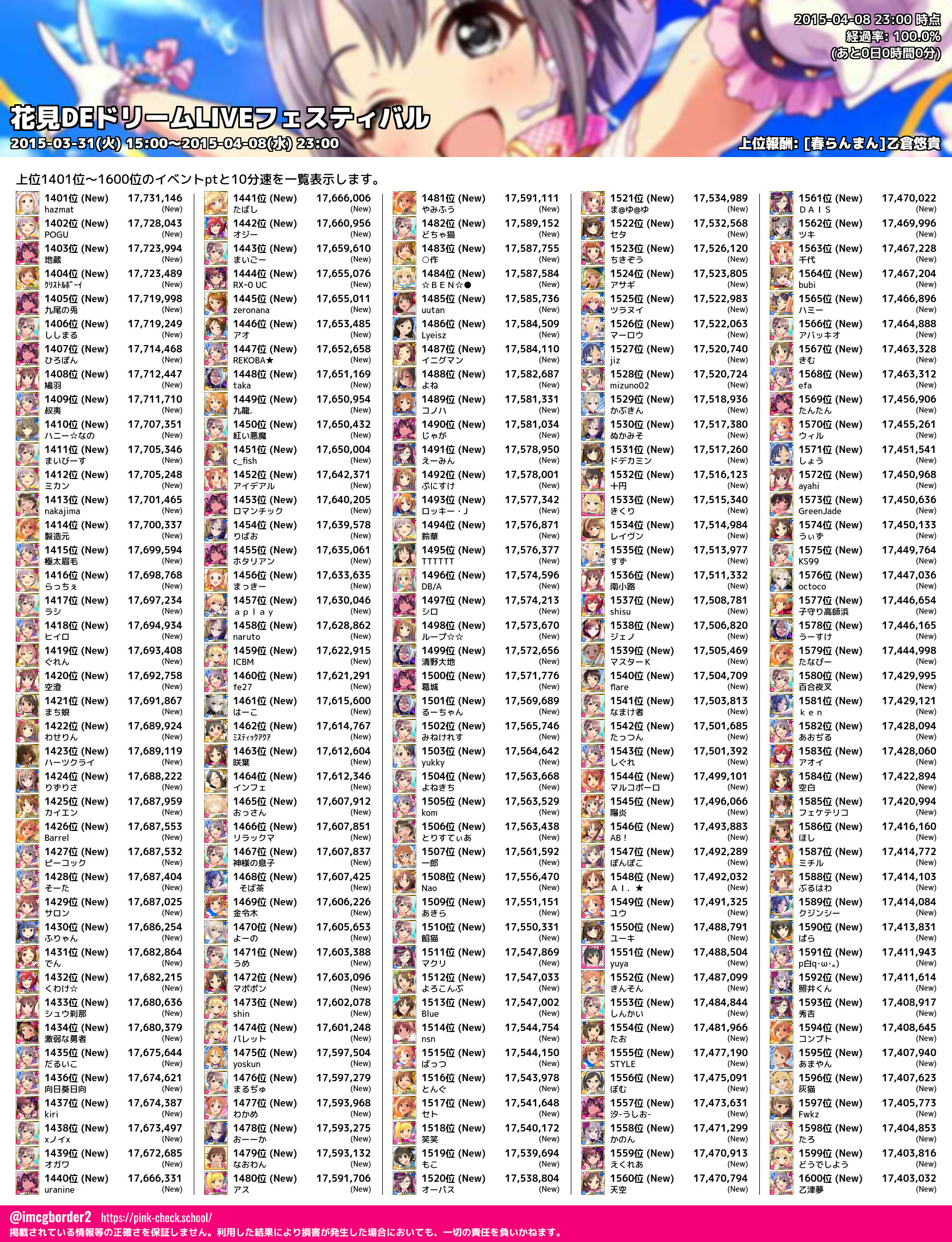 | 開催期間 | 2015-03-31(火) 15:00~2015-04-08(水) 23:00 |
