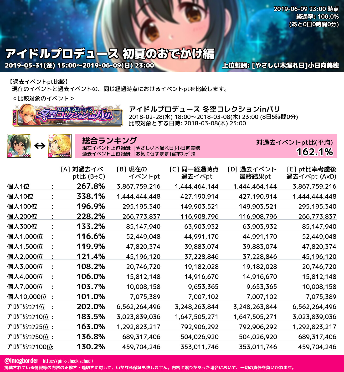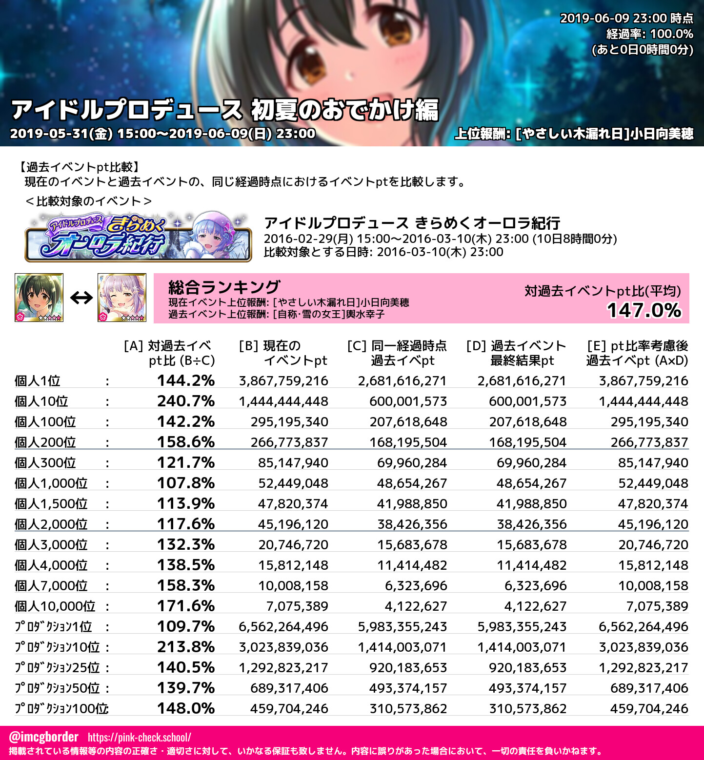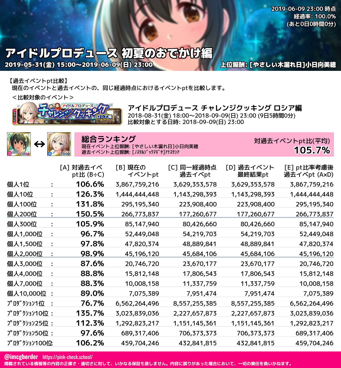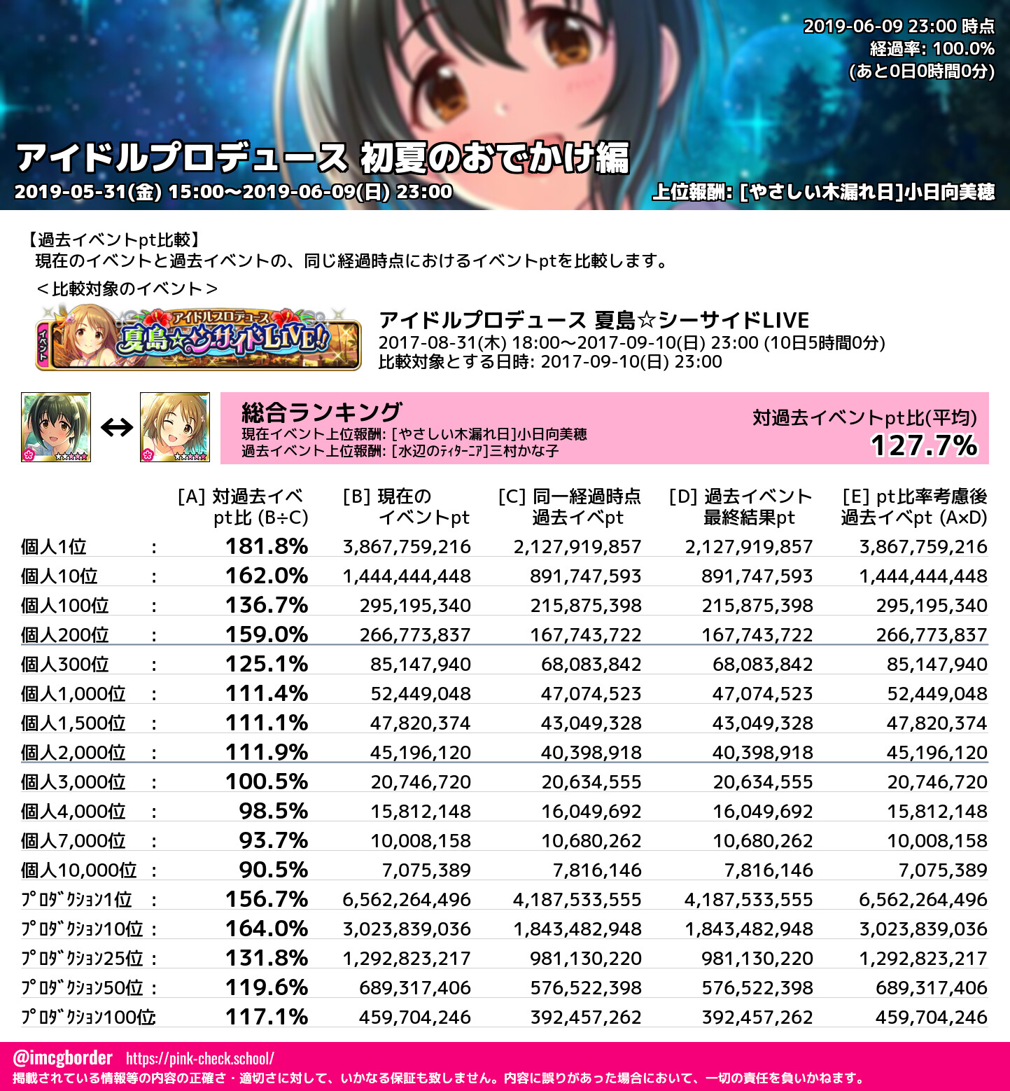 アイドルプロデュース 初夏のおでかけ編 結果集計完了