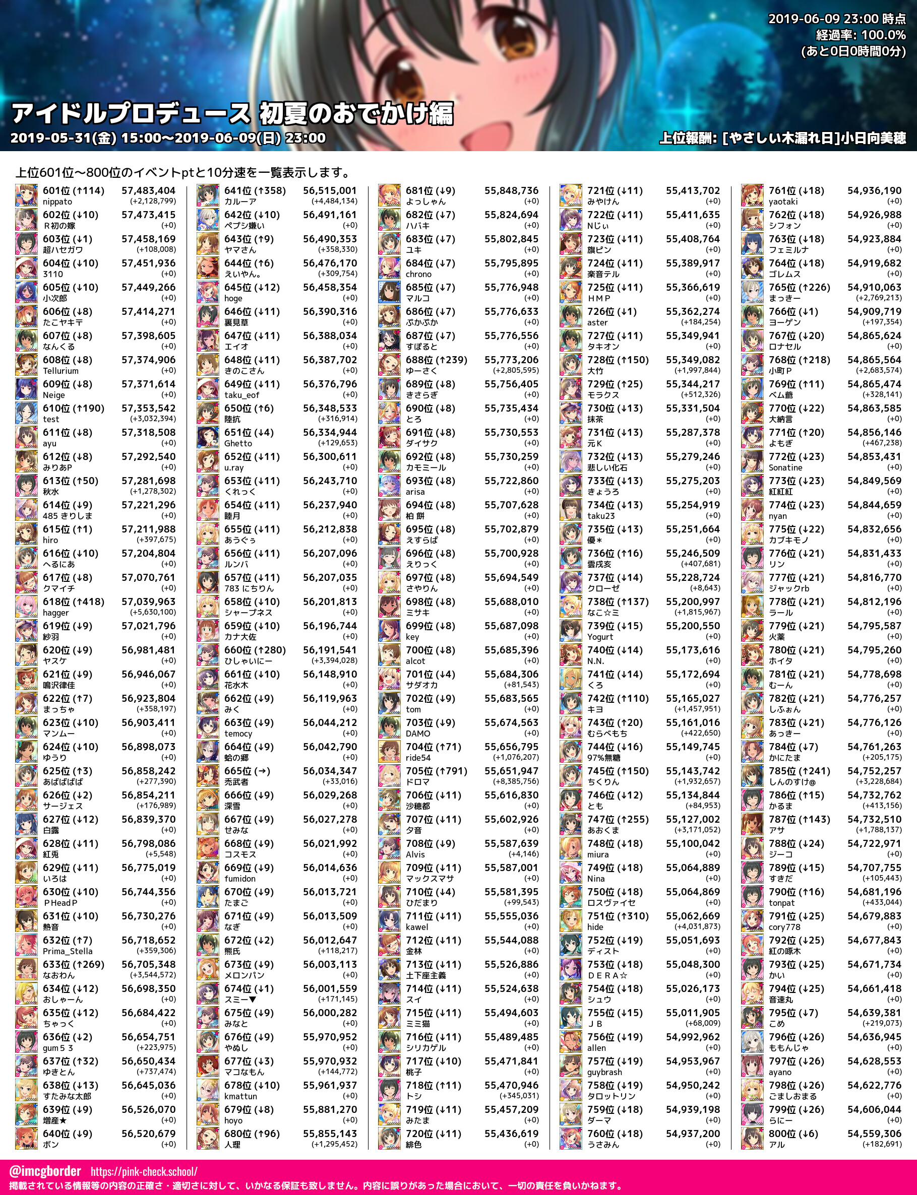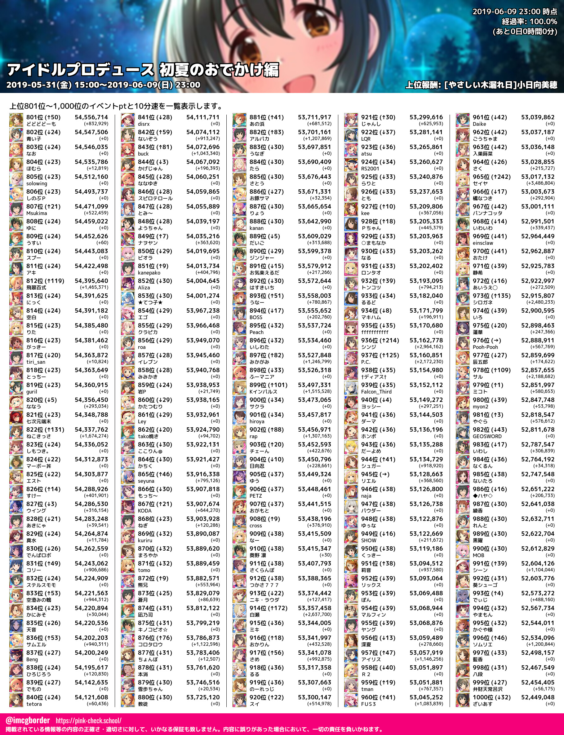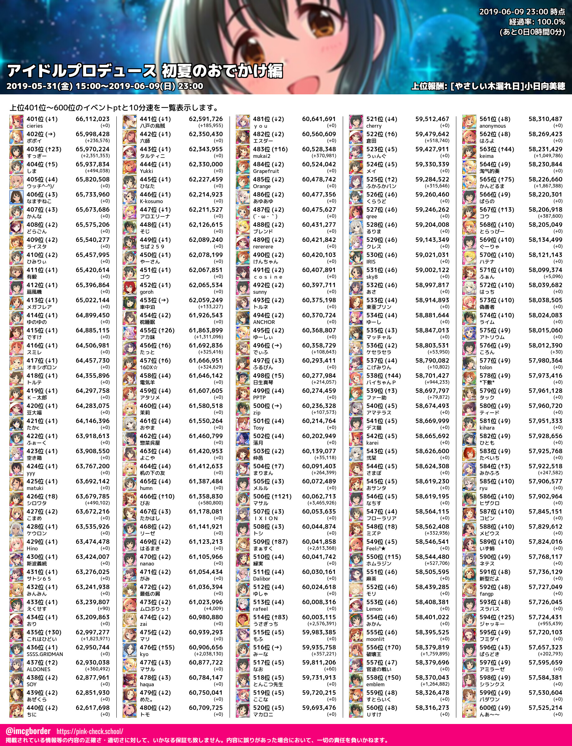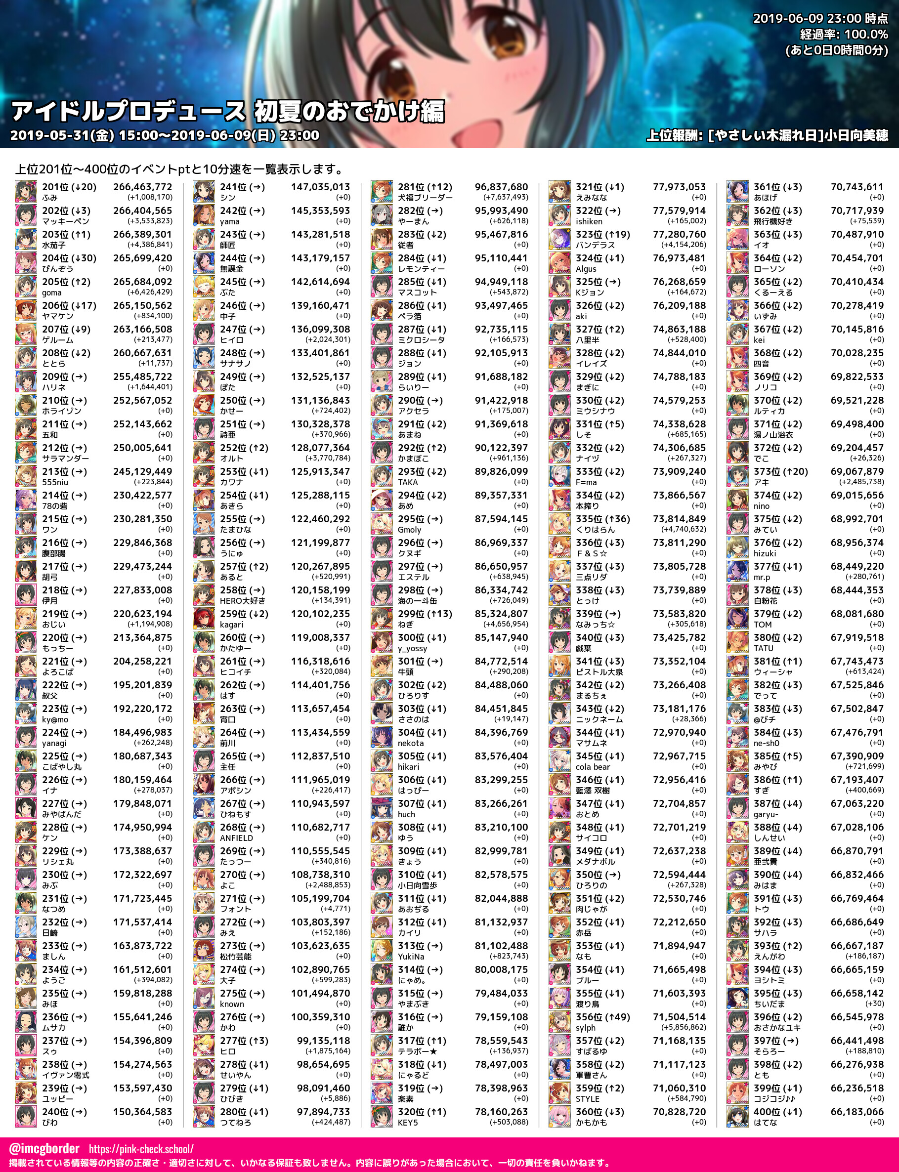 上位プロデューサースコア (2019-06-09 23:00 時点)