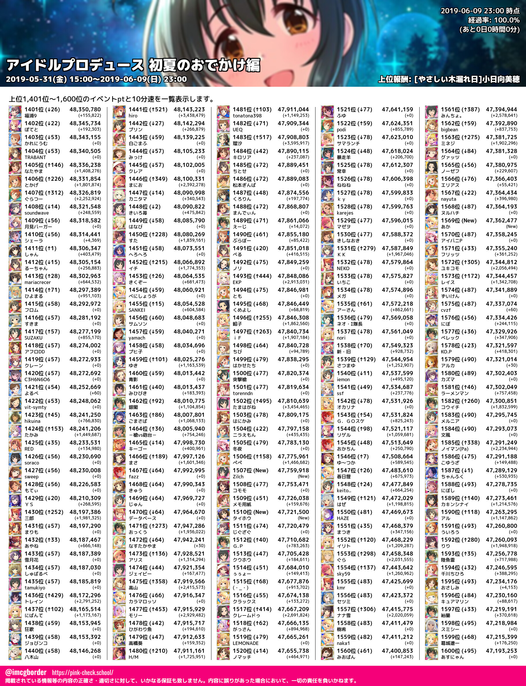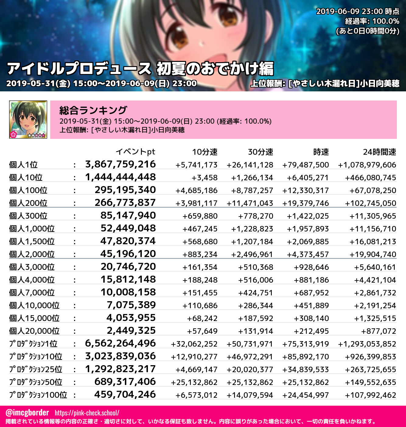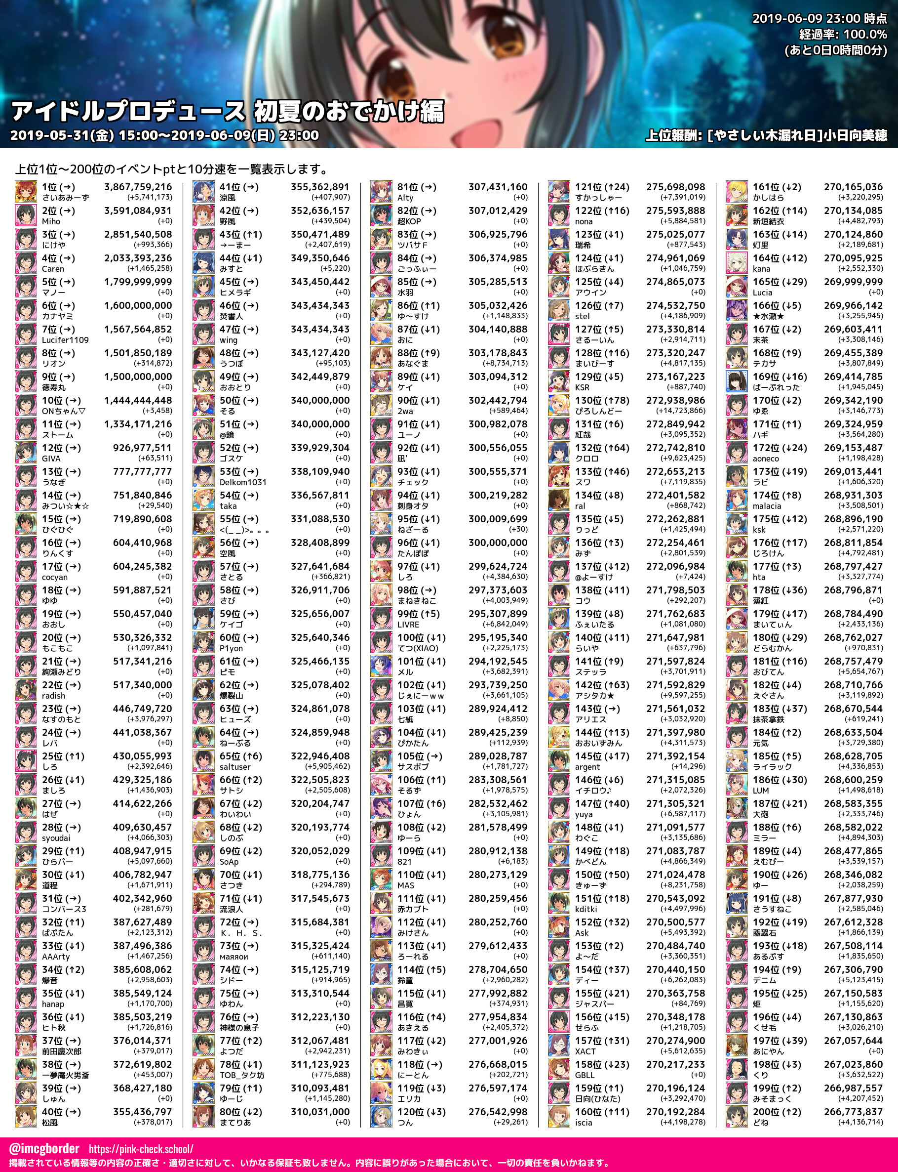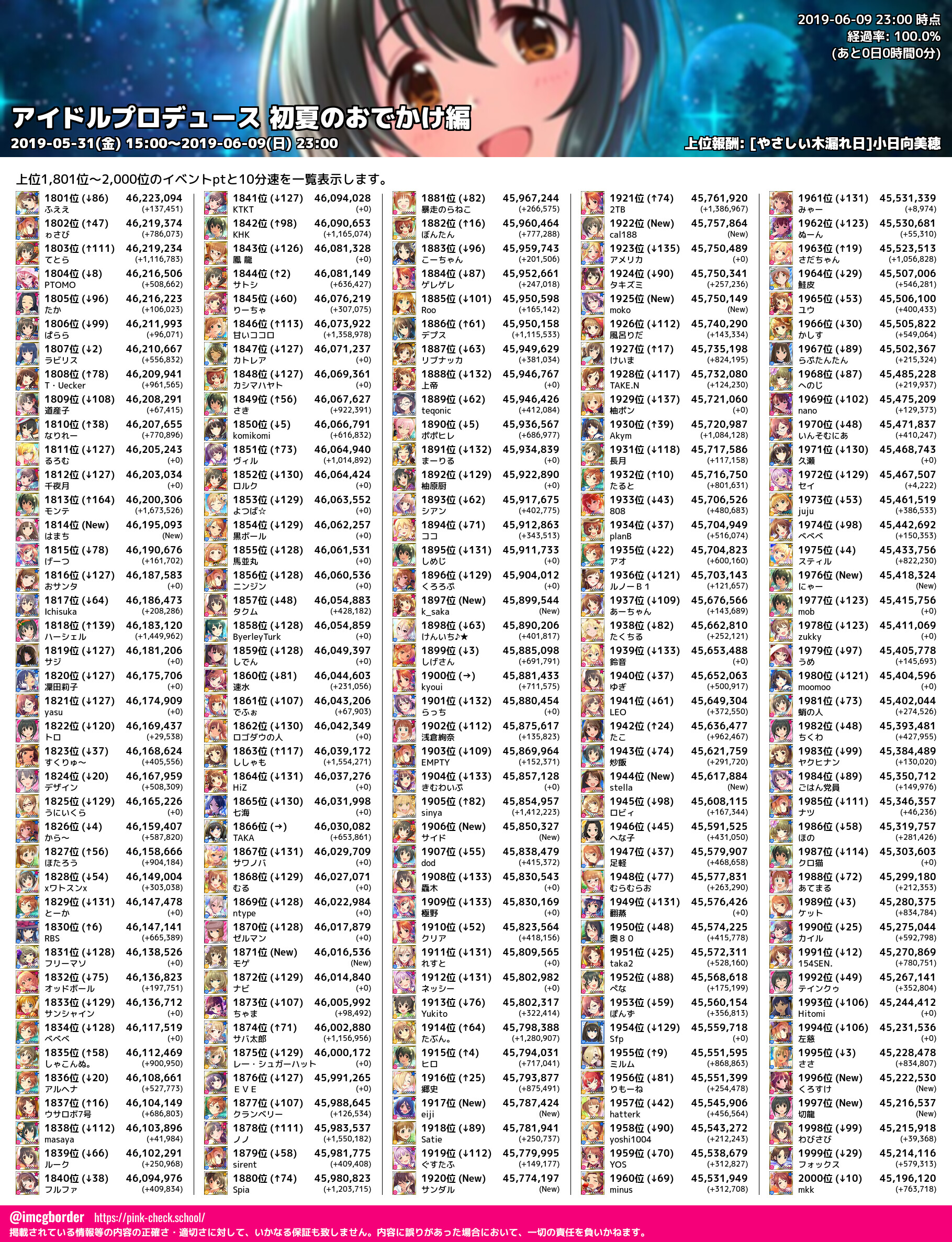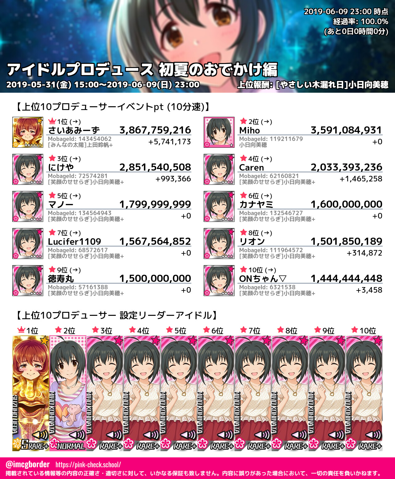 上位プロデューサースコア (2019-06-09 23:00 時点)