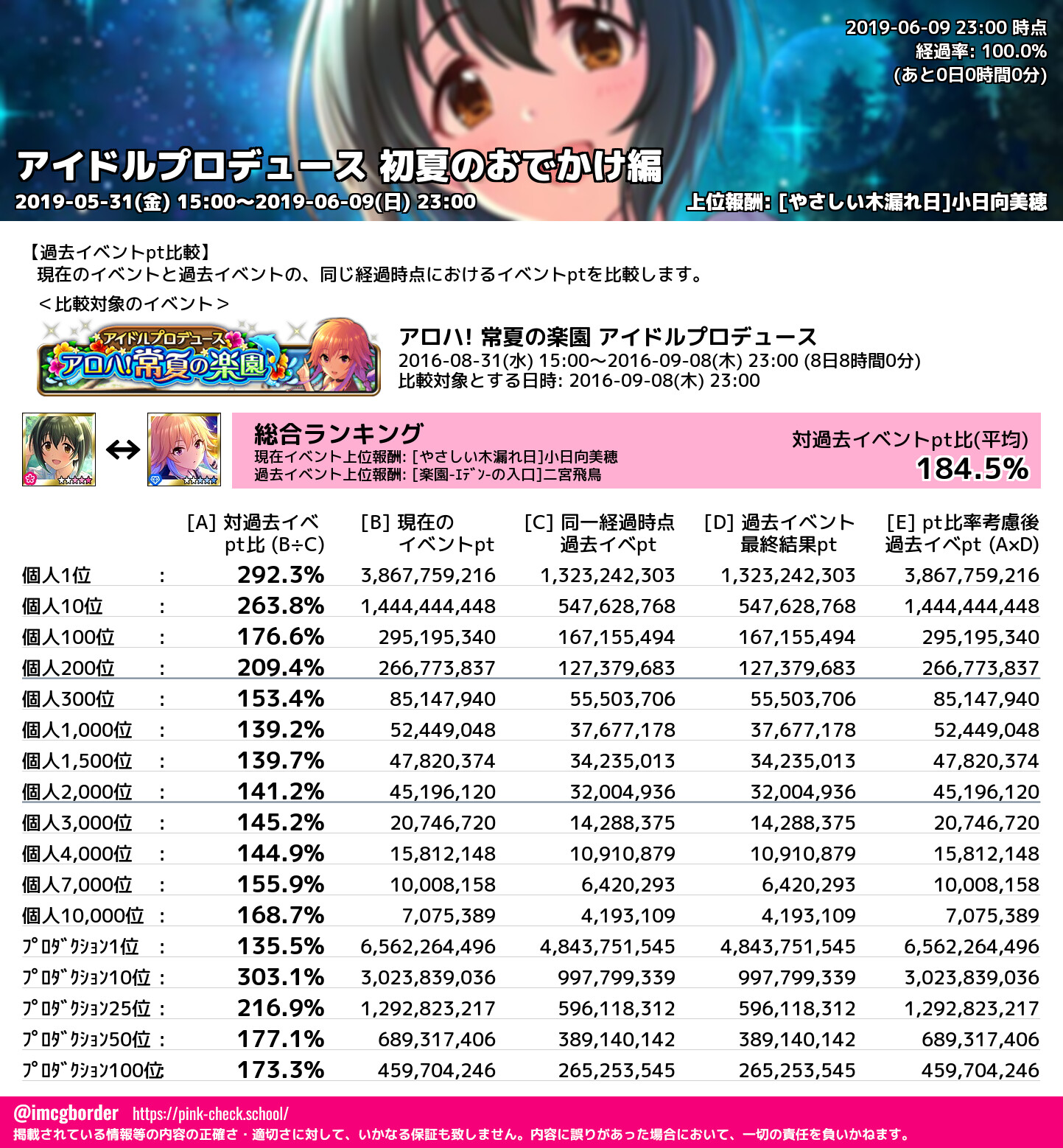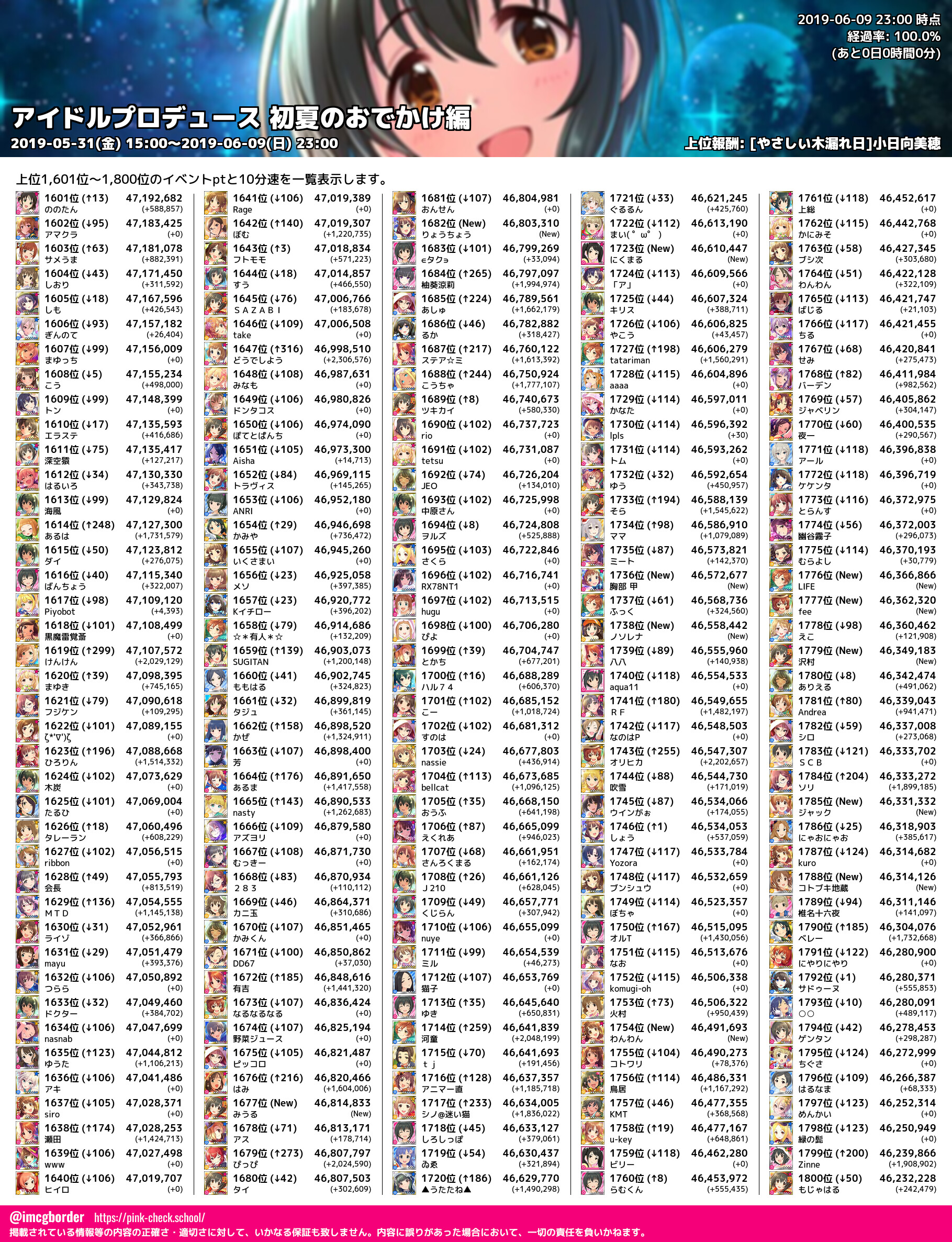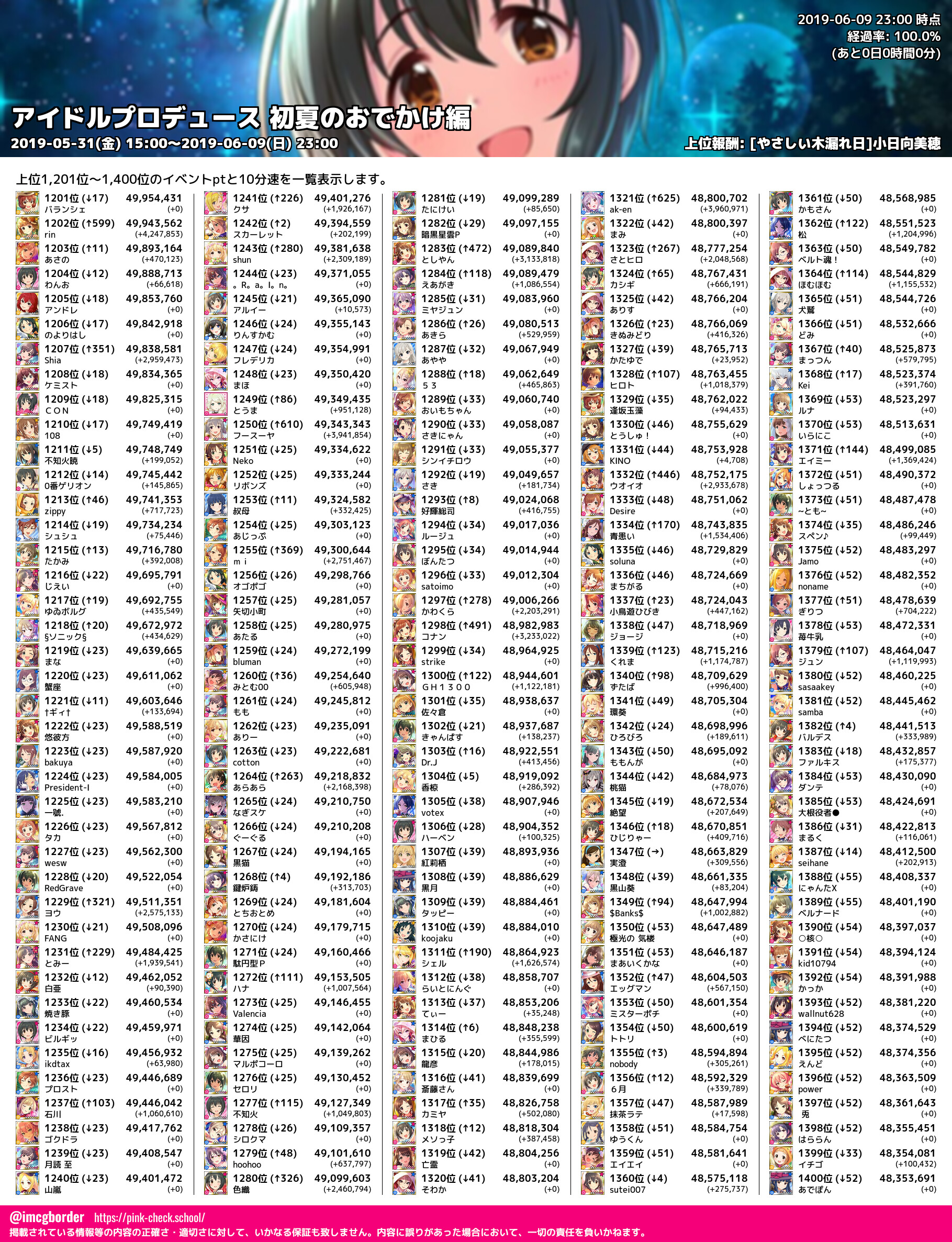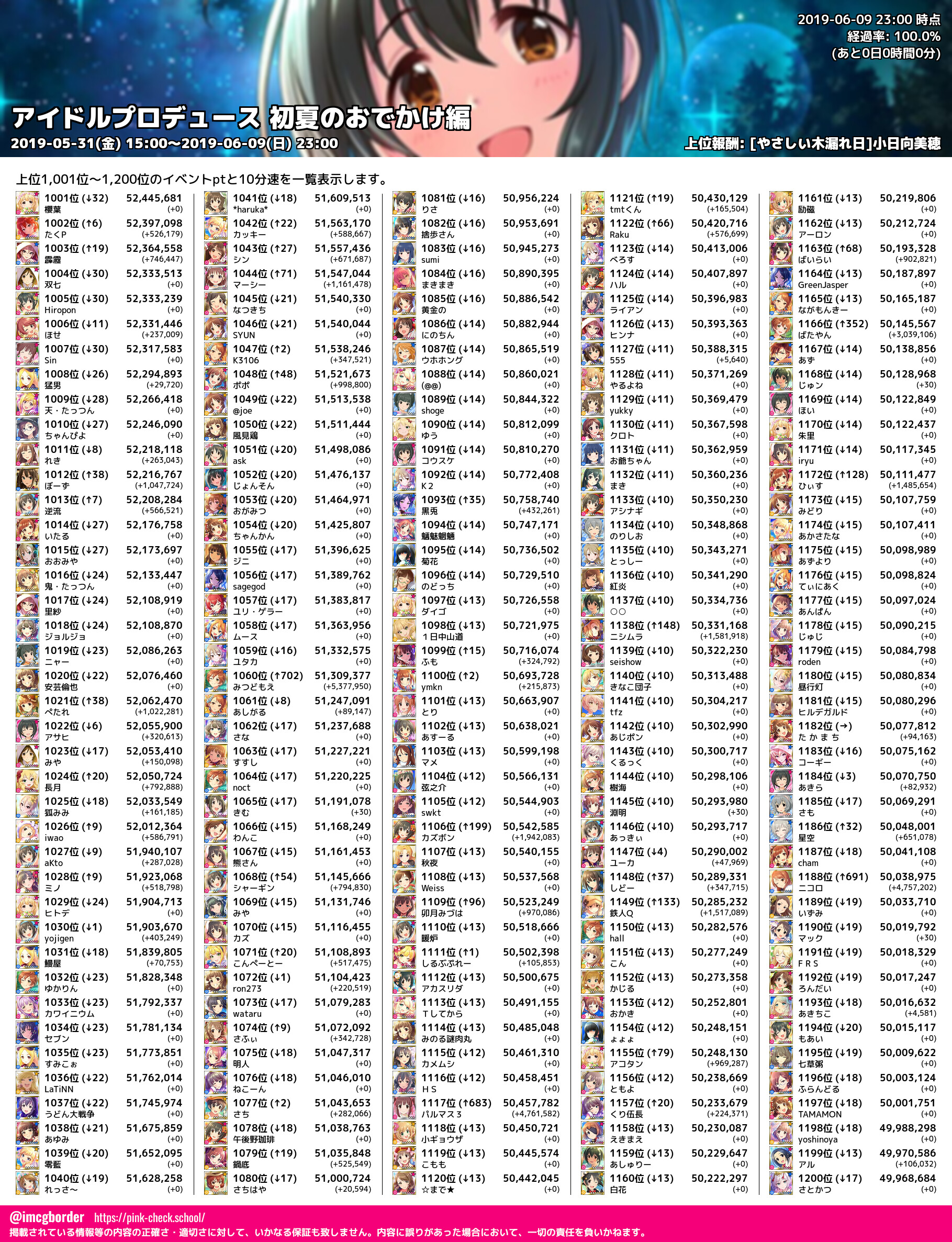 上位プロデューサースコア (2019-06-09 23:00 時点)