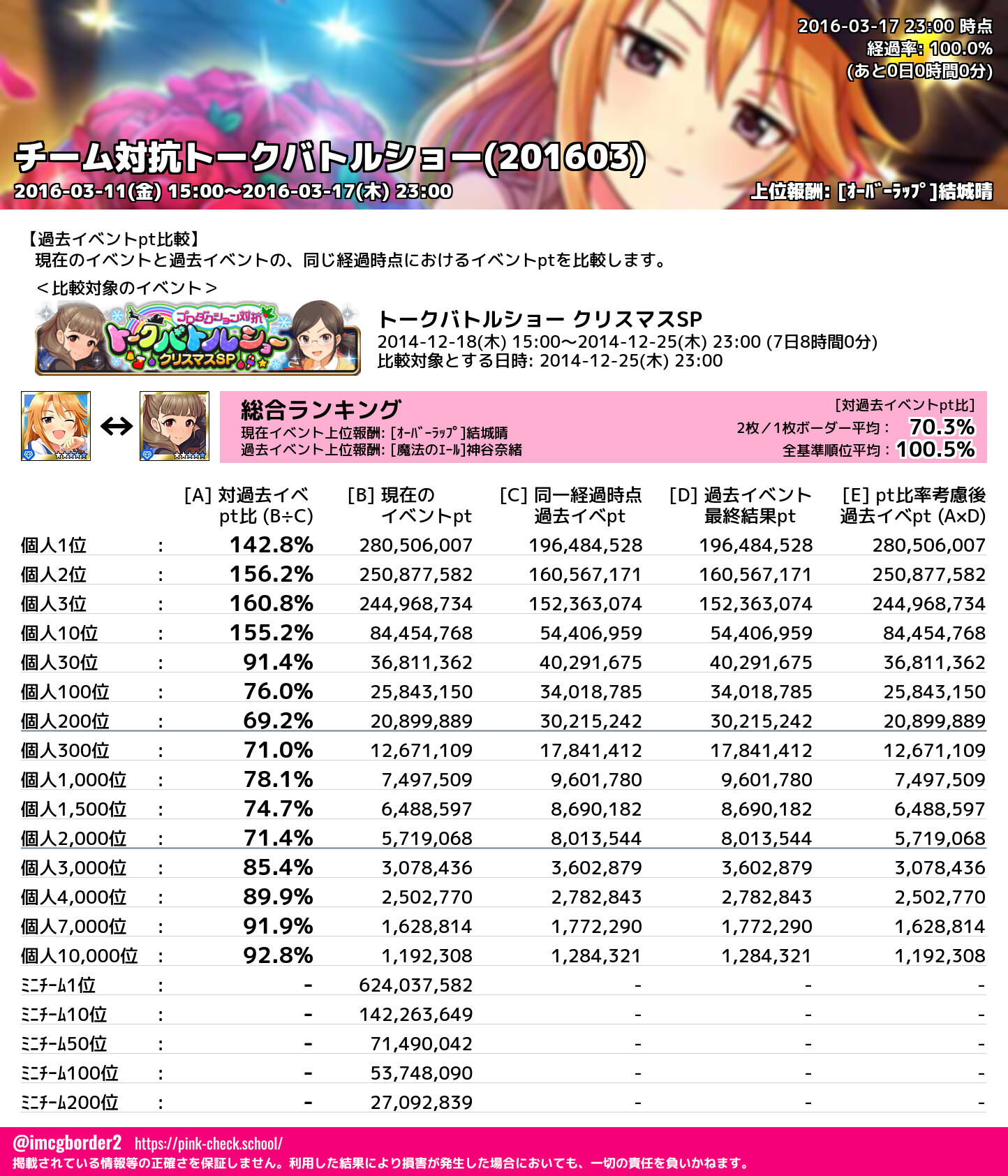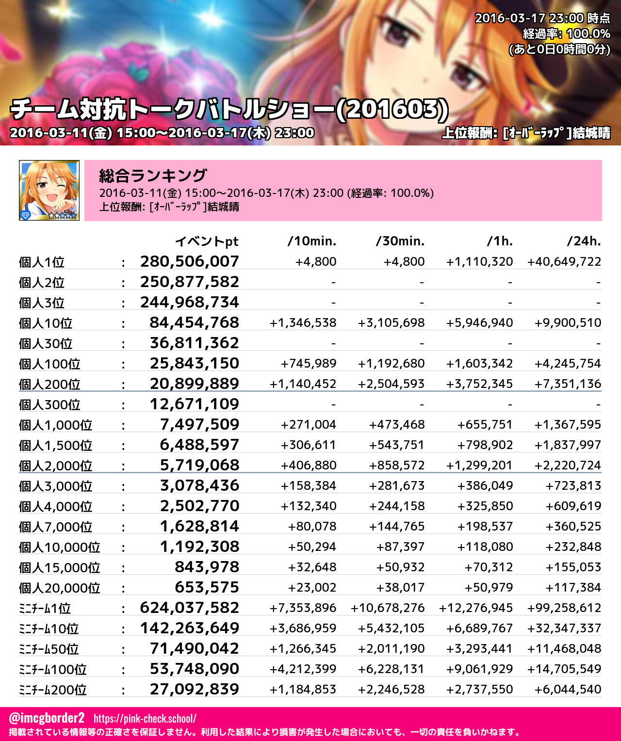 上位プロデューサースコア (2016-03-17 23:00 時点)