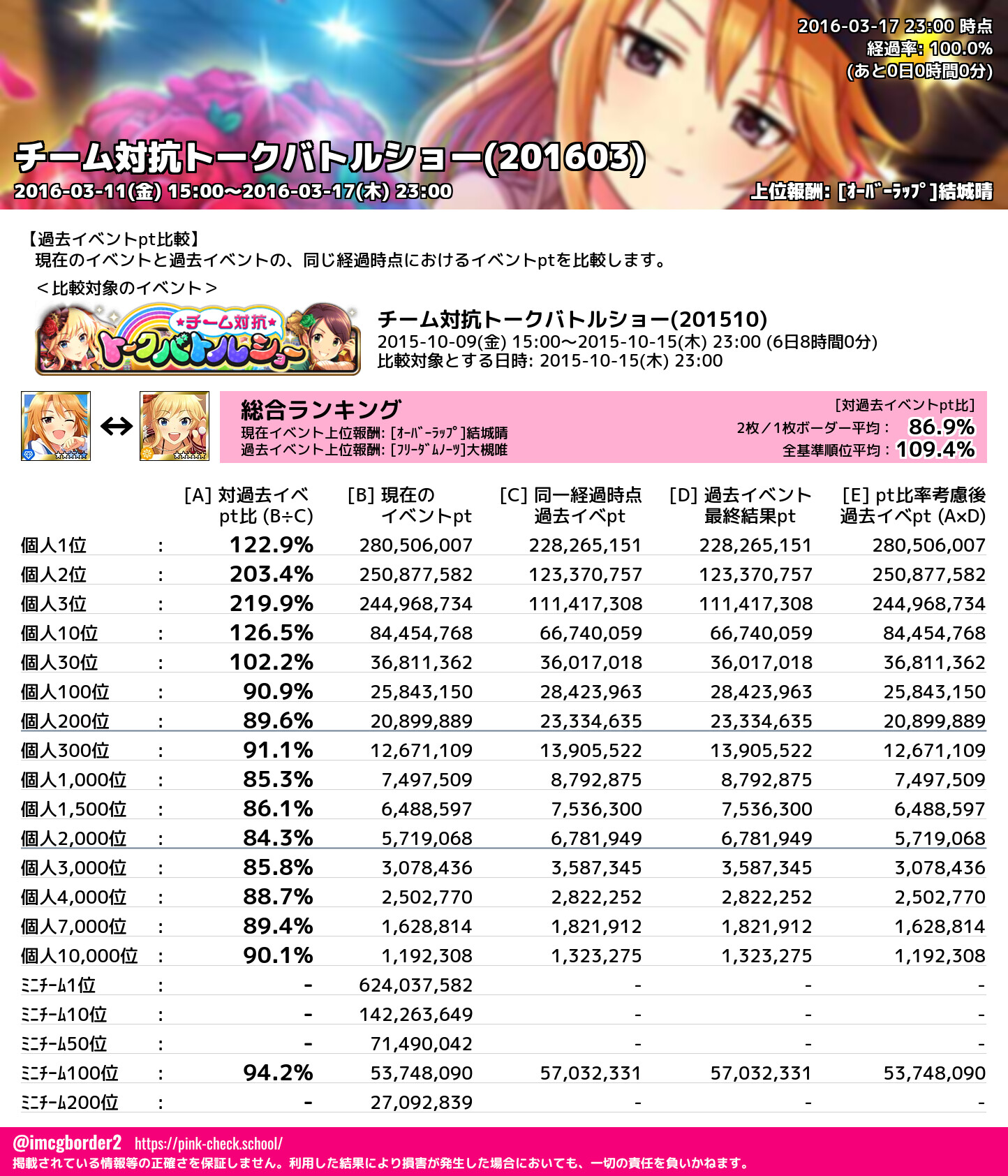 チーム対抗トークバトルショー(201603) 結果集計完了