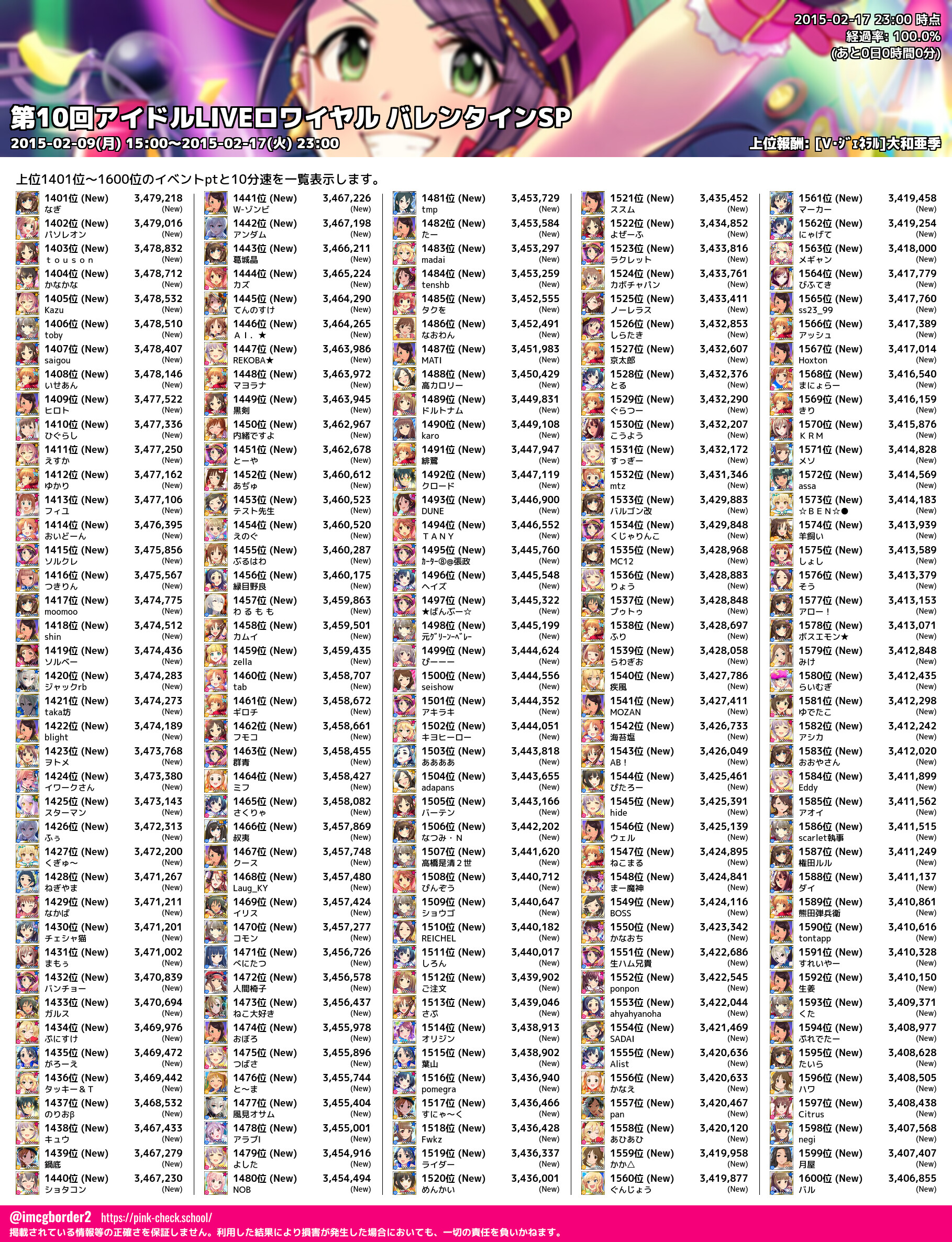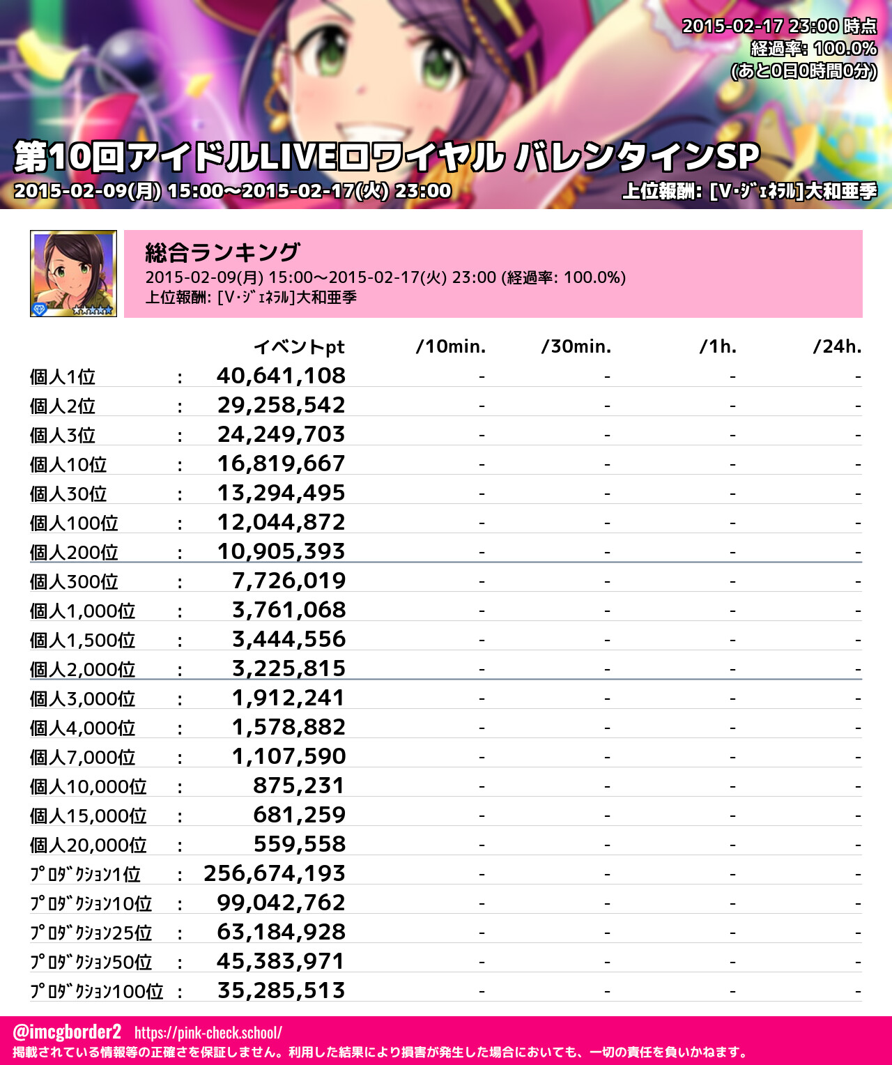 第10回アイドルLIVEロワイヤル バレンタインSP 結果集計完了