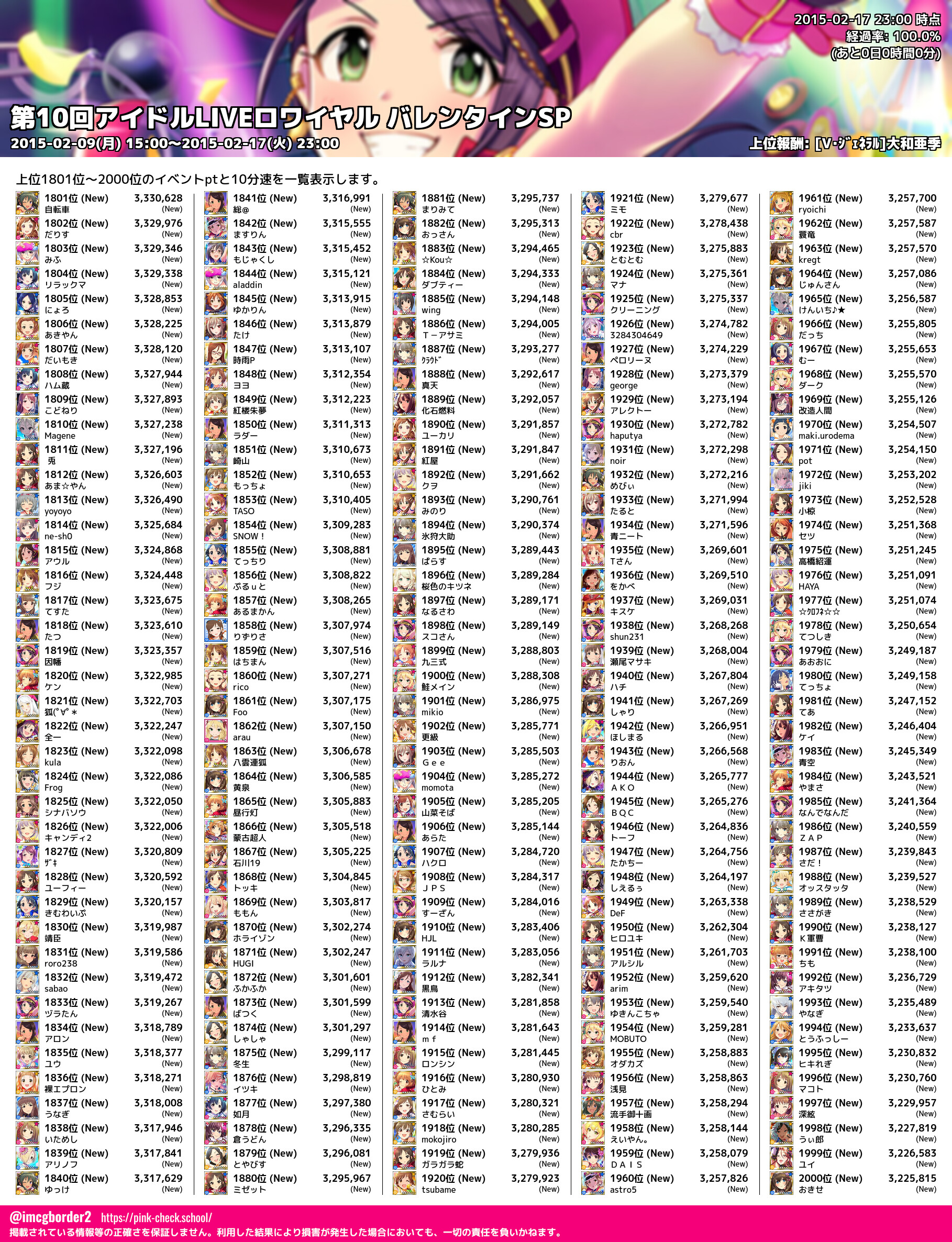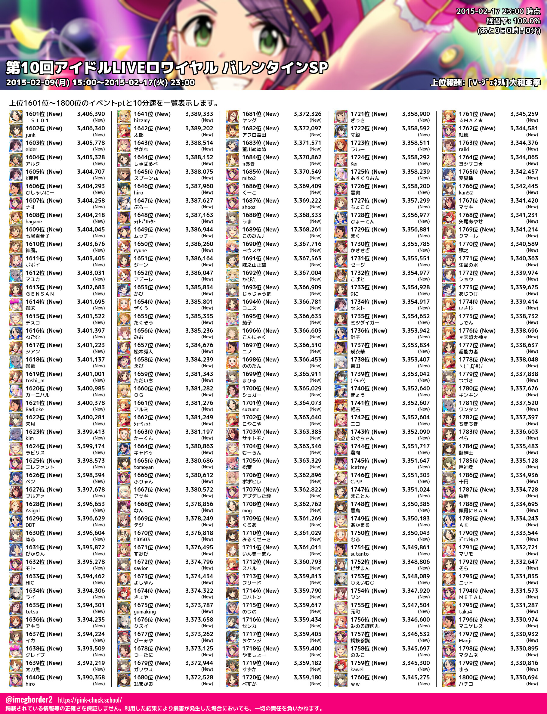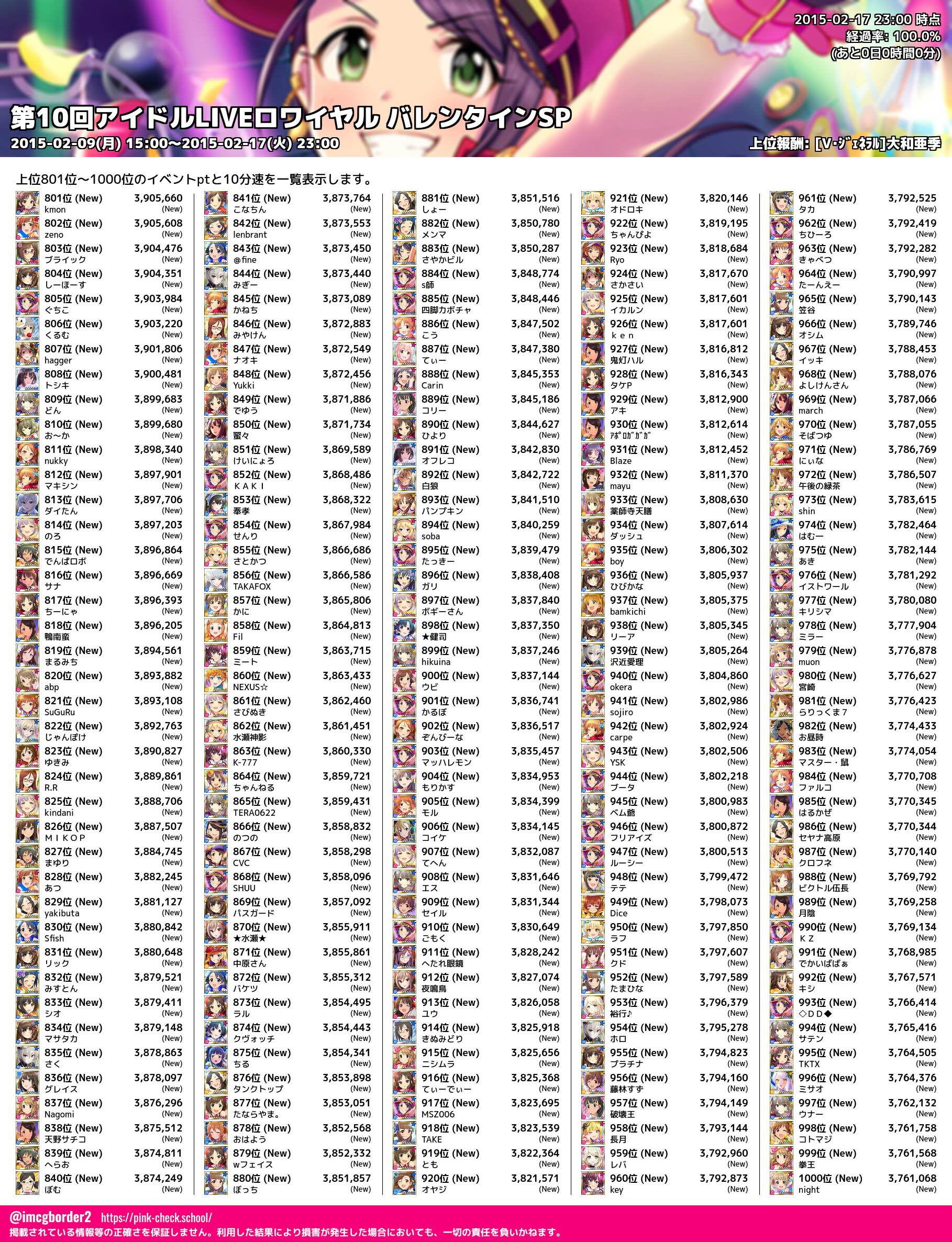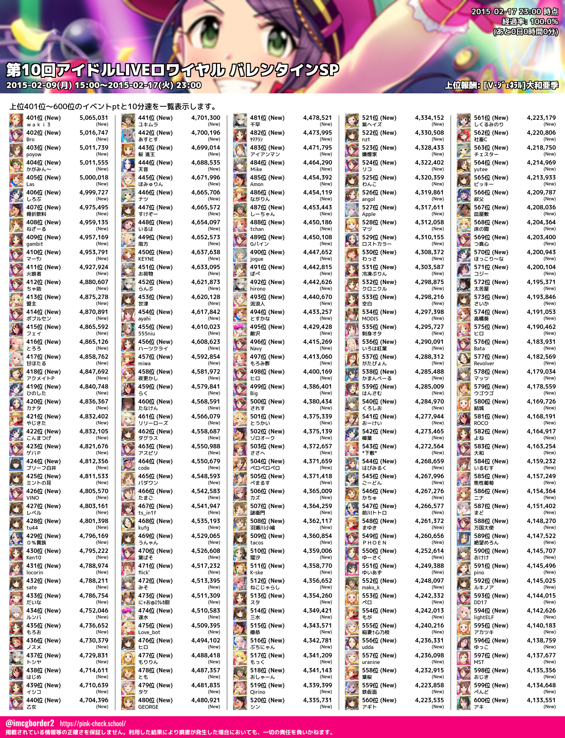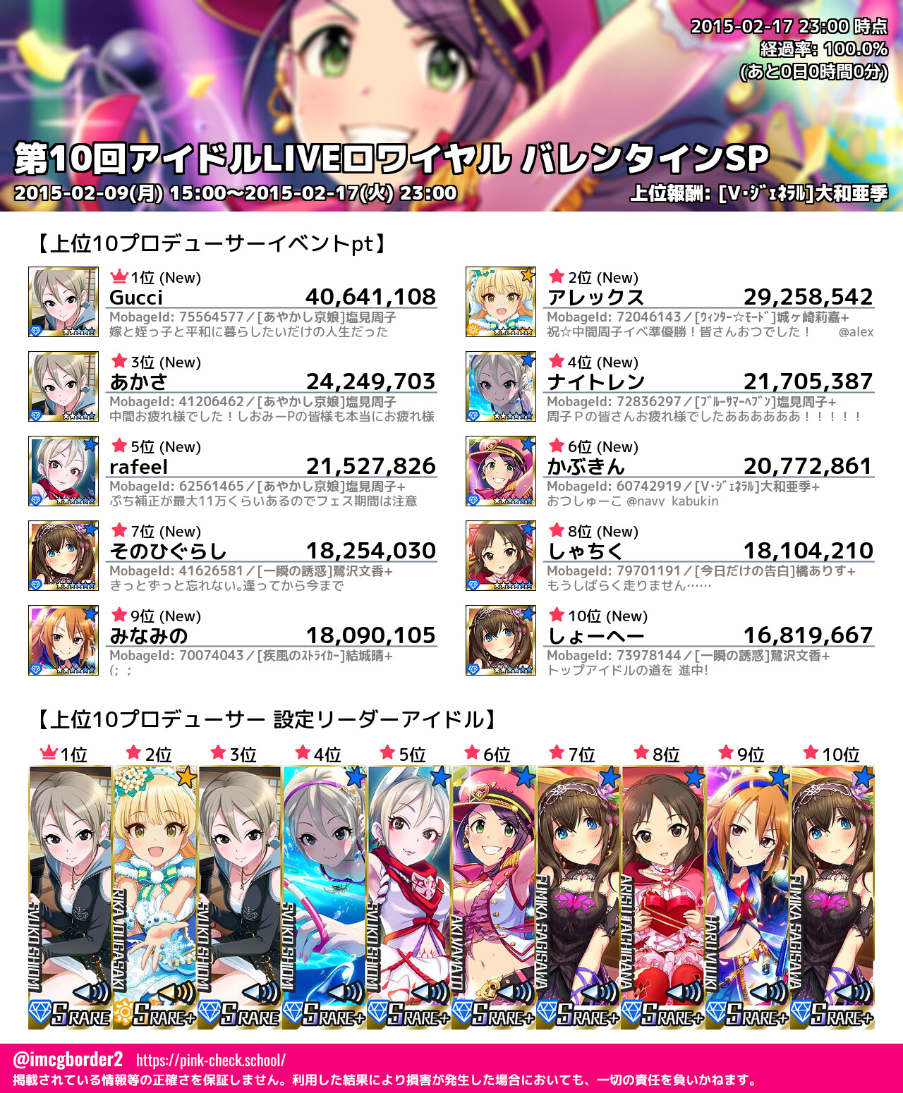 上位プロデューサースコア (2015-02-17 23:00 時点)