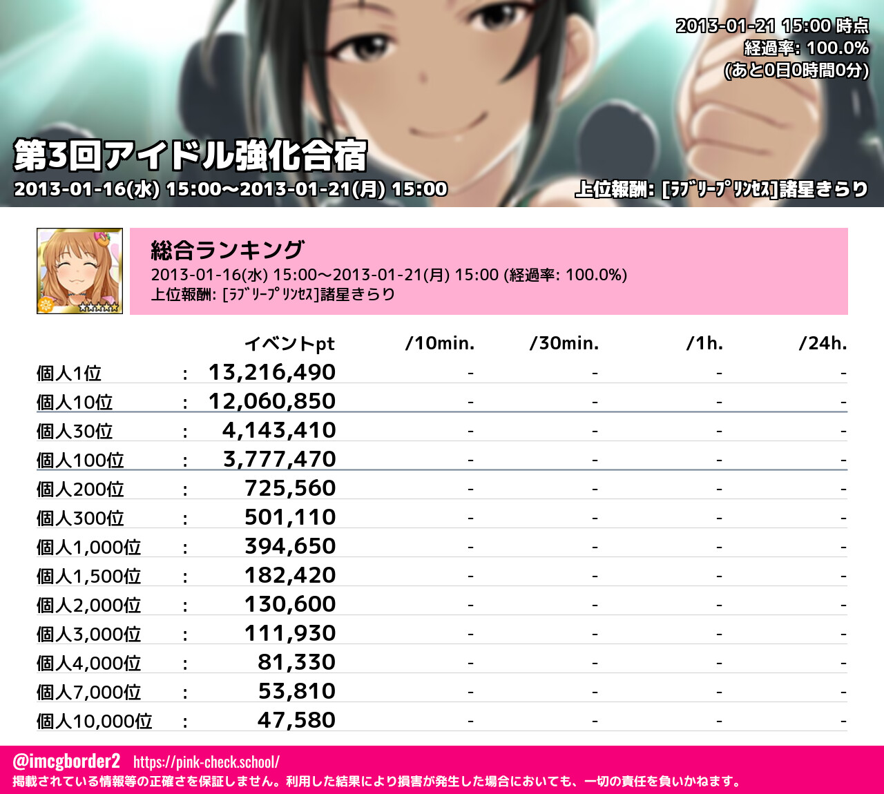 | 開催期間 | 2013-01-16(水) 15:00~2013-01-21(月) 15:00 |