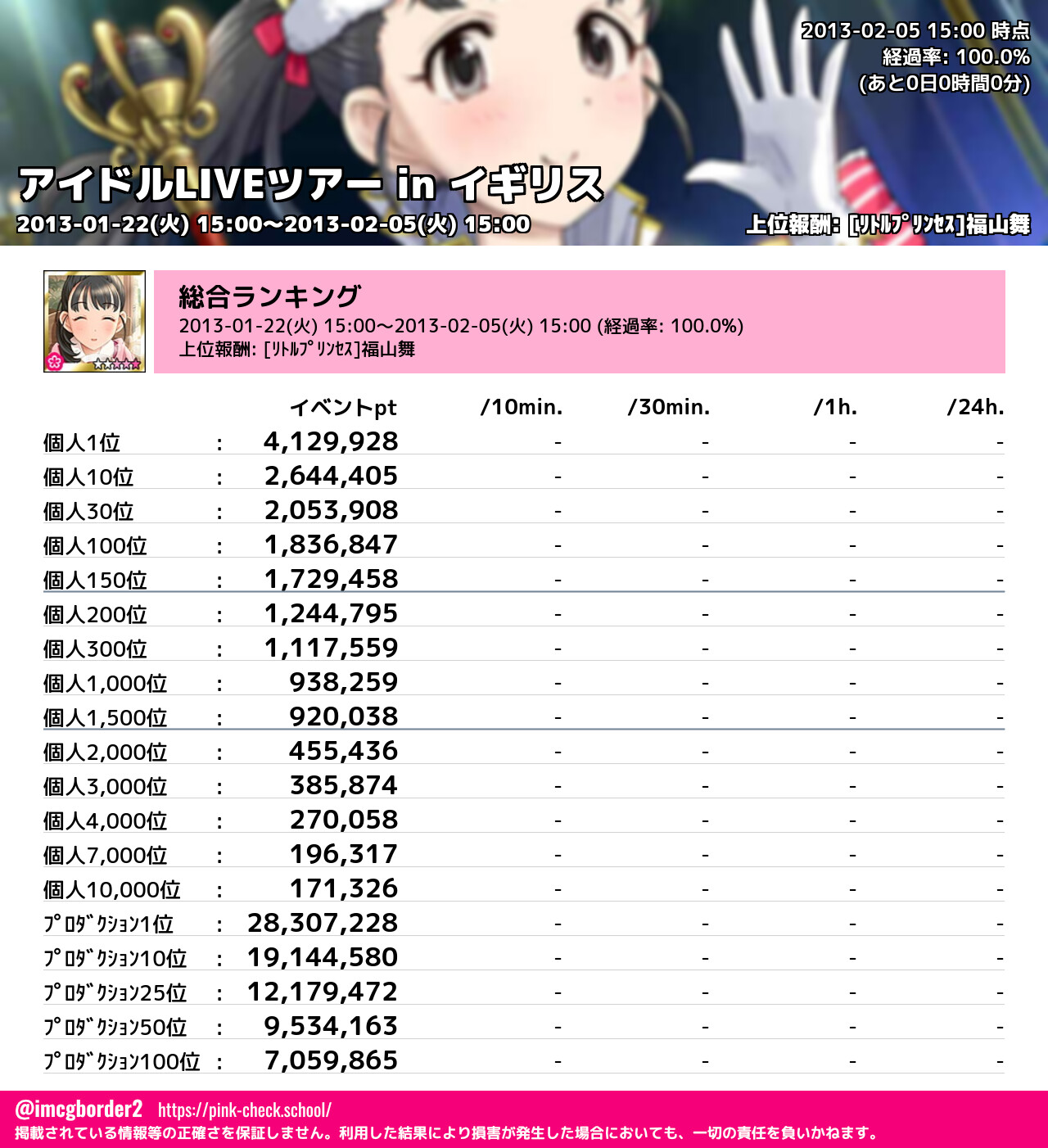 アイドルLIVEツアー in イギリス 結果集計完了