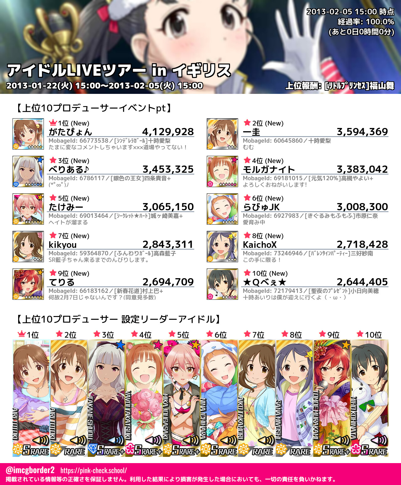 上位プロデューサースコア (2013-02-05 15:00 時点)
