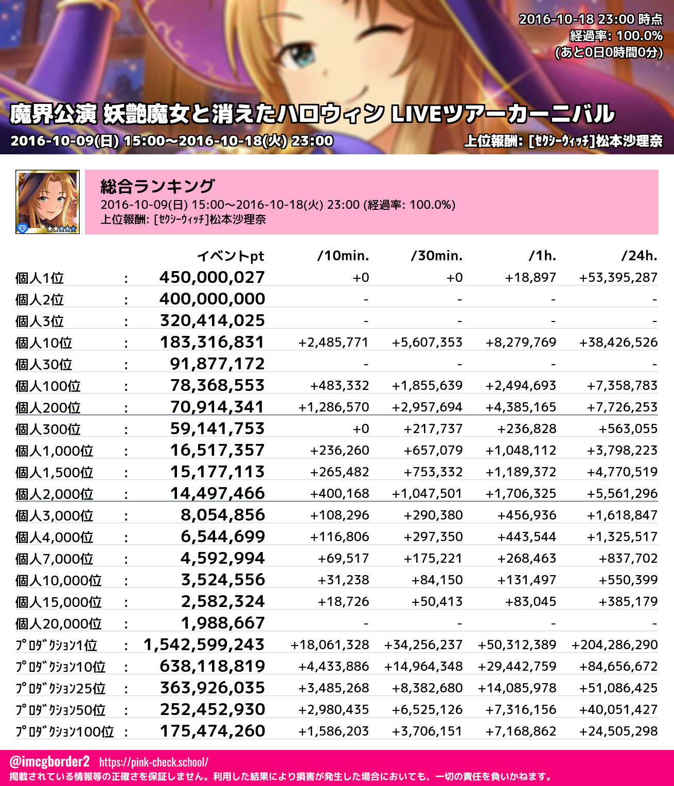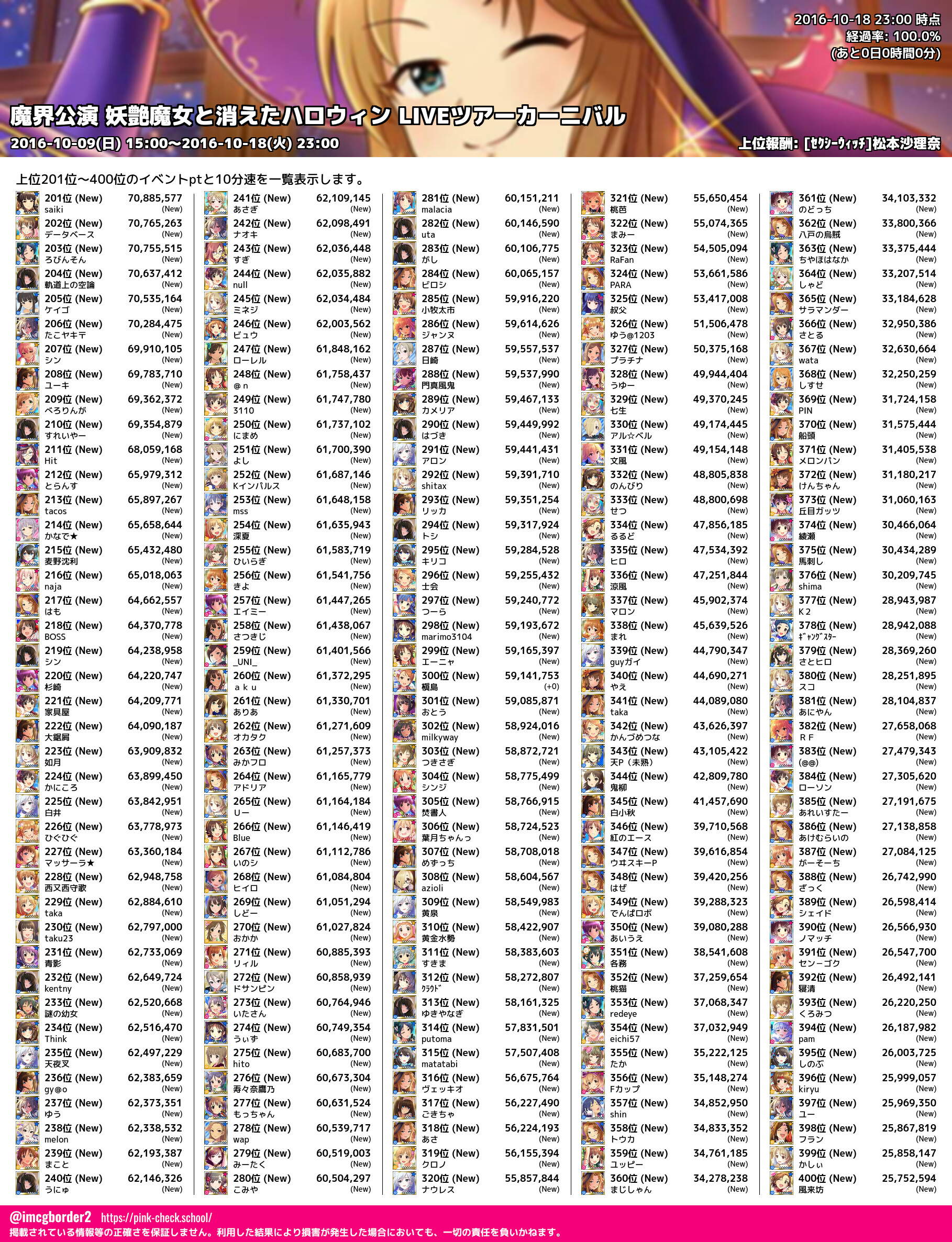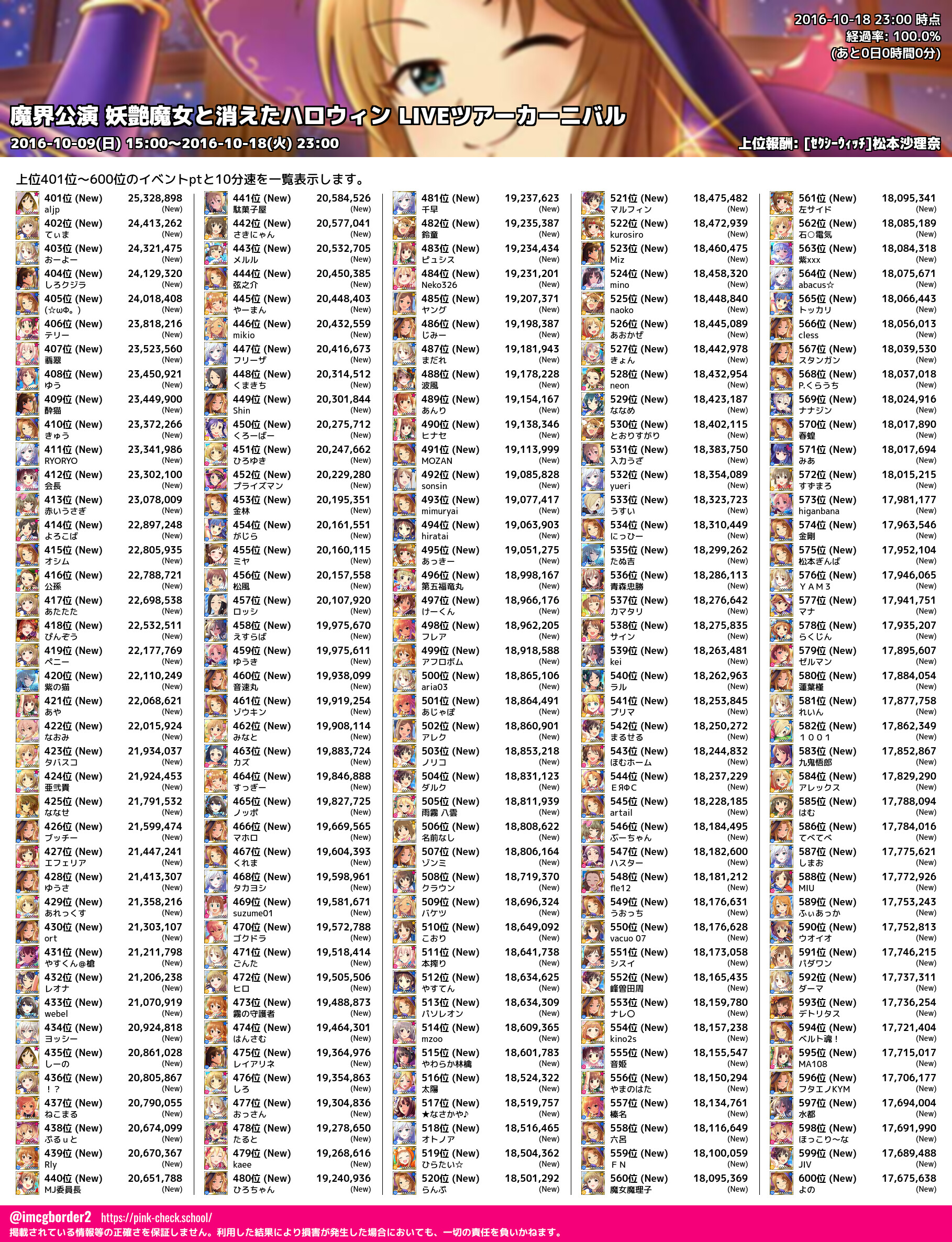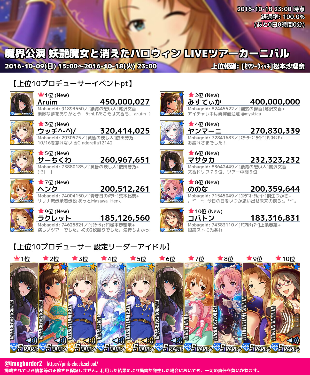 上位プロデューサースコア (2016-10-18 23:00 時点)