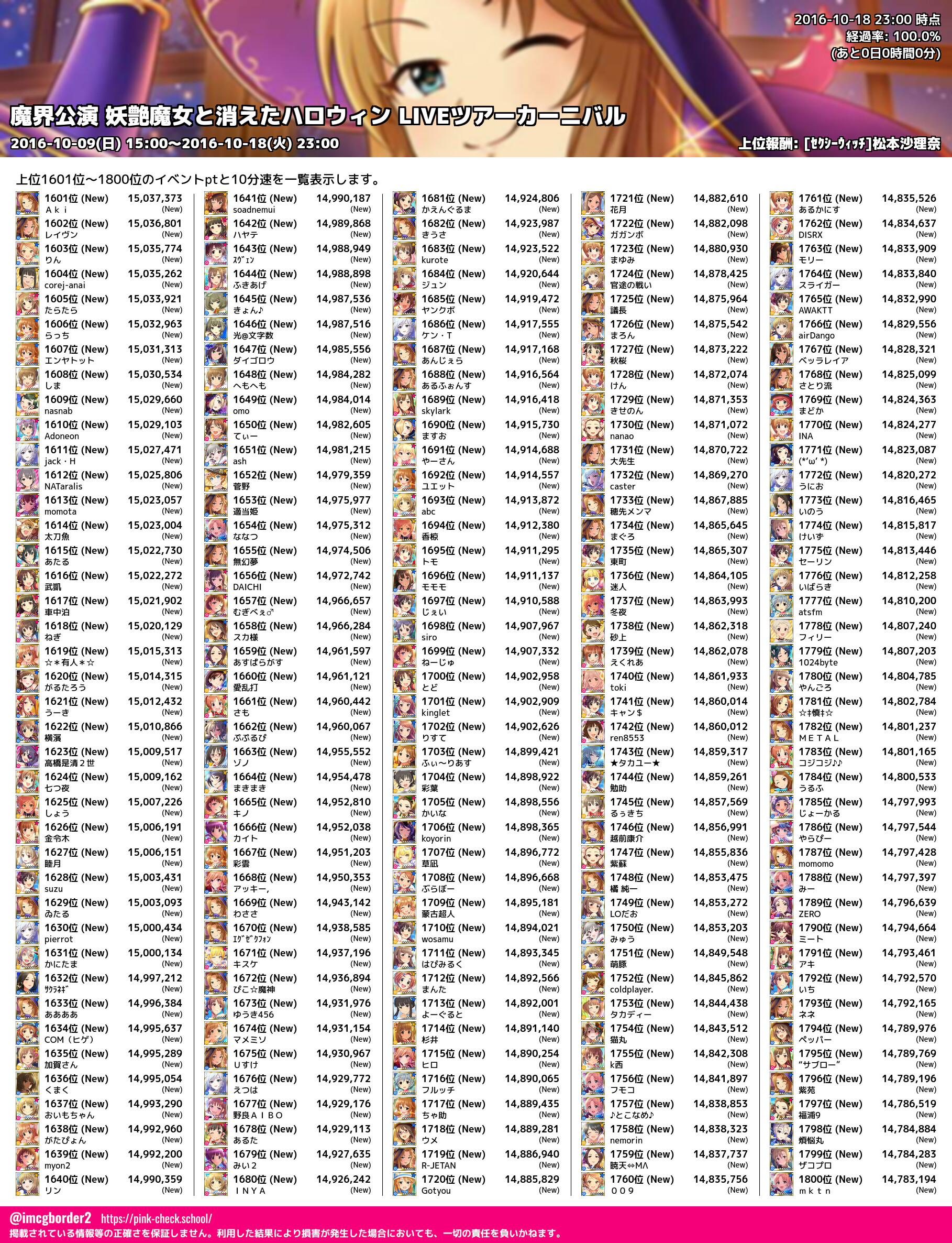 | 開催期間 | 2016-10-09(日) 15:00~2016-10-18(火) 23:00 |