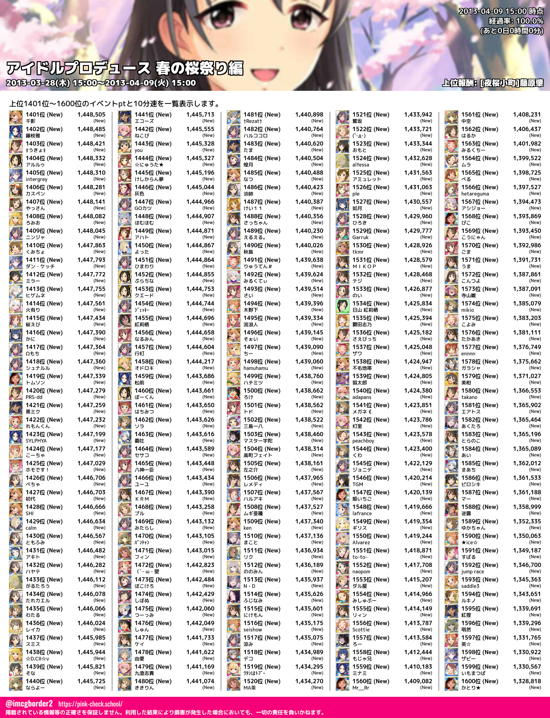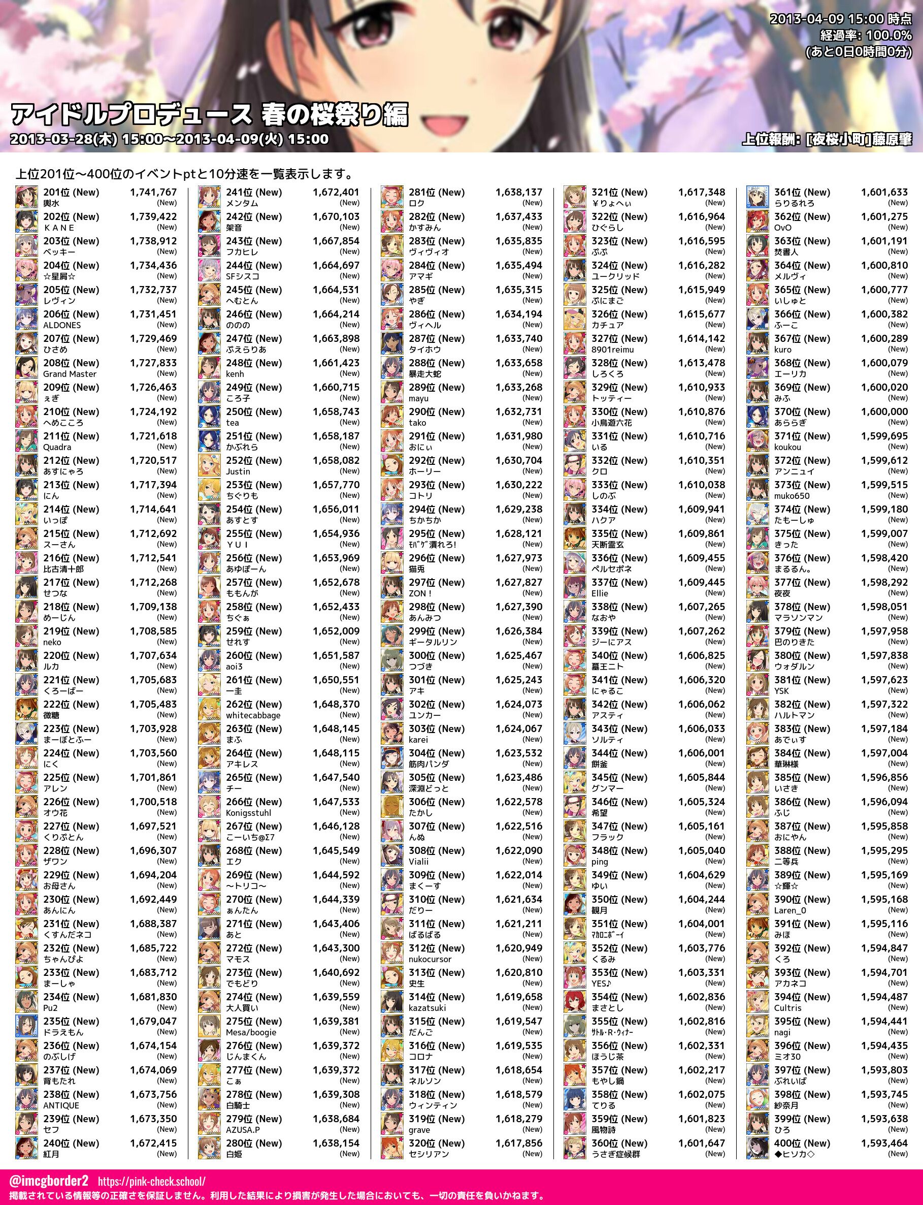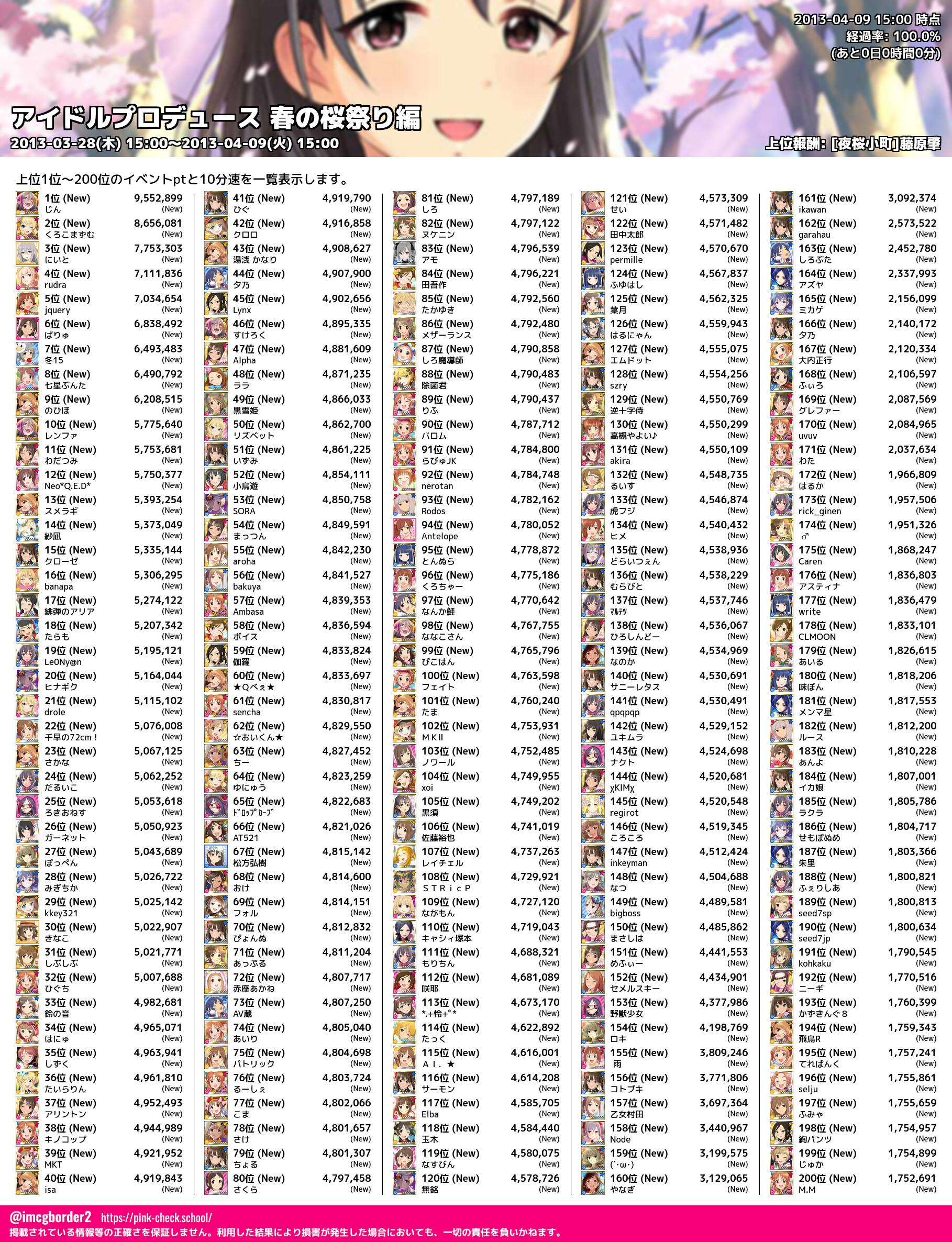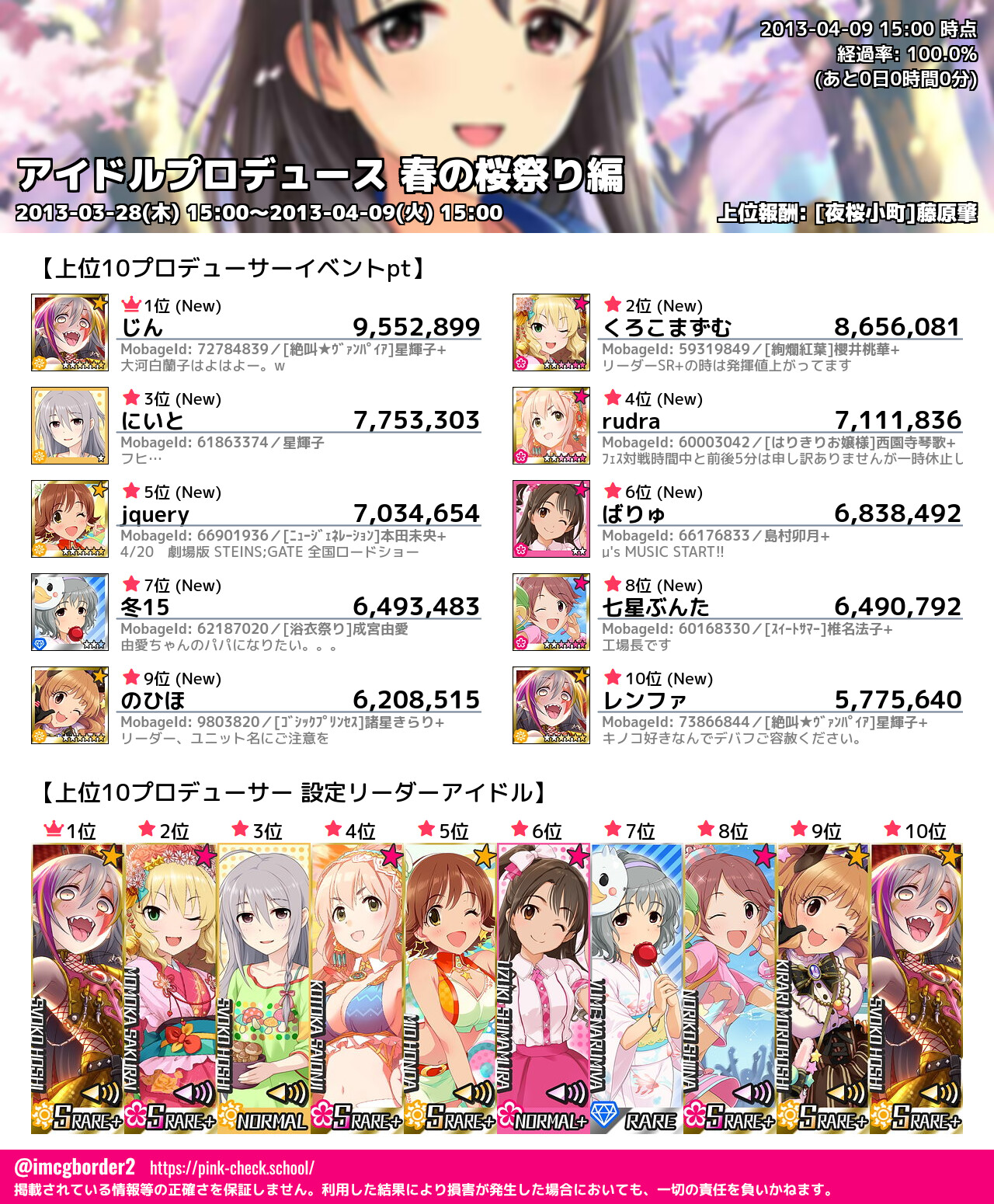 アイドルプロデュース 春の桜祭り編 総合ランキング