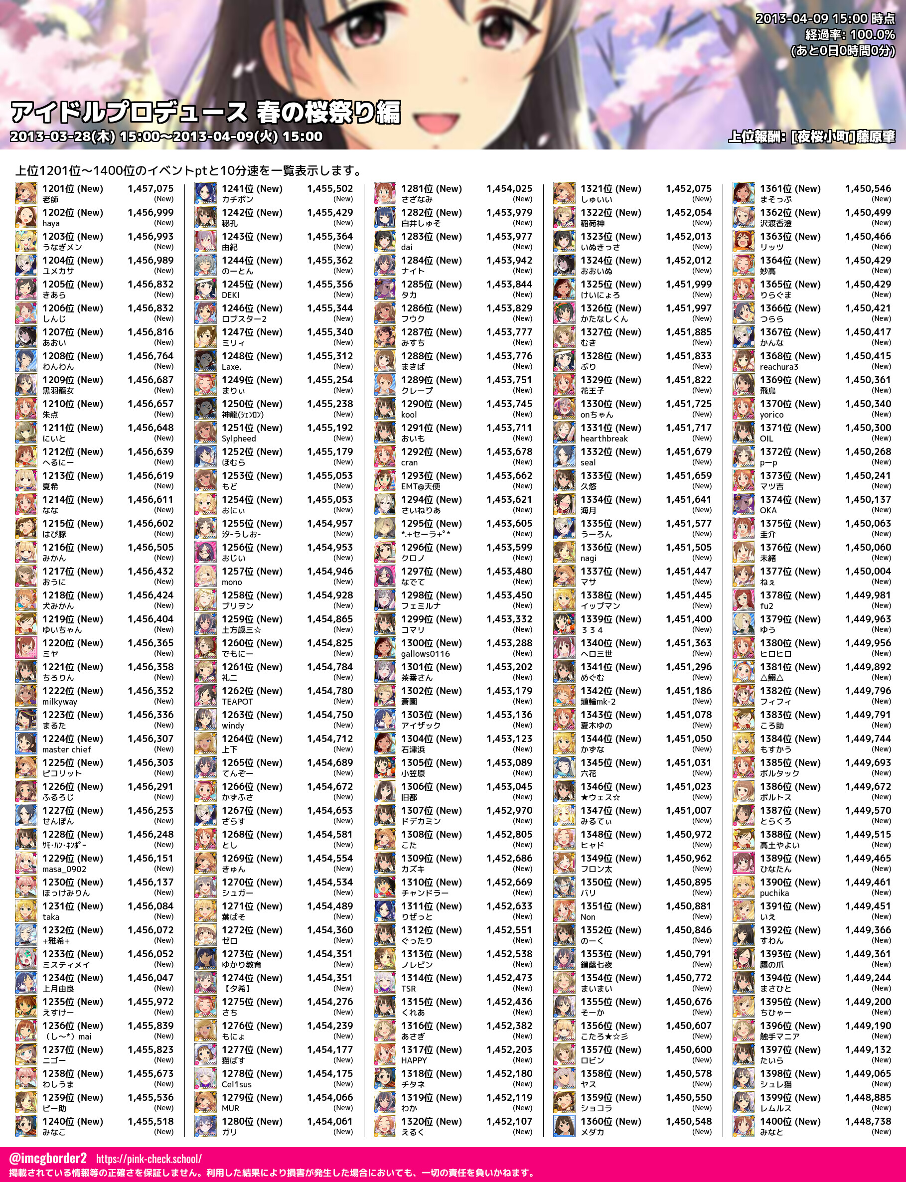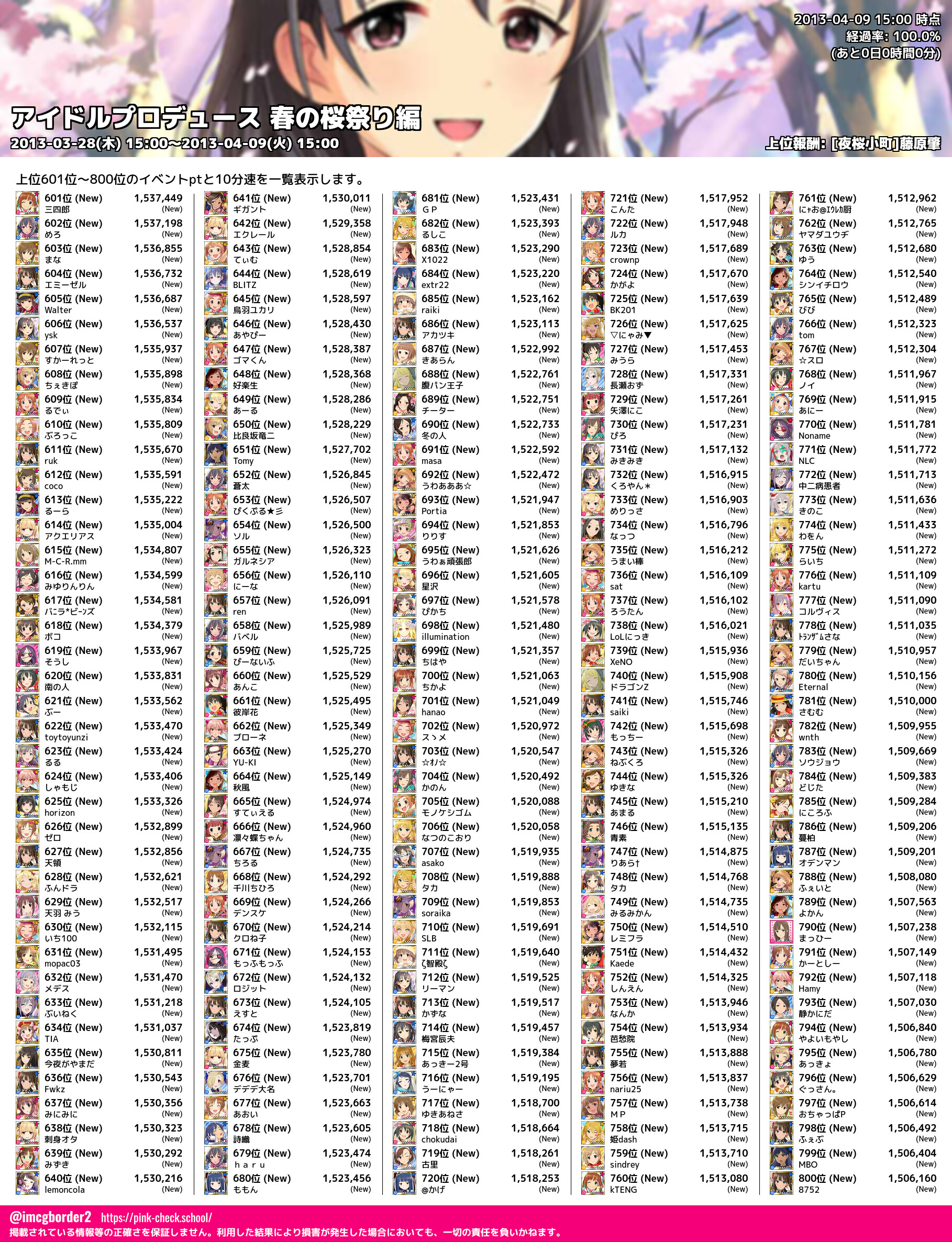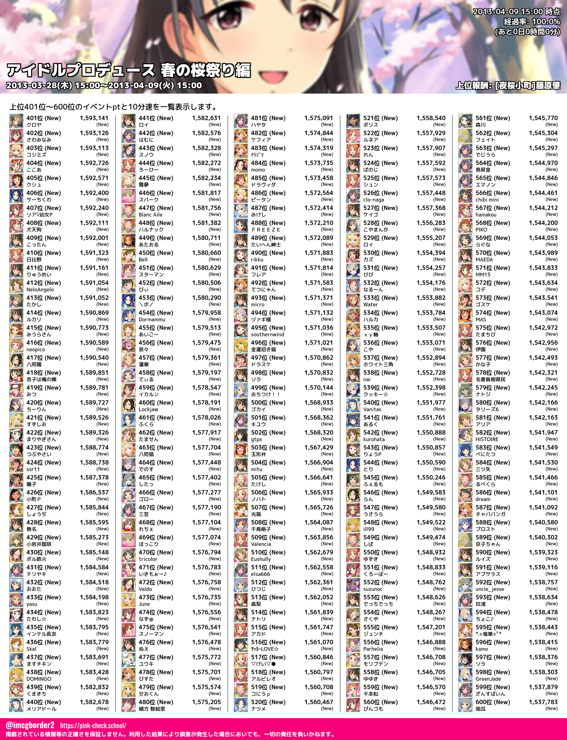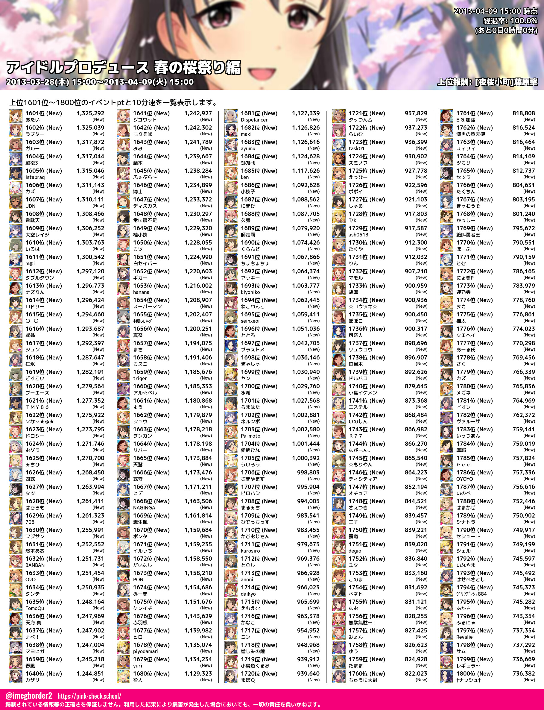 アイドルプロデュース 春の桜祭り編 総合ランキング
