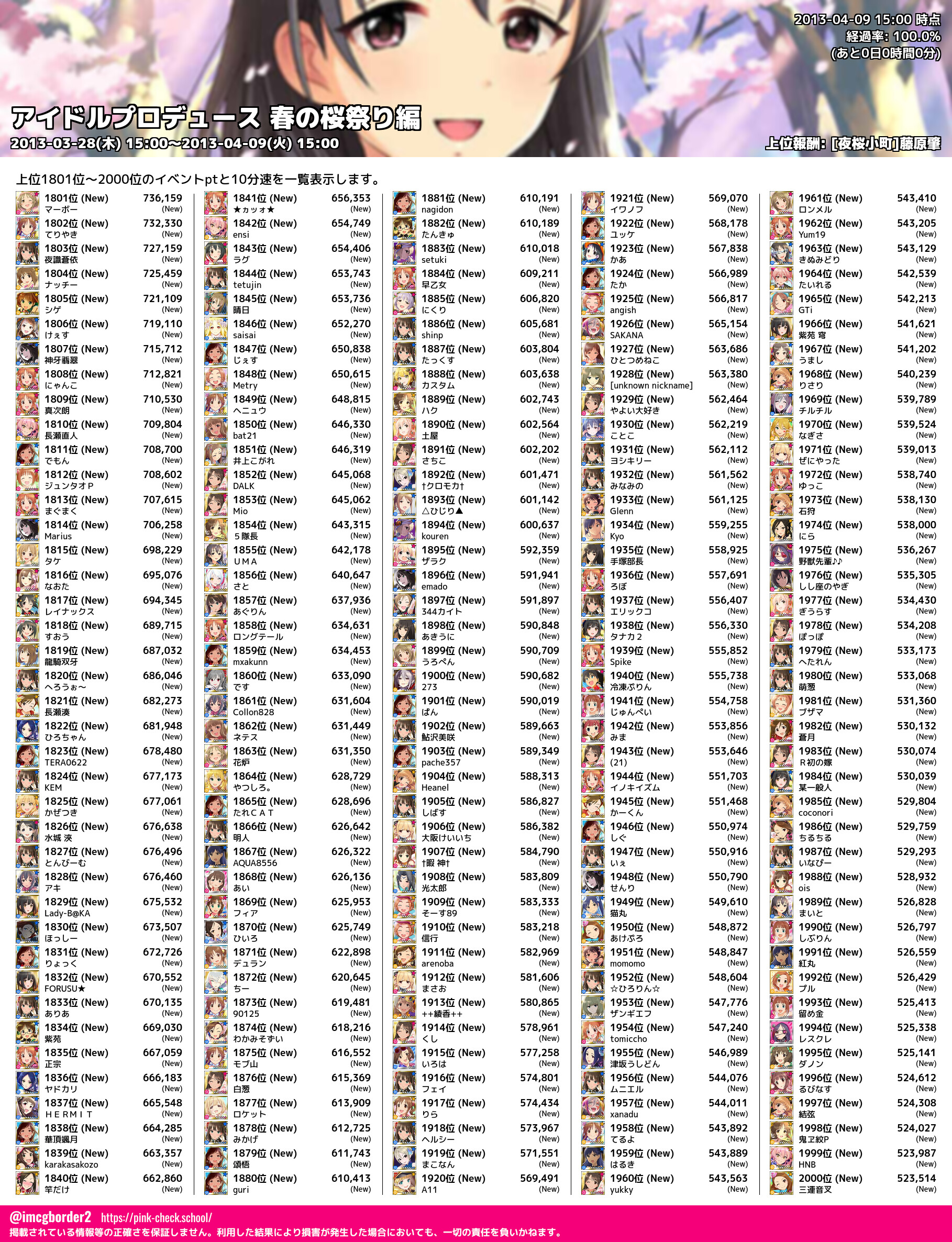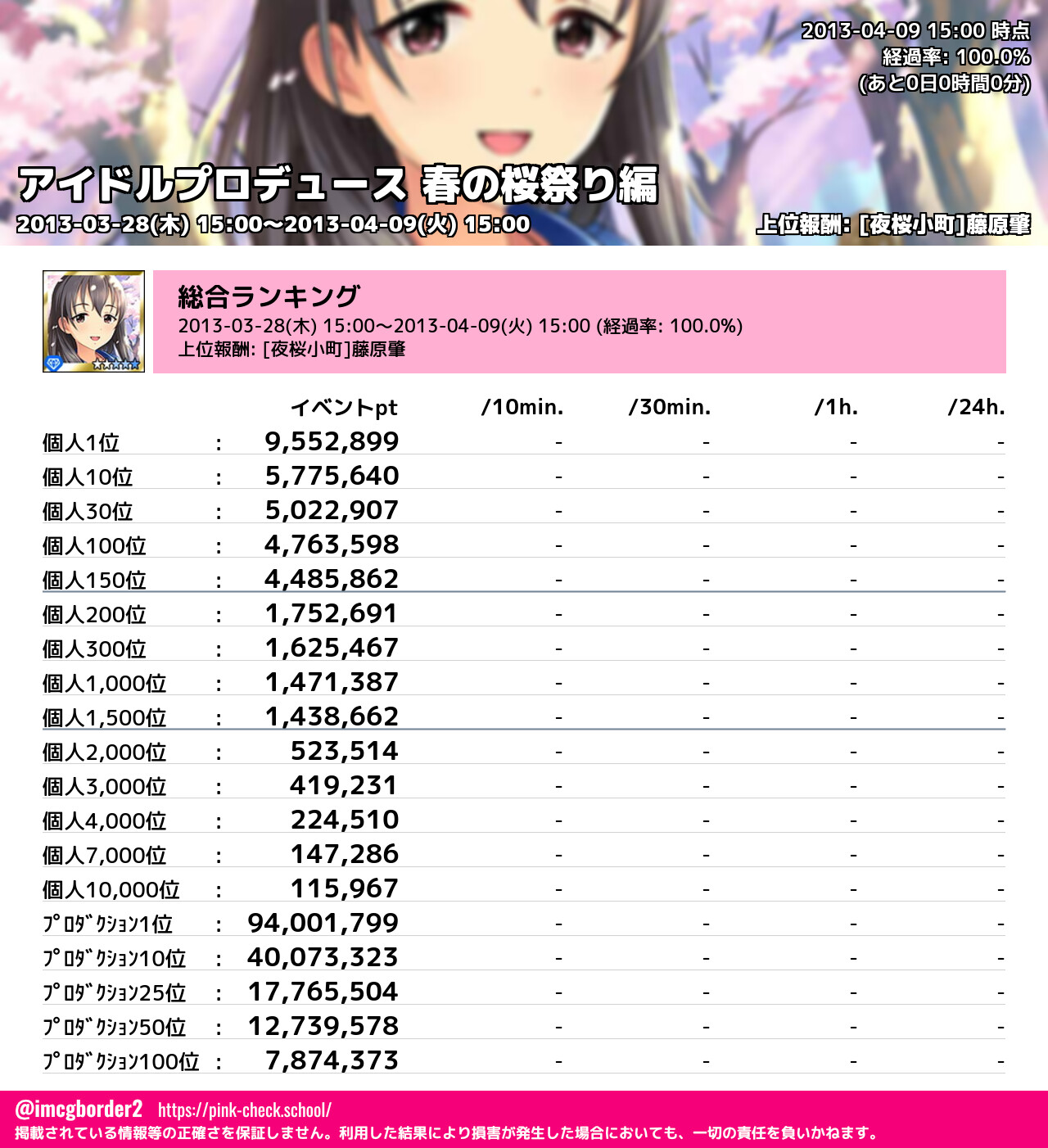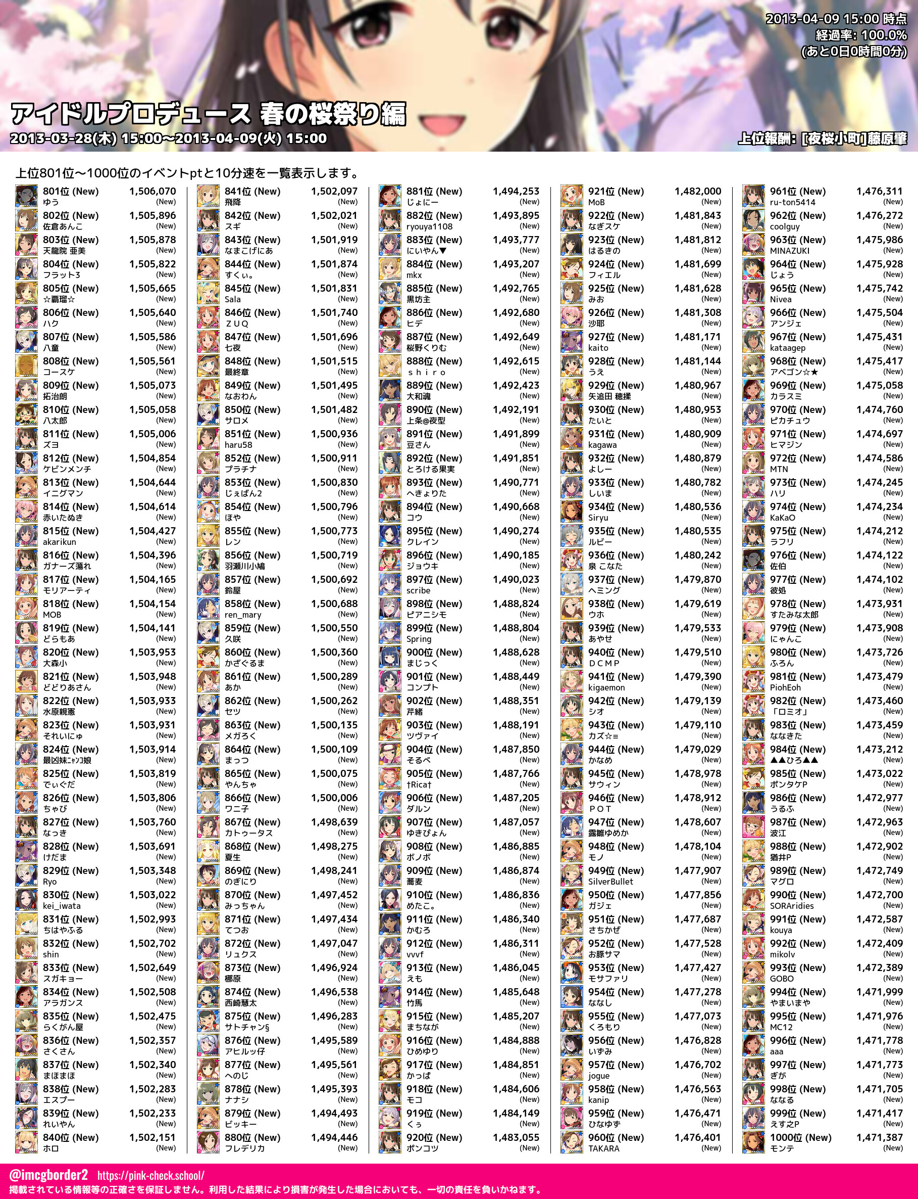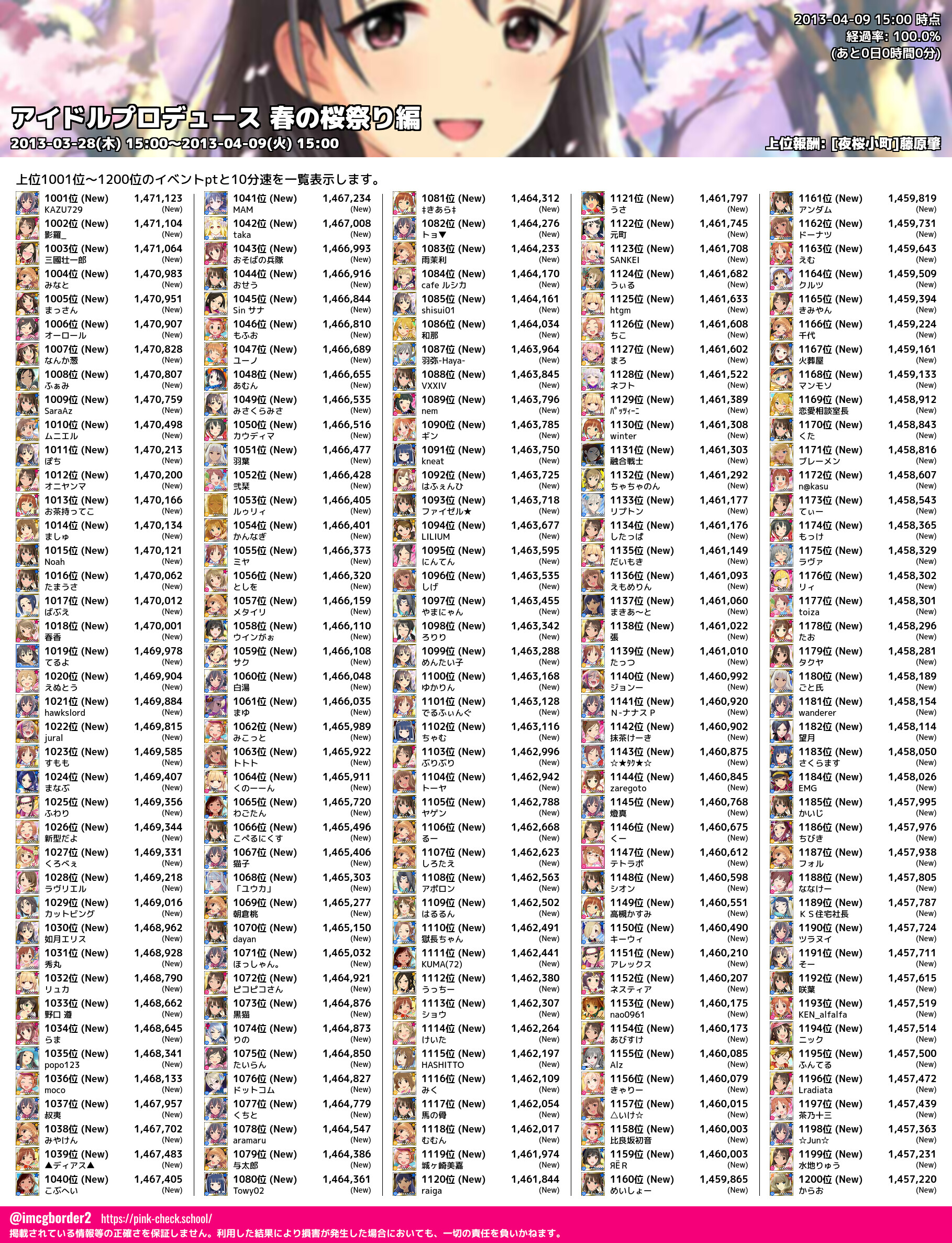 アイドルプロデュース 春の桜祭り編 総合ランキング