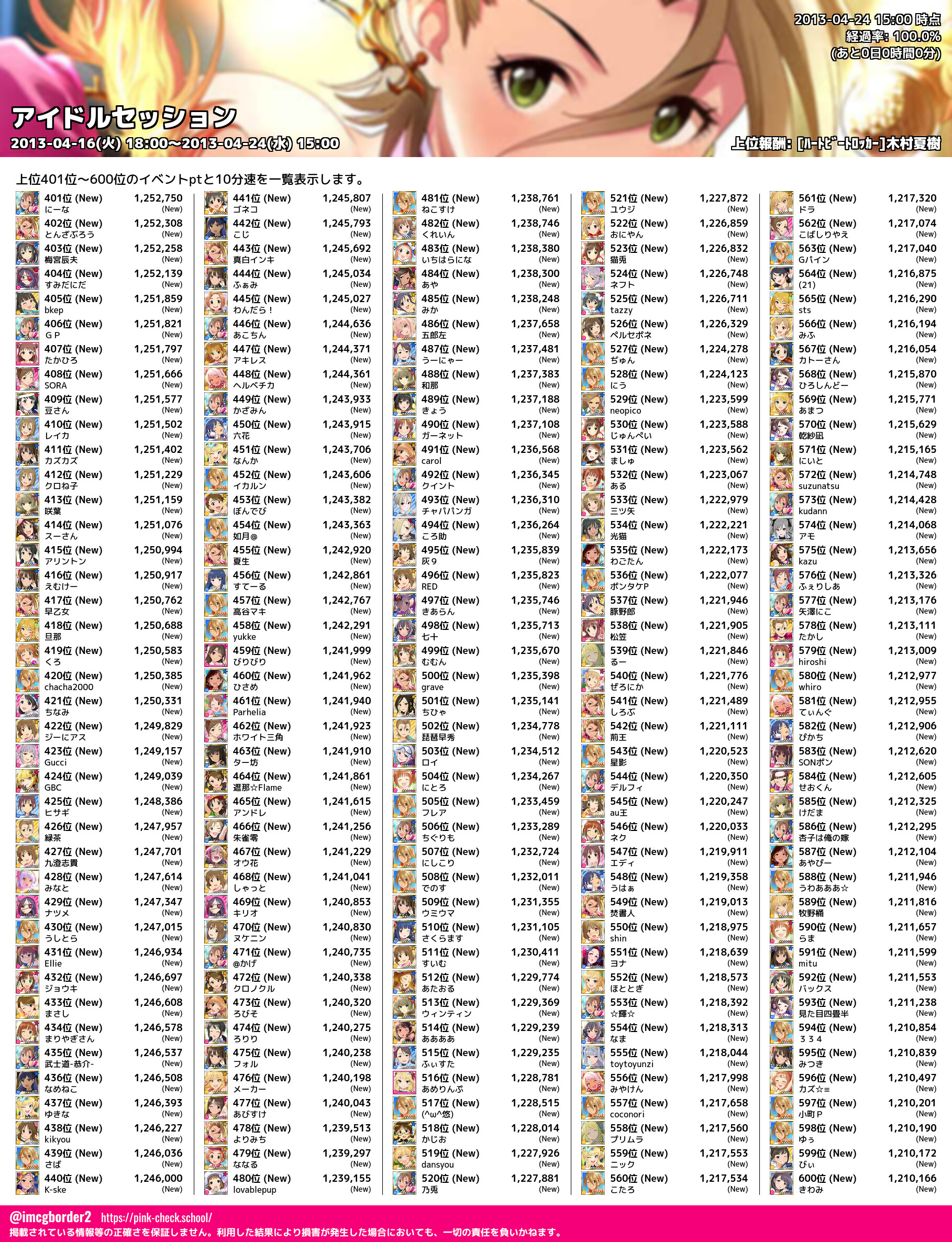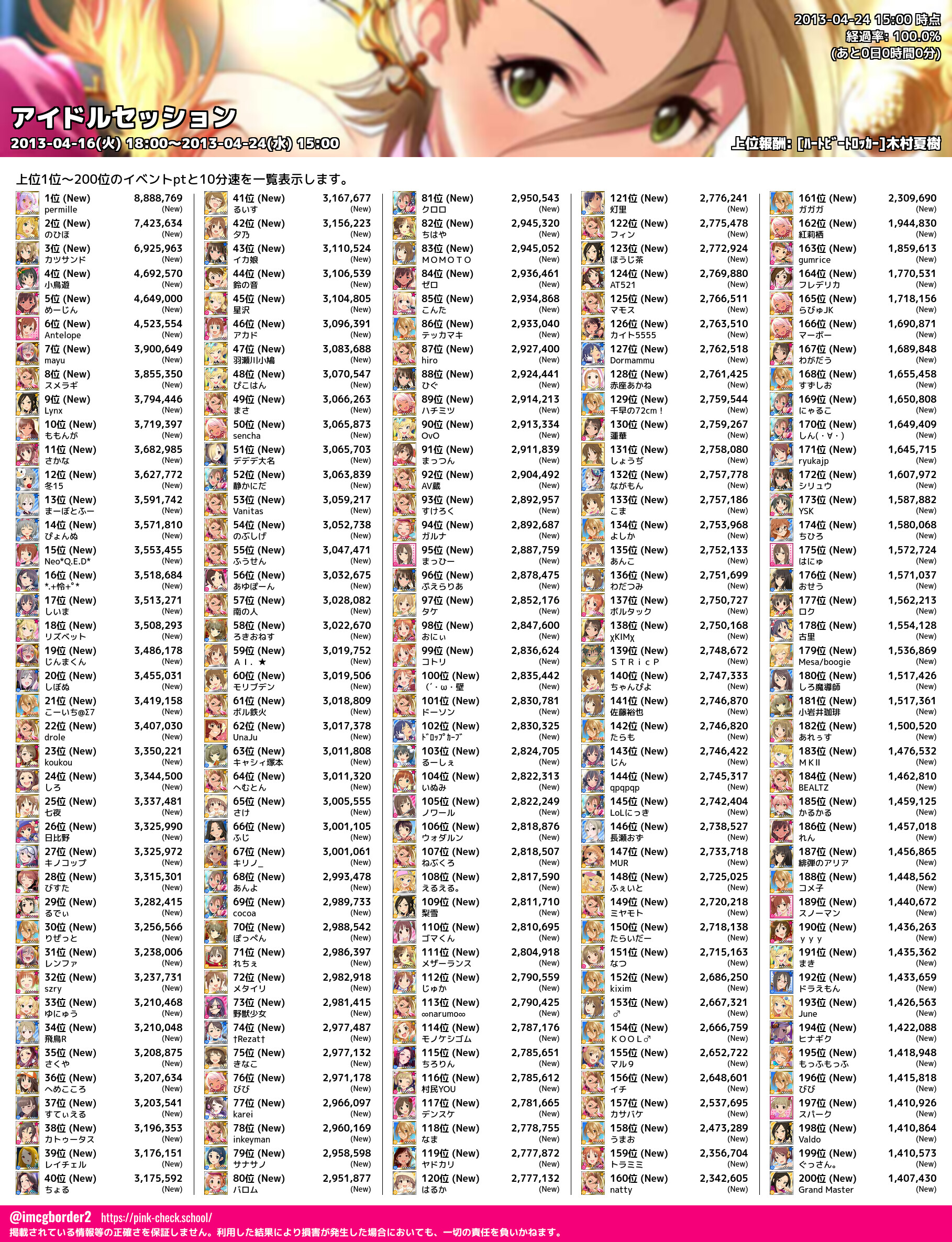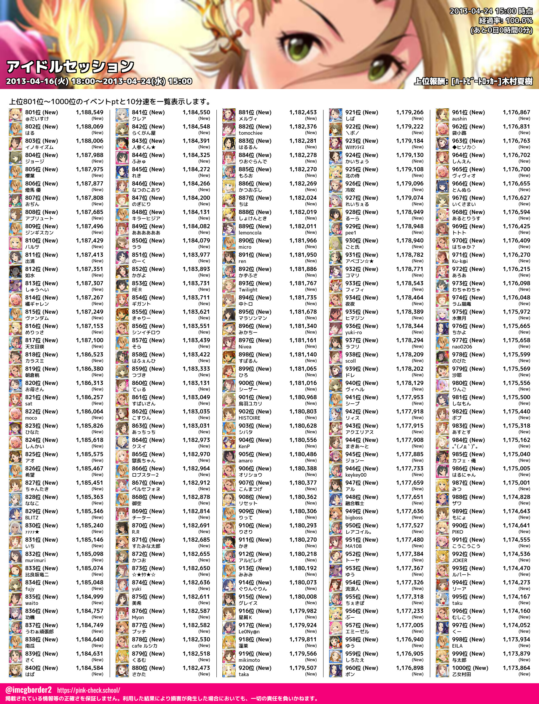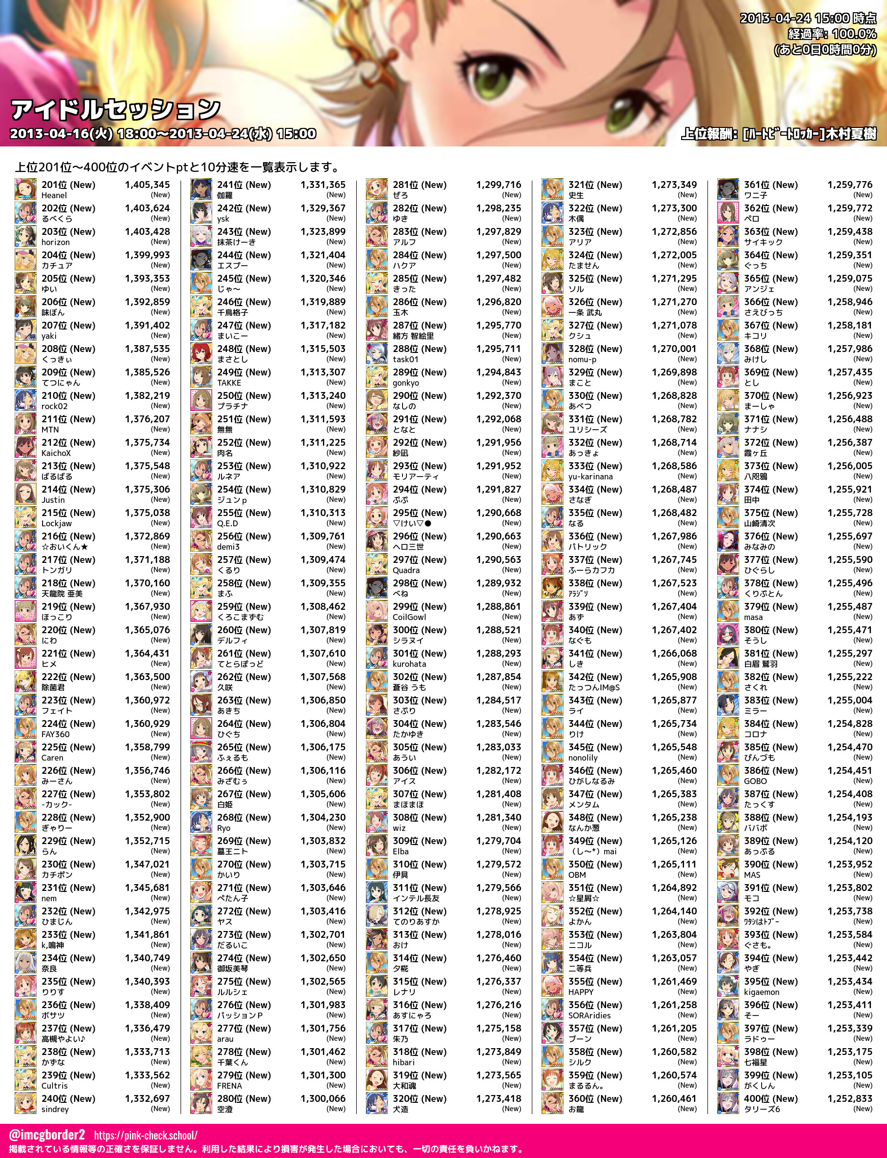 上位プロデューサースコア (2013-04-24 15:00 時点)