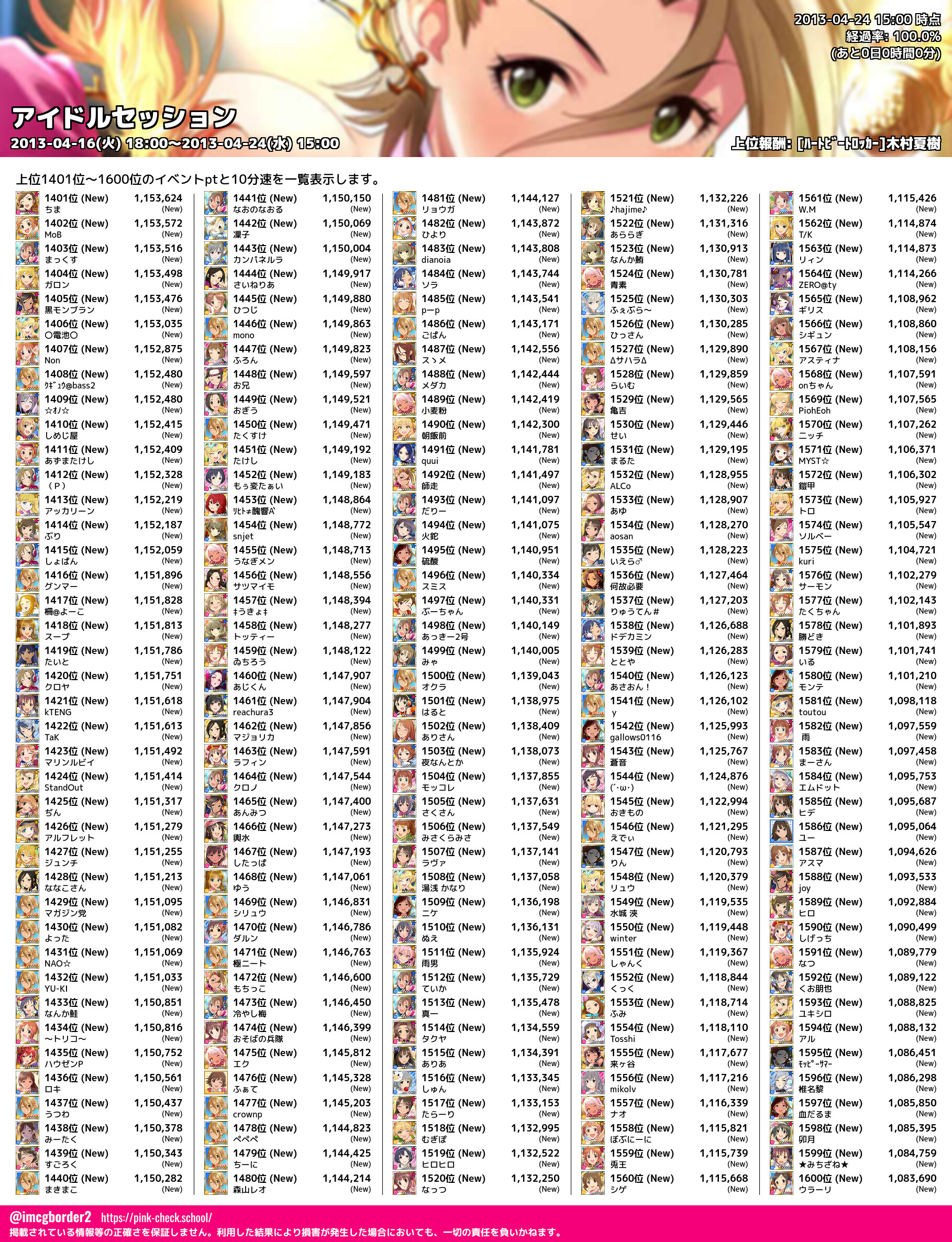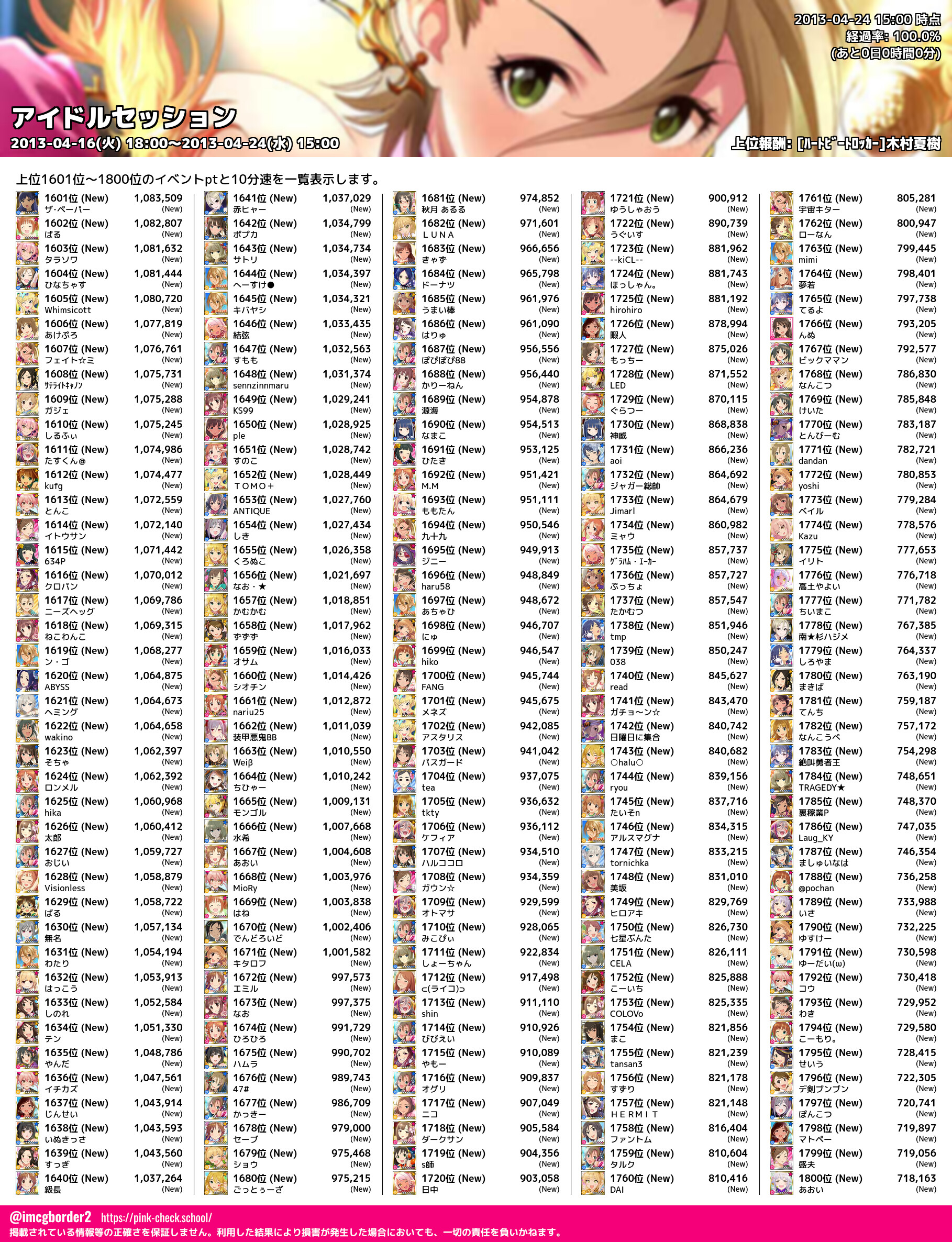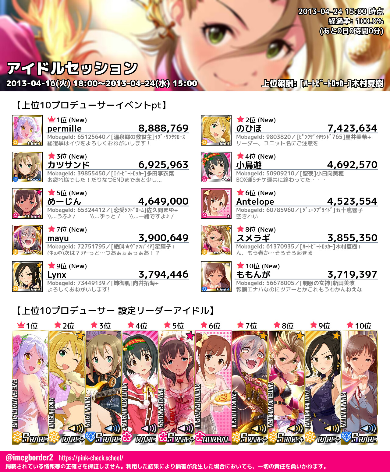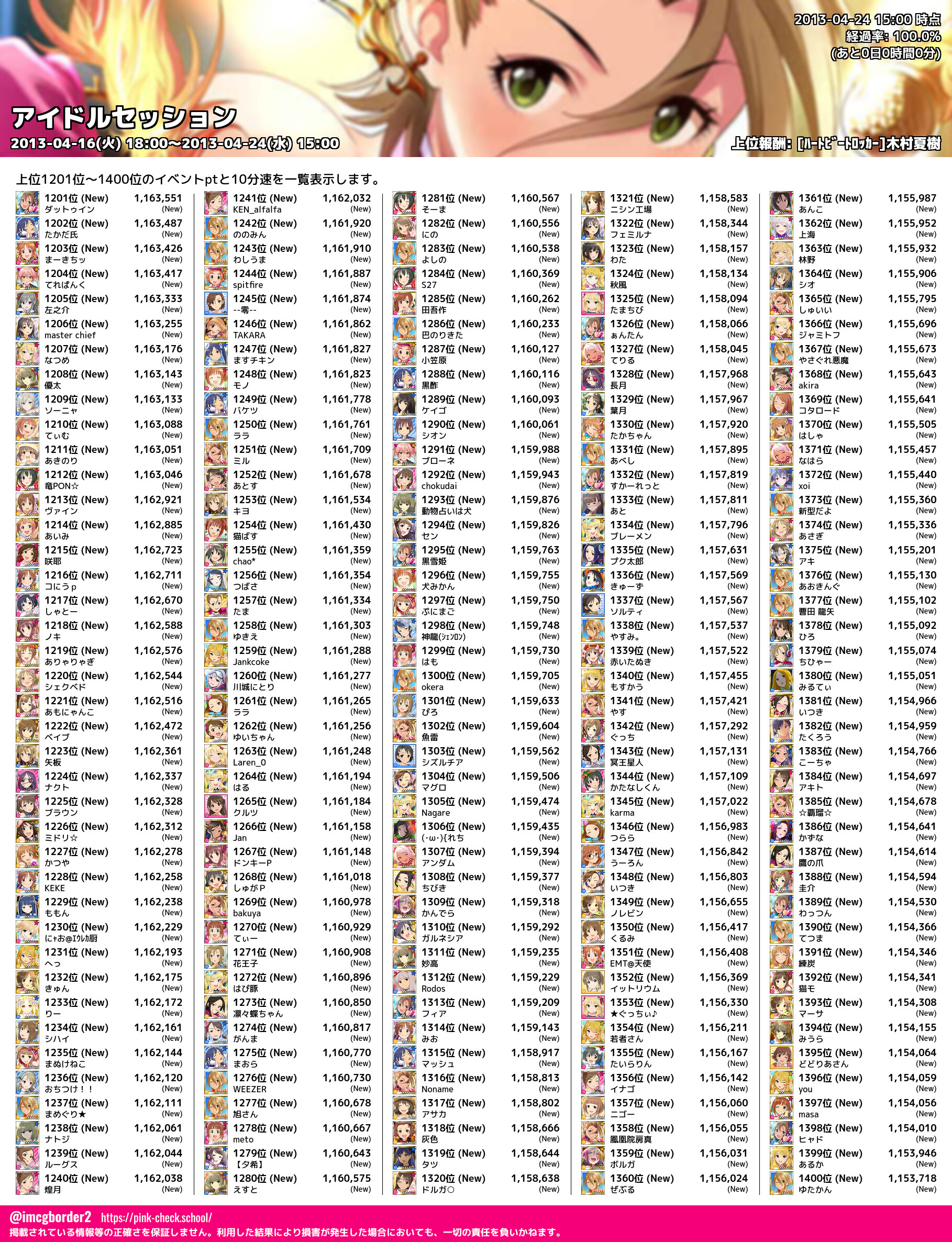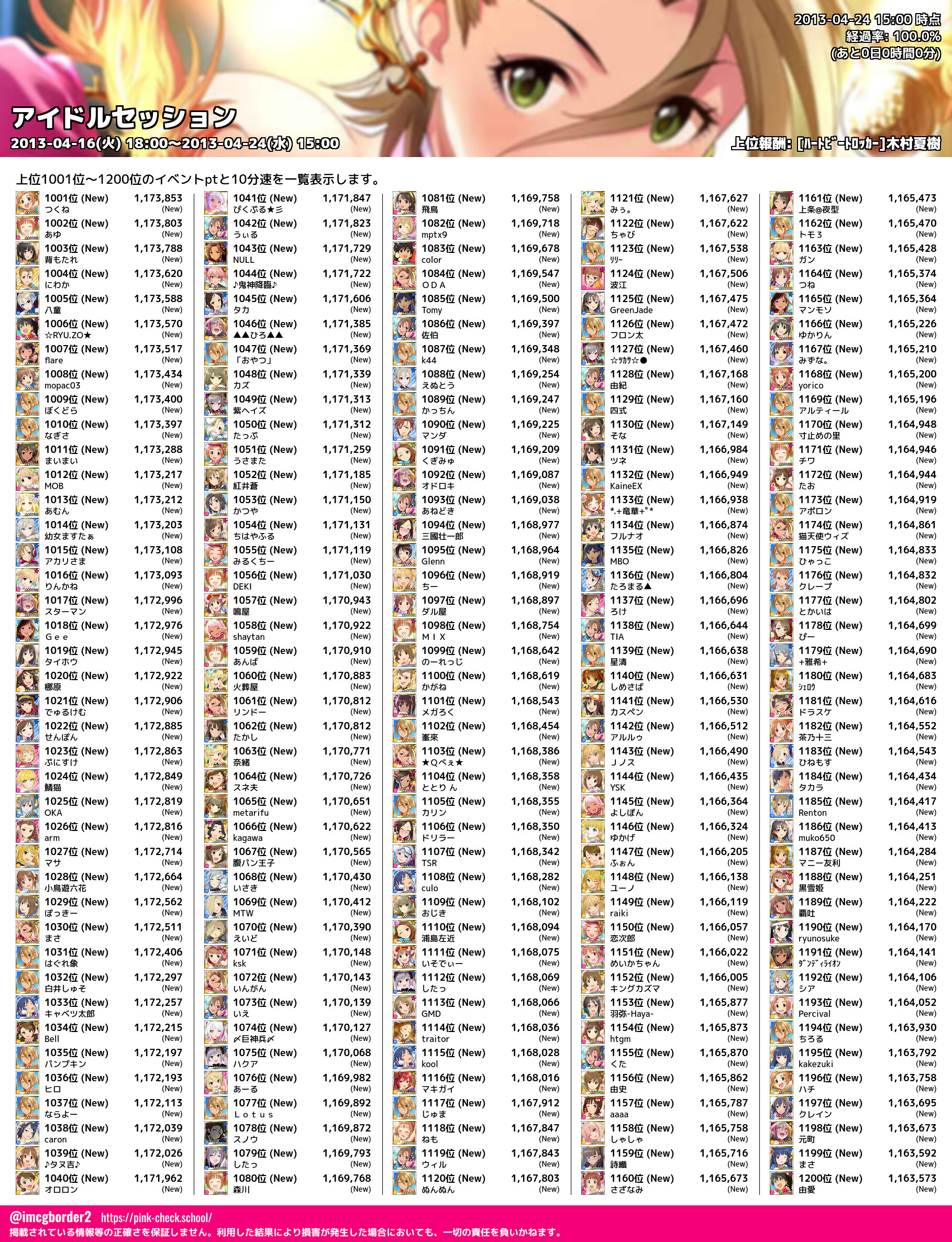 上位プロデューサースコア (2013-04-24 15:00 時点)
