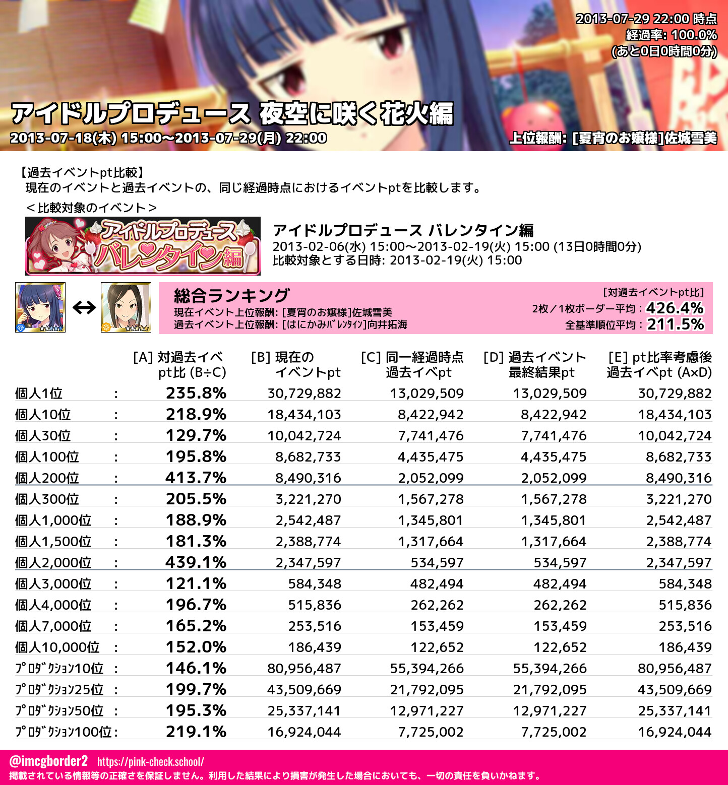 アイドルプロデュース 夜空に咲く花火編 結果集計完了