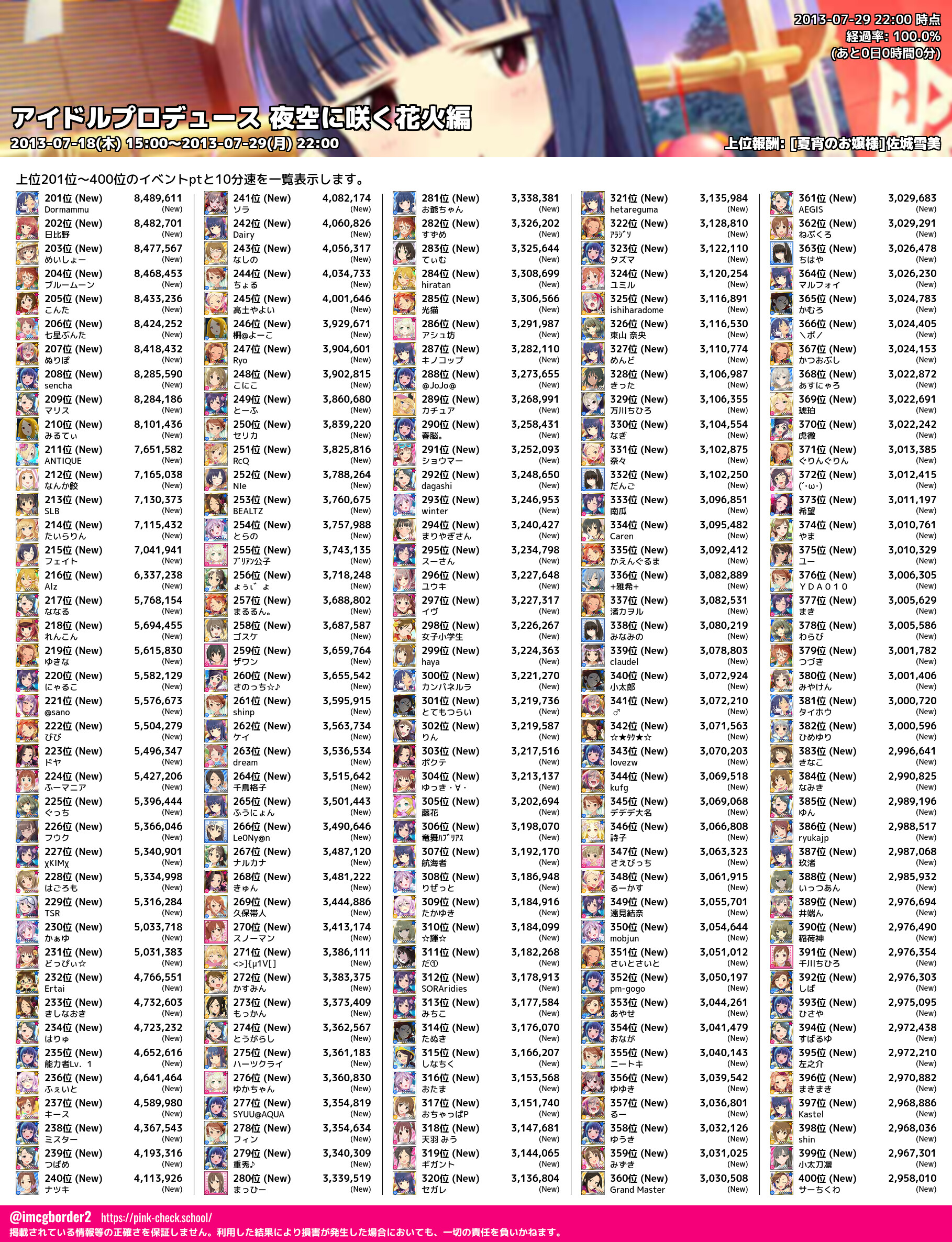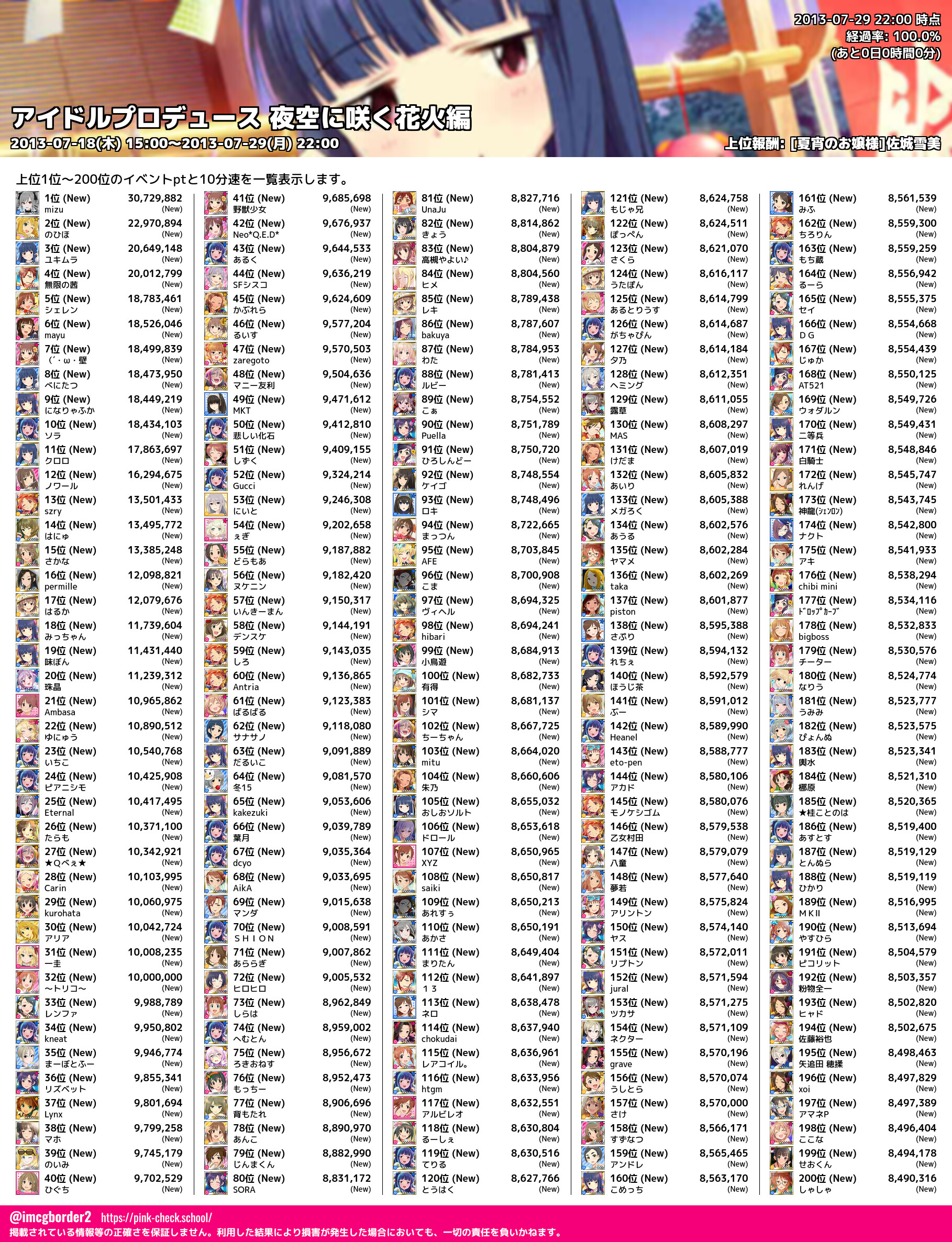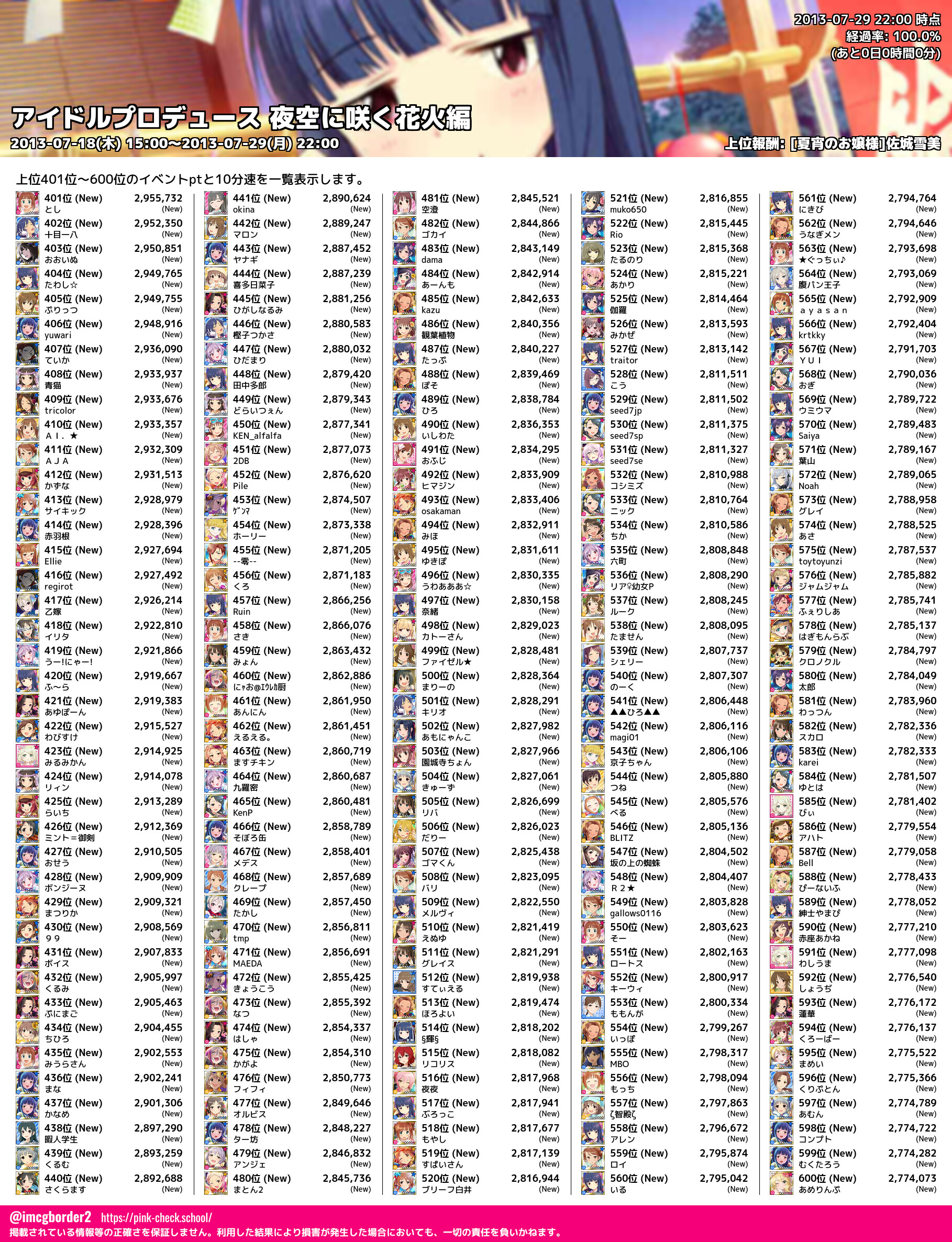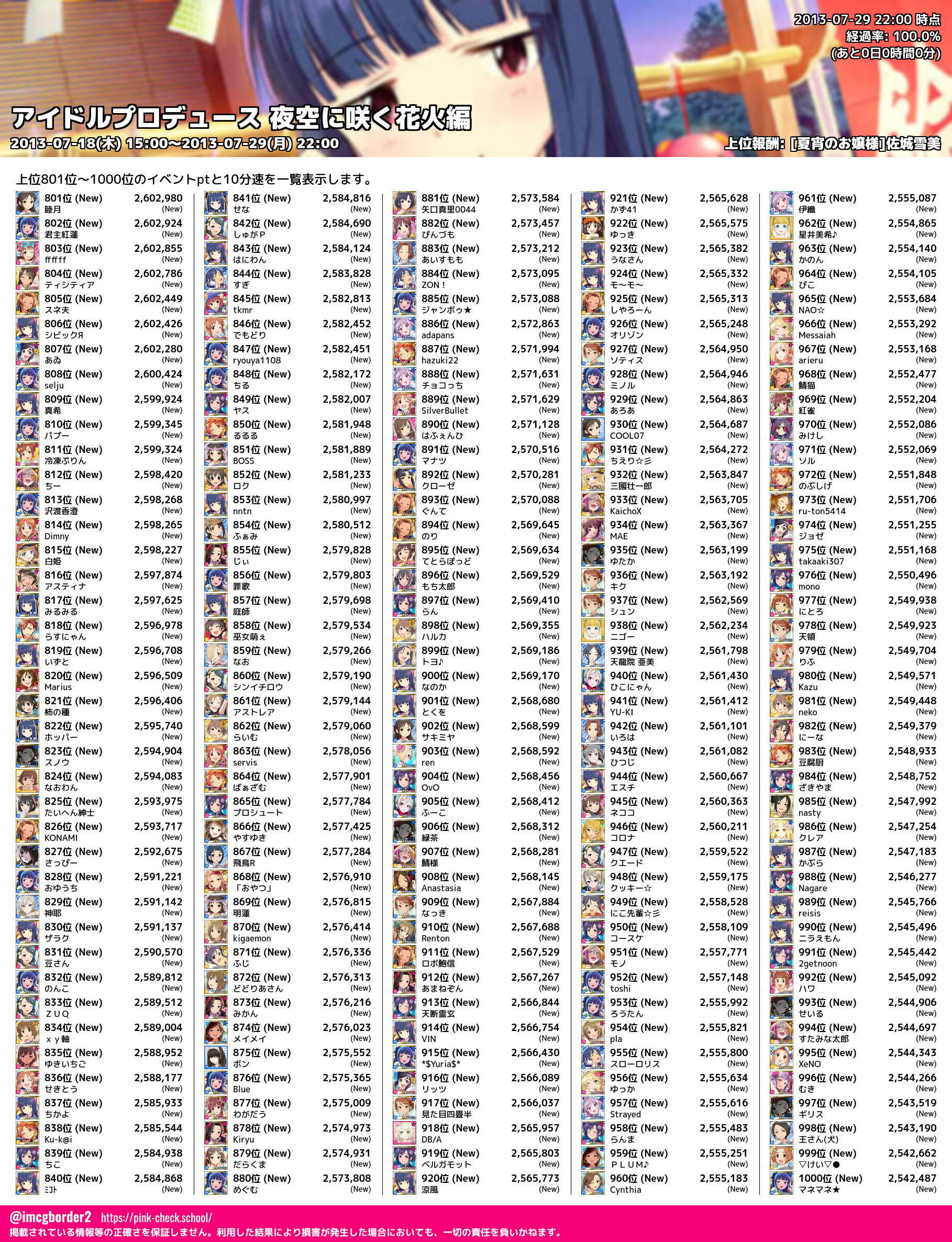上位プロデューサースコア (2013-07-29 22:00 時点)