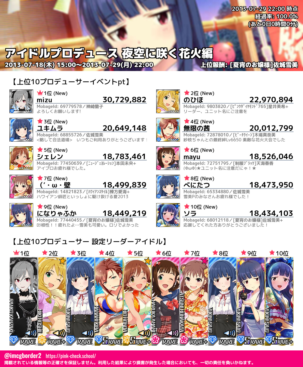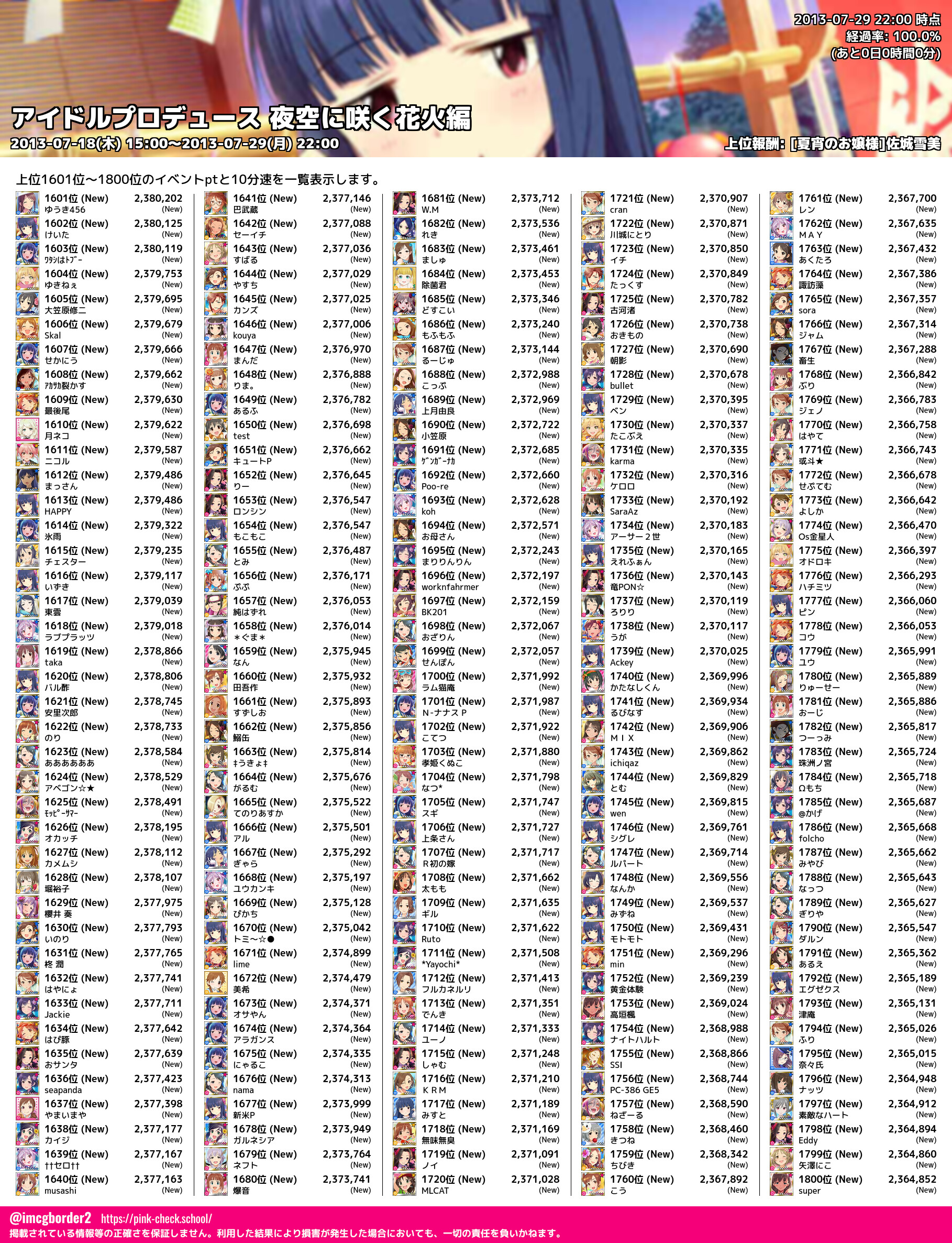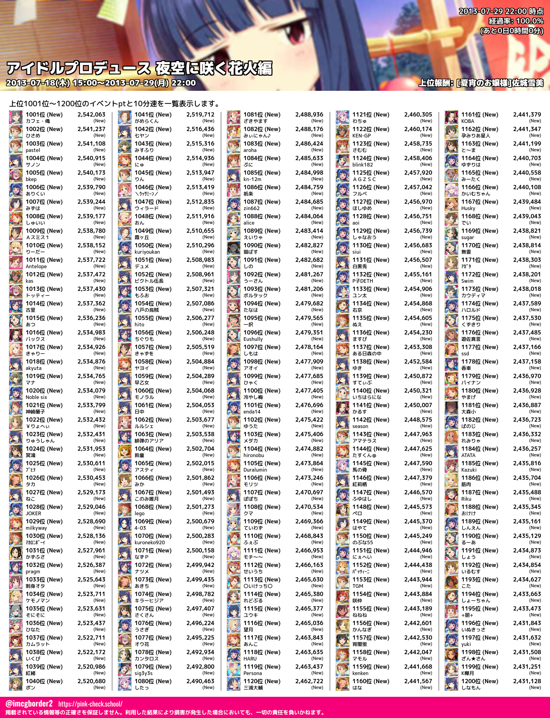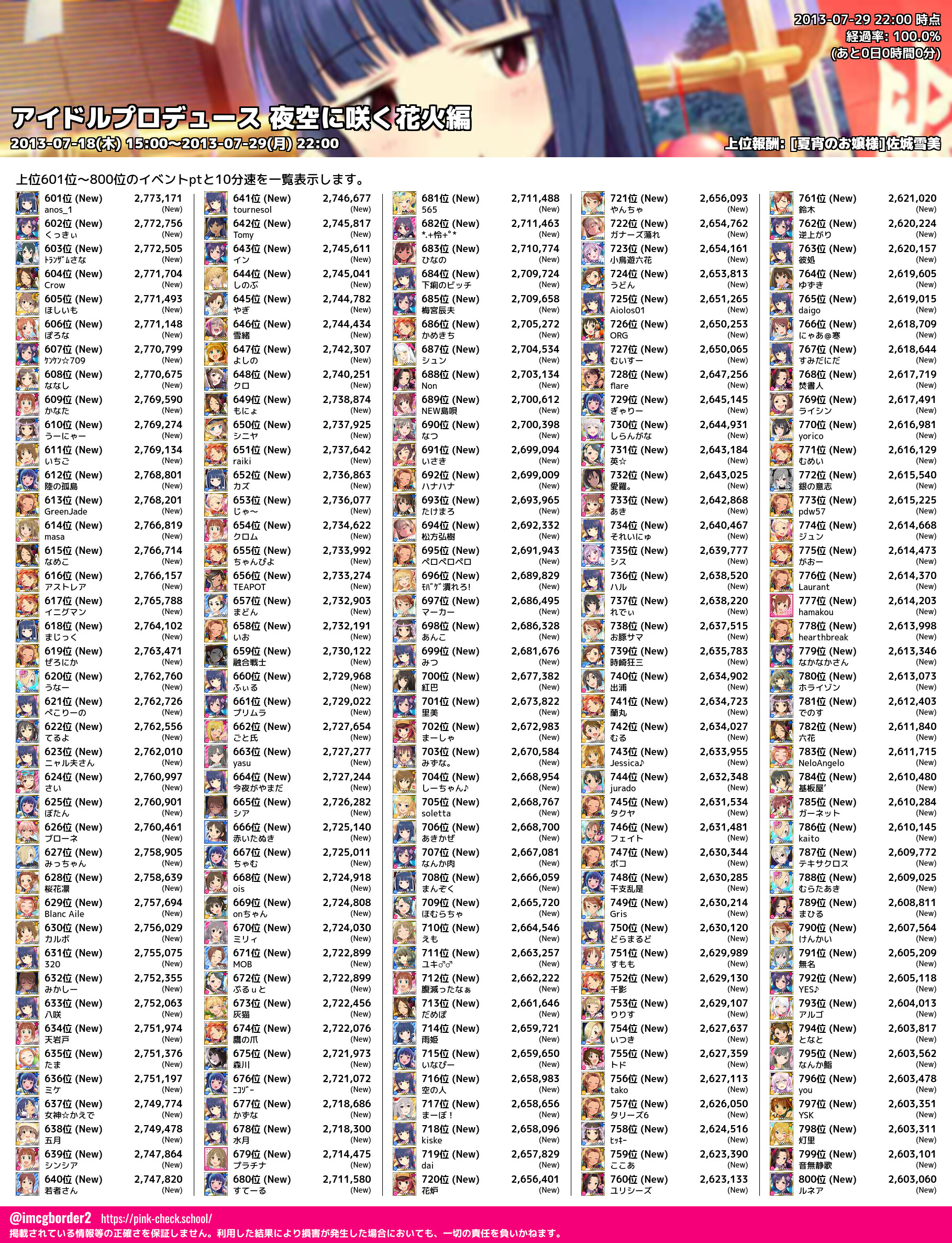上位プロデューサースコア (2013-07-29 22:00 時点)