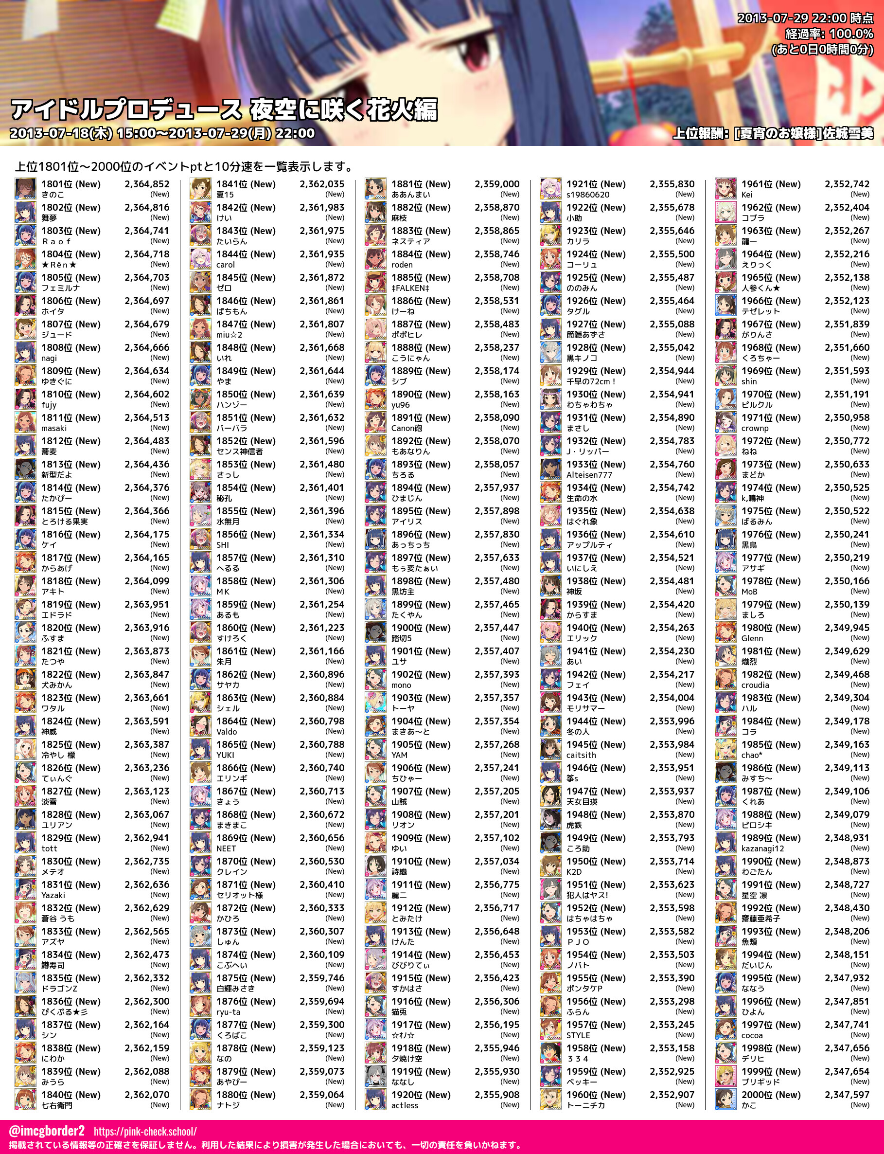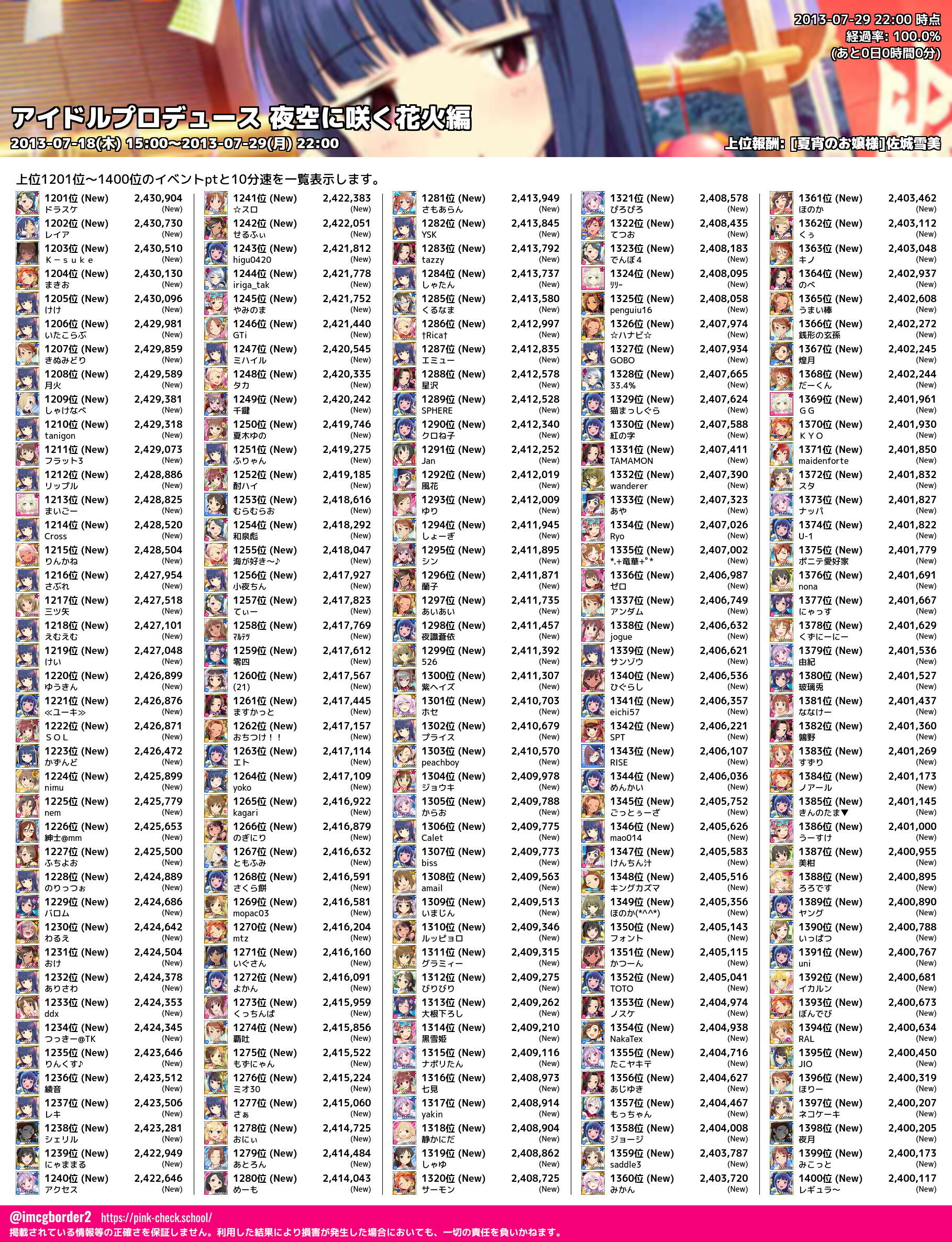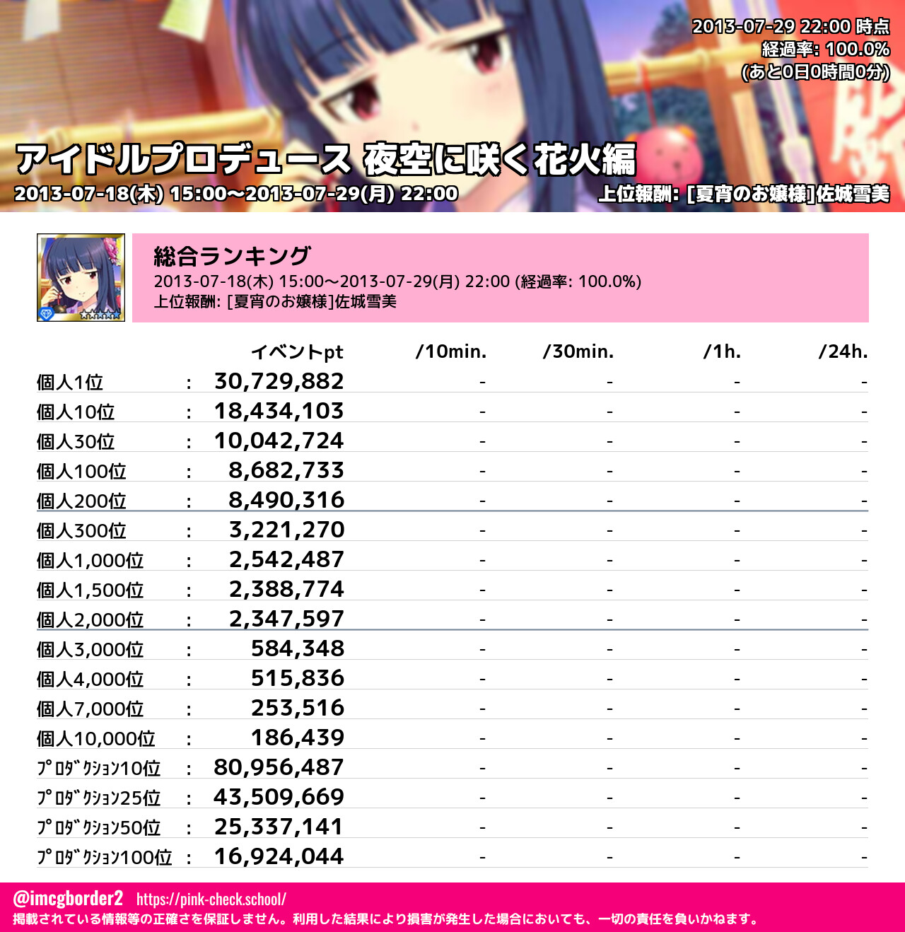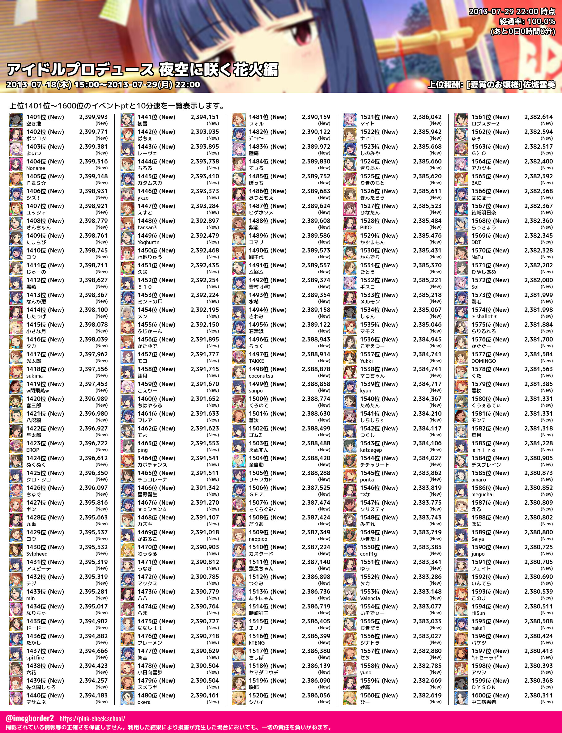 上位プロデューサースコア (2013-07-29 22:00 時点)