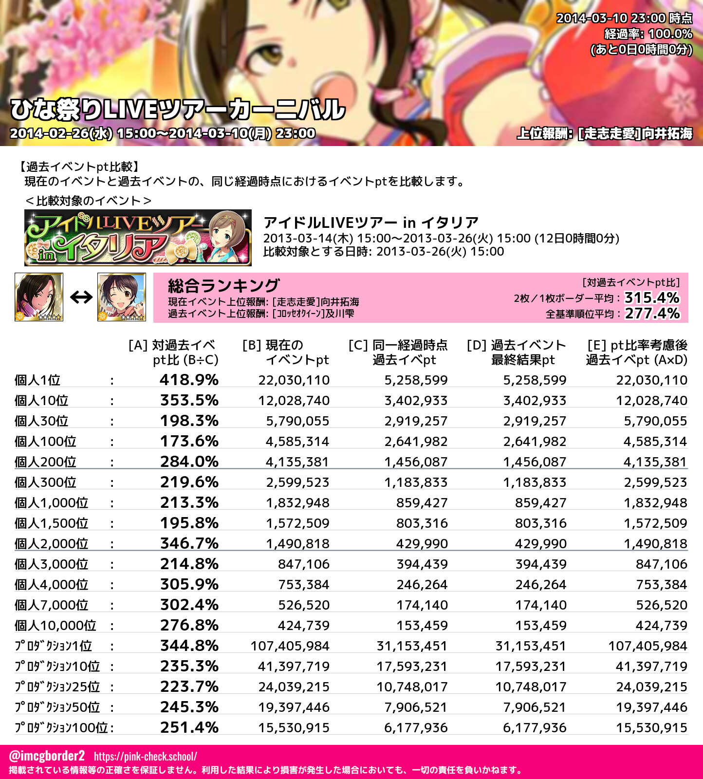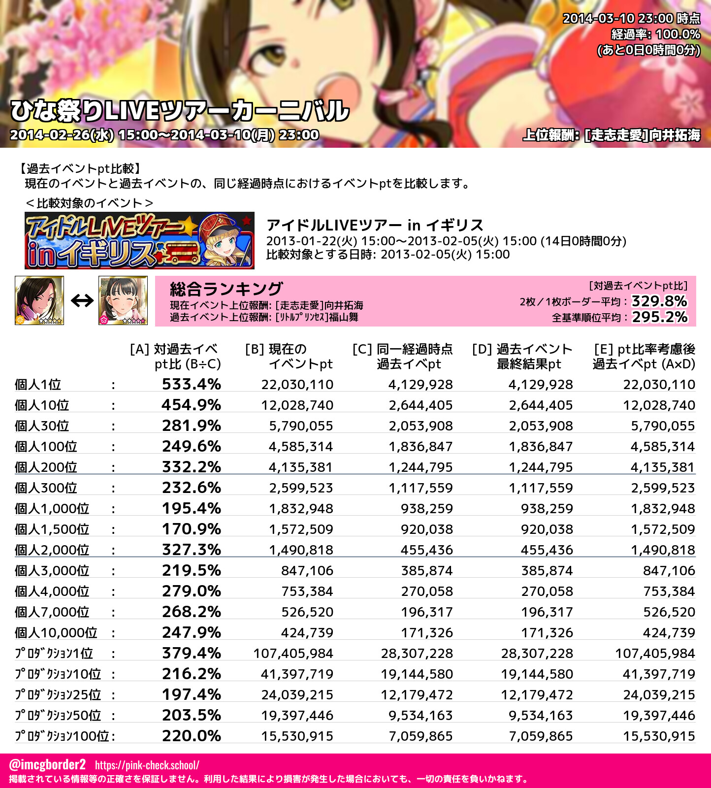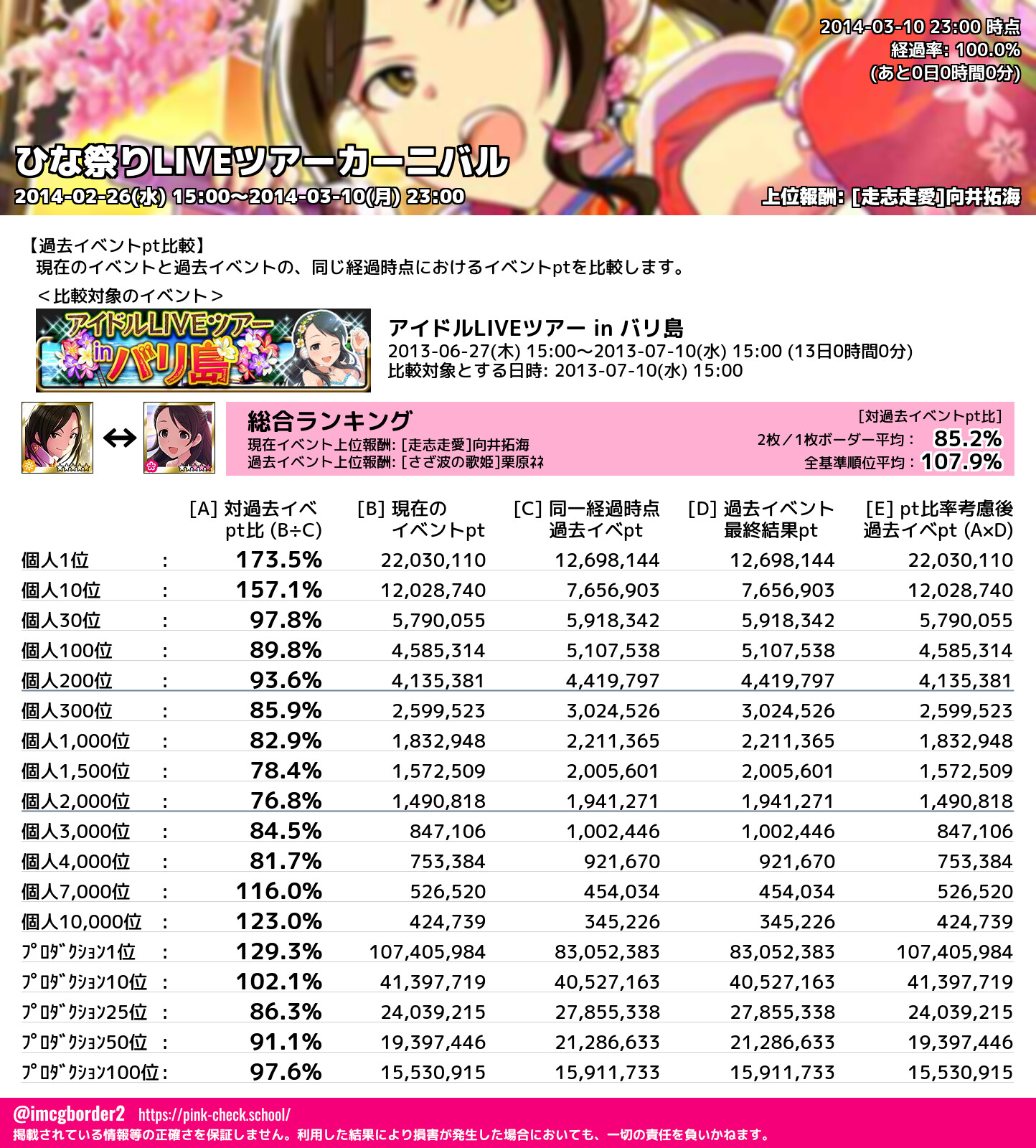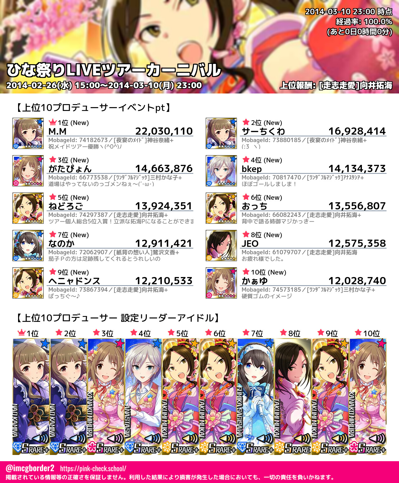 ひな祭りLIVEツアーカーニバル 結果集計完了