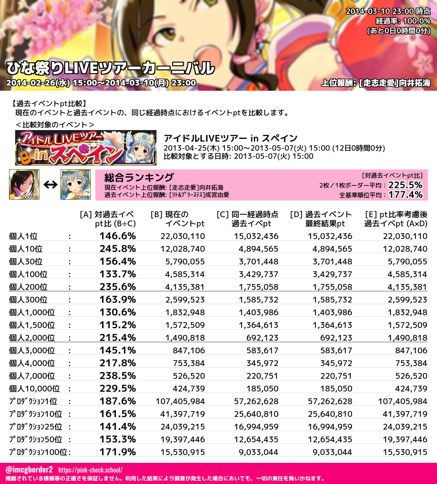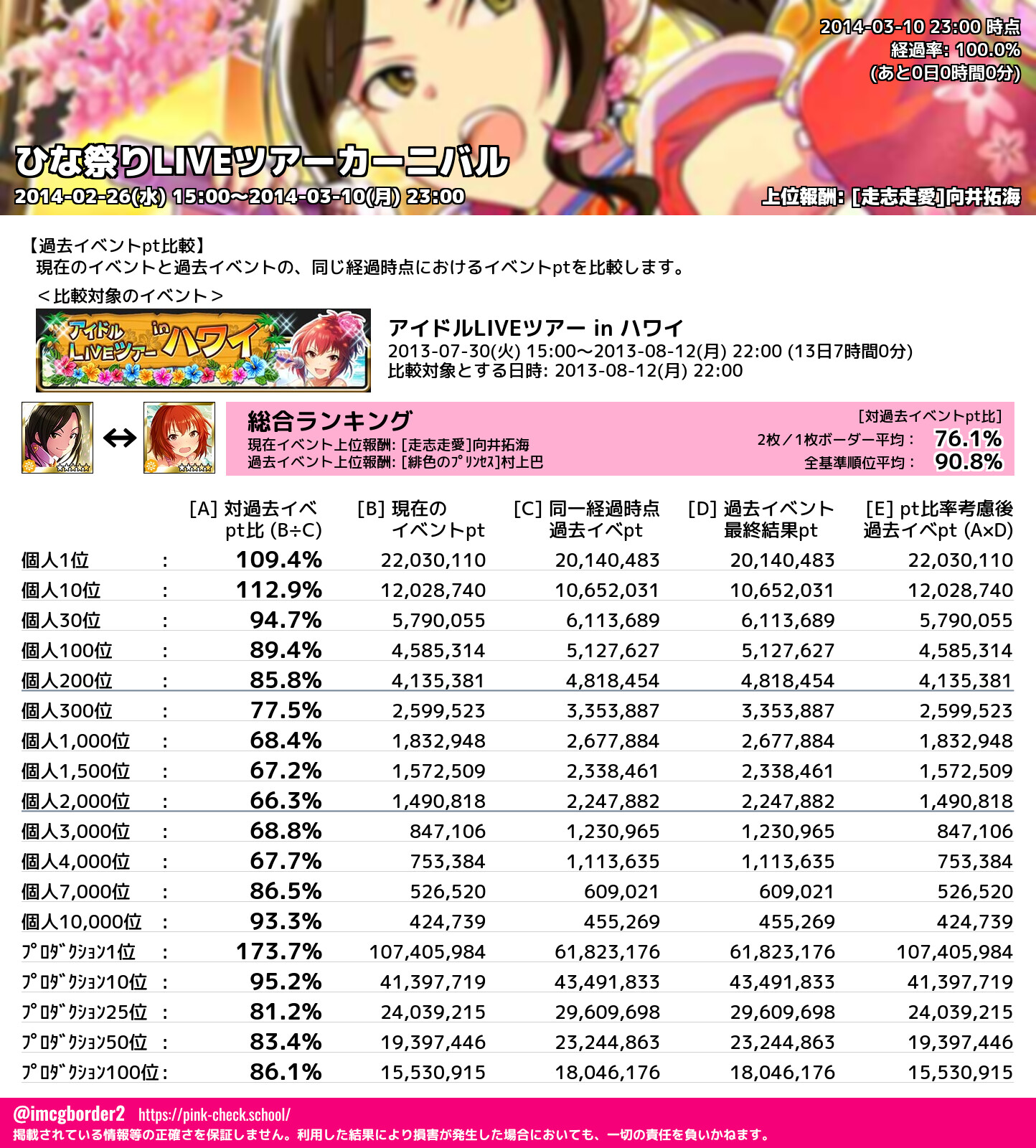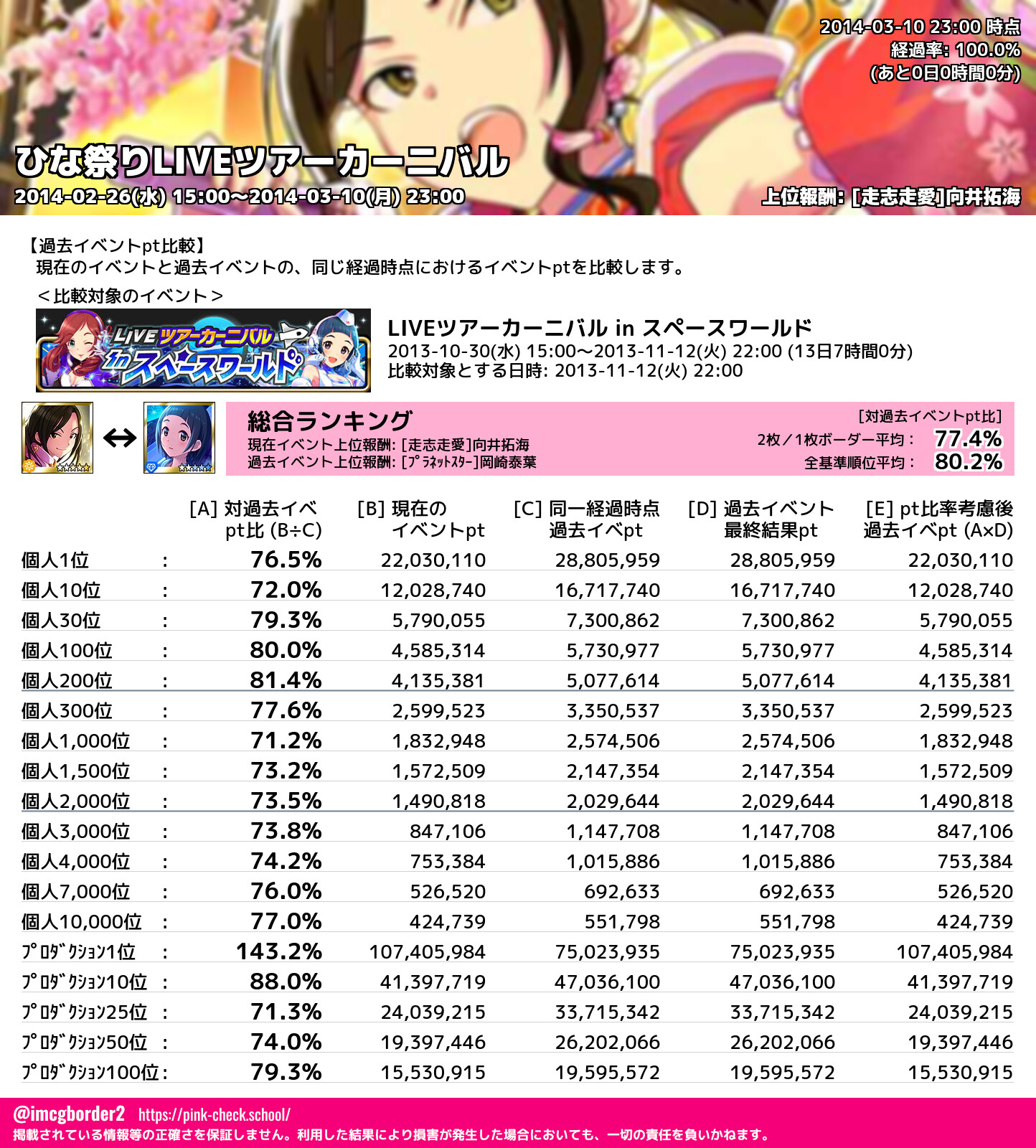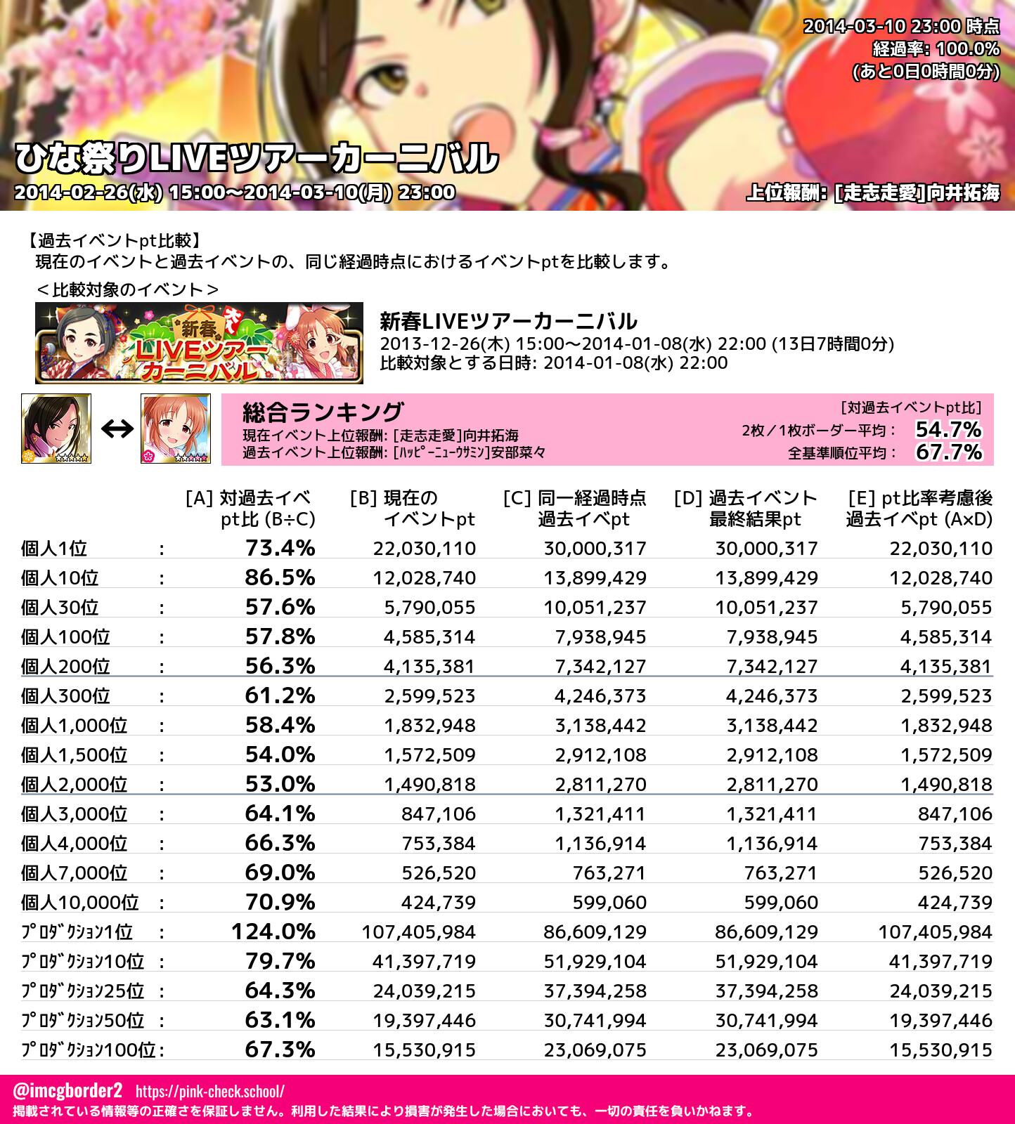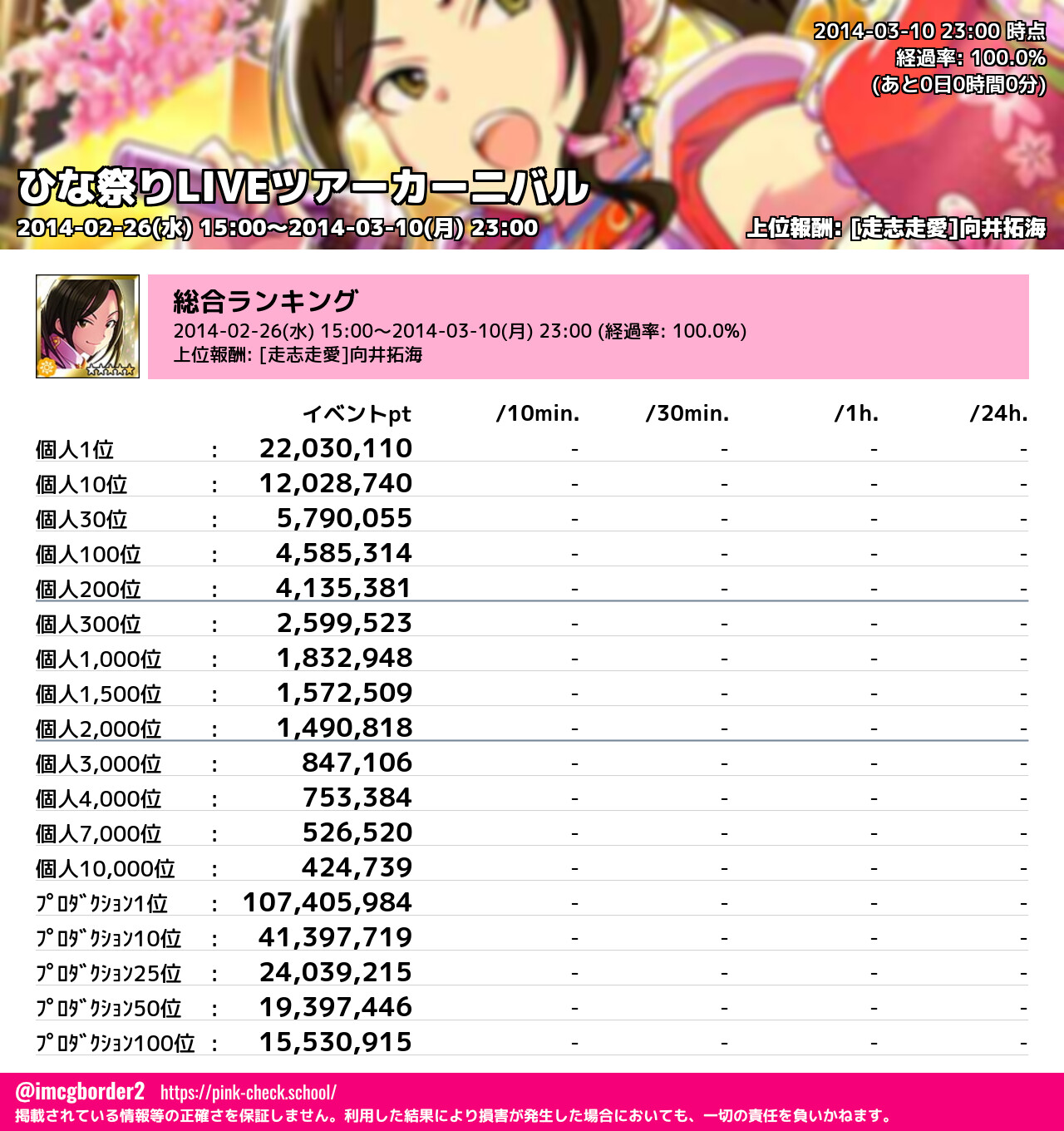 ひな祭りLIVEツアーカーニバル 結果集計完了