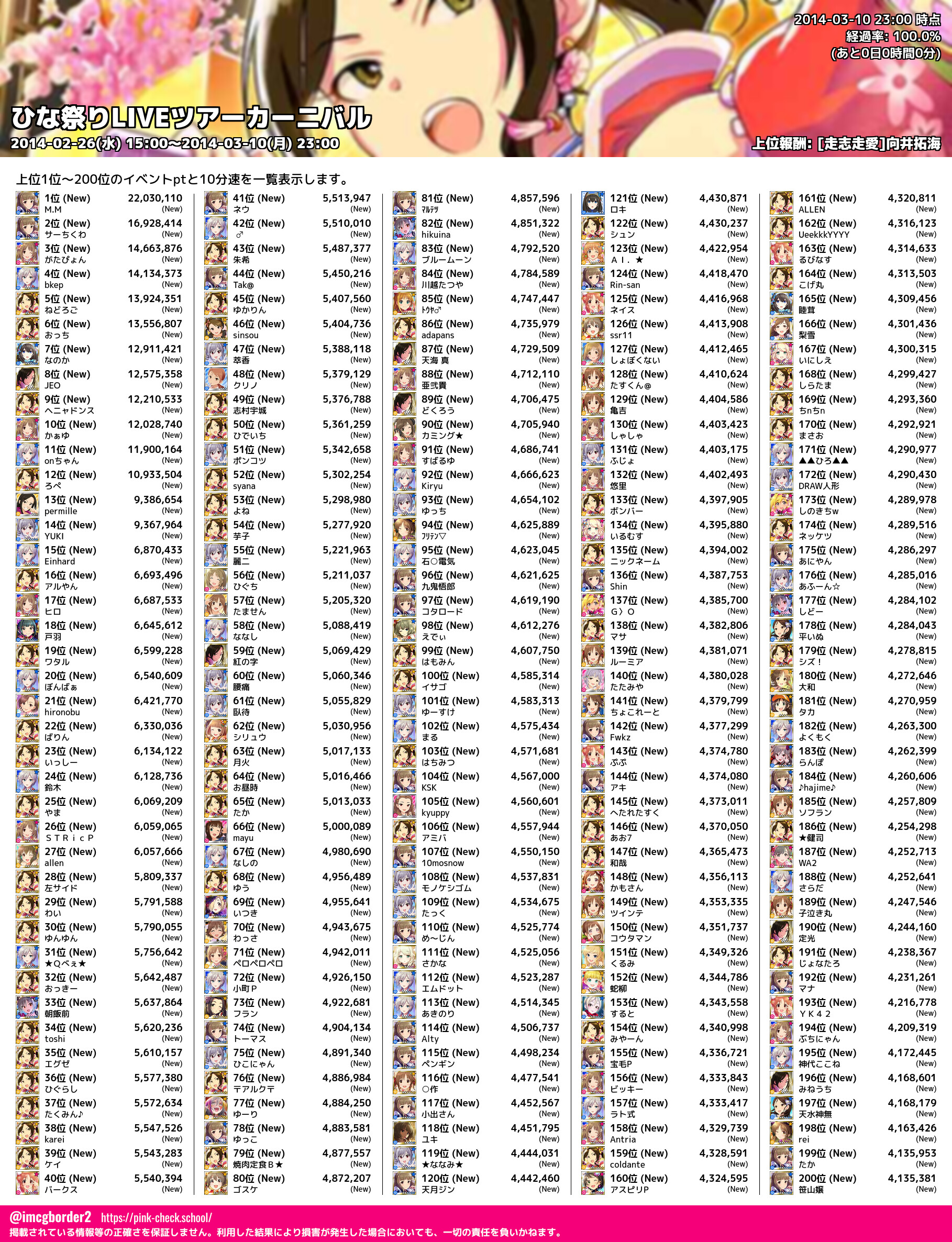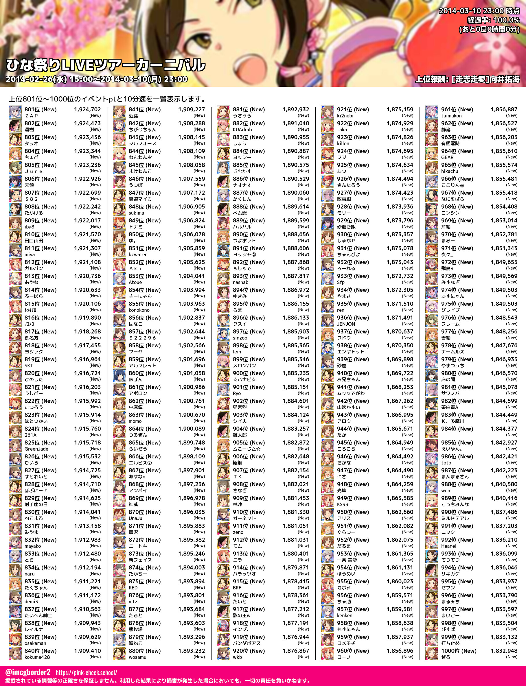 上位プロデューサースコア (2014-03-10 23:00 時点)