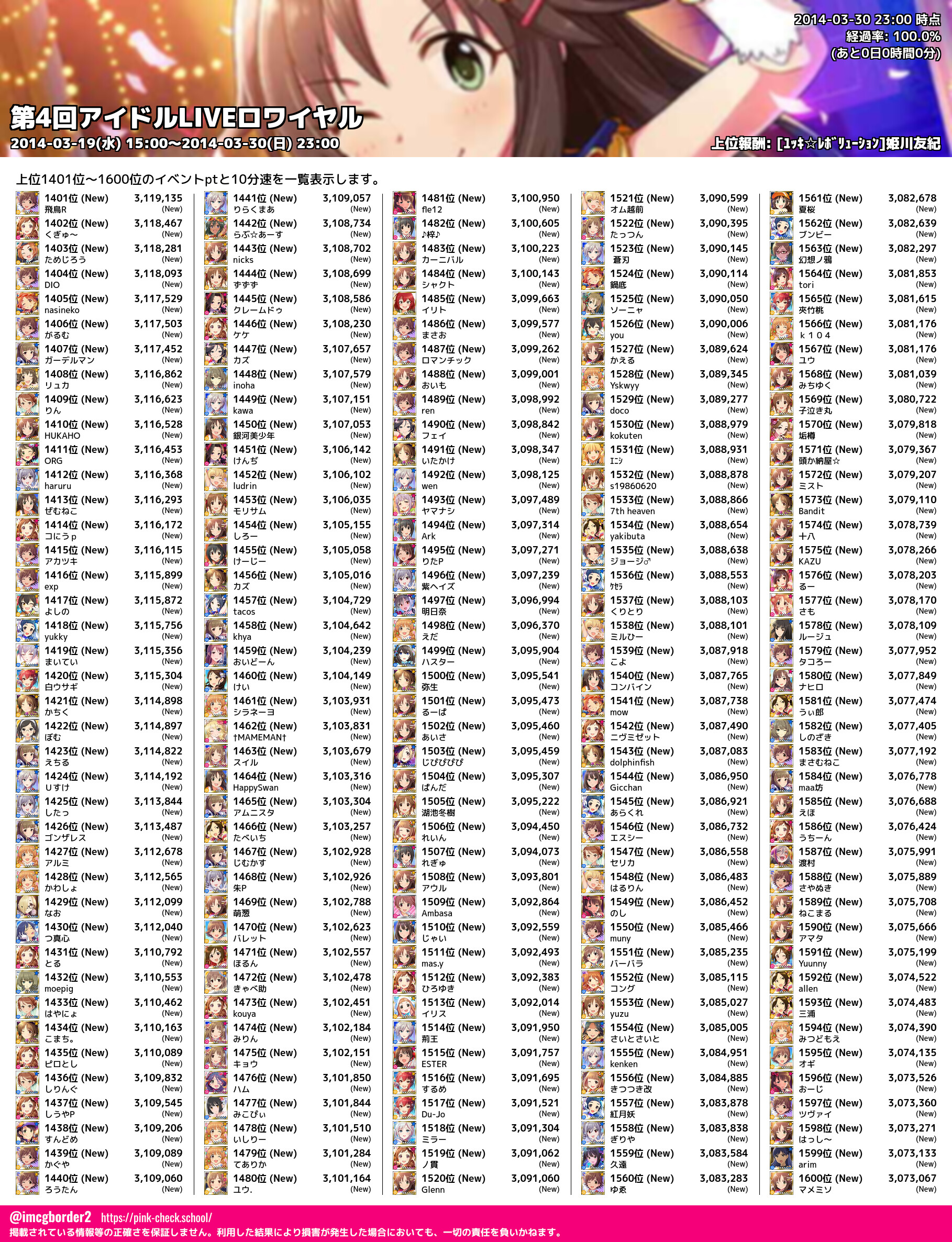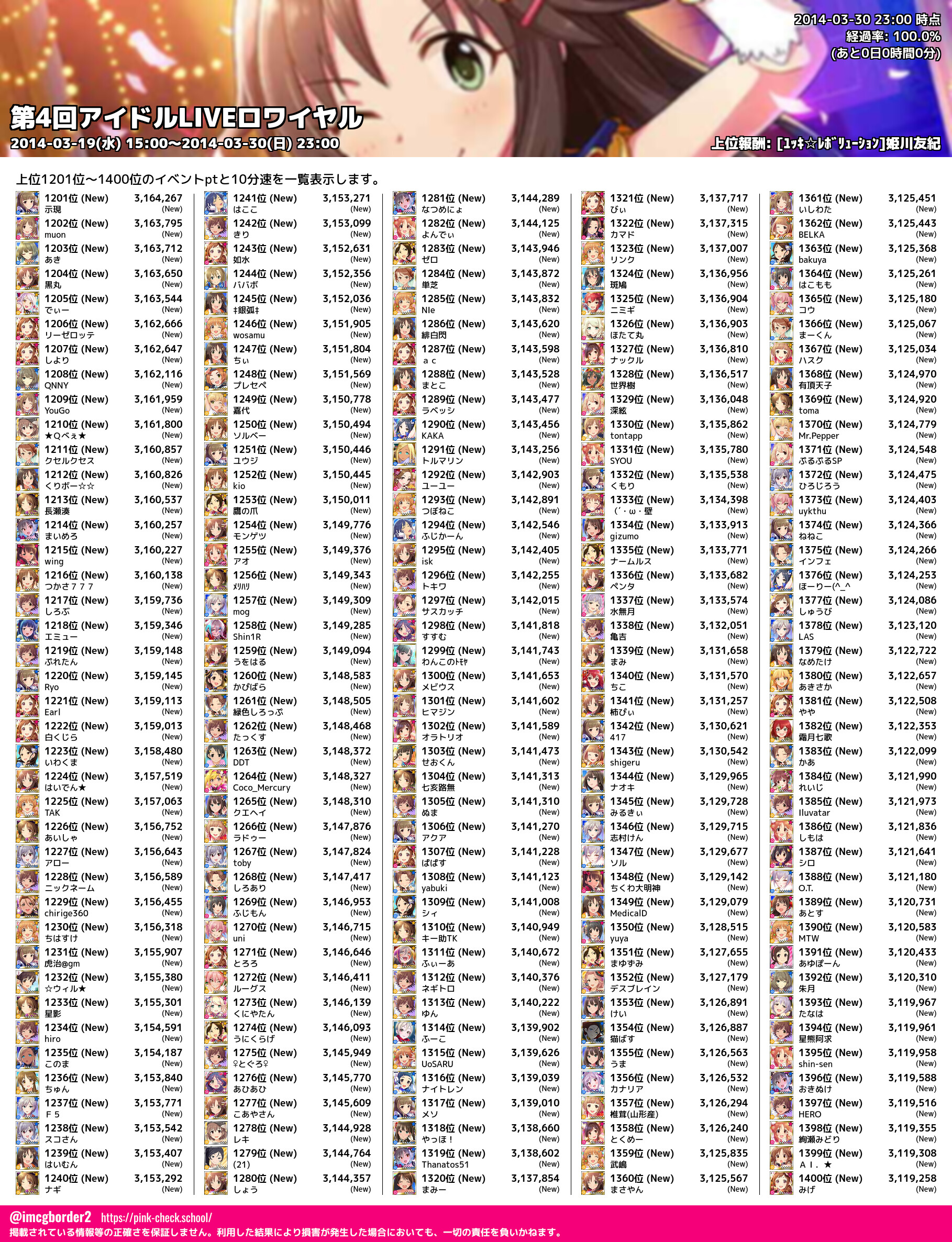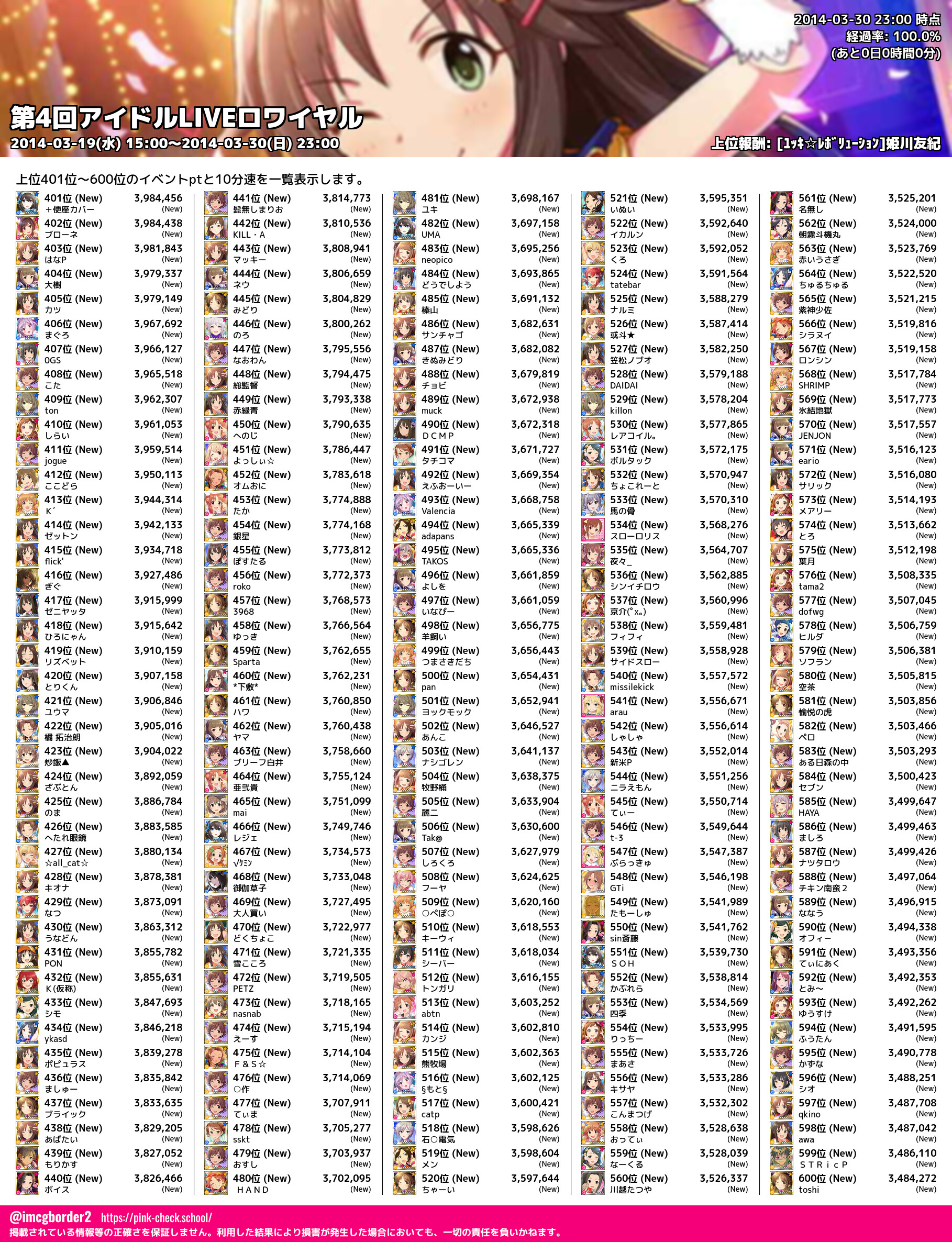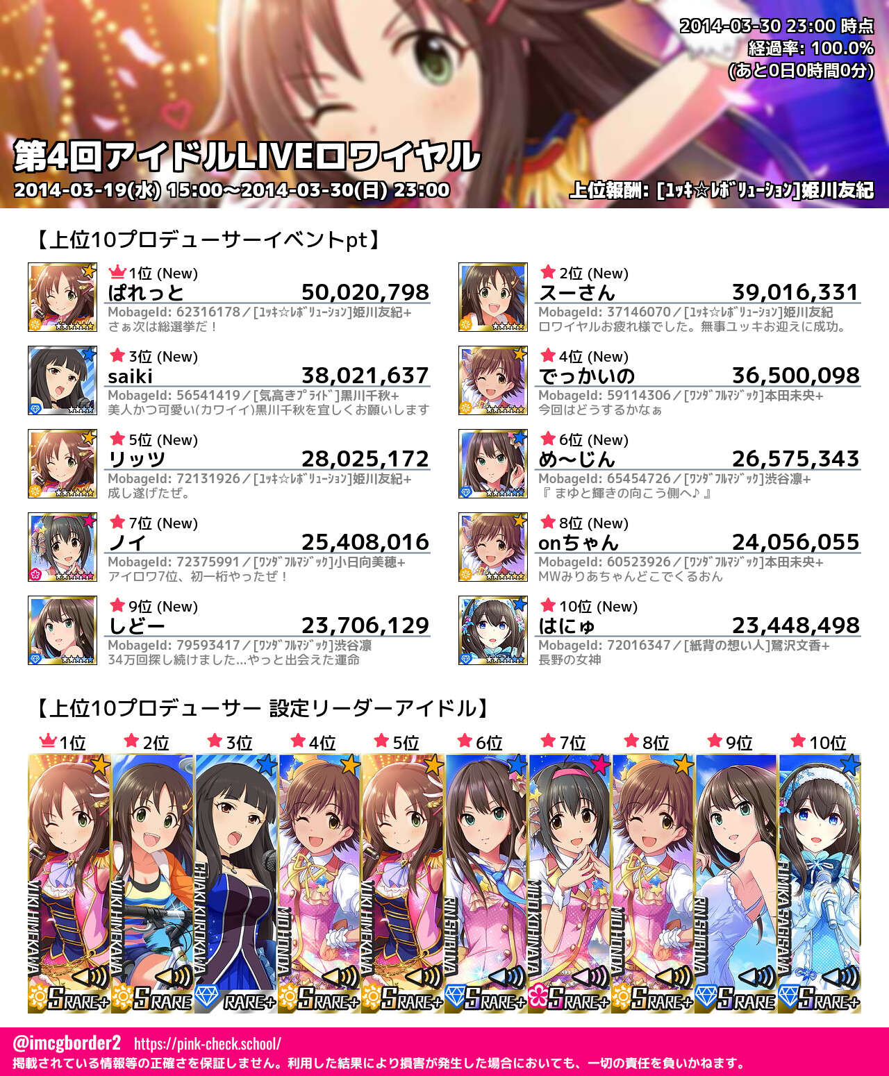 上位プロデューサースコア (2014-03-30 23:00 時点)