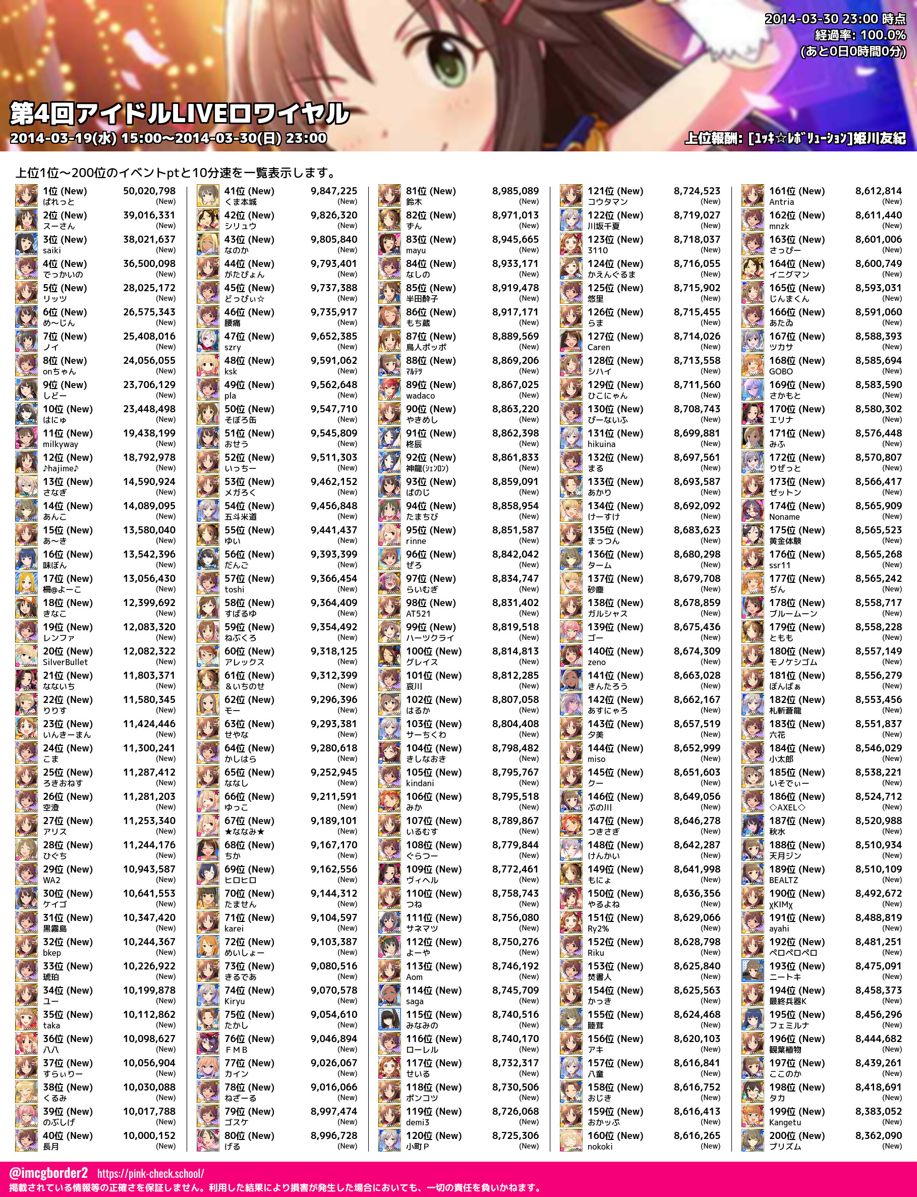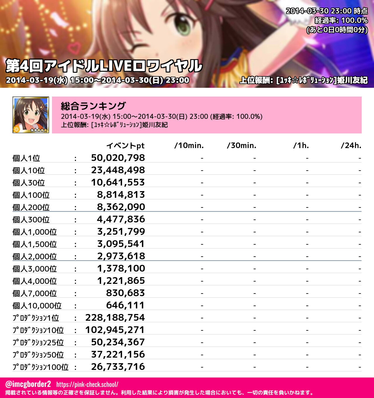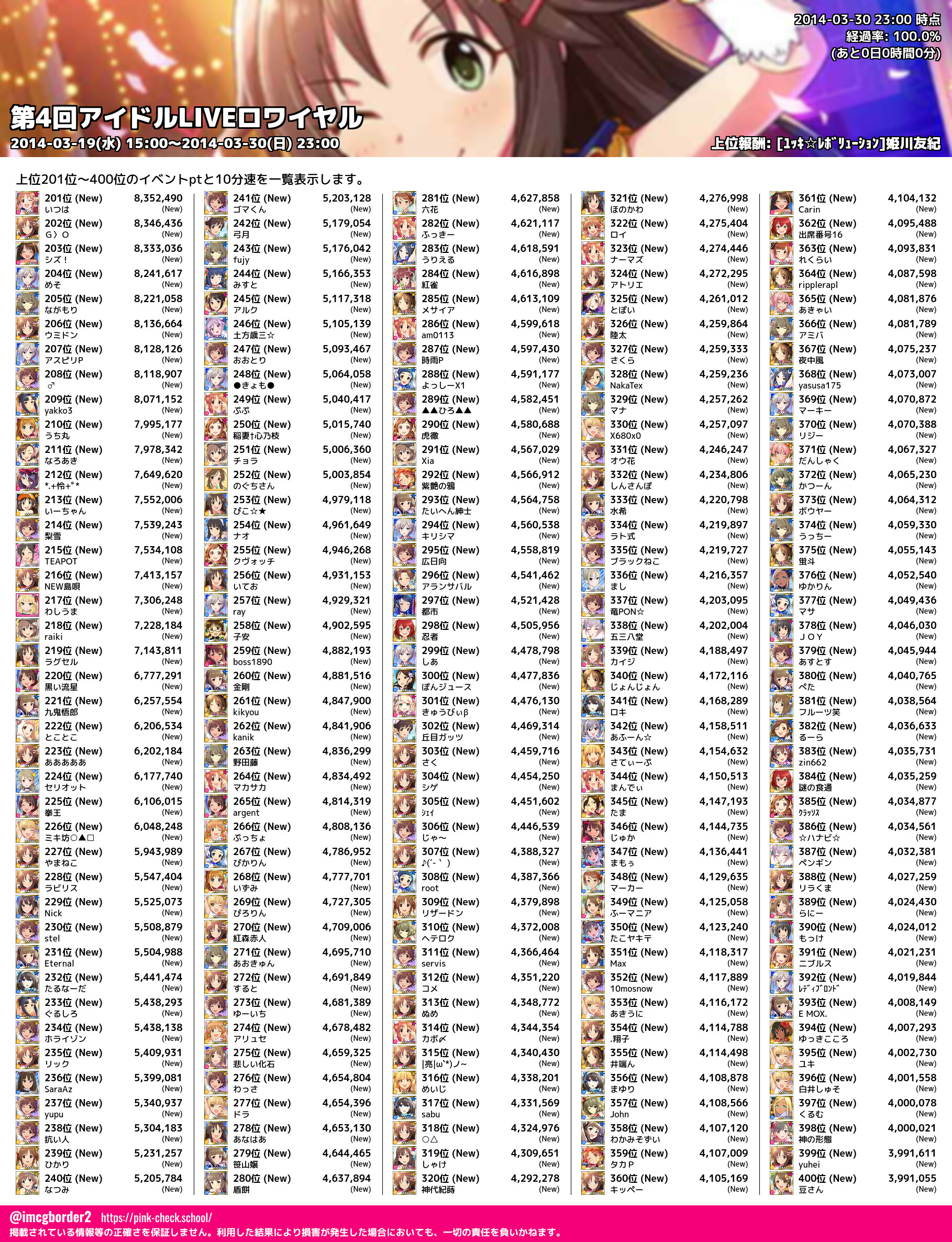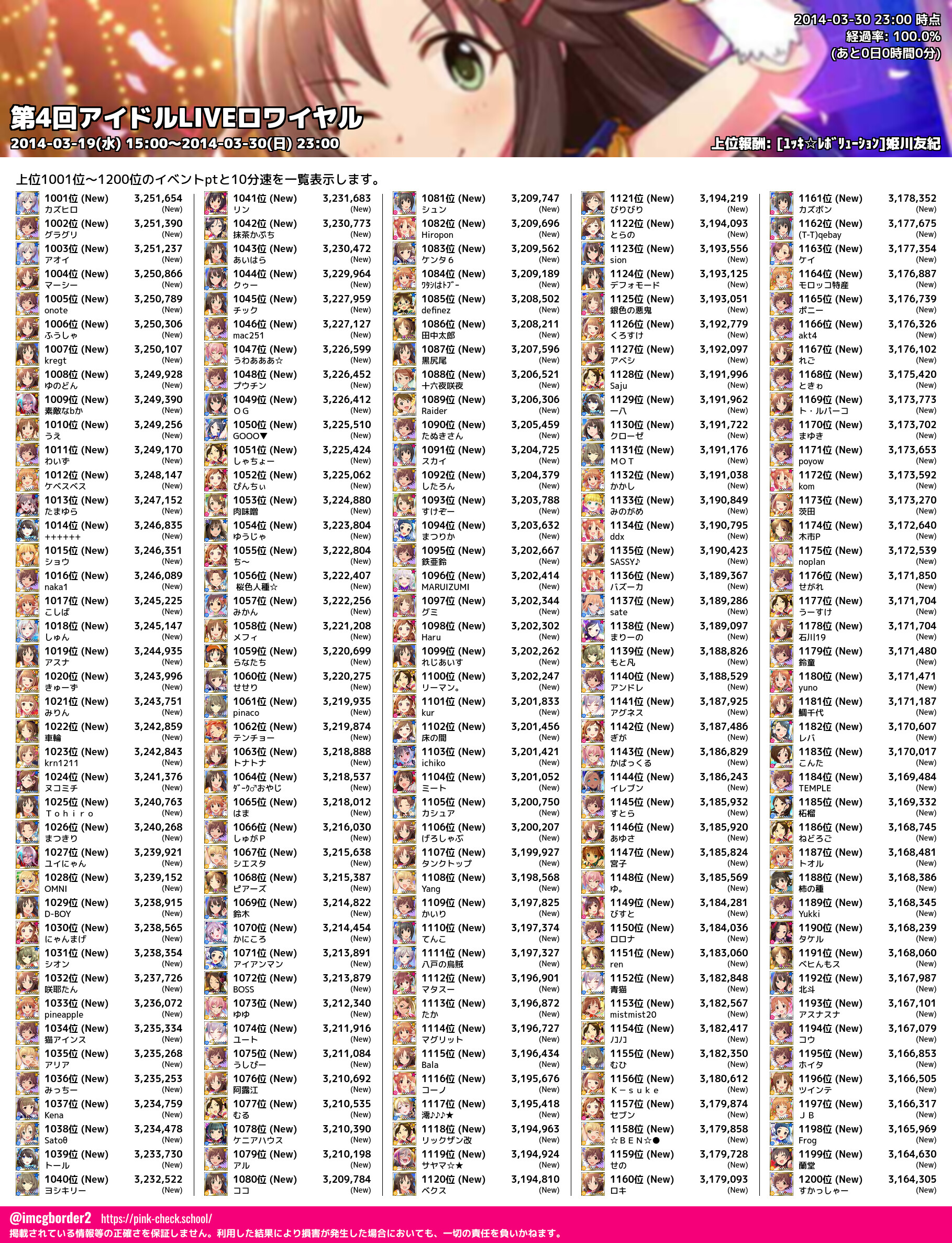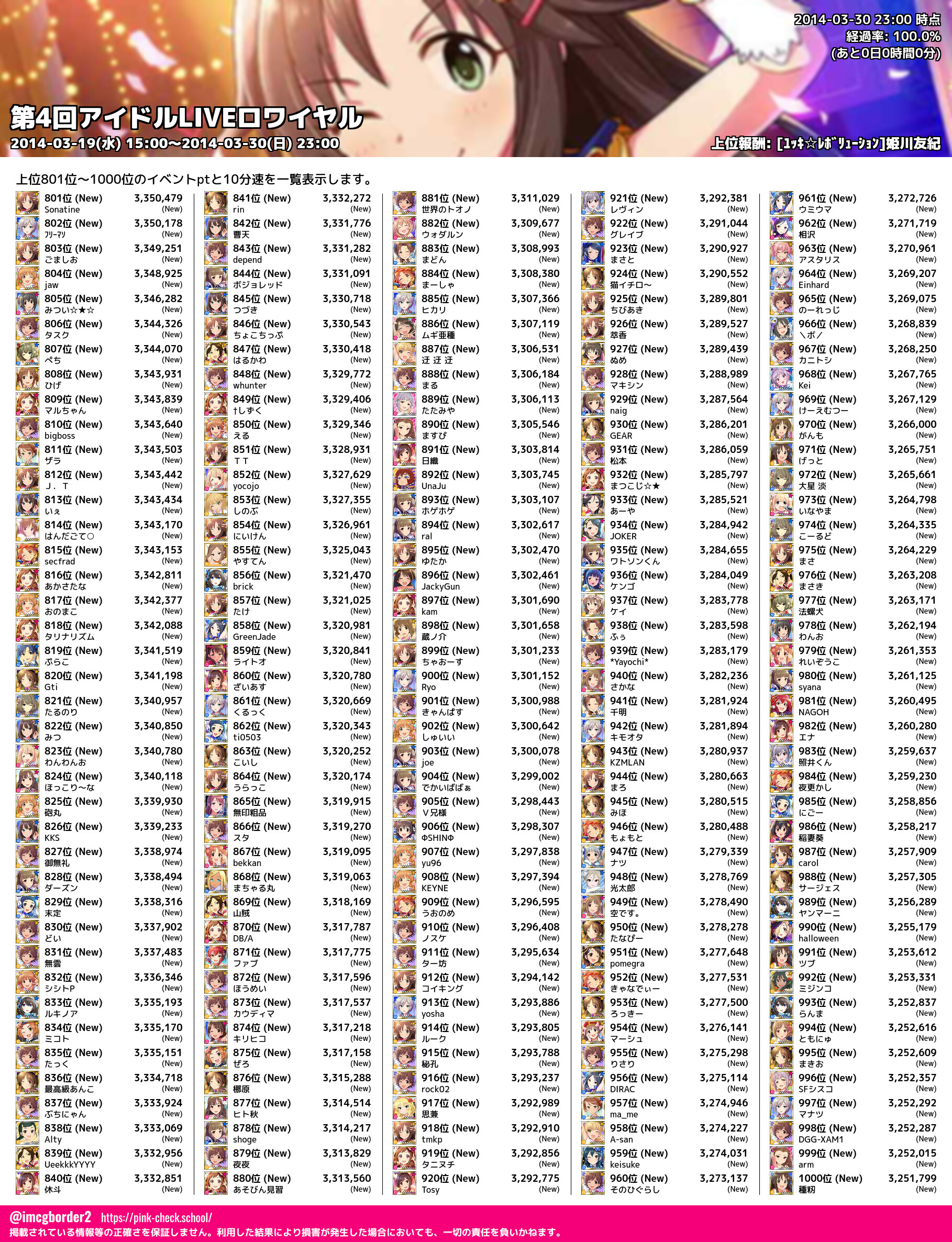 上位プロデューサースコア (2014-03-30 23:00 時点)