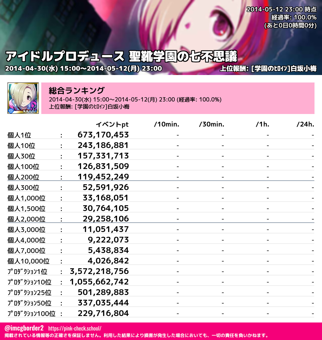 | 開催期間 | 2014-04-30(水) 15:00~2014-05-12(月) 23:00 |