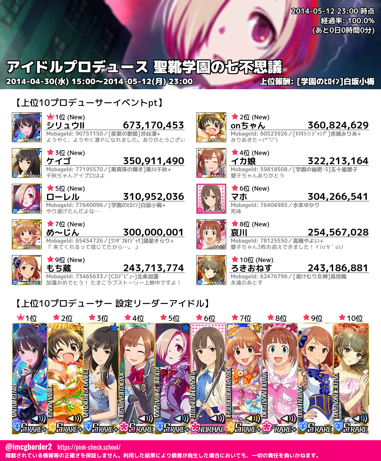 上位プロデューサースコア (2014-05-12 23:00 時点)