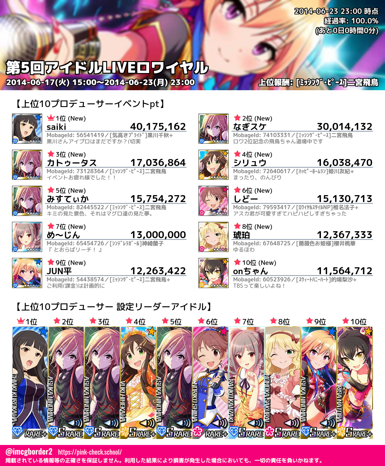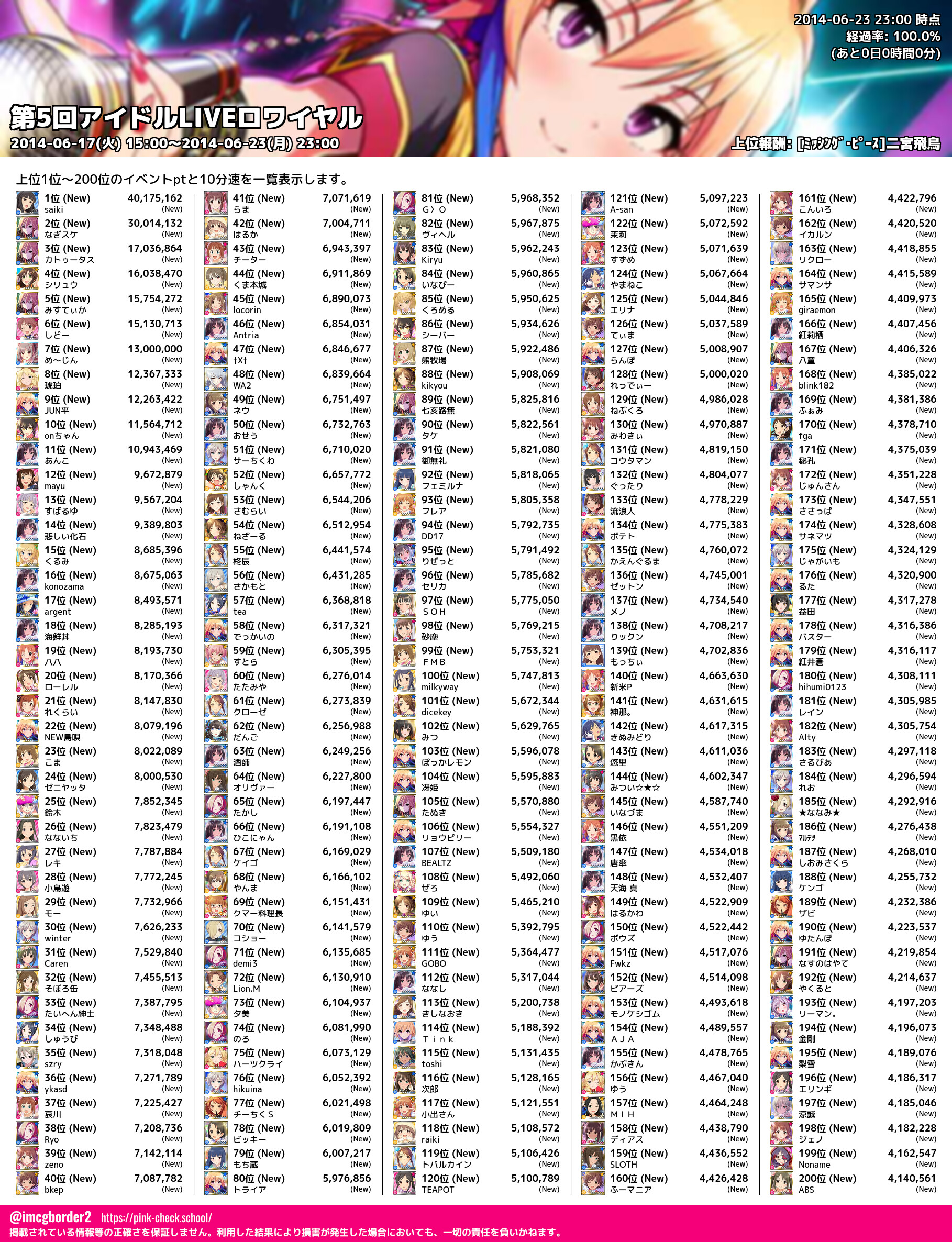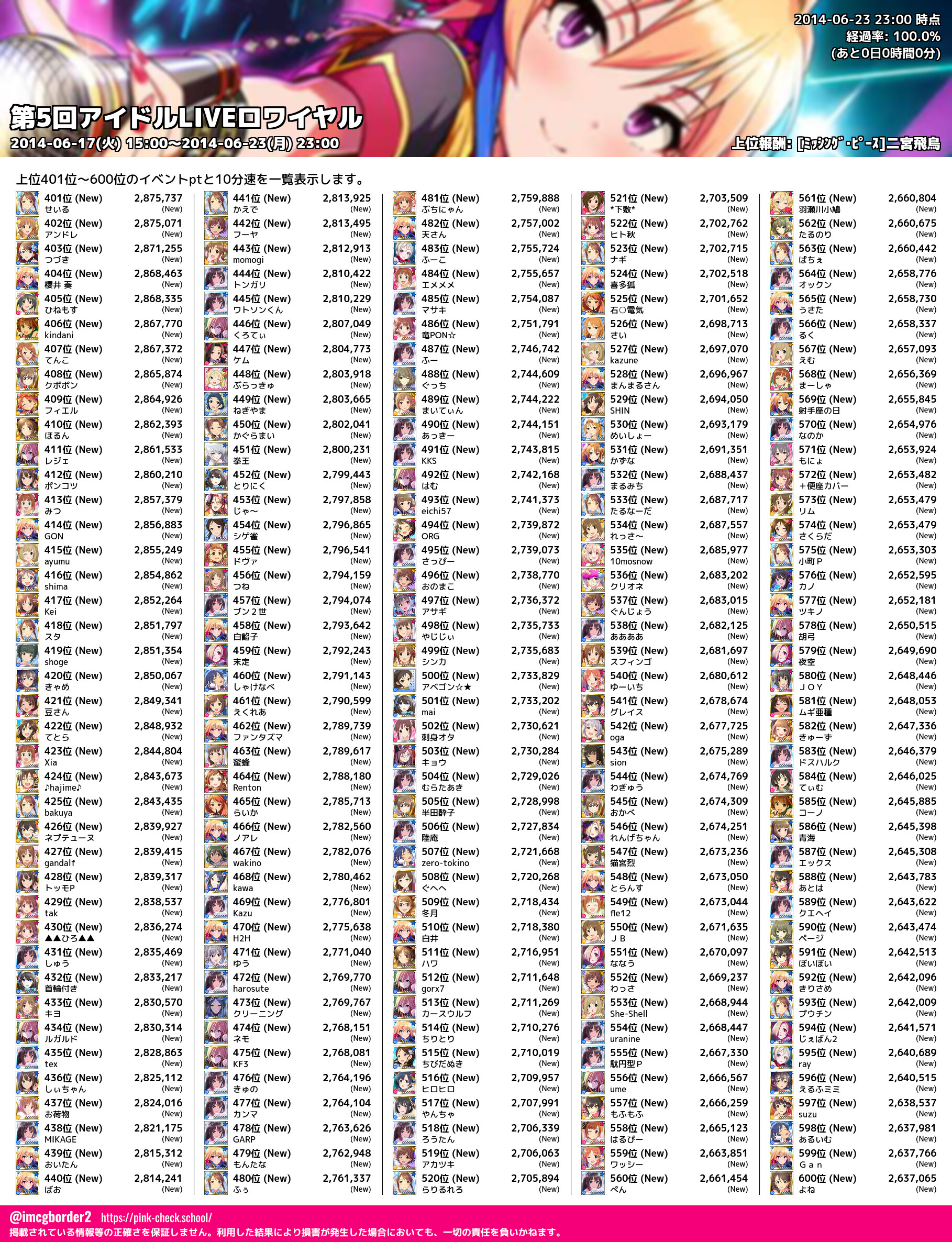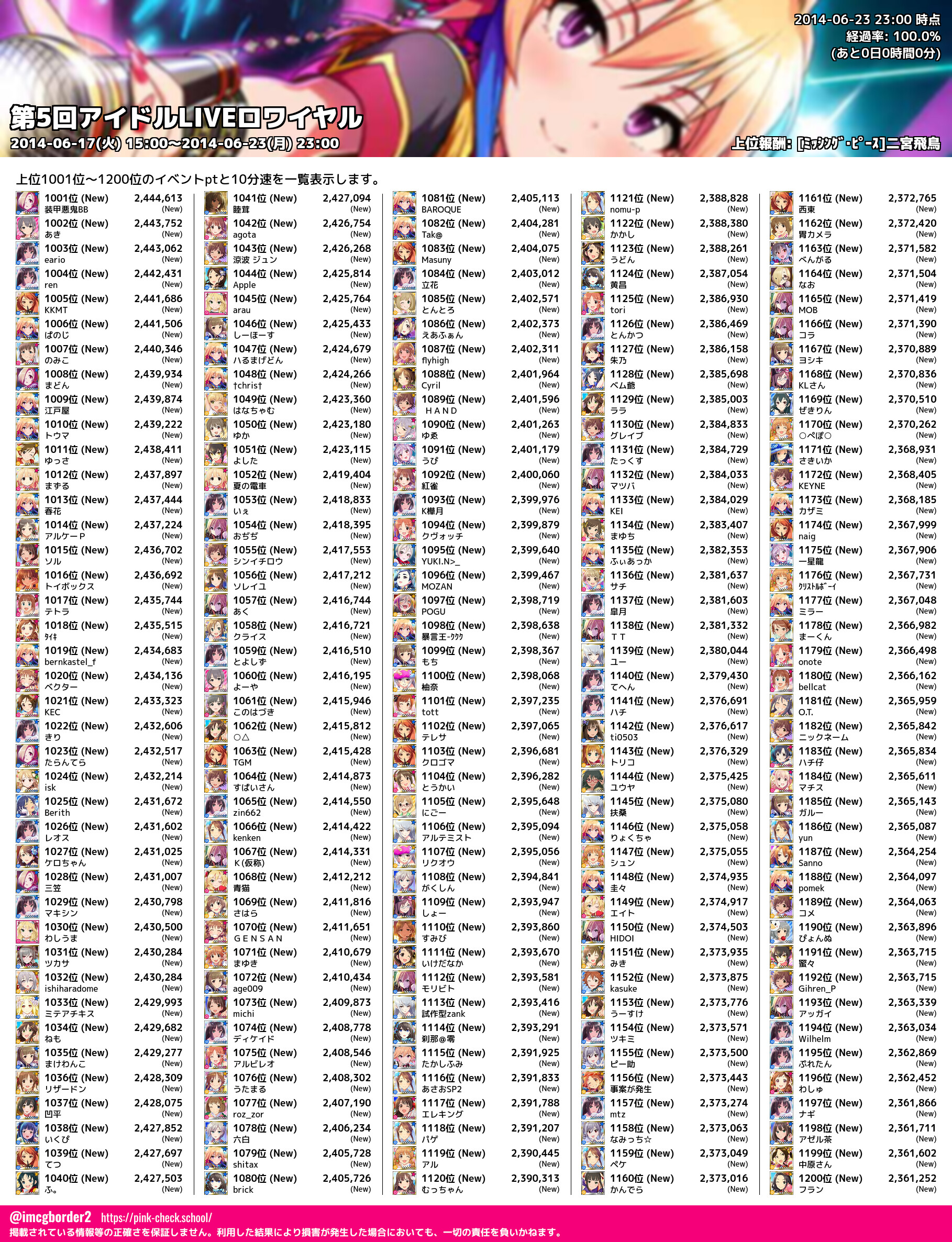 上位プロデューサースコア (2014-06-23 23:00 時点)