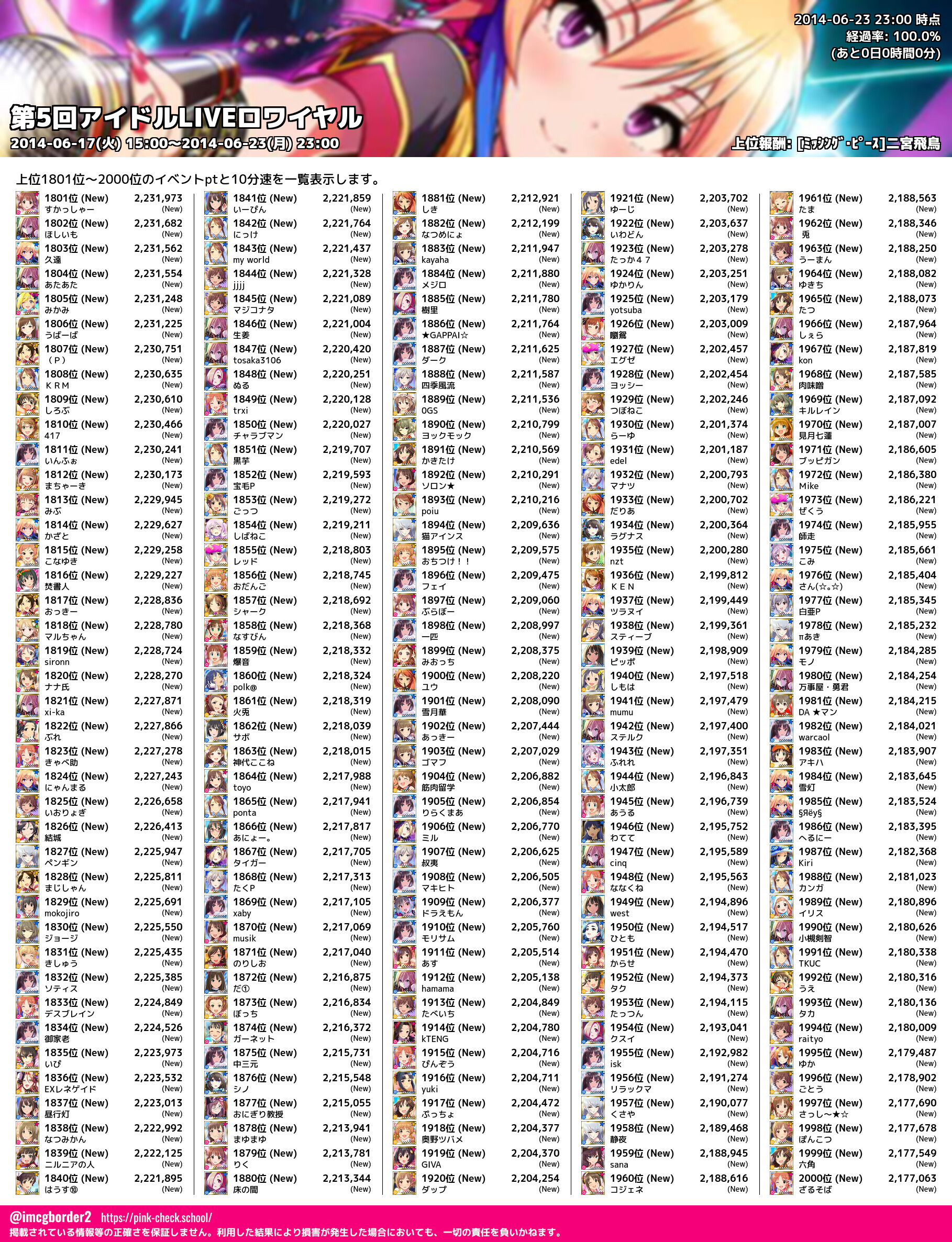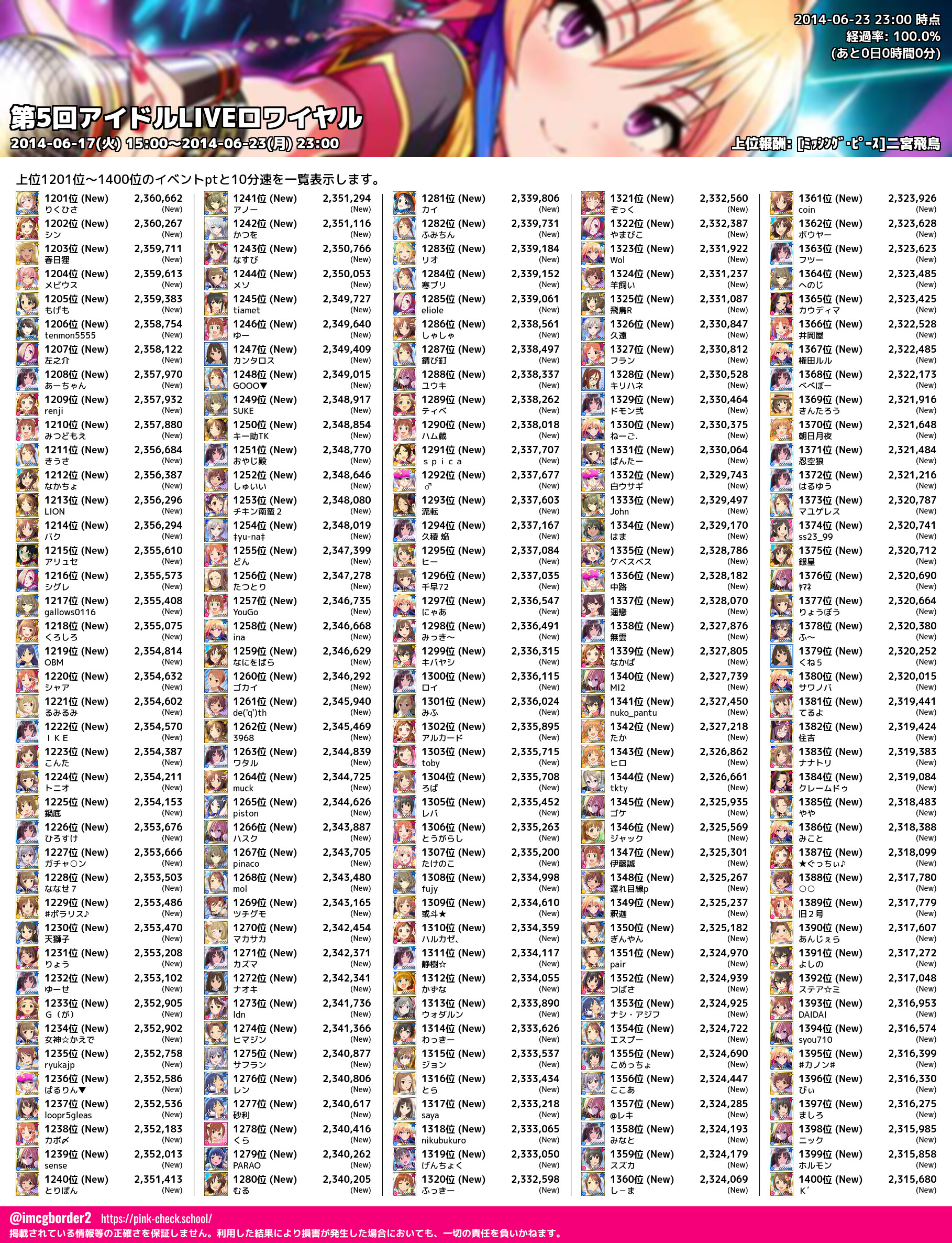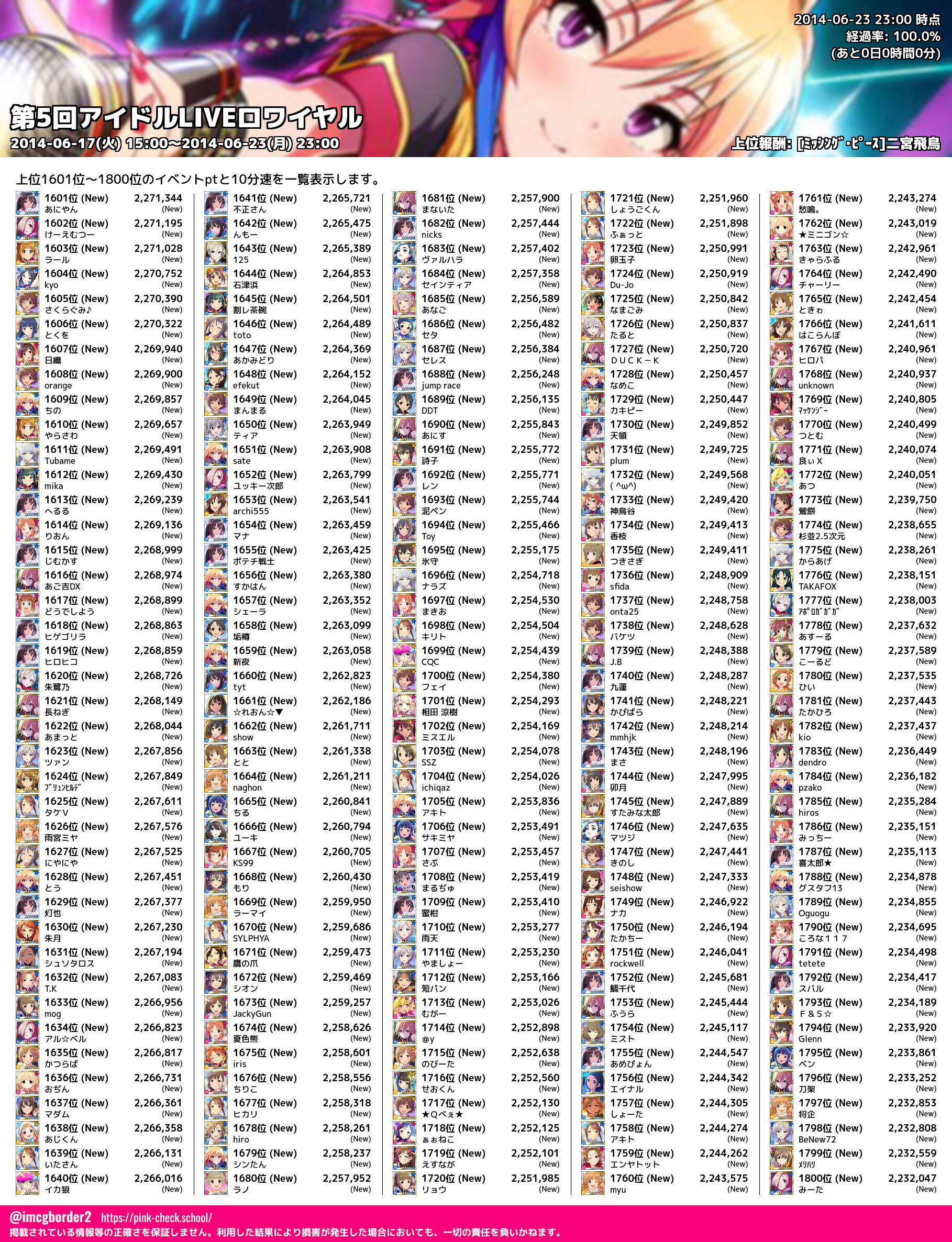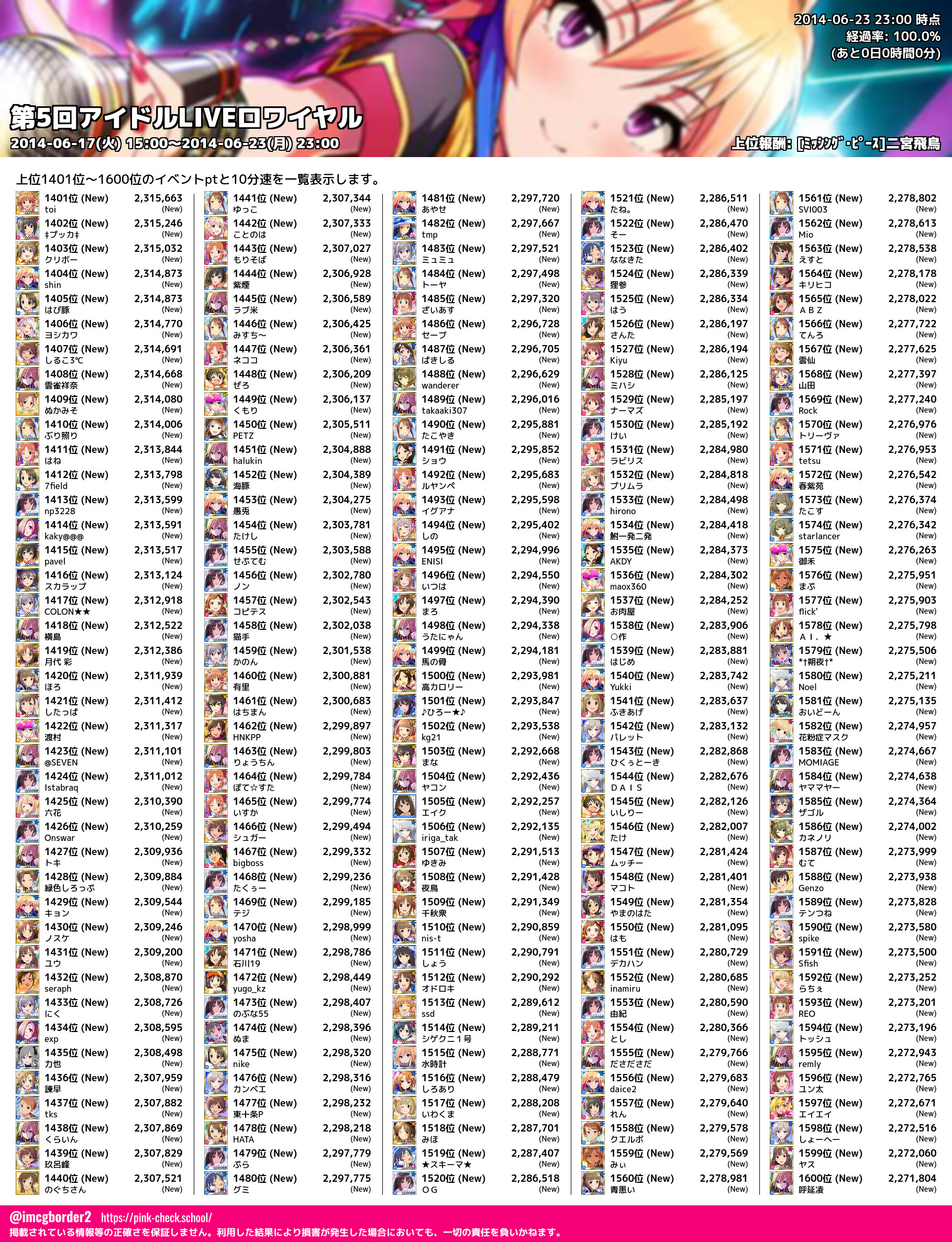 上位プロデューサースコア (2014-06-23 23:00 時点)