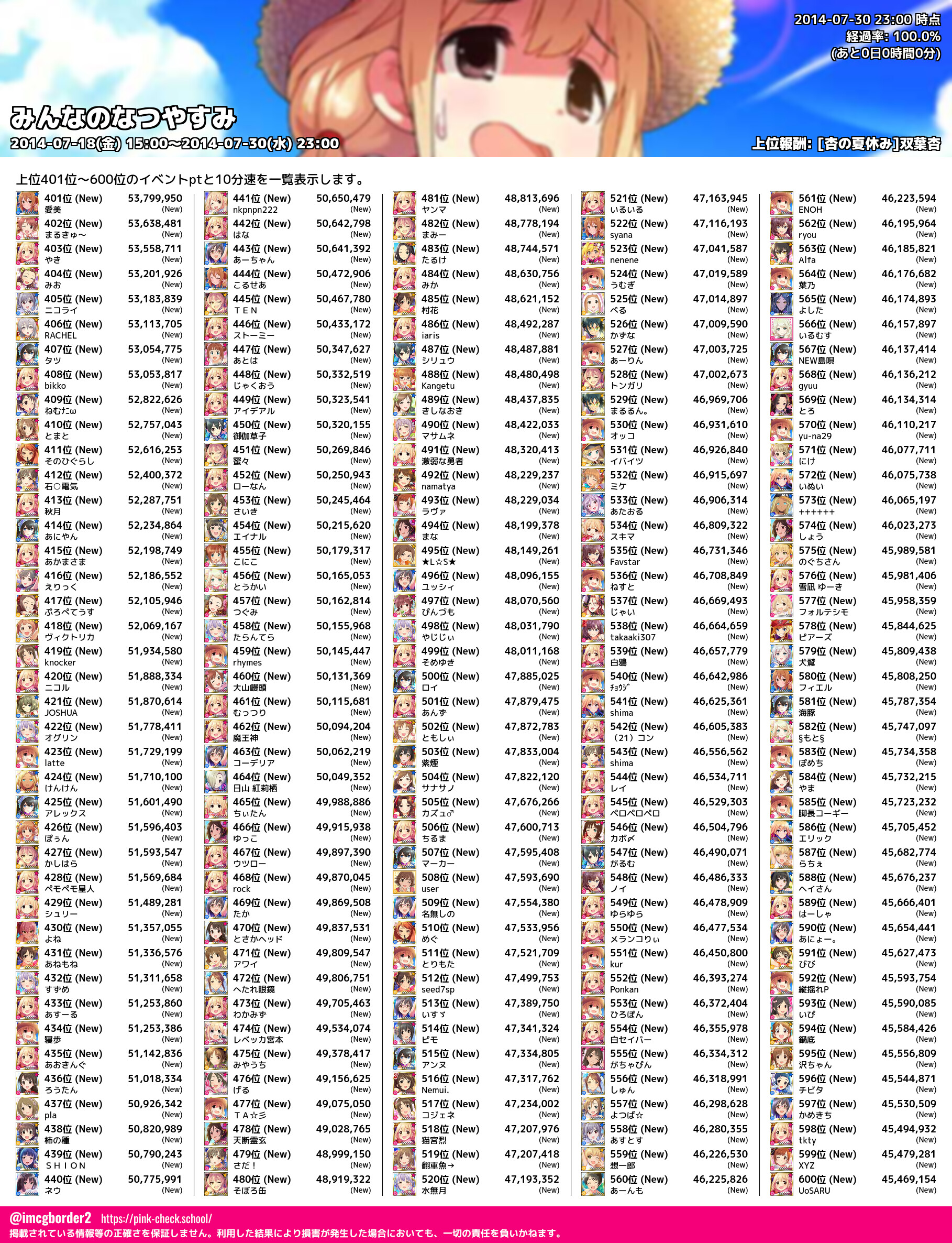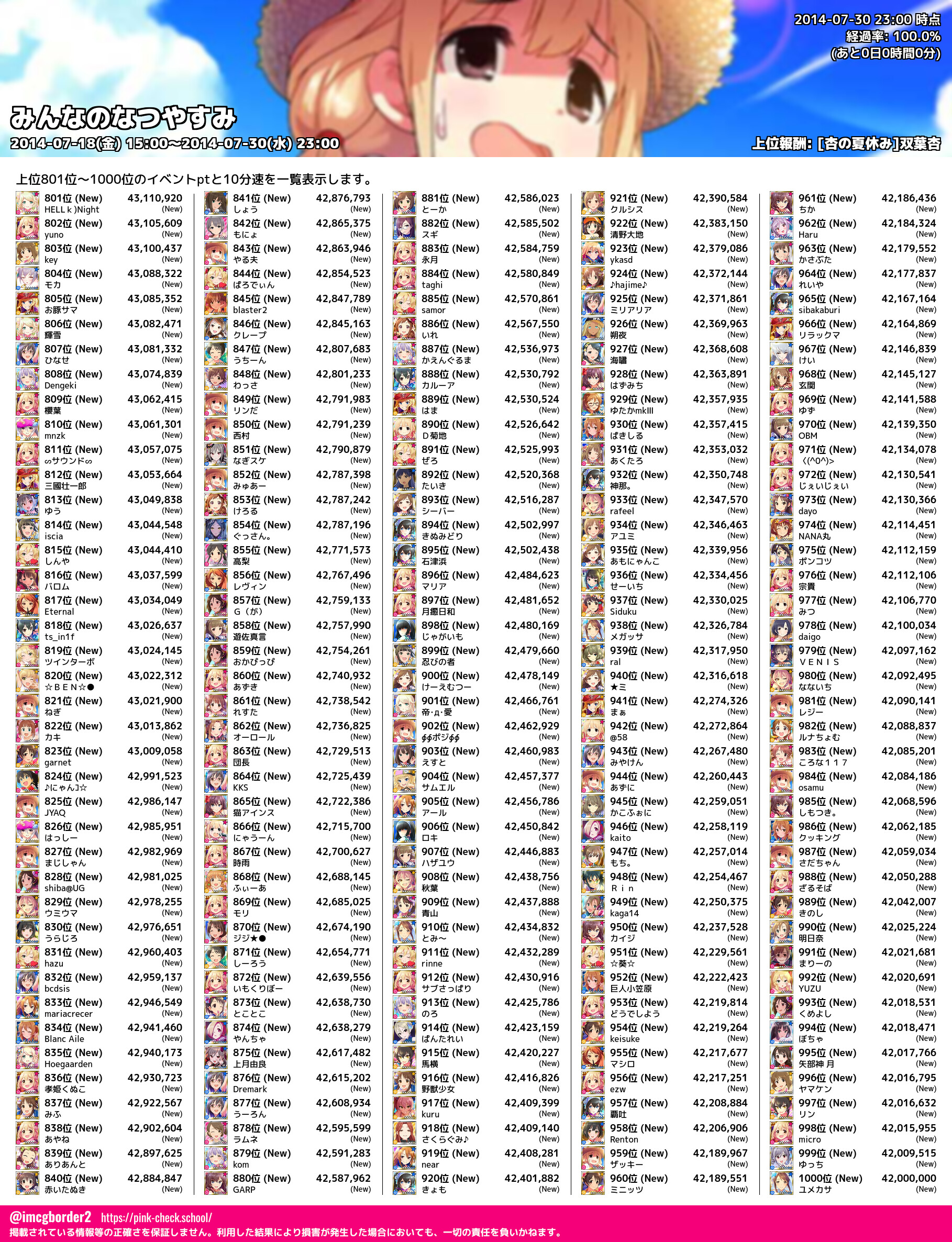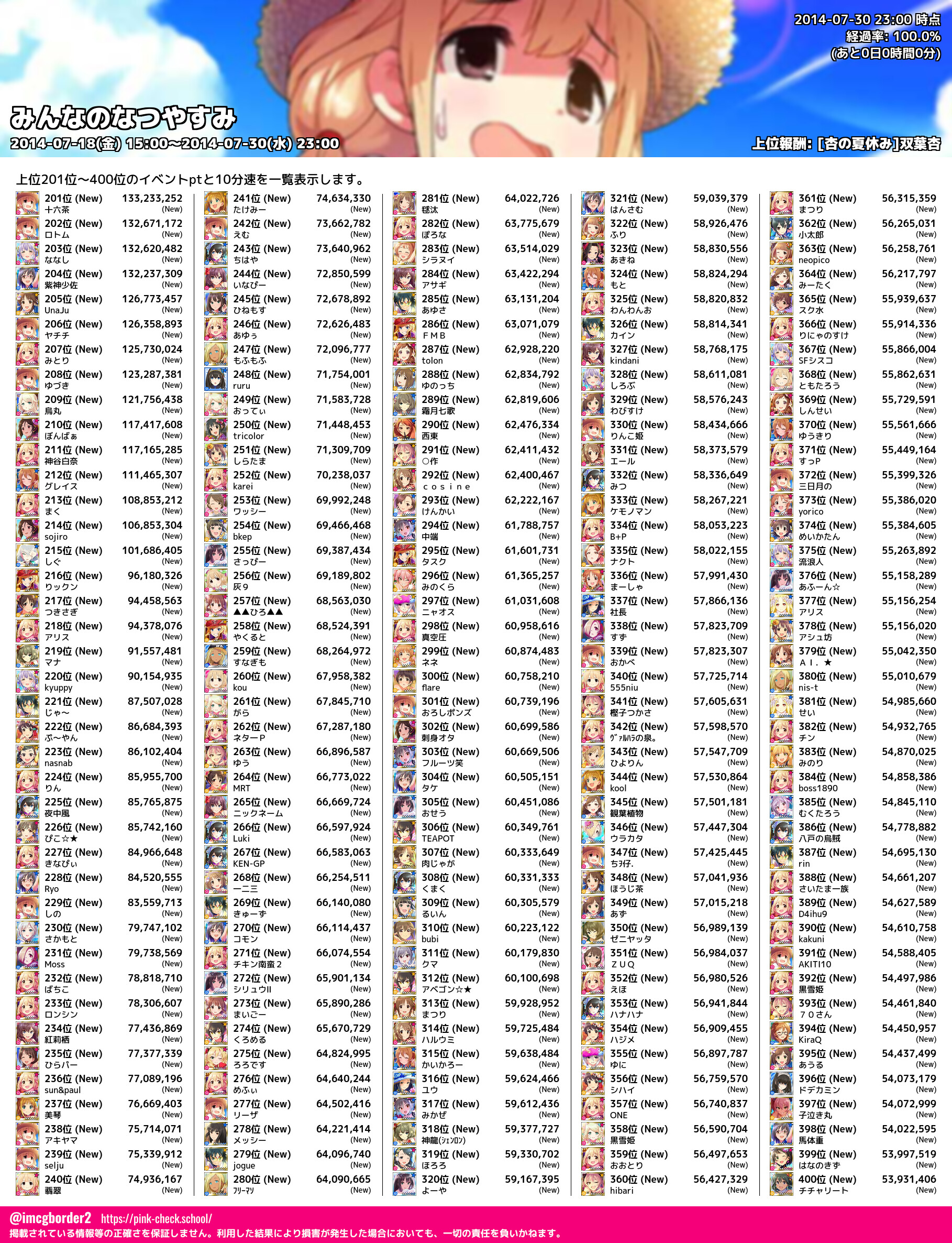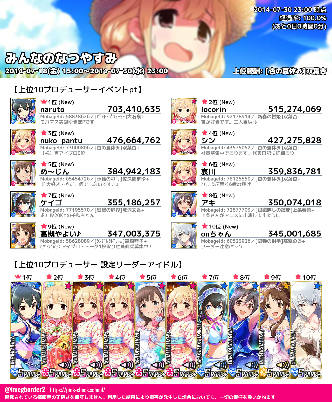 上位プロデューサースコア (2014-07-30 23:00 時点)