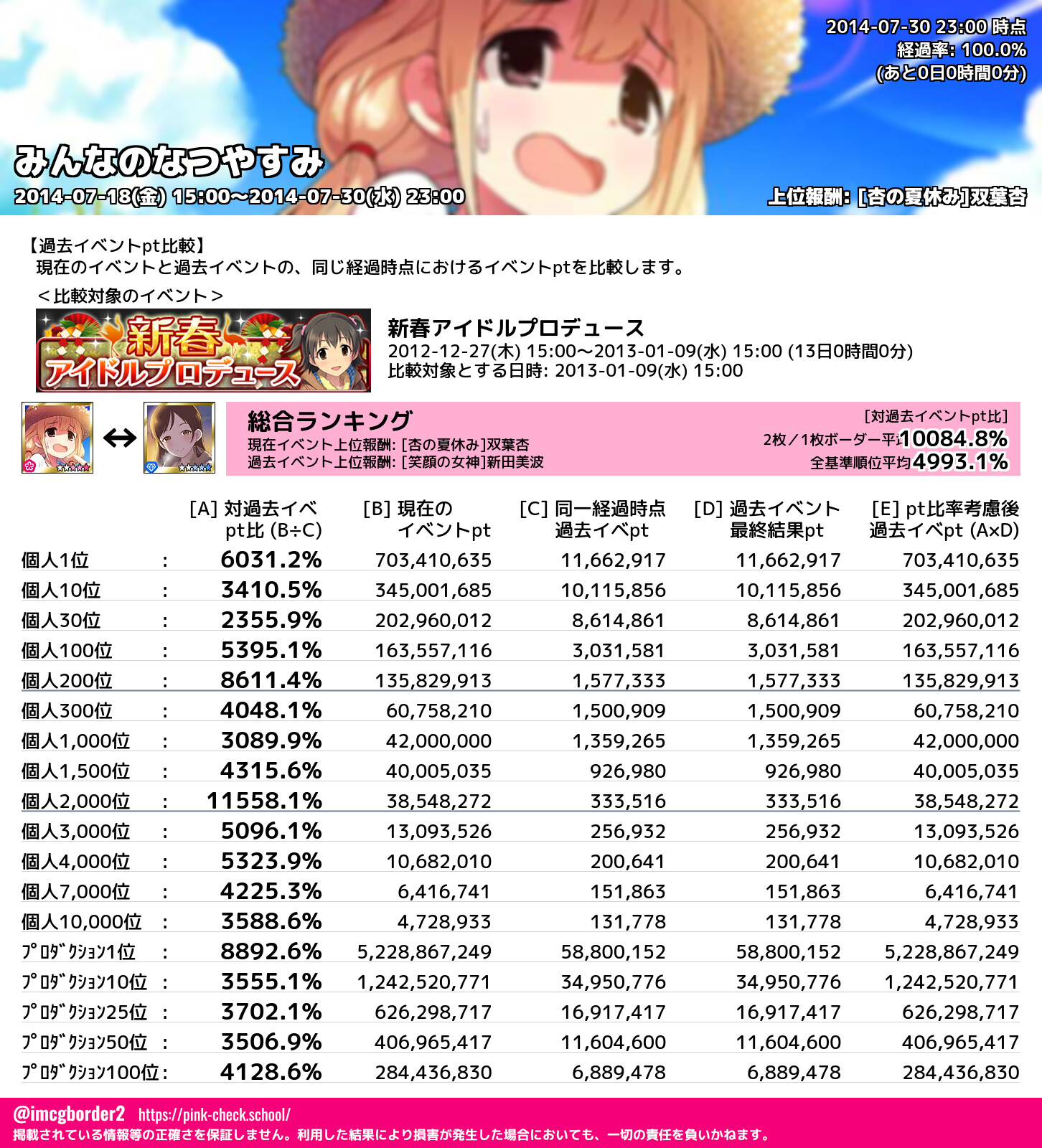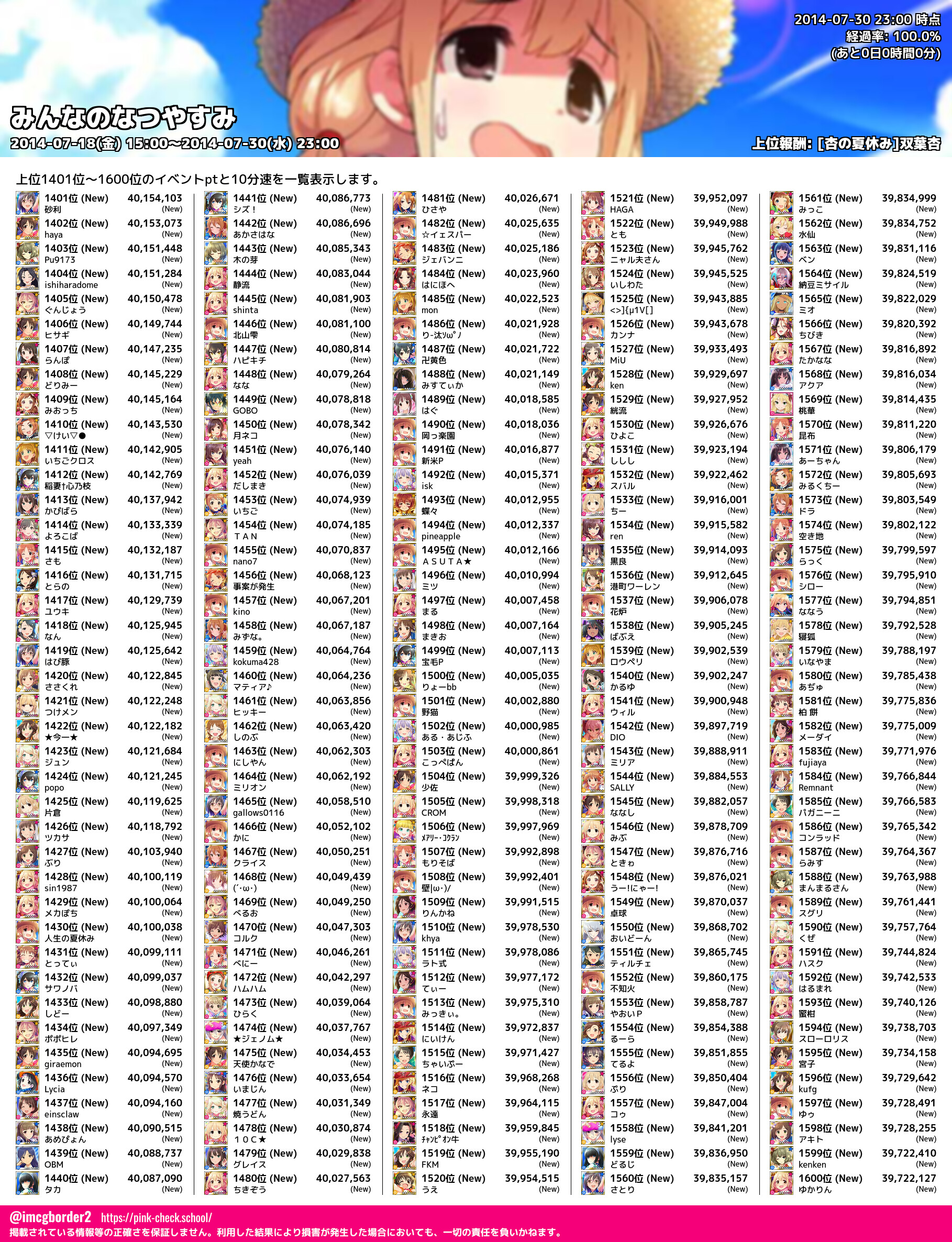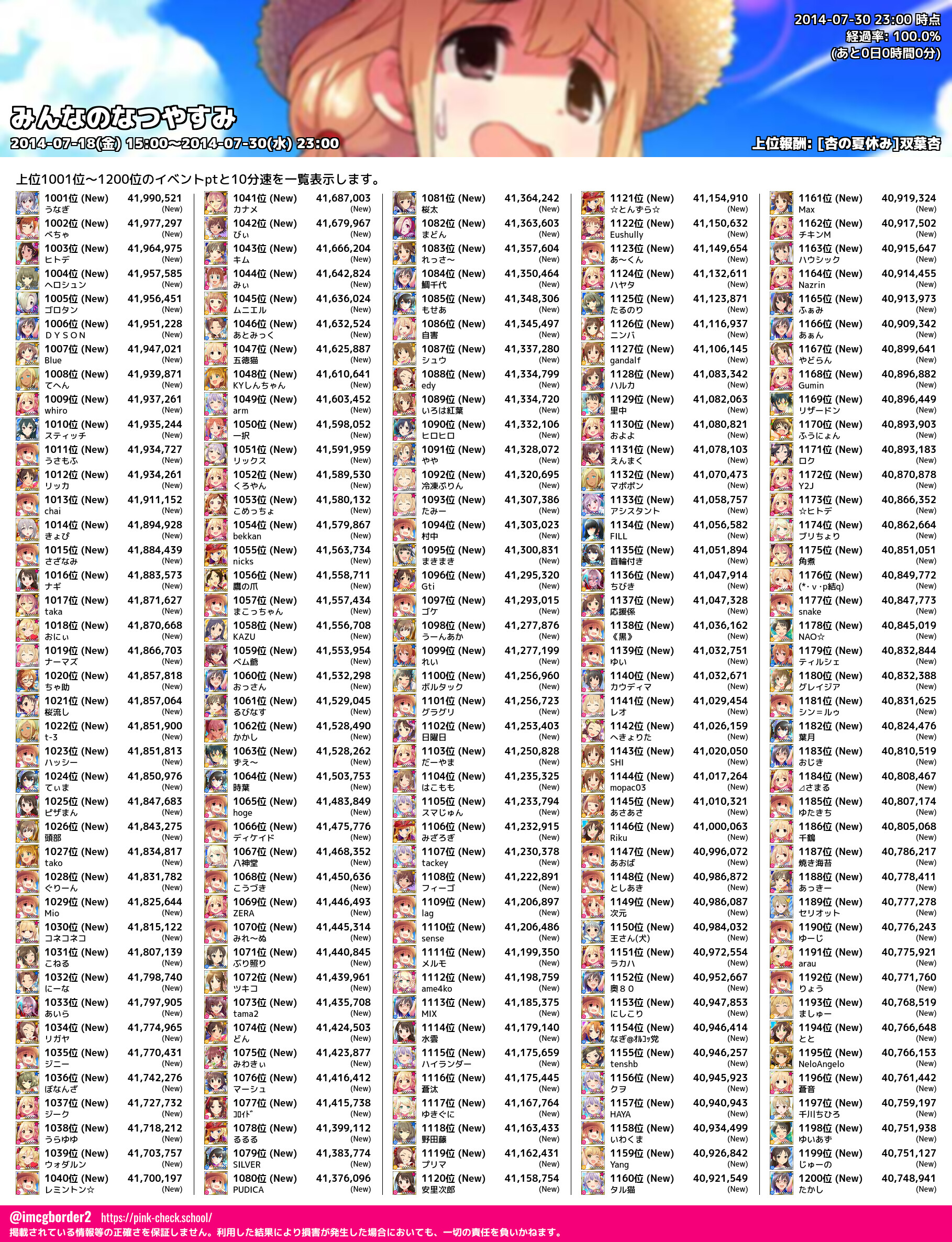 上位プロデューサースコア (2014-07-30 23:00 時点)