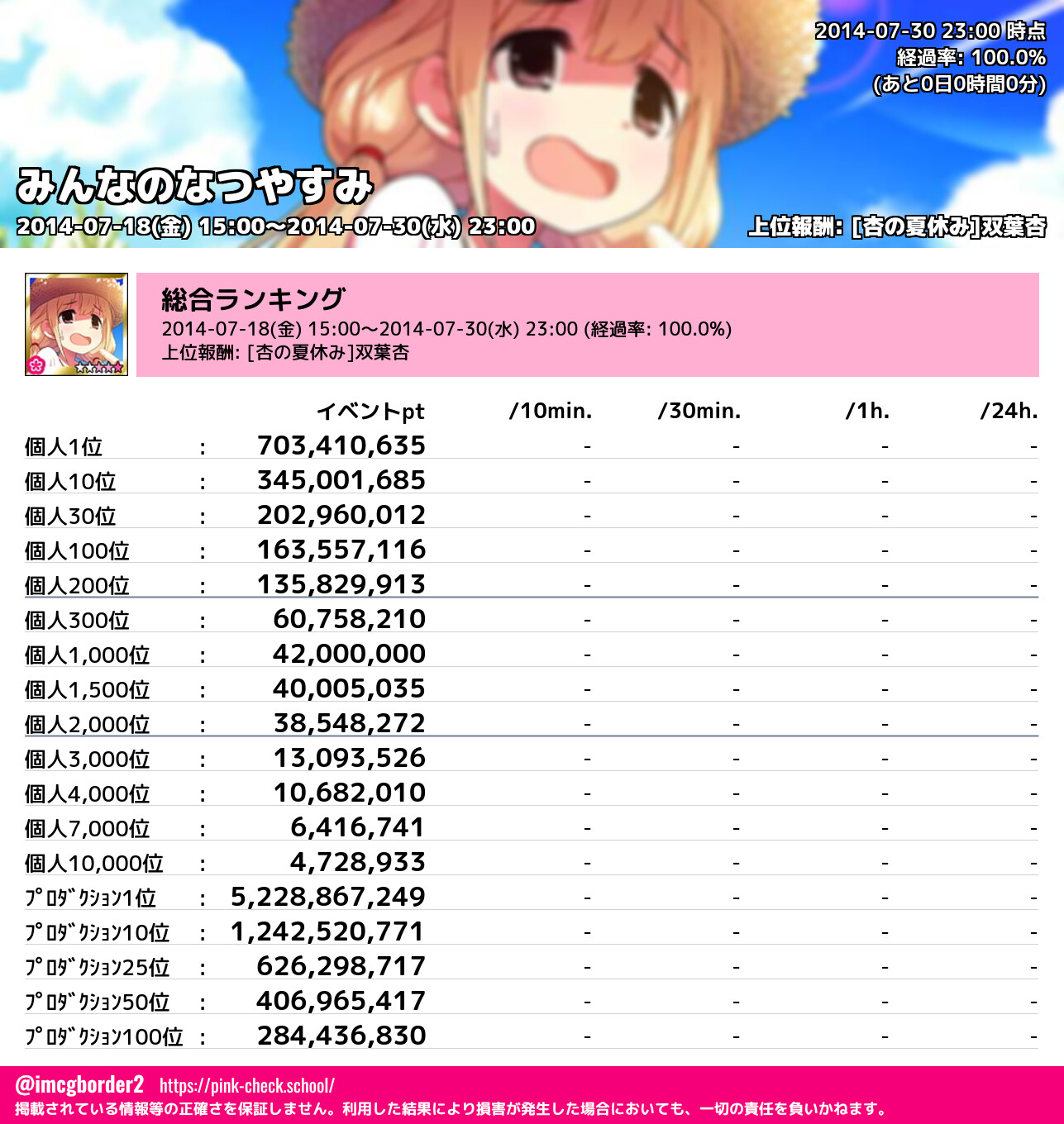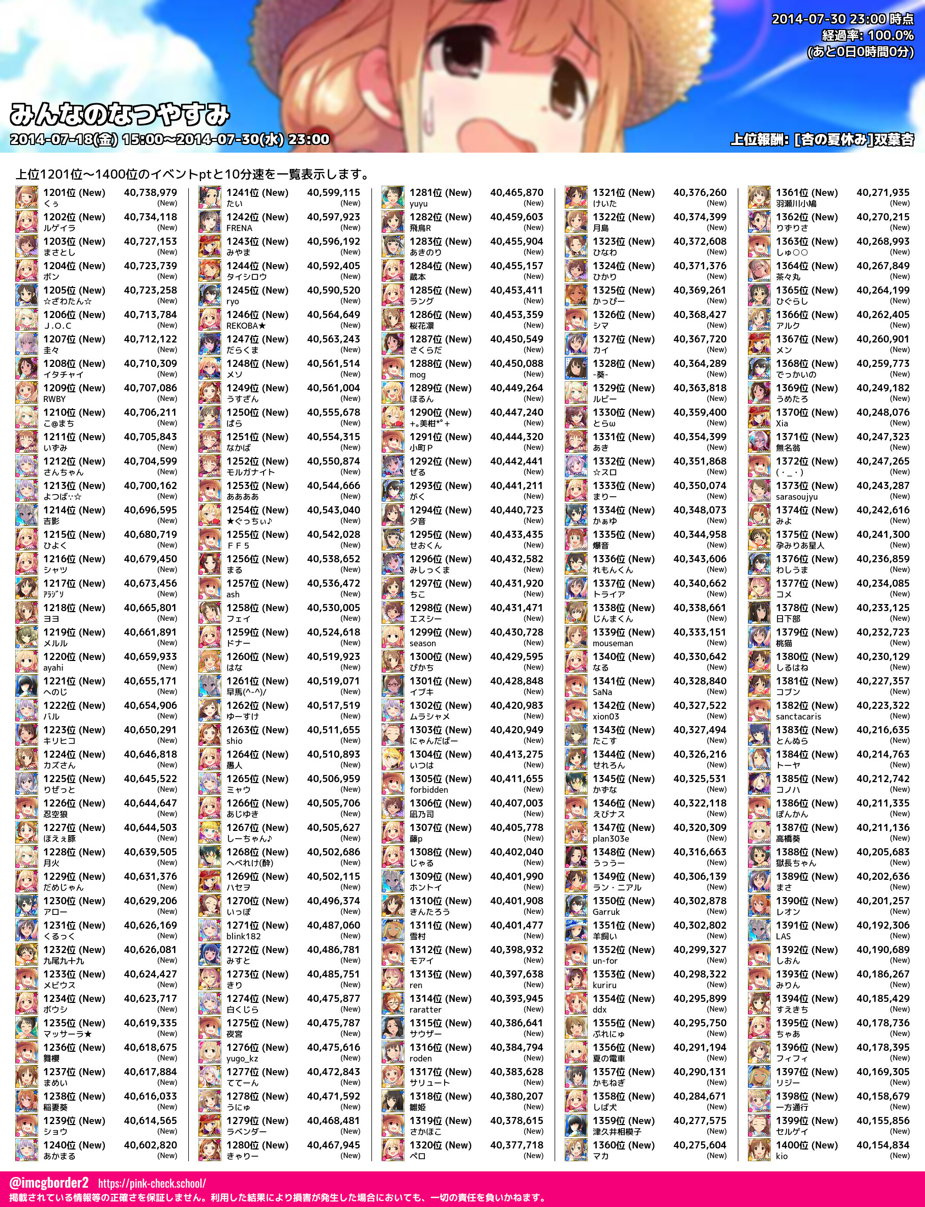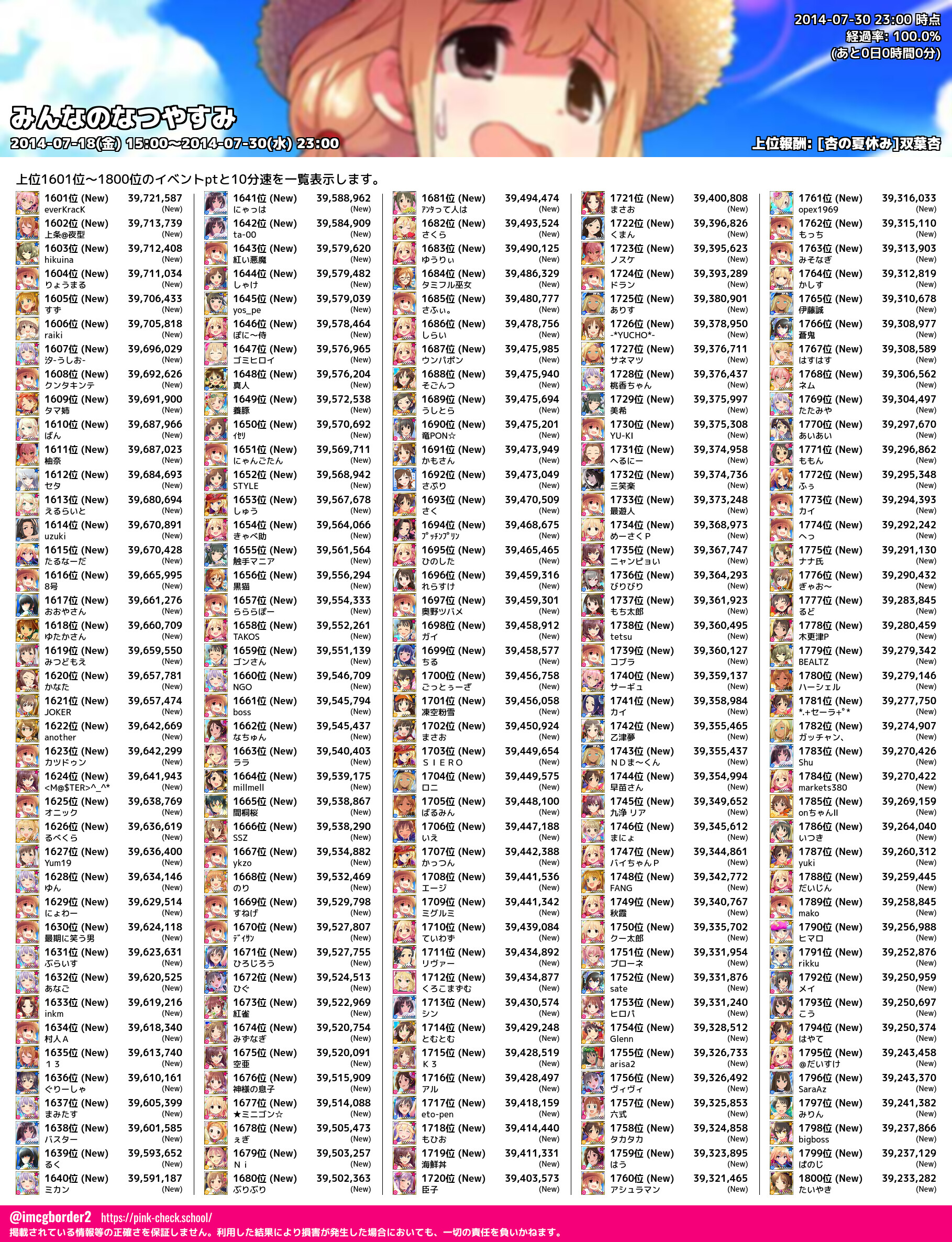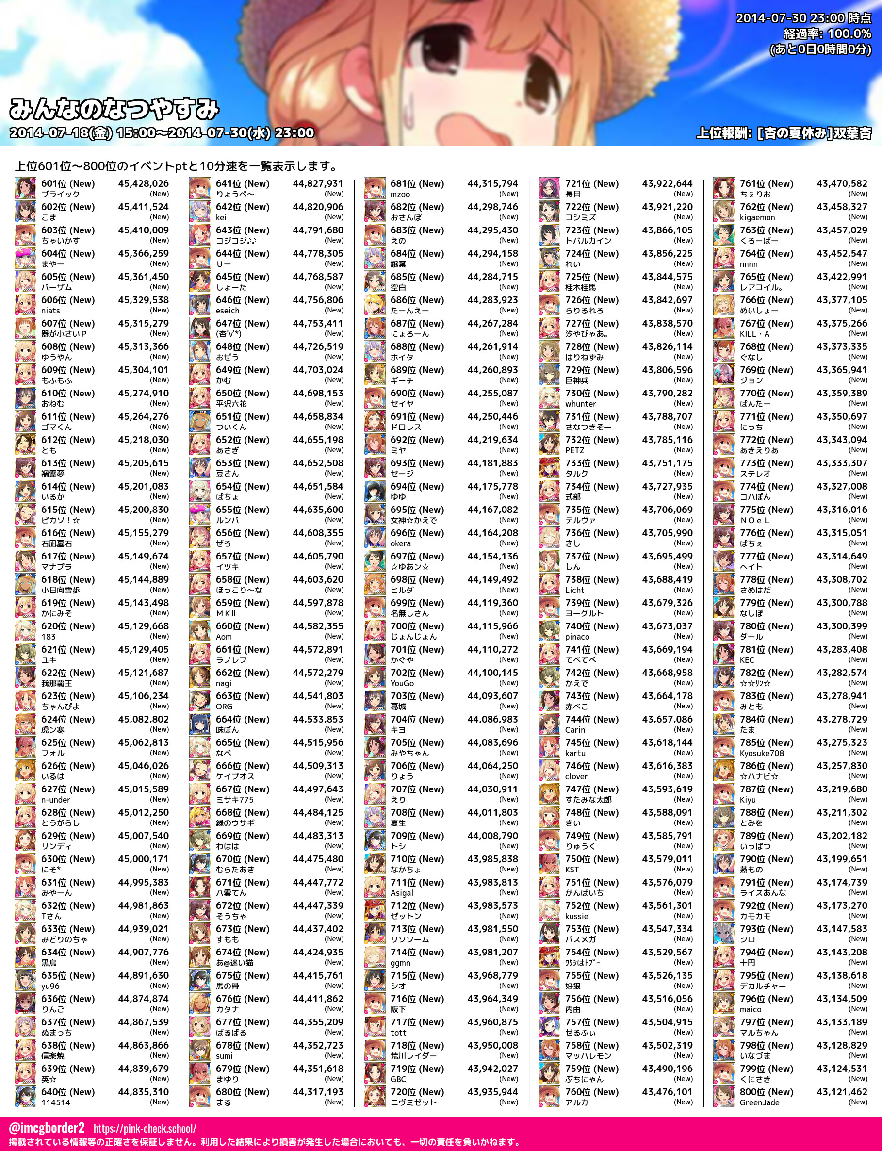 上位プロデューサースコア (2014-07-30 23:00 時点)