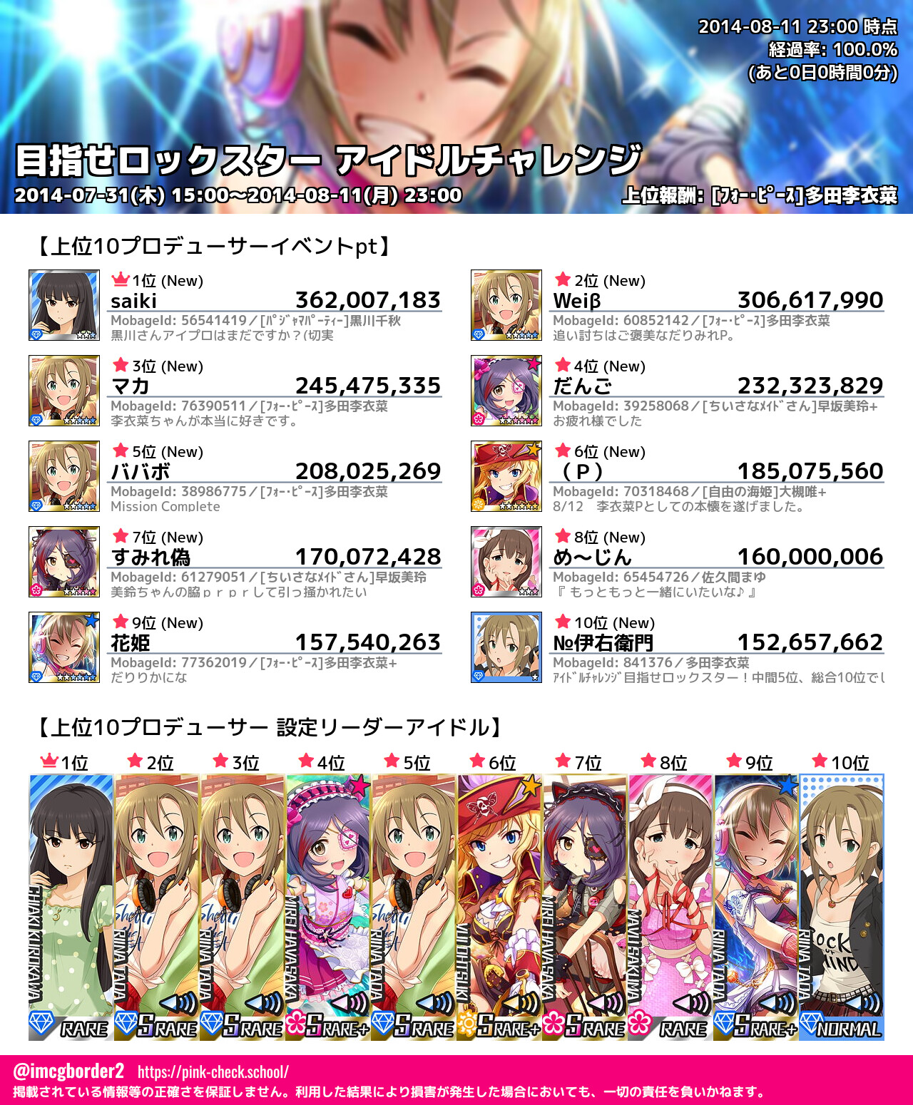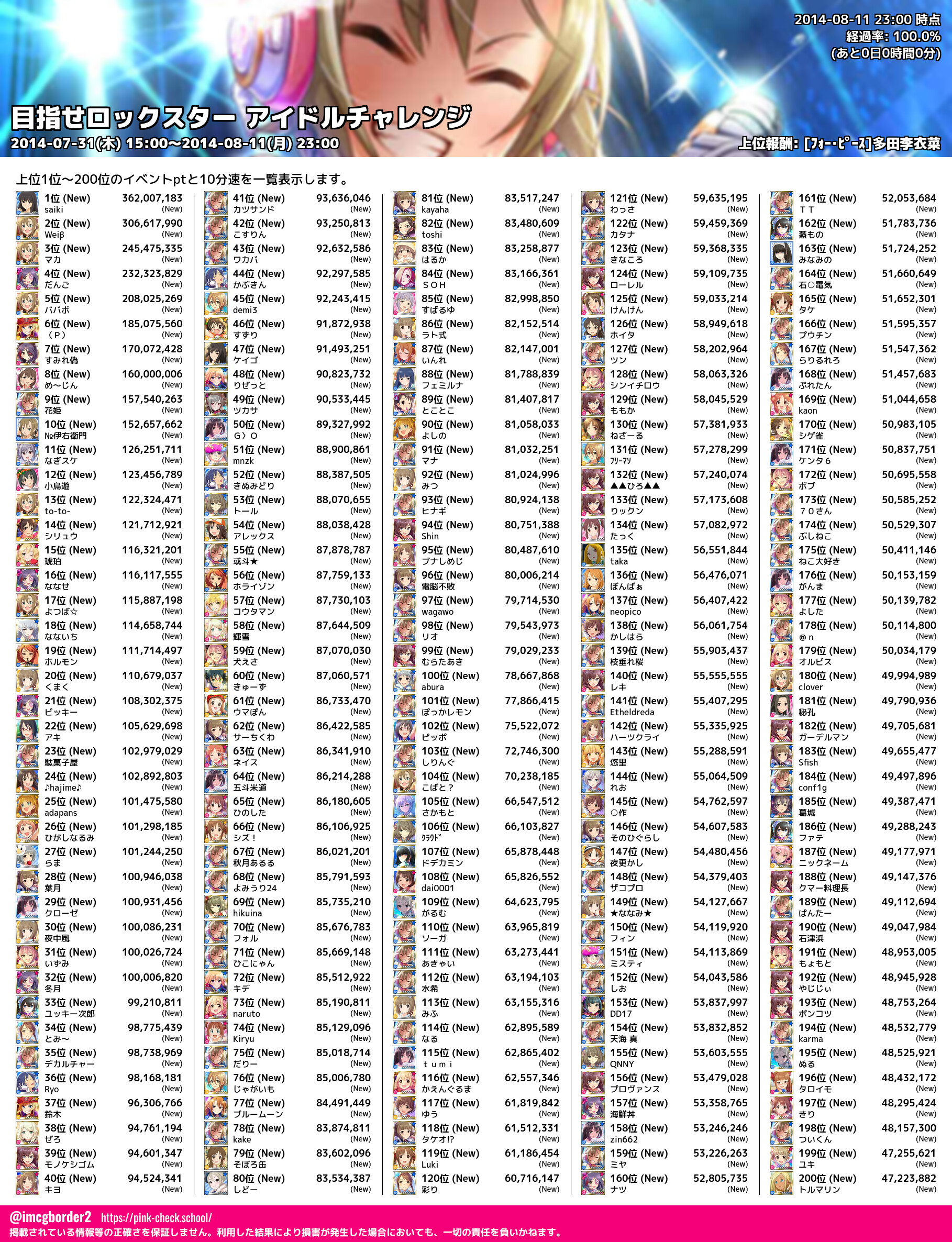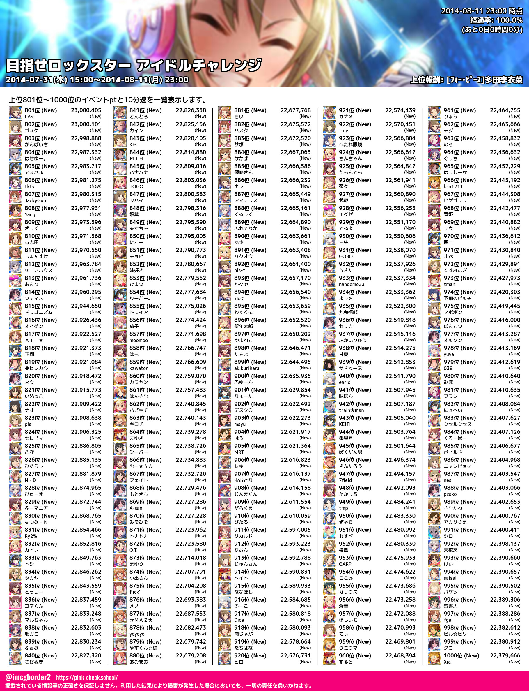 上位プロデューサースコア (2014-08-11 23:00 時点)