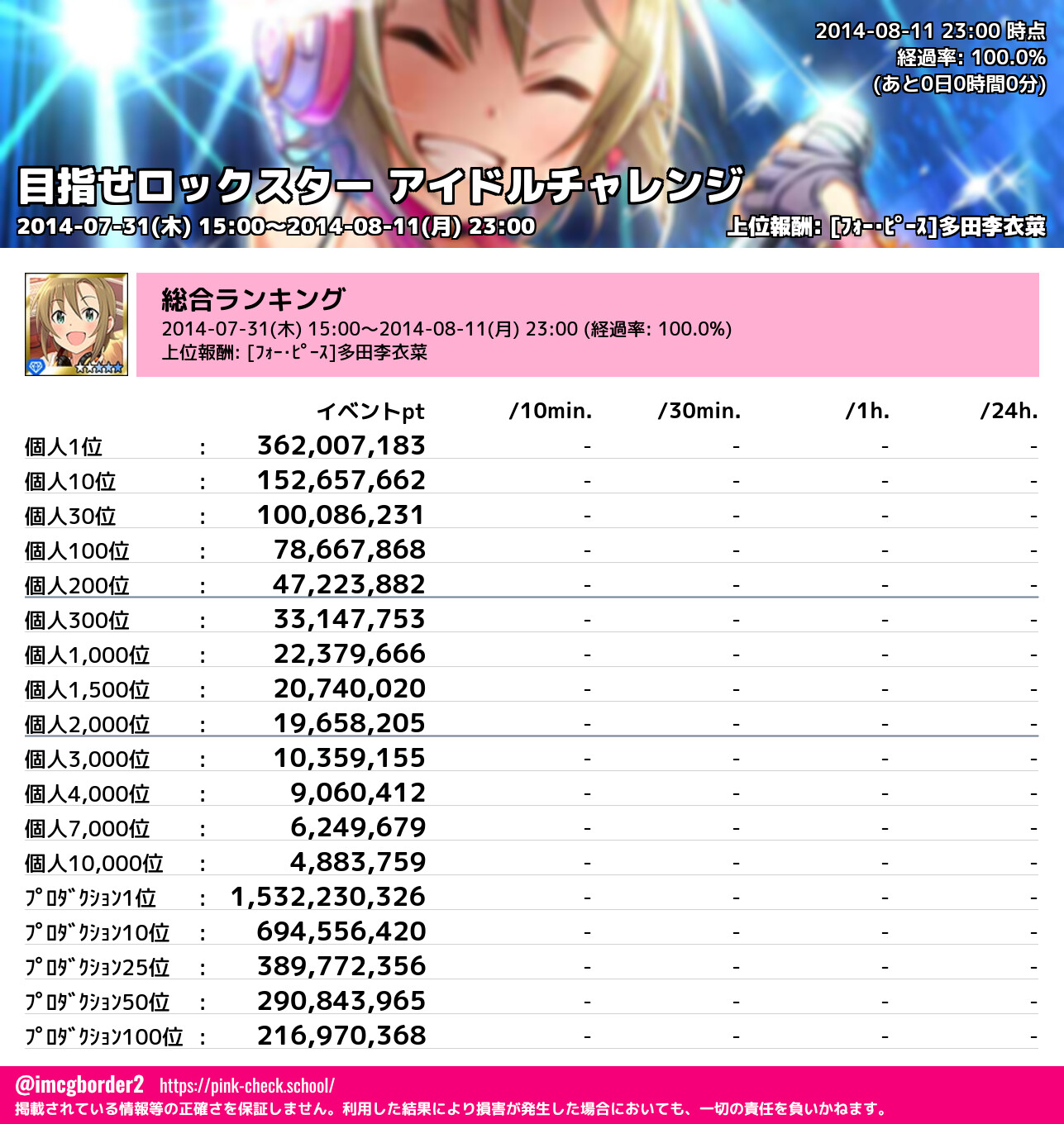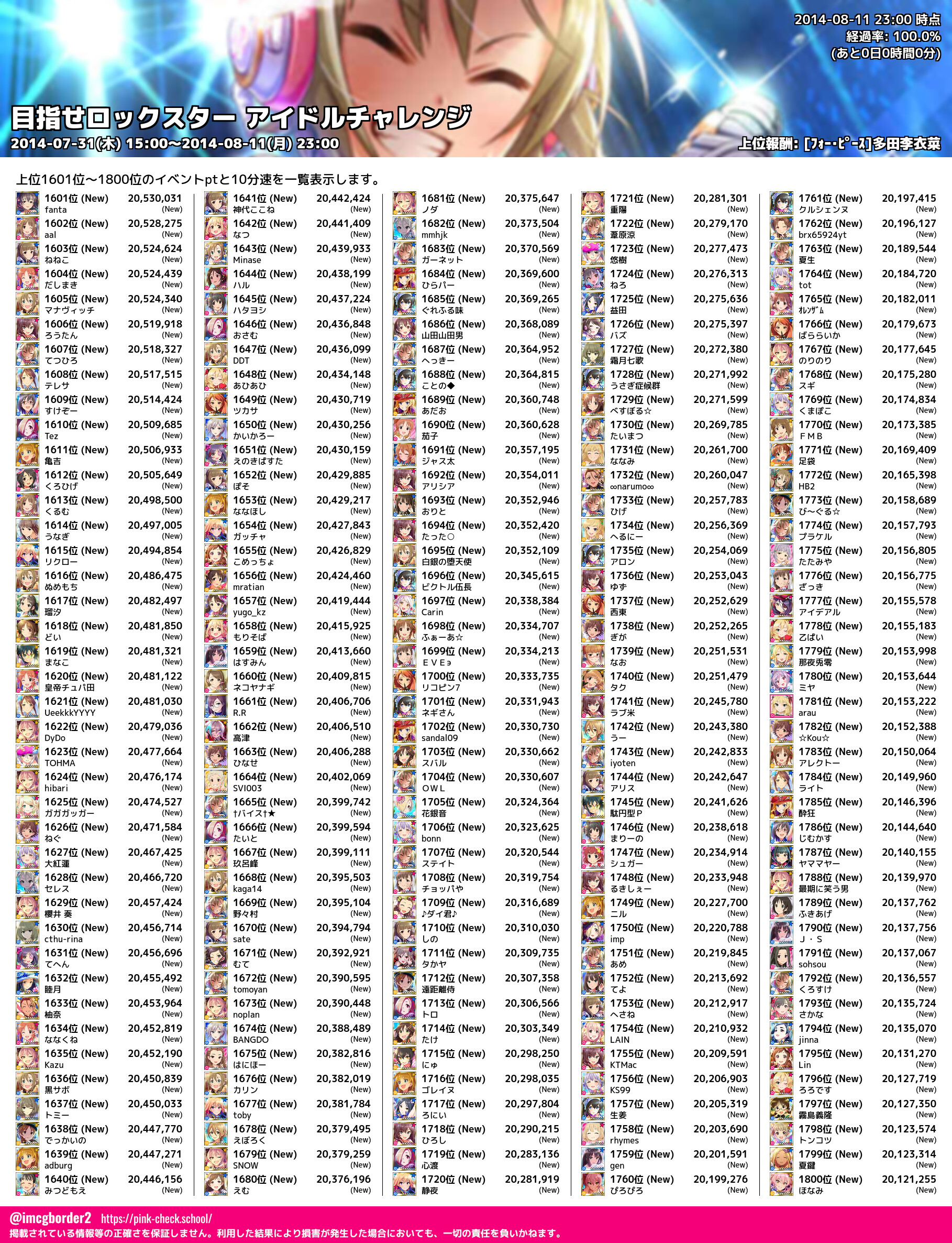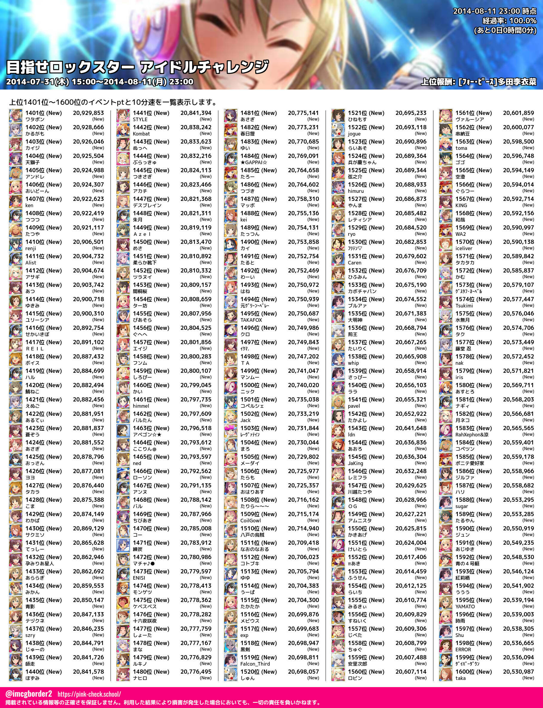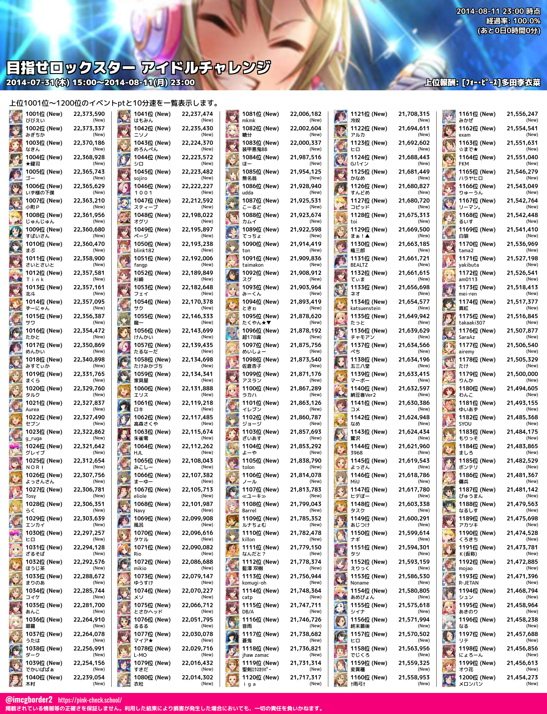 上位プロデューサースコア (2014-08-11 23:00 時点)