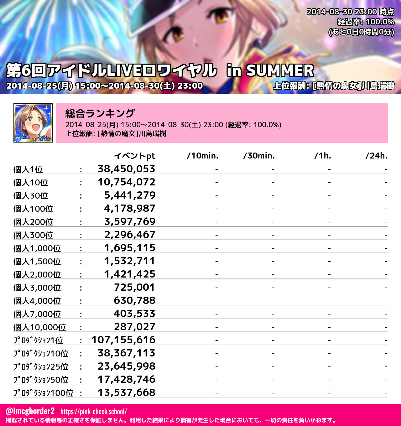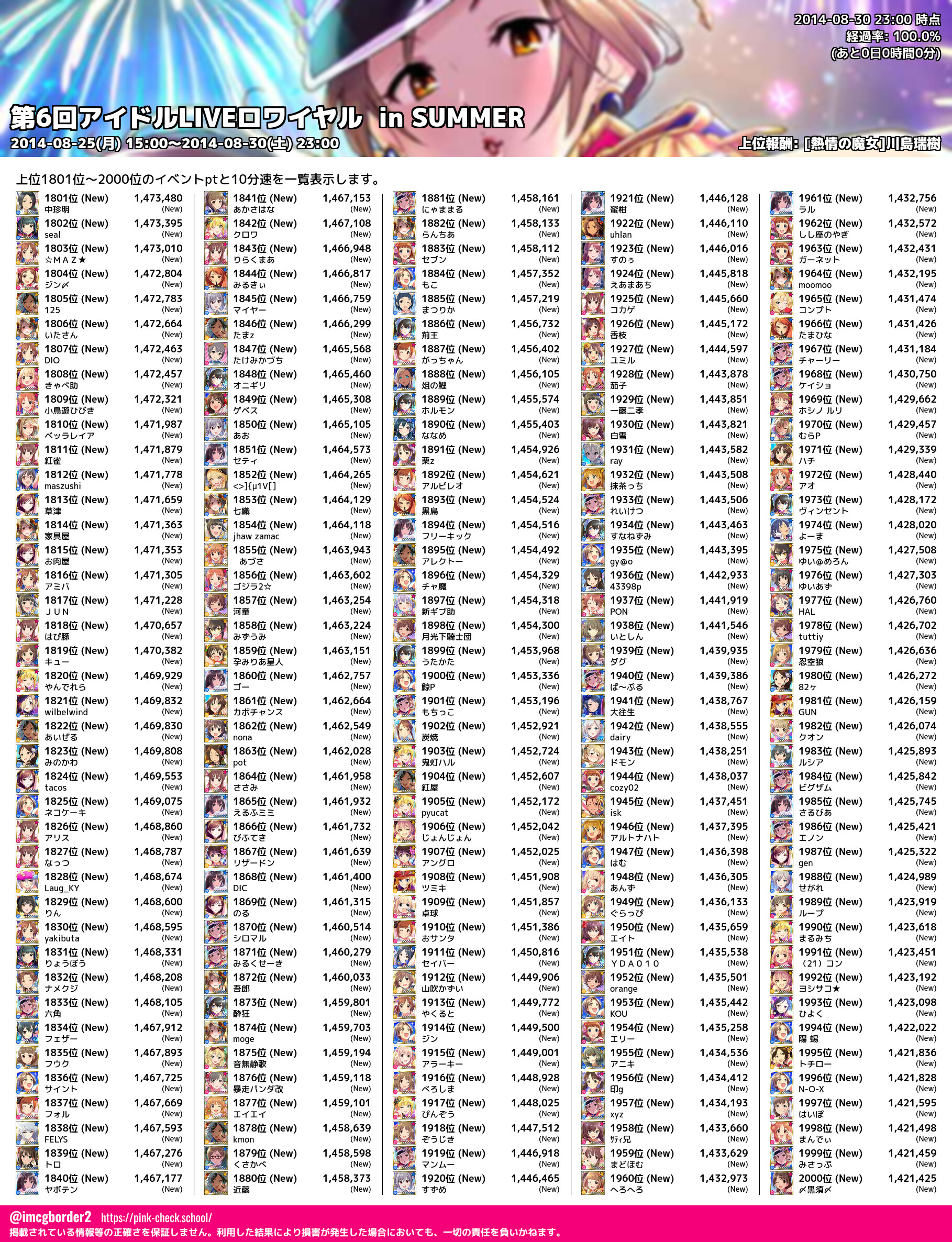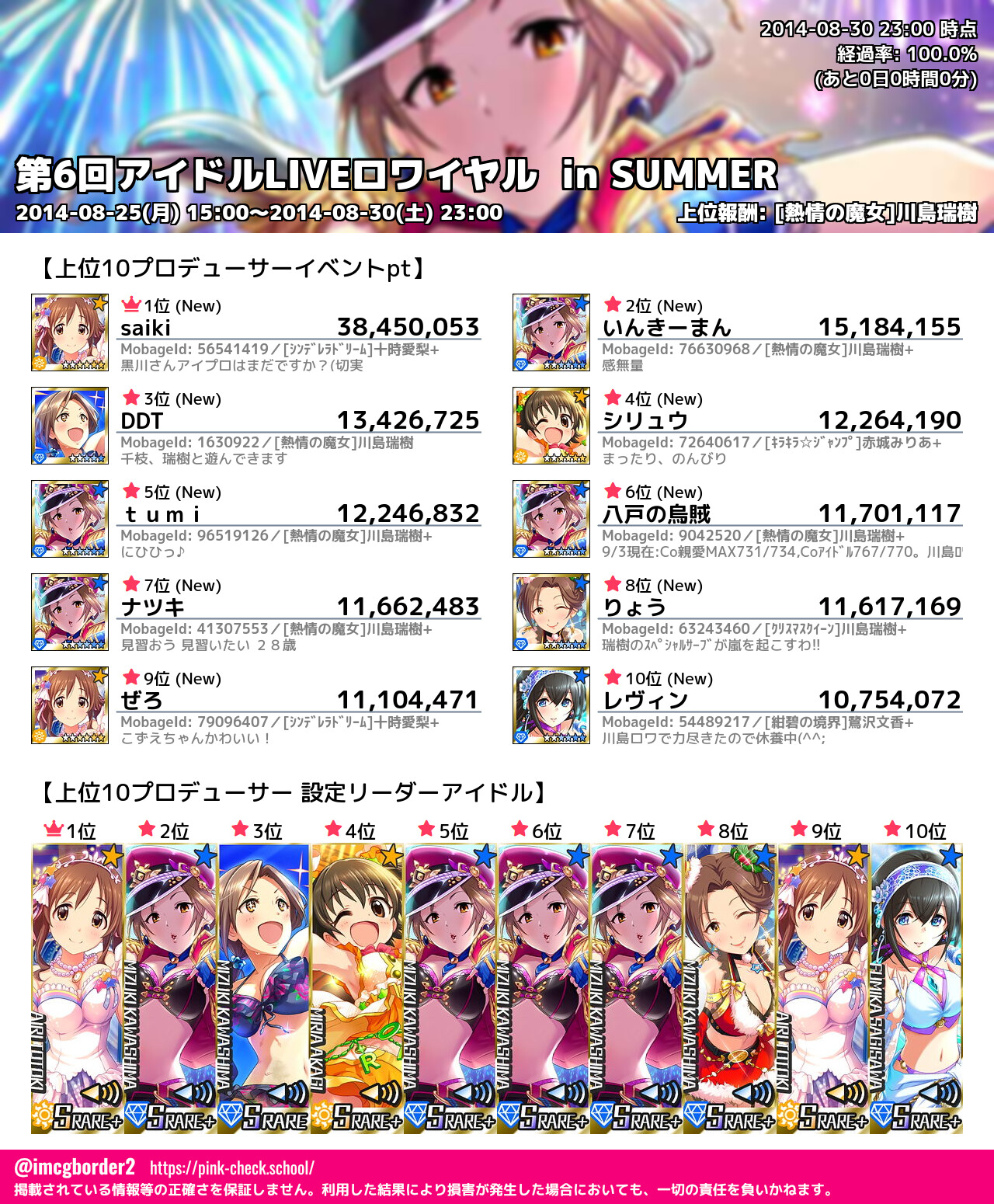 第6回アイドルLIVEロワイヤル in SUMMER 結果集計完了