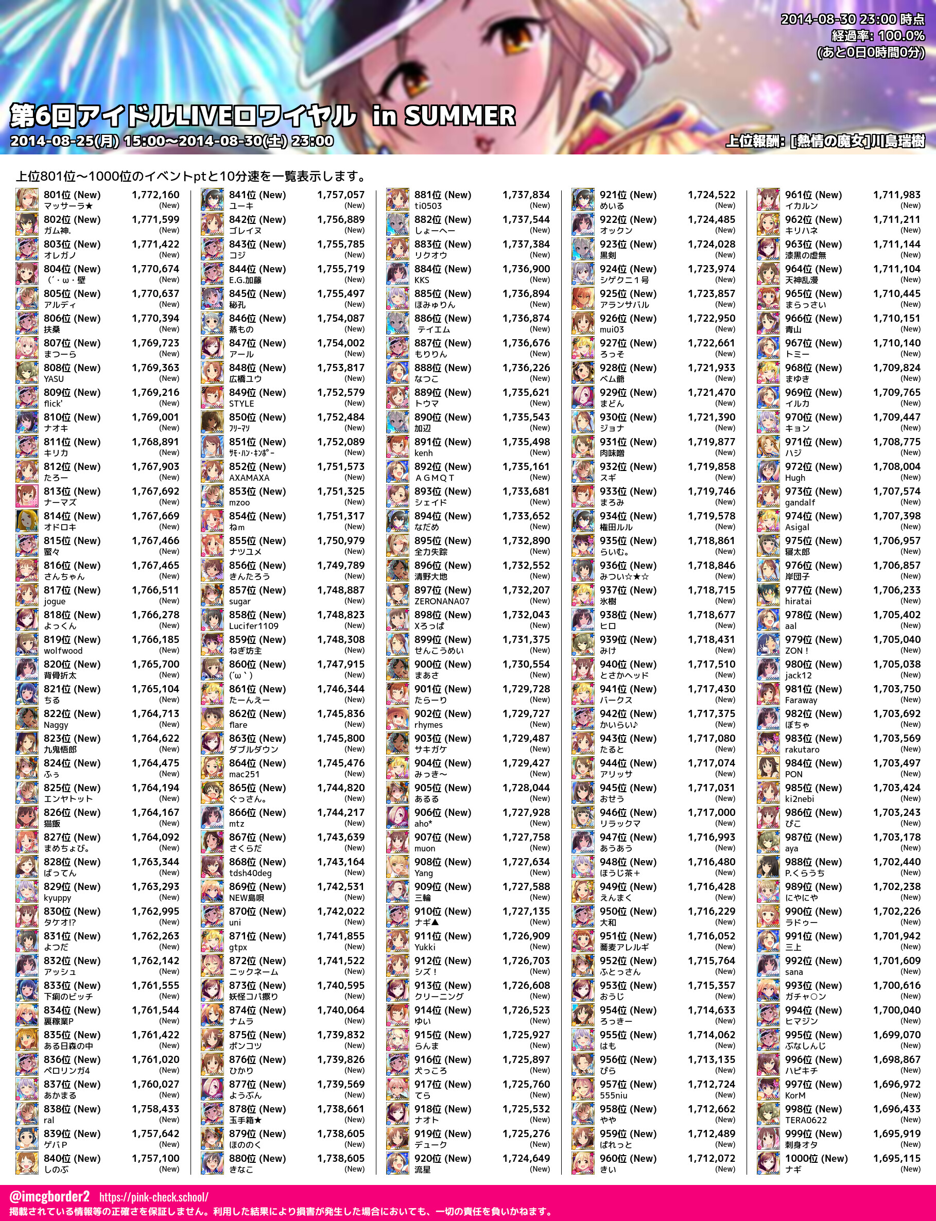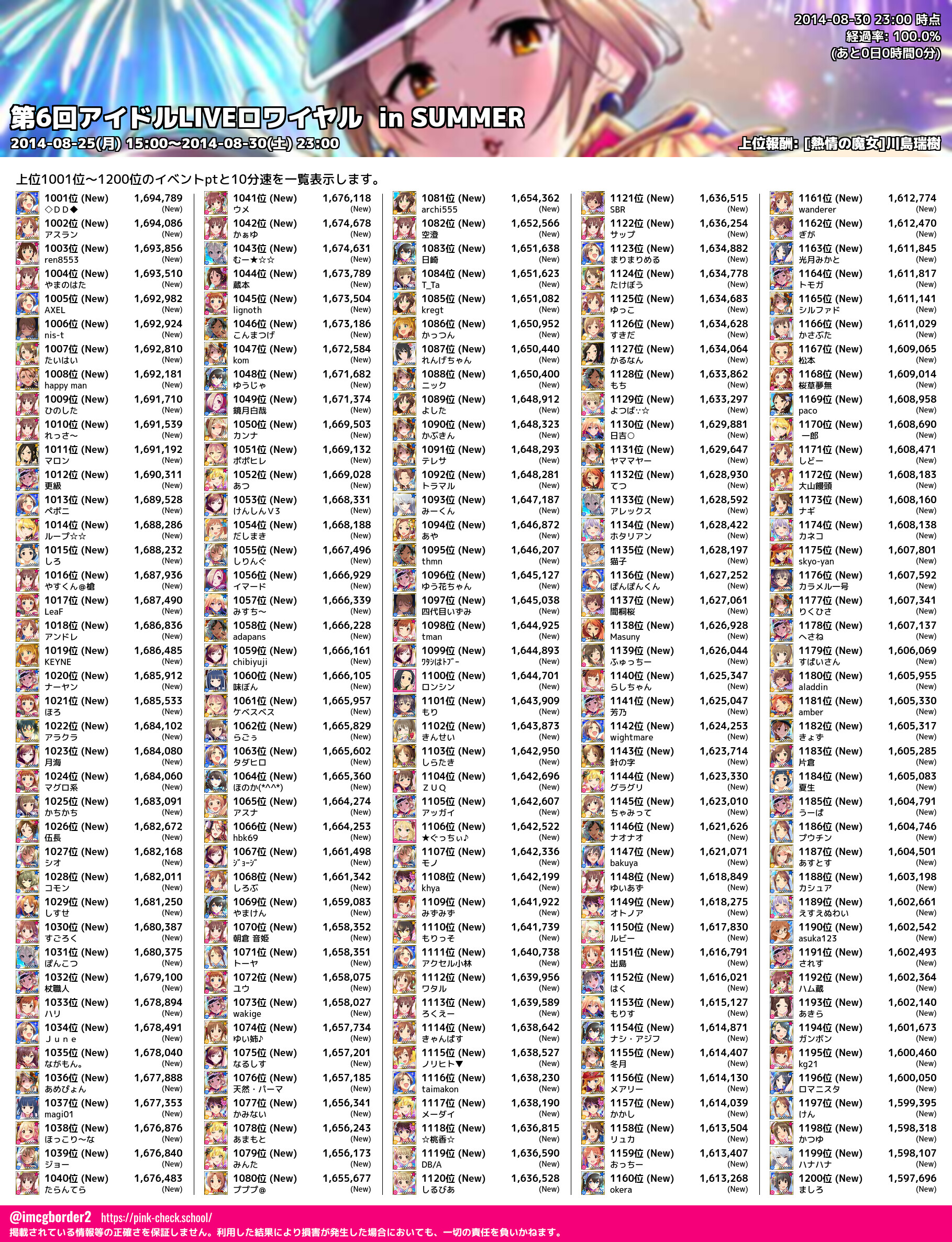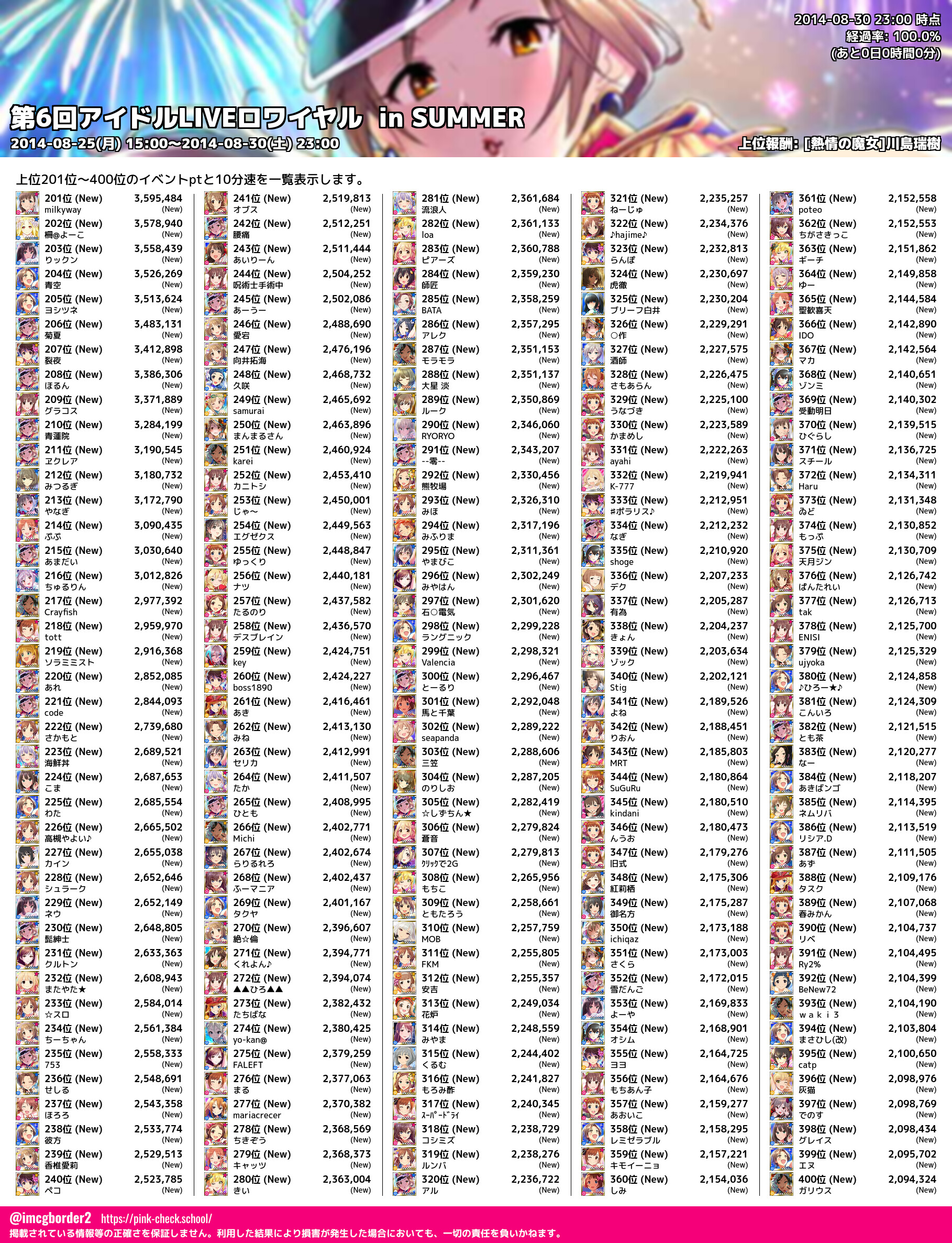 上位プロデューサースコア (2014-08-30 23:00 時点)