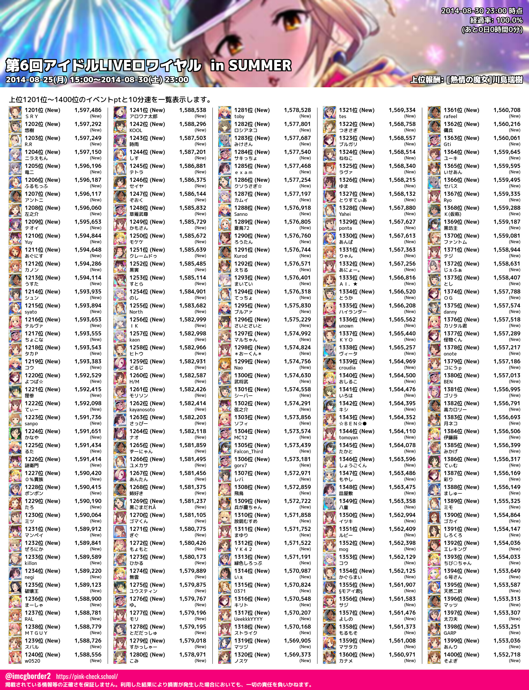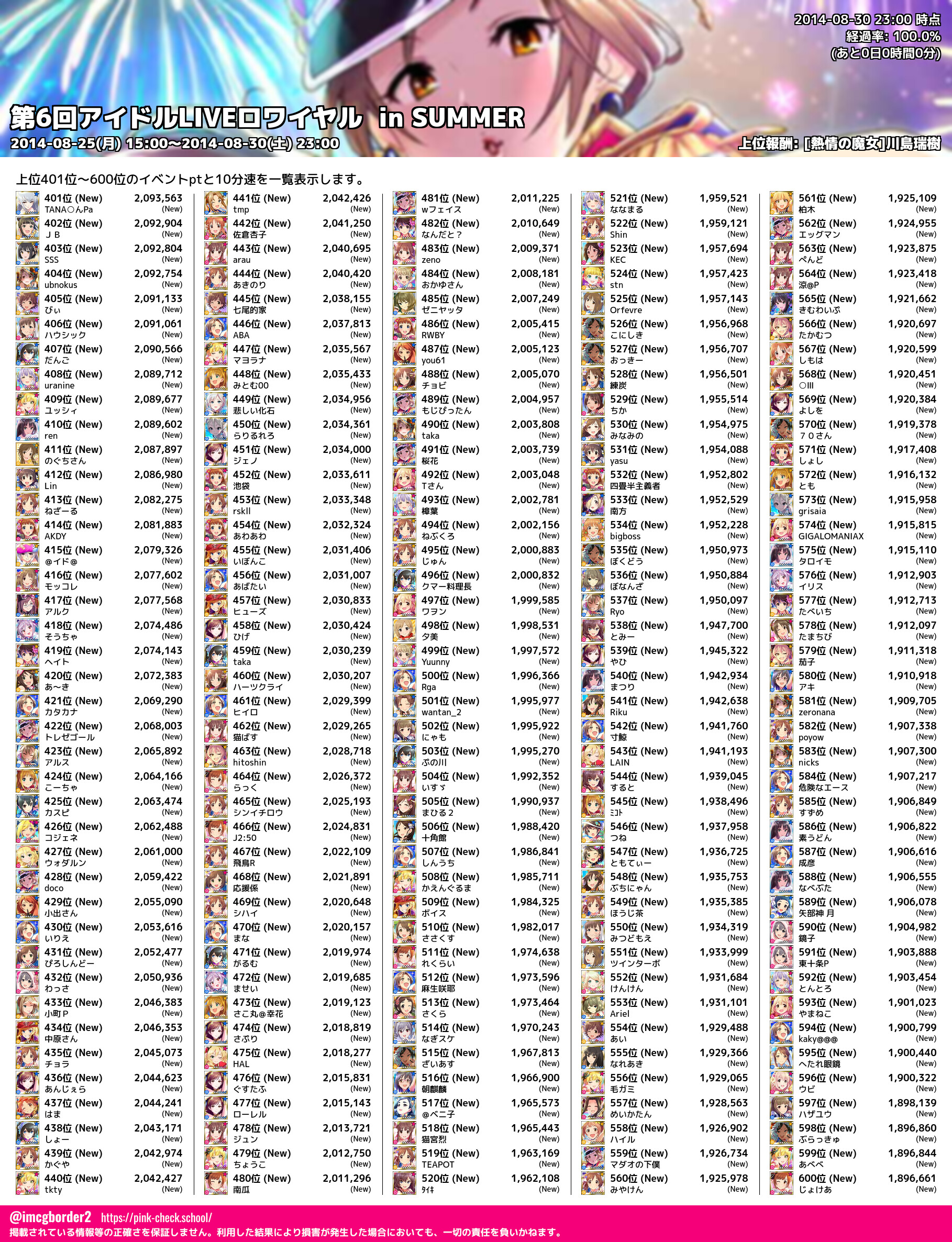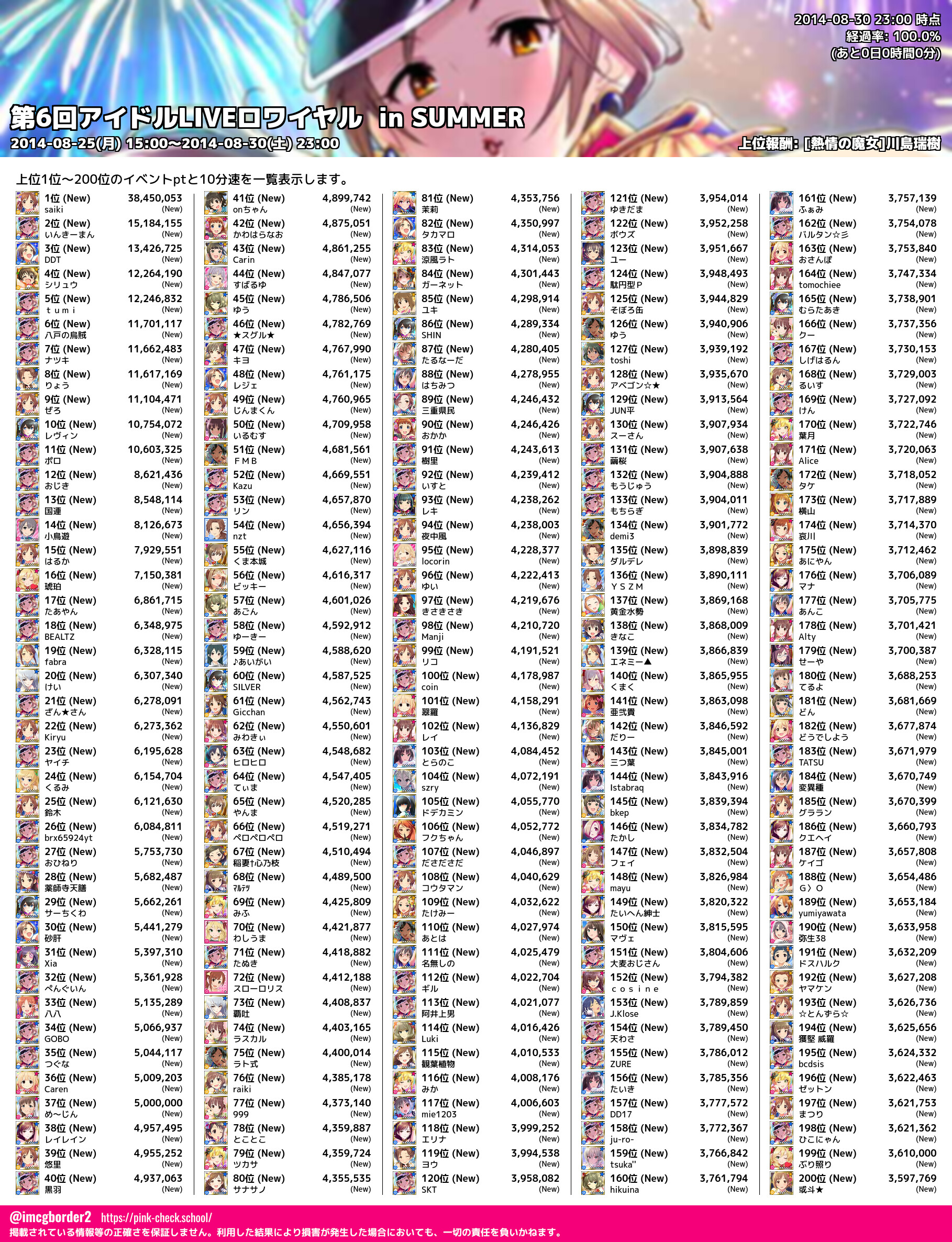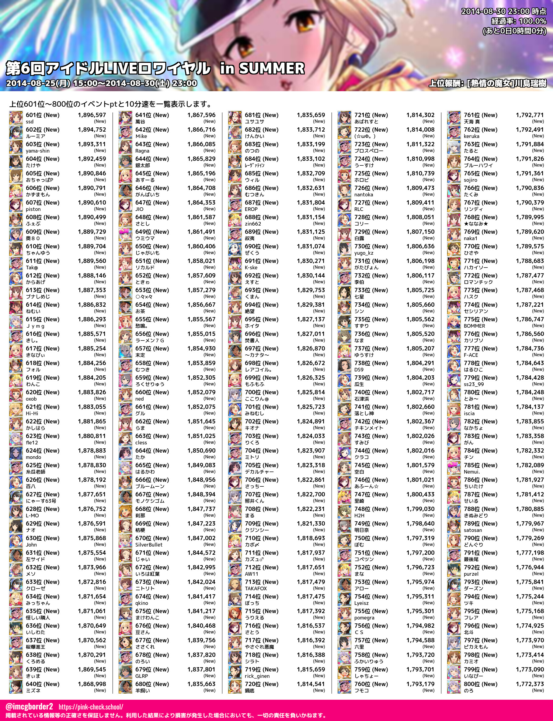 上位プロデューサースコア (2014-08-30 23:00 時点)
