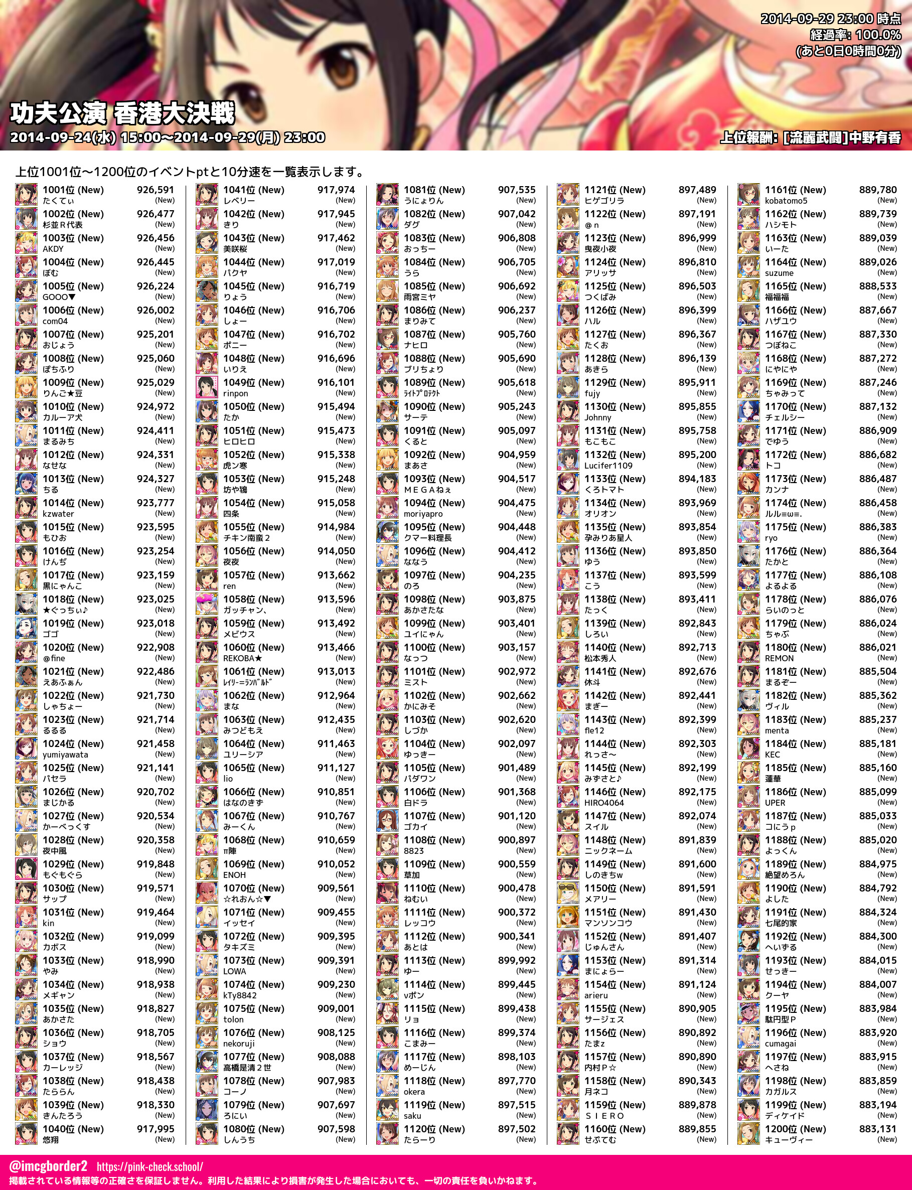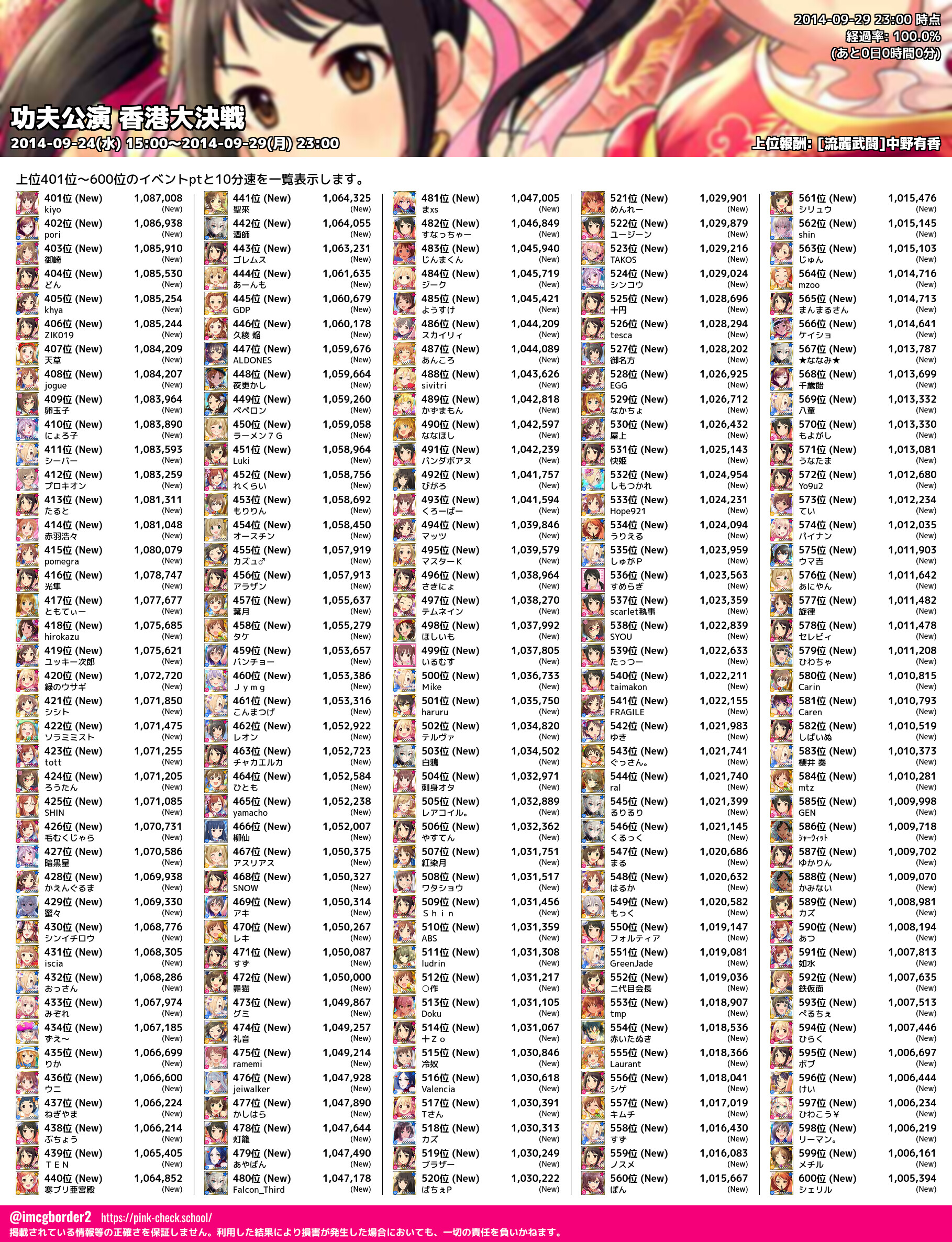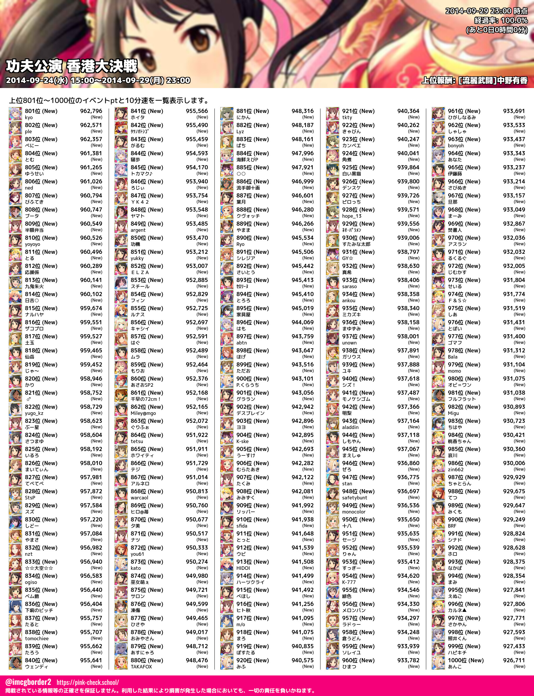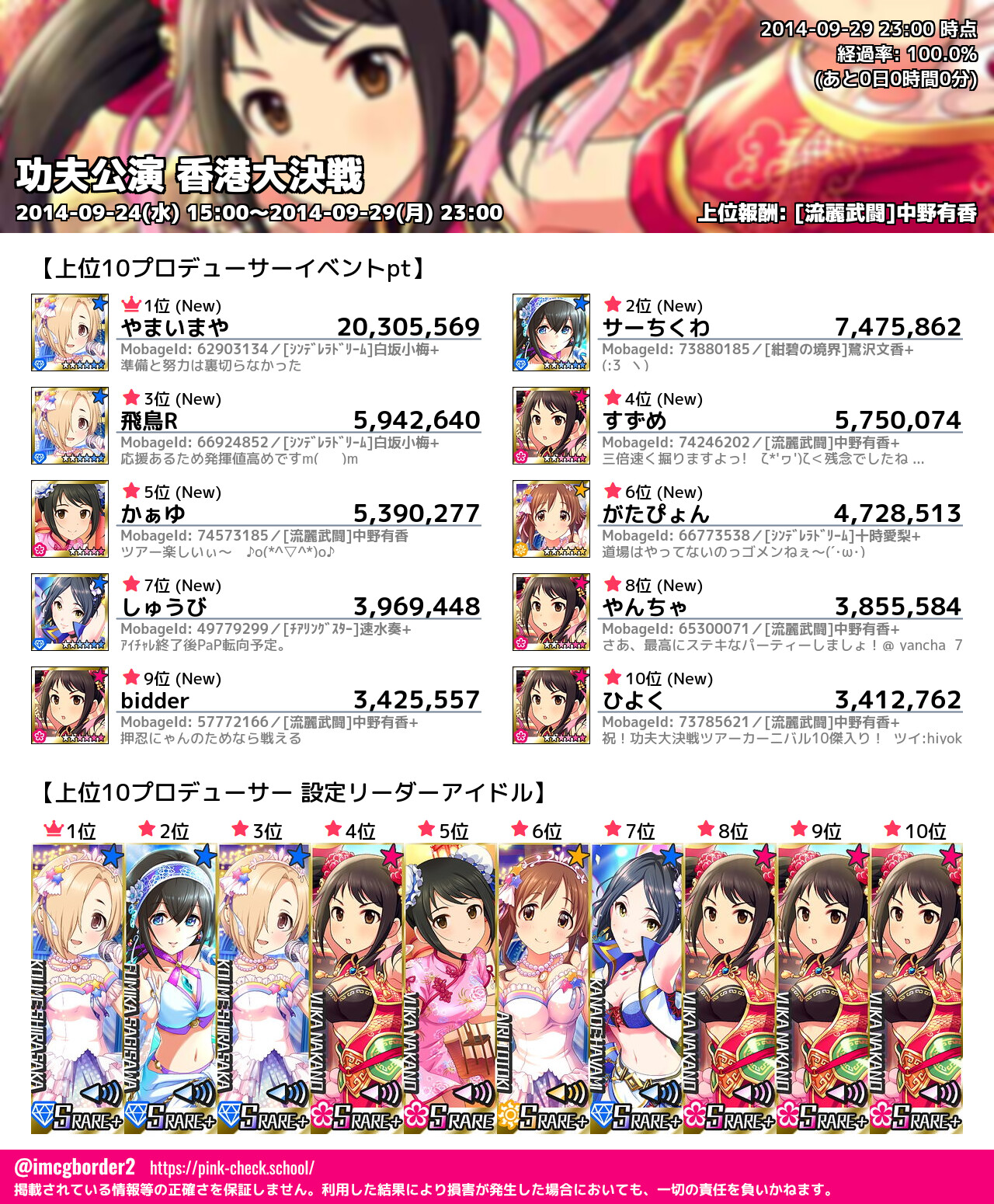 上位プロデューサースコア (2014-09-29 23:00 時点)