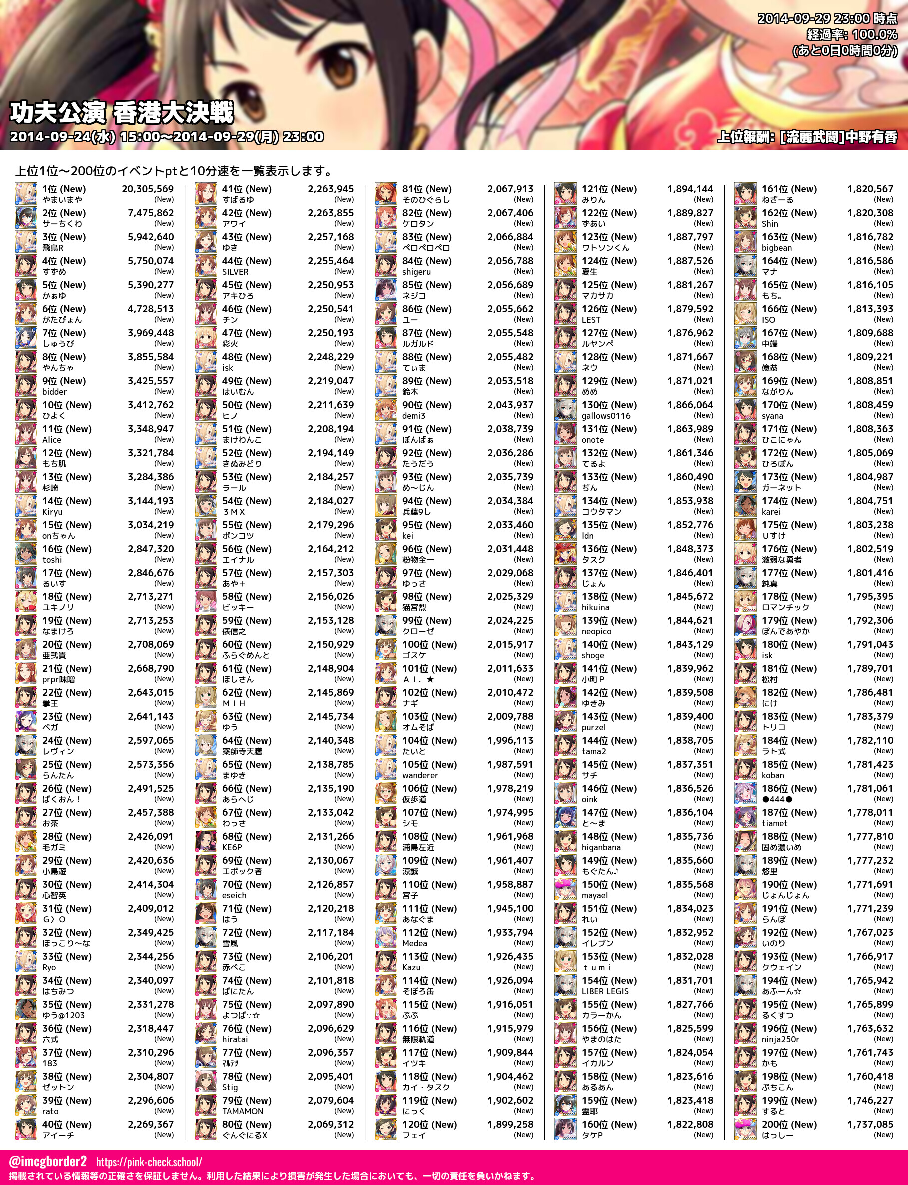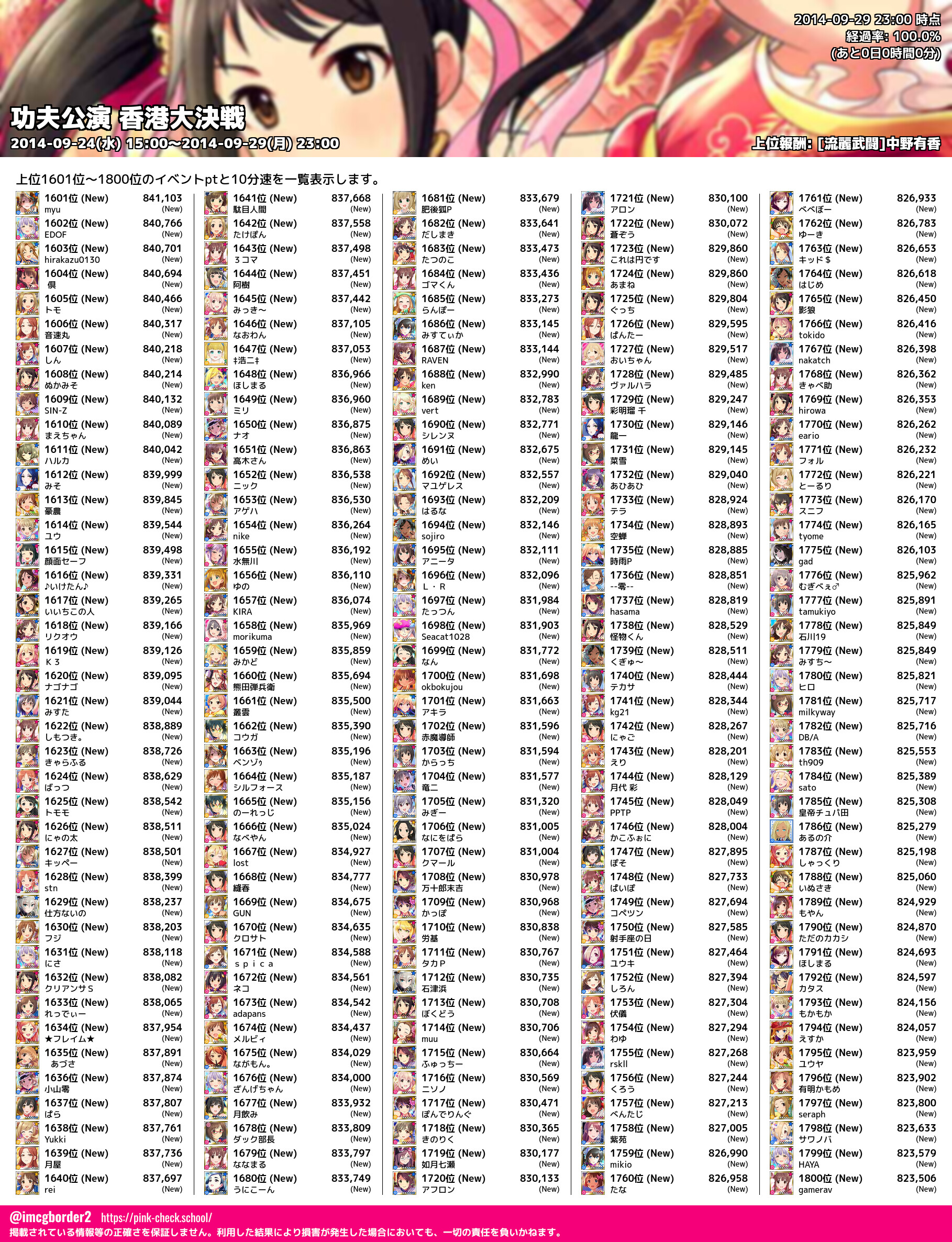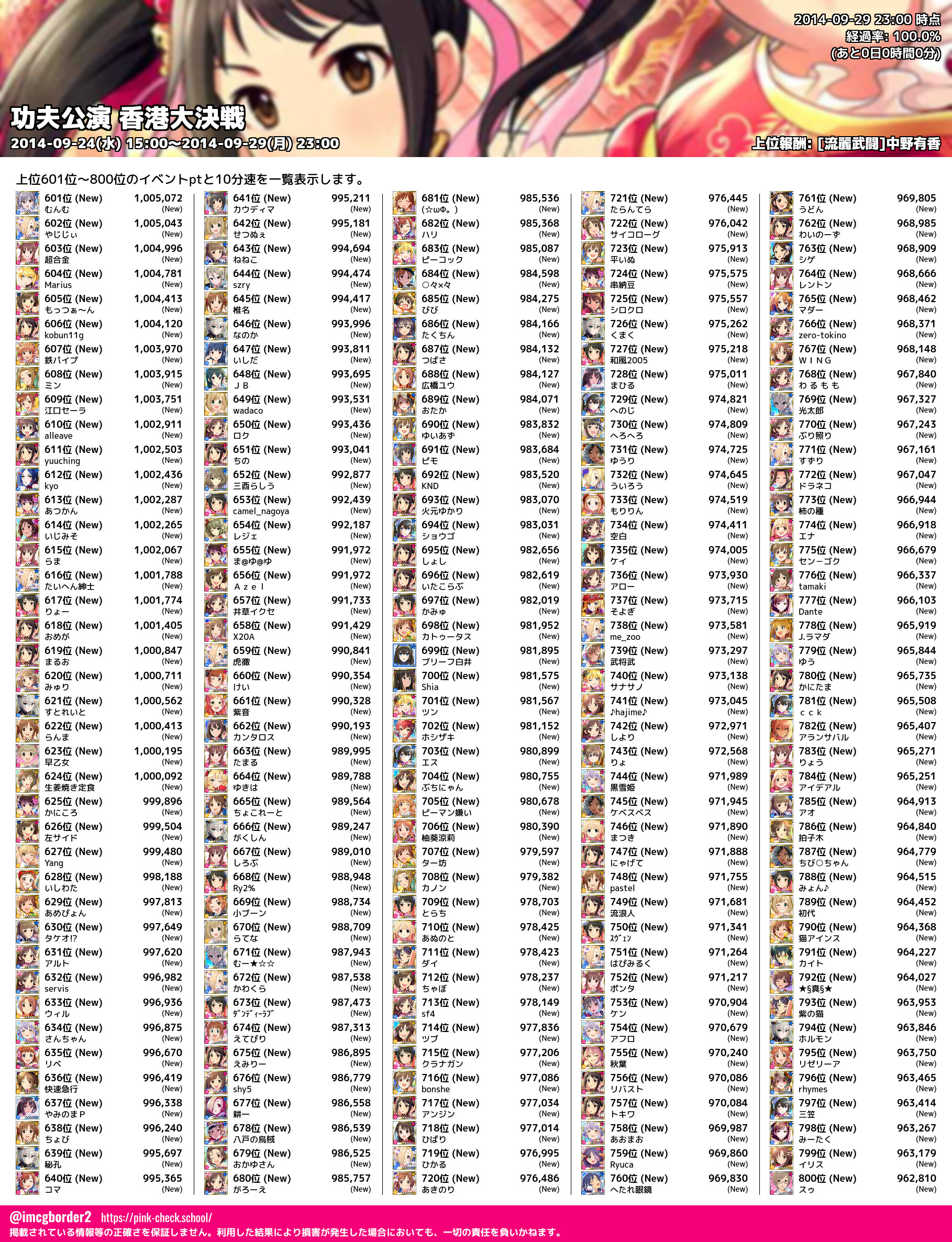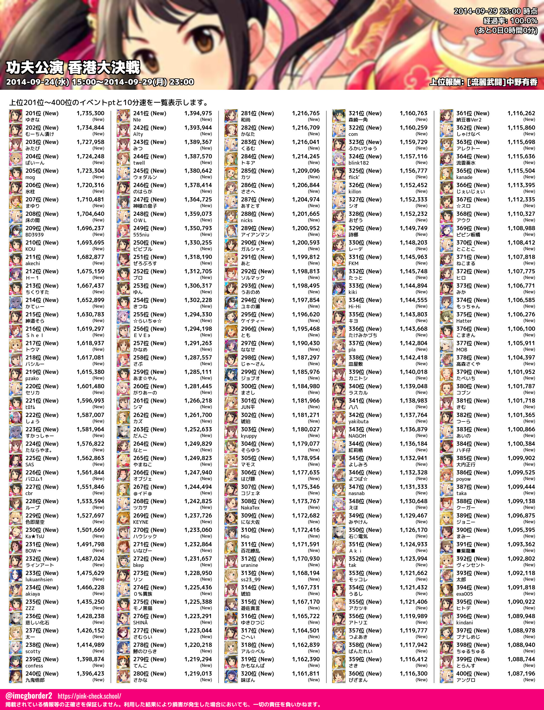 上位プロデューサースコア (2014-09-29 23:00 時点)