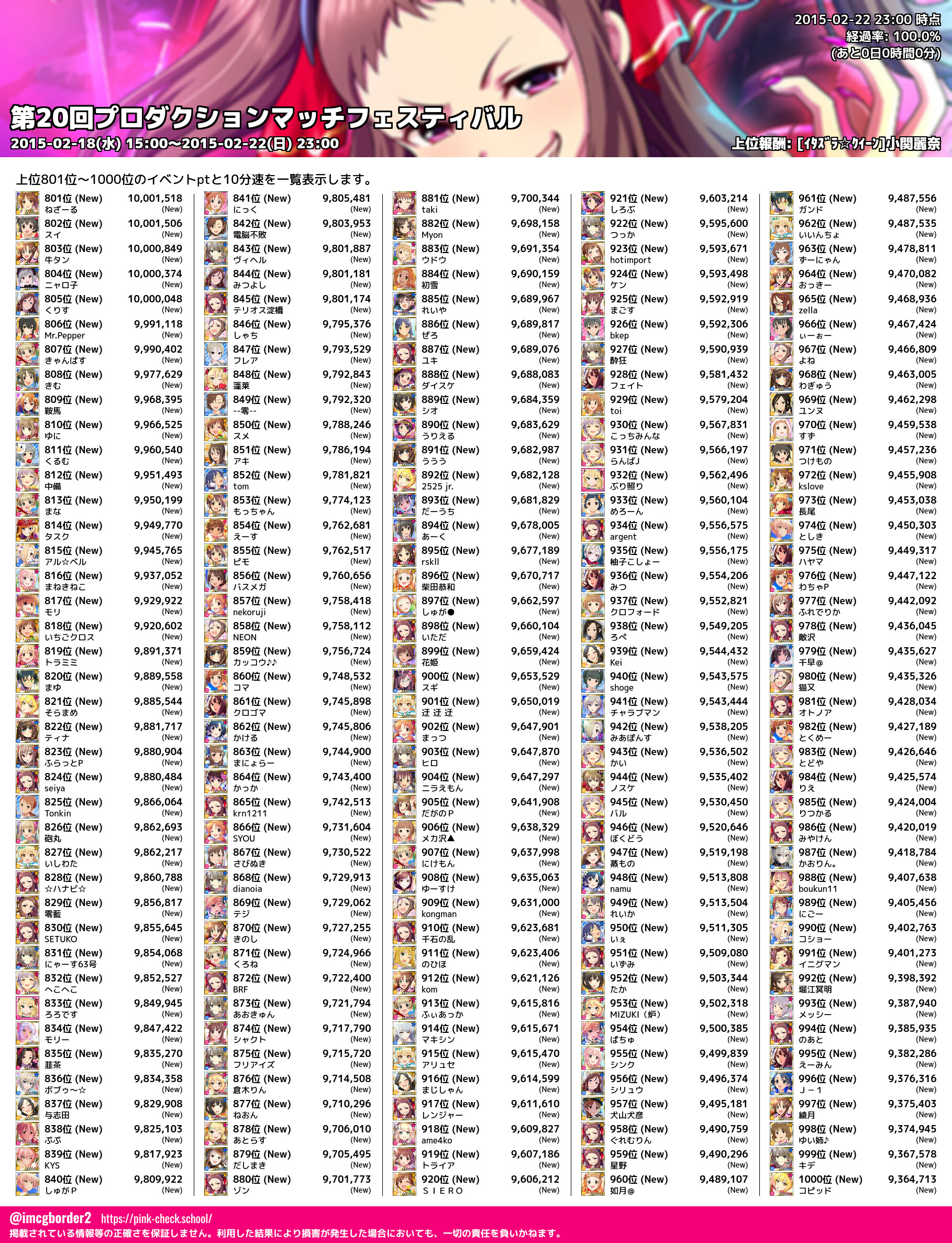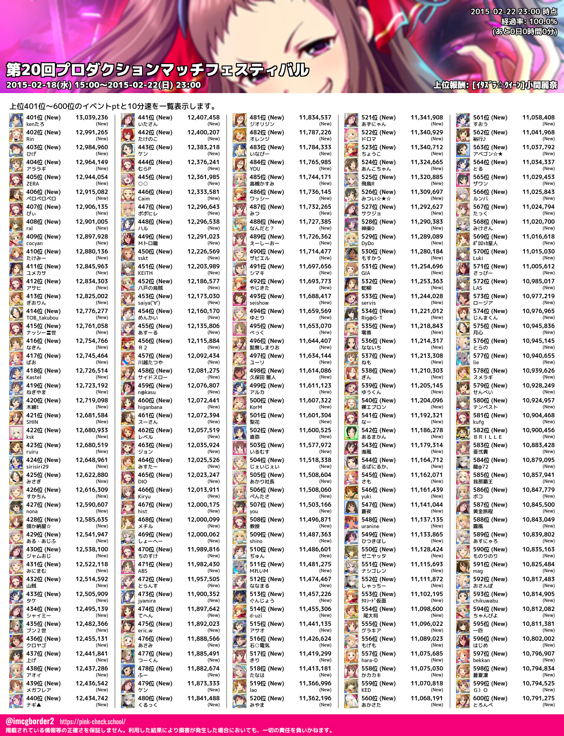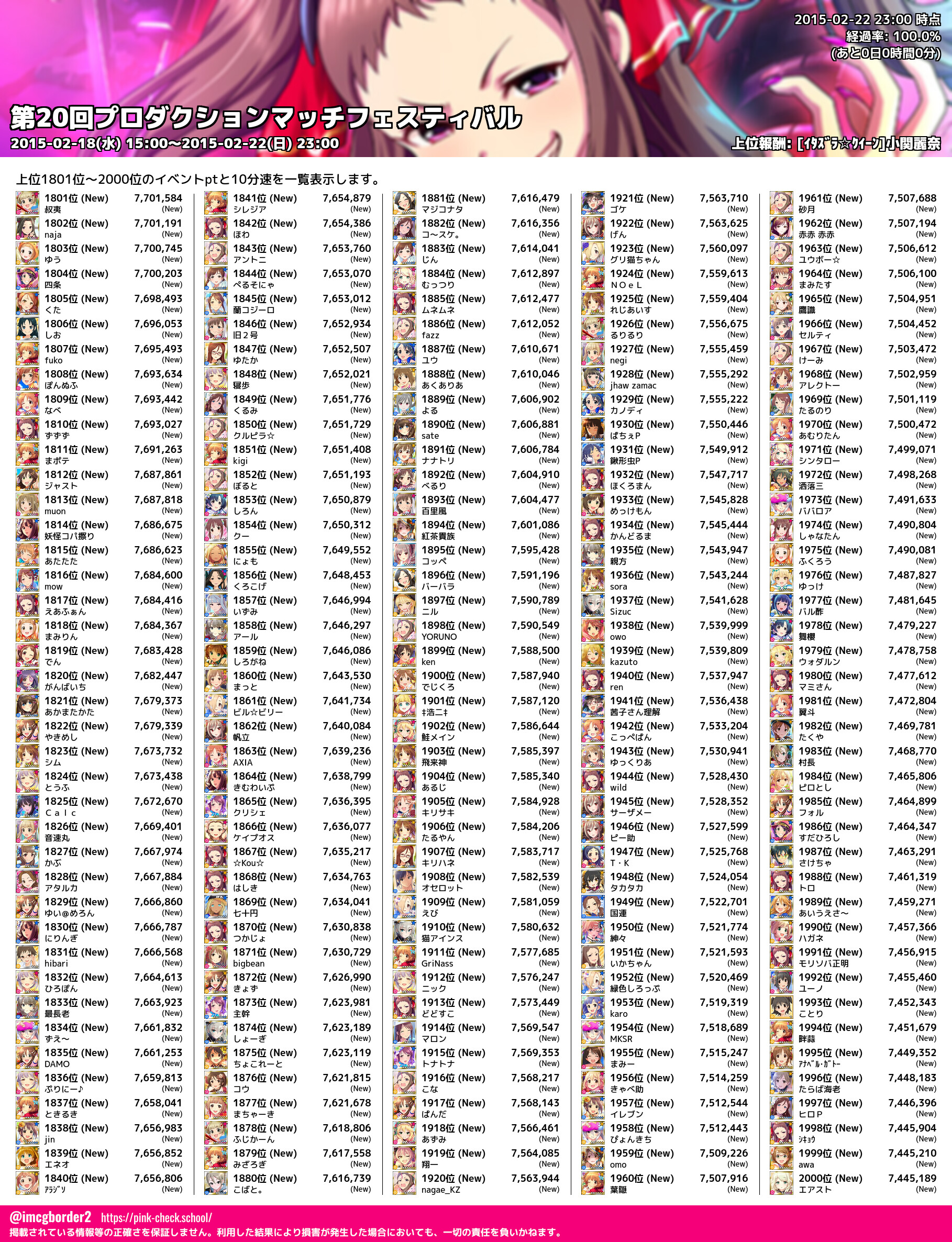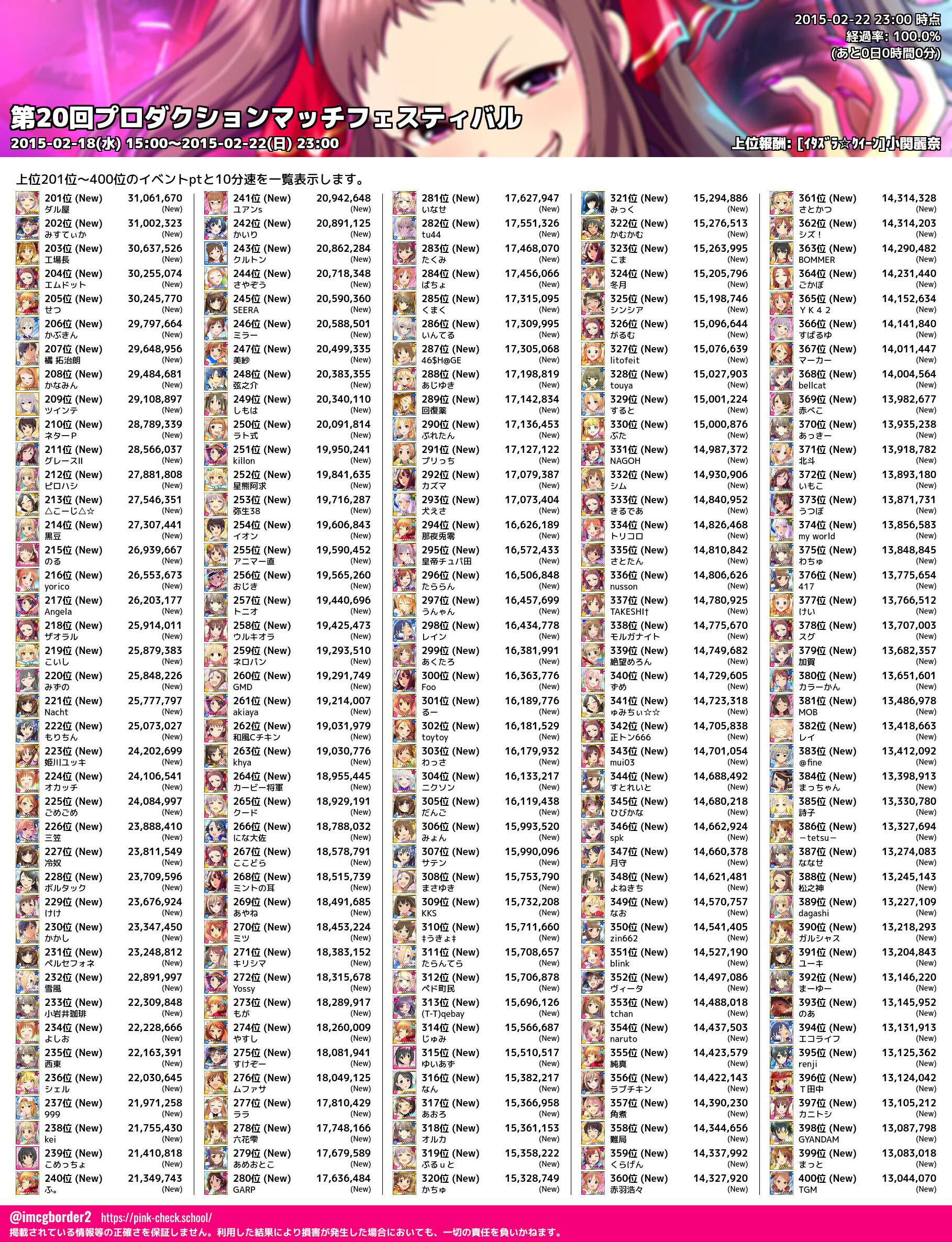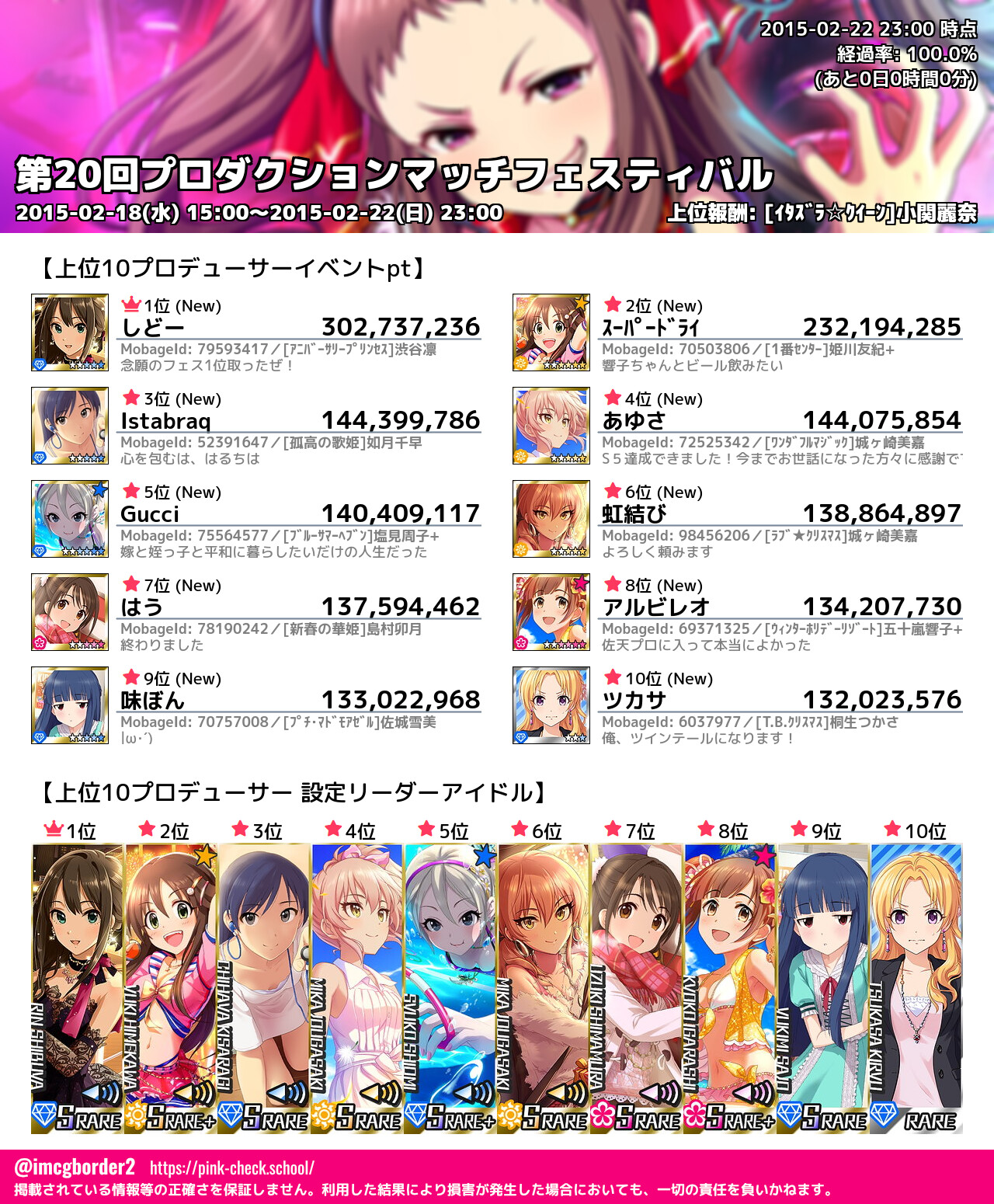 上位プロデューサースコア (2015-02-22 23:00 時点)