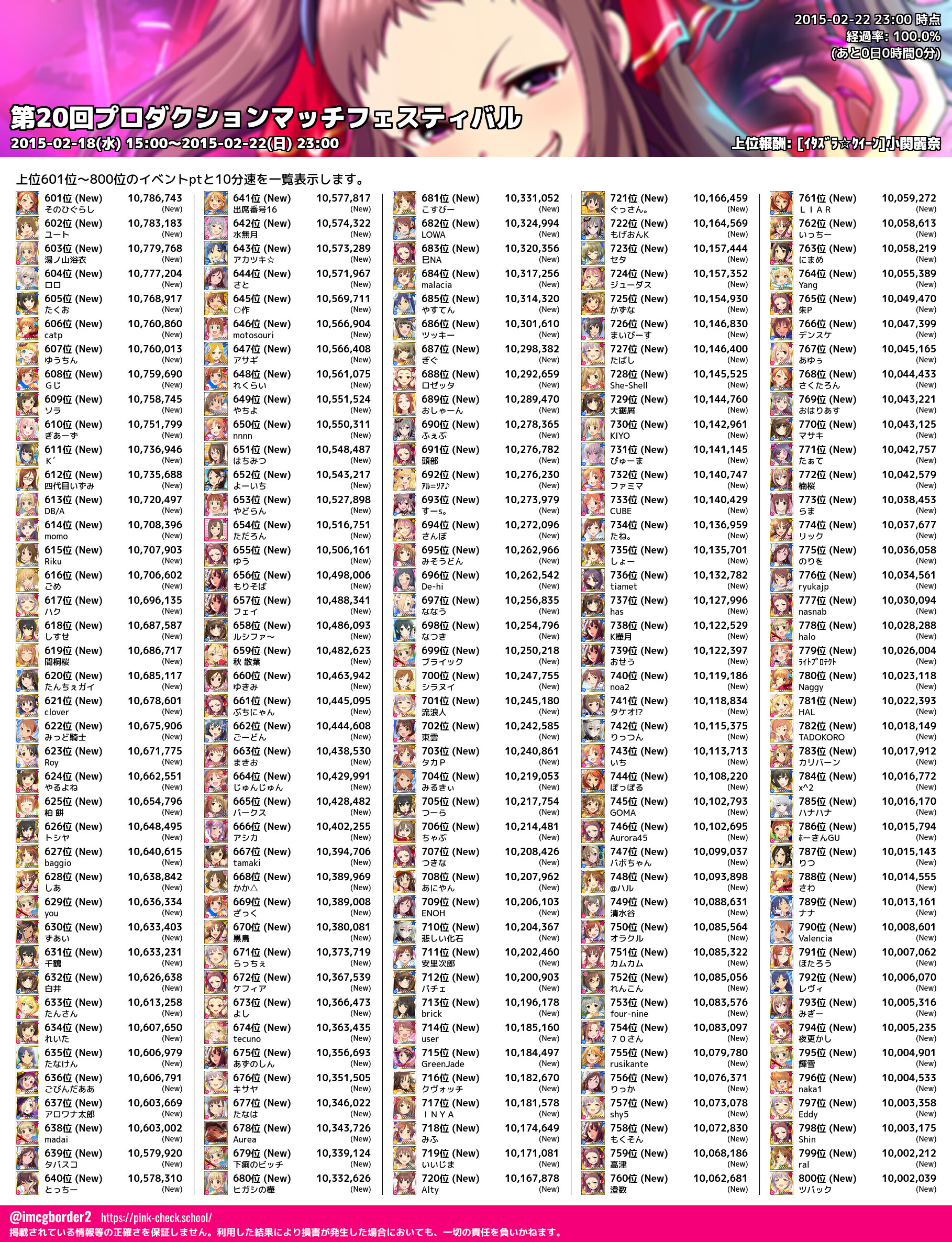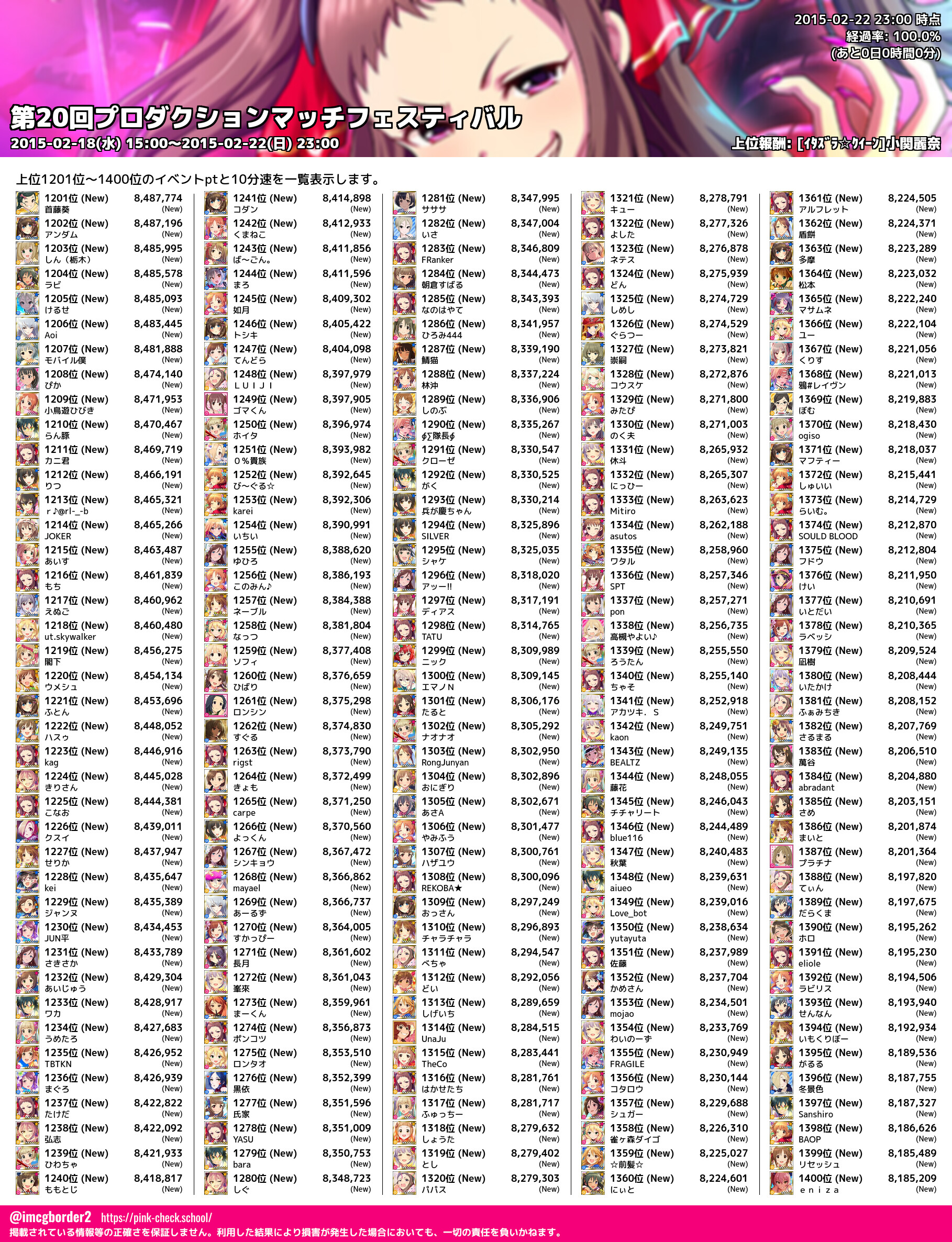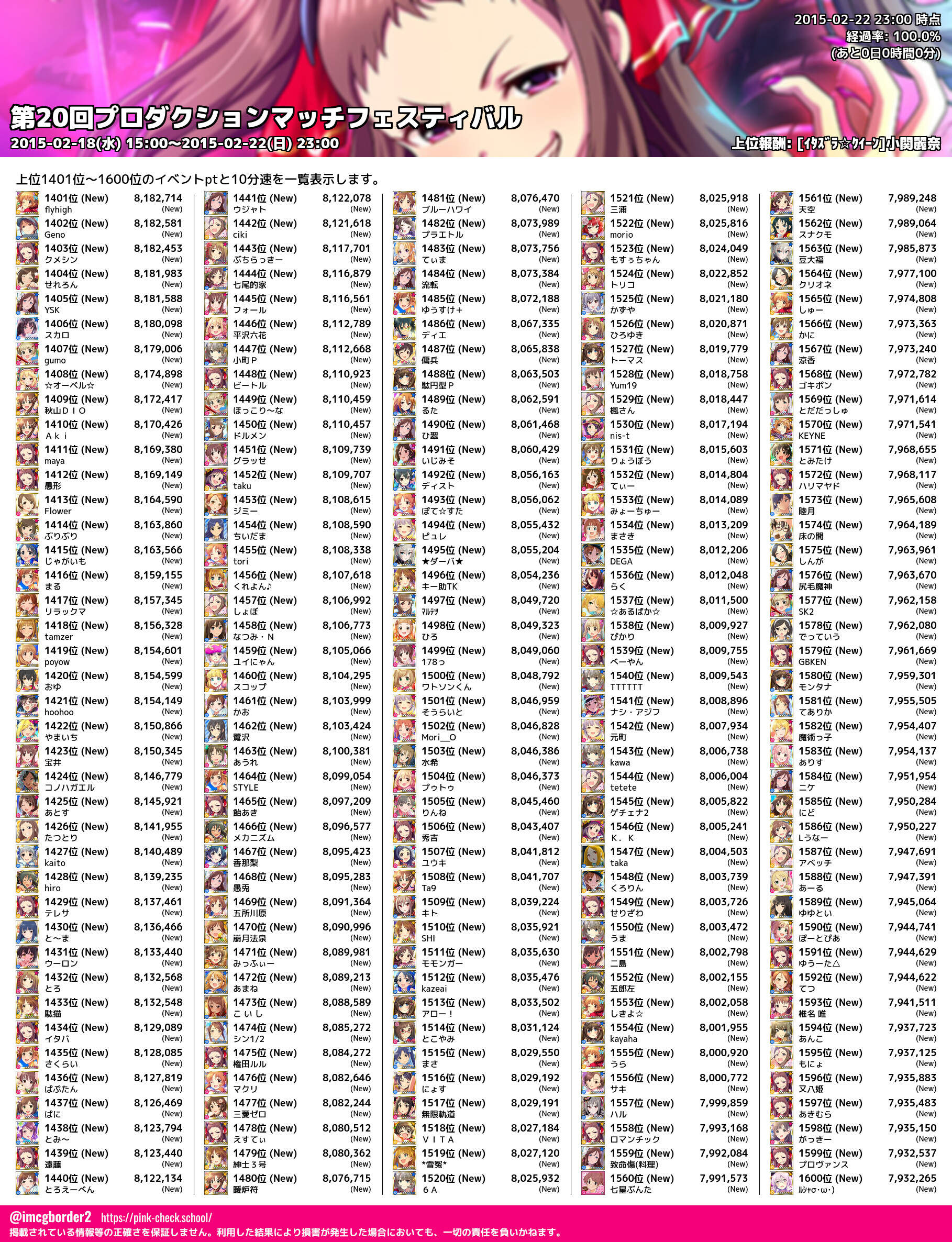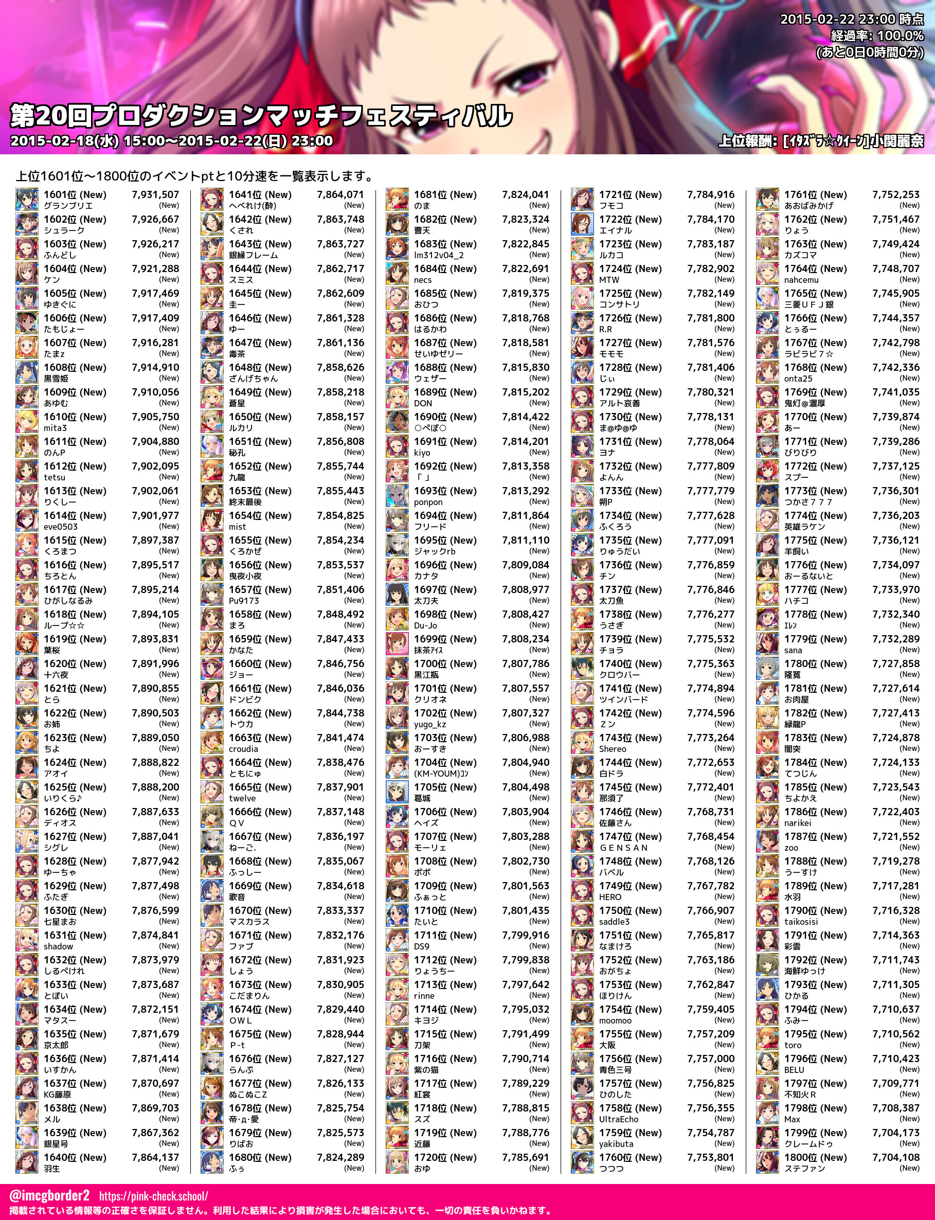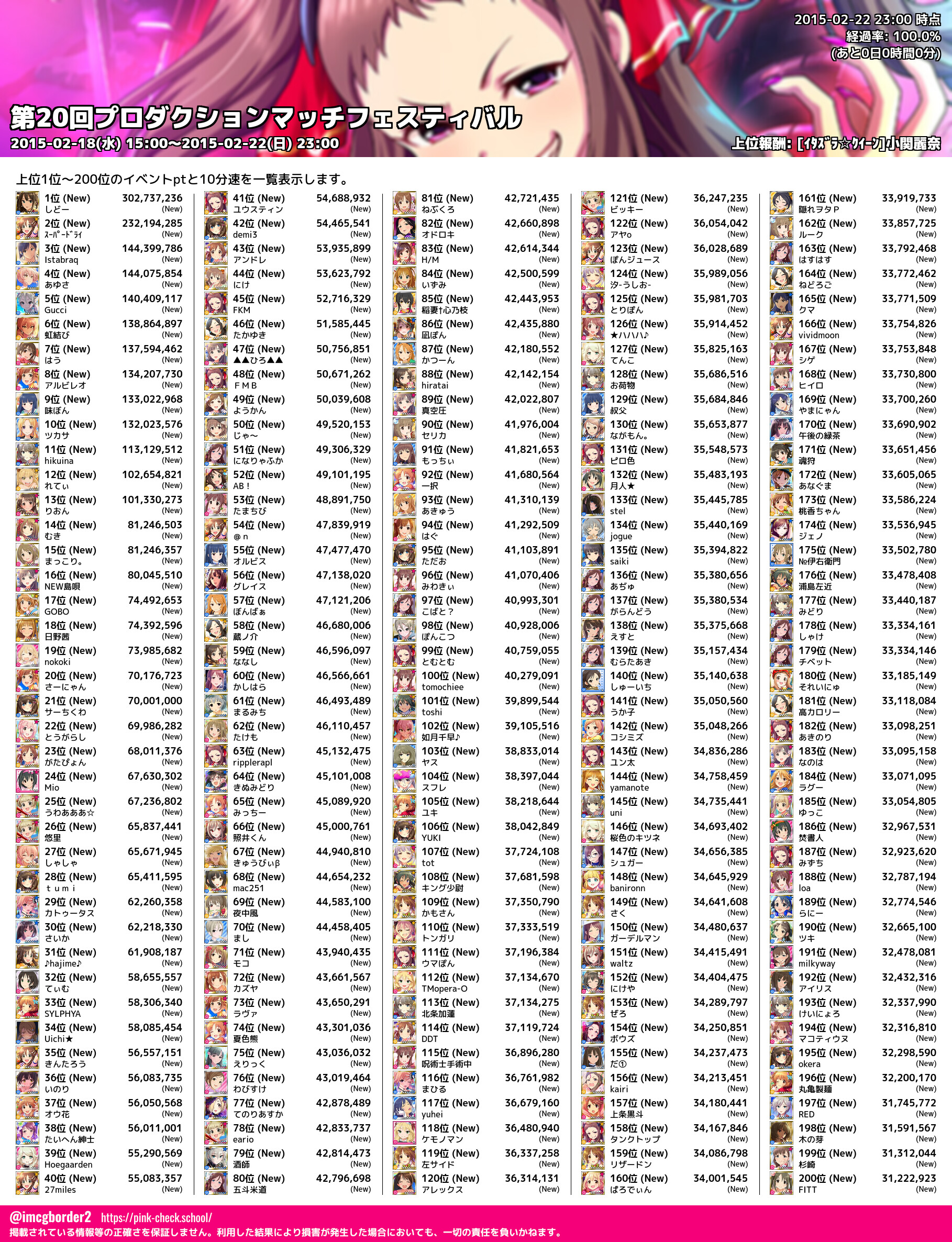上位プロデューサースコア (2015-02-22 23:00 時点)
