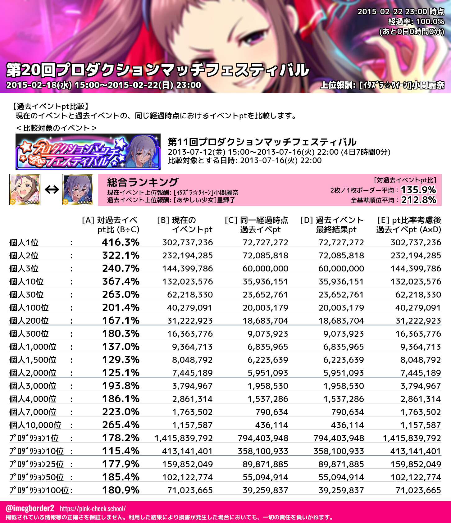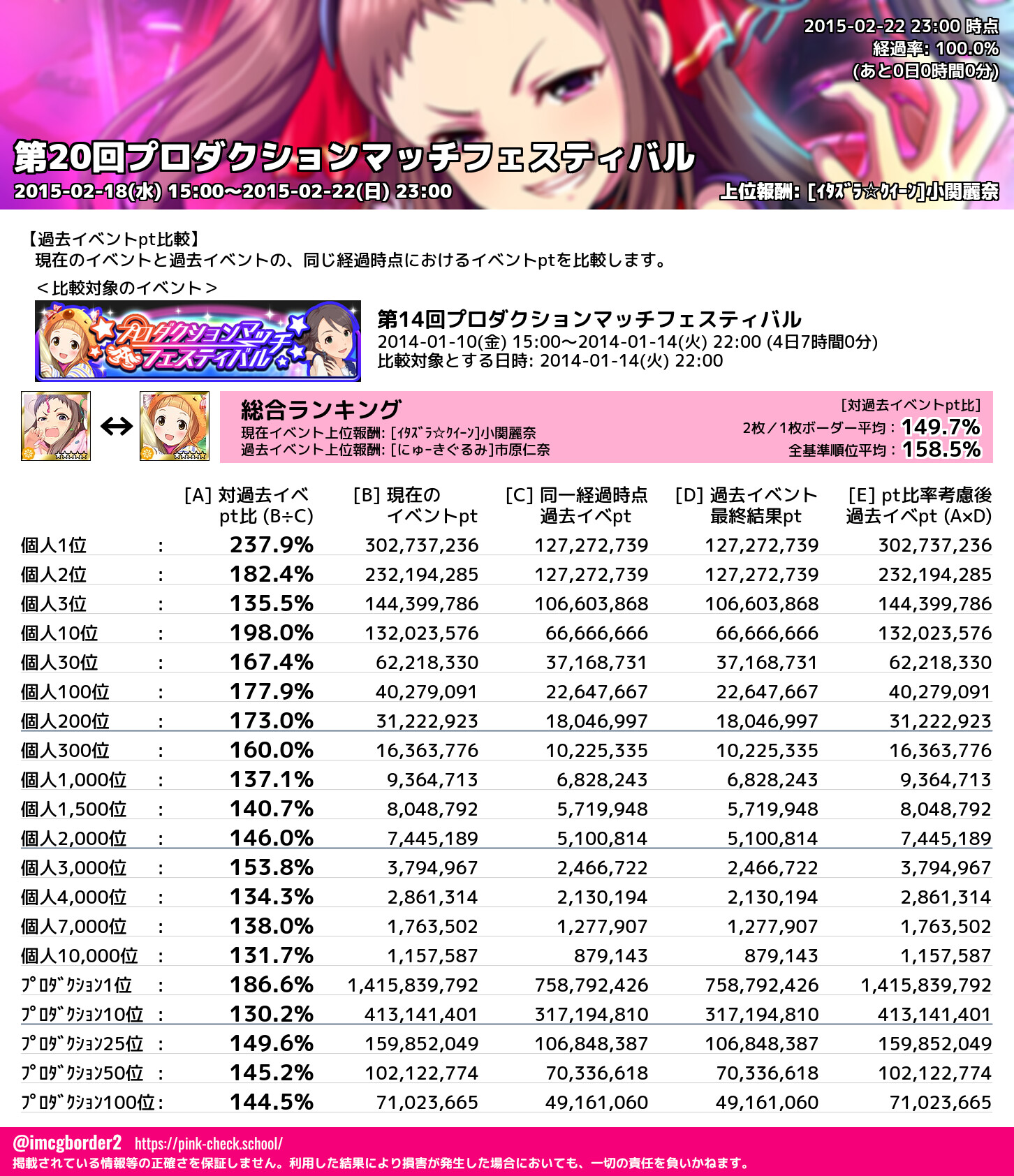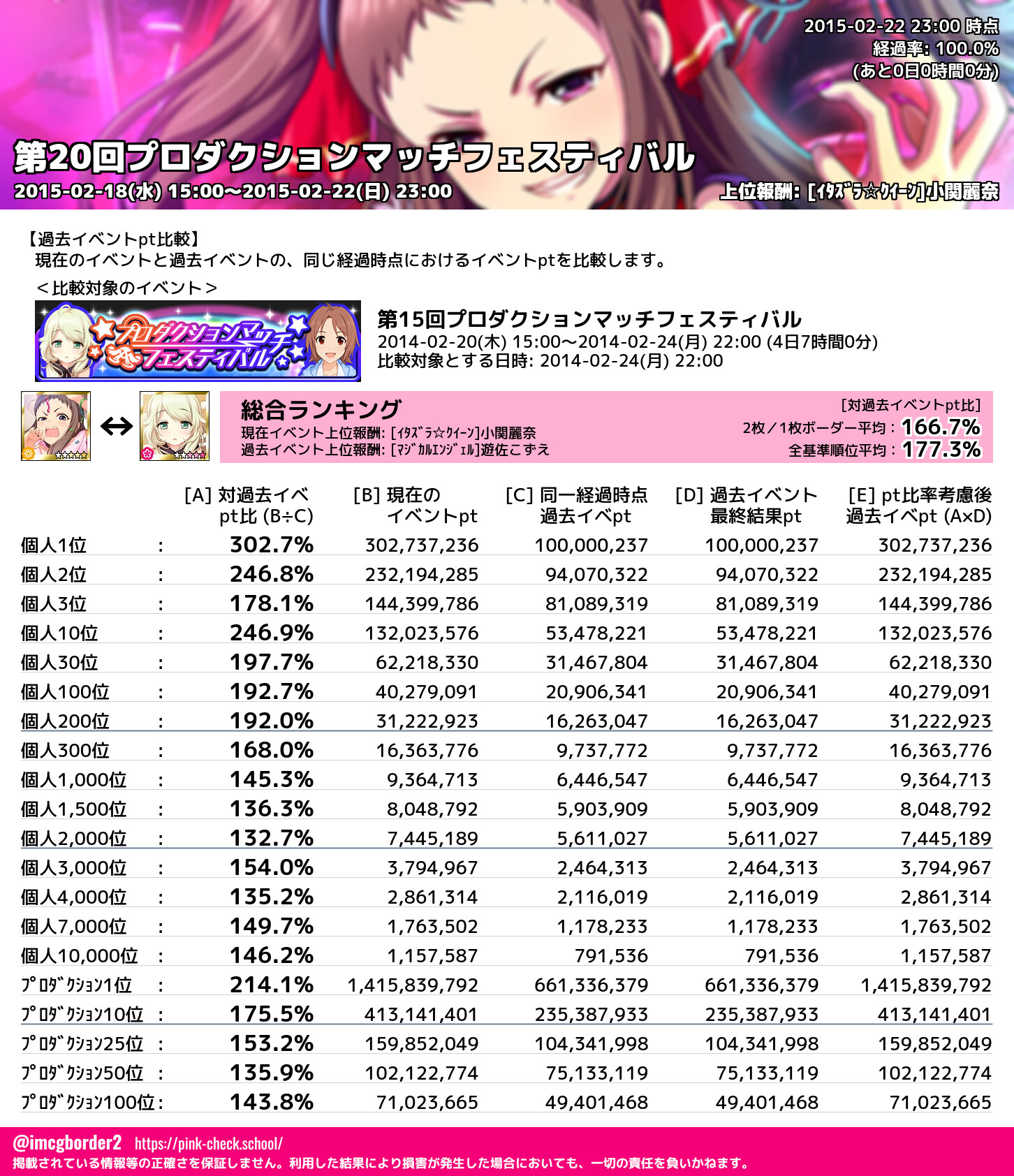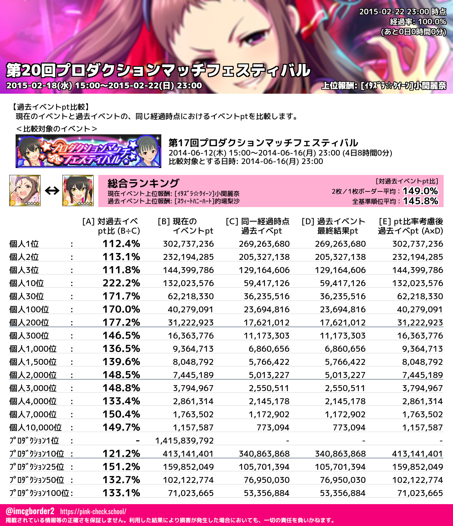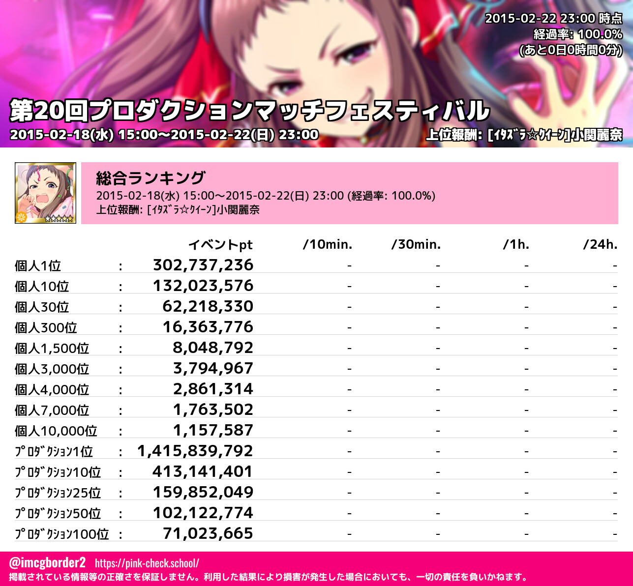 上位プロデューサースコア (2015-02-22 23:00 時点)