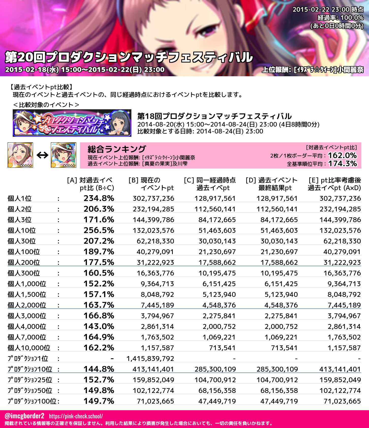 第20回プロダクションマッチフェスティバル 結果集計完了