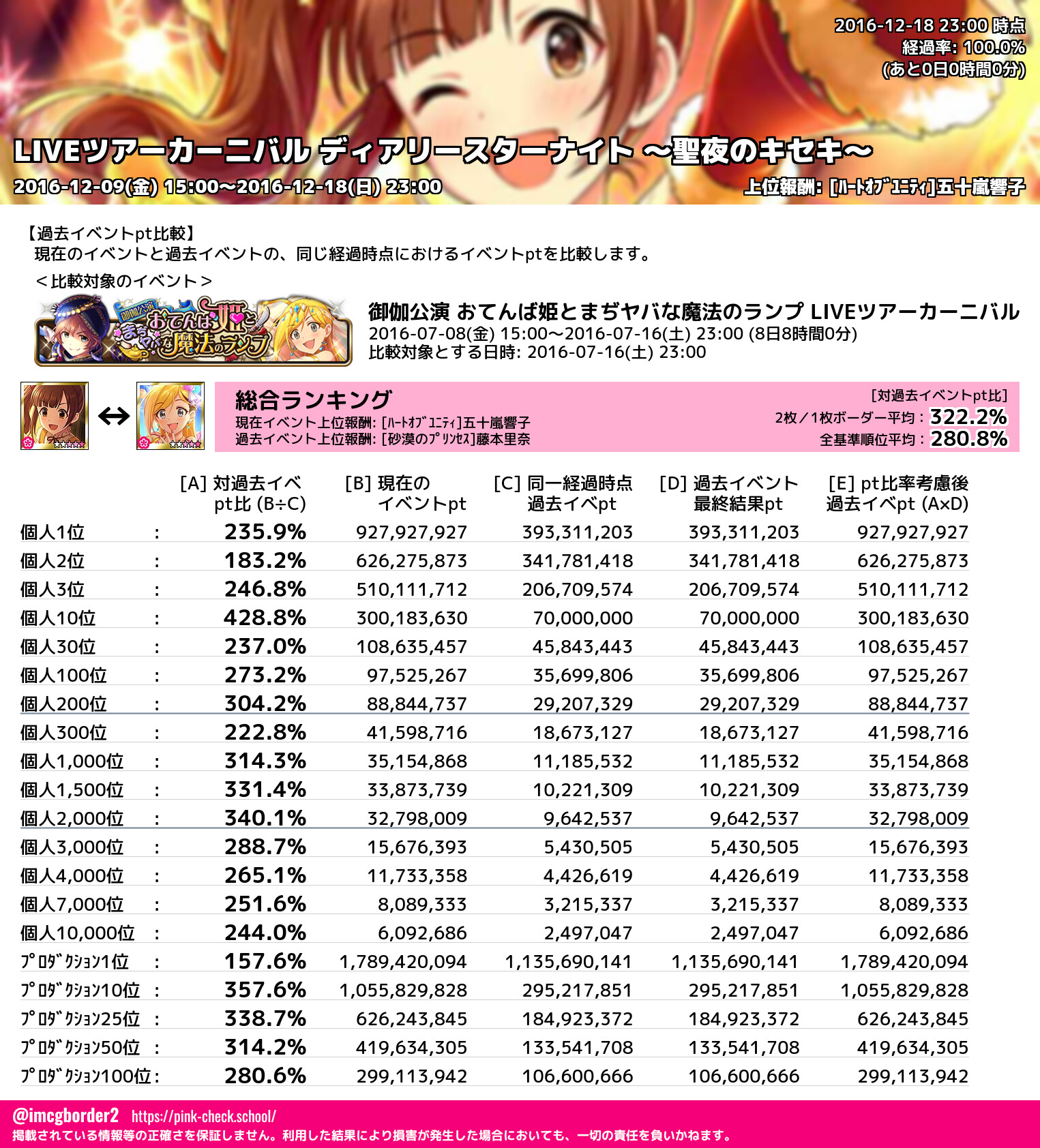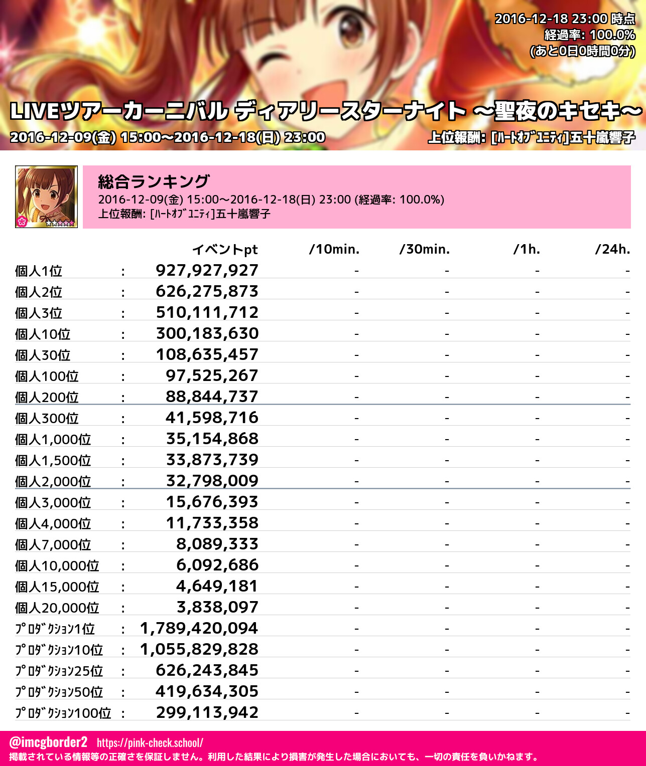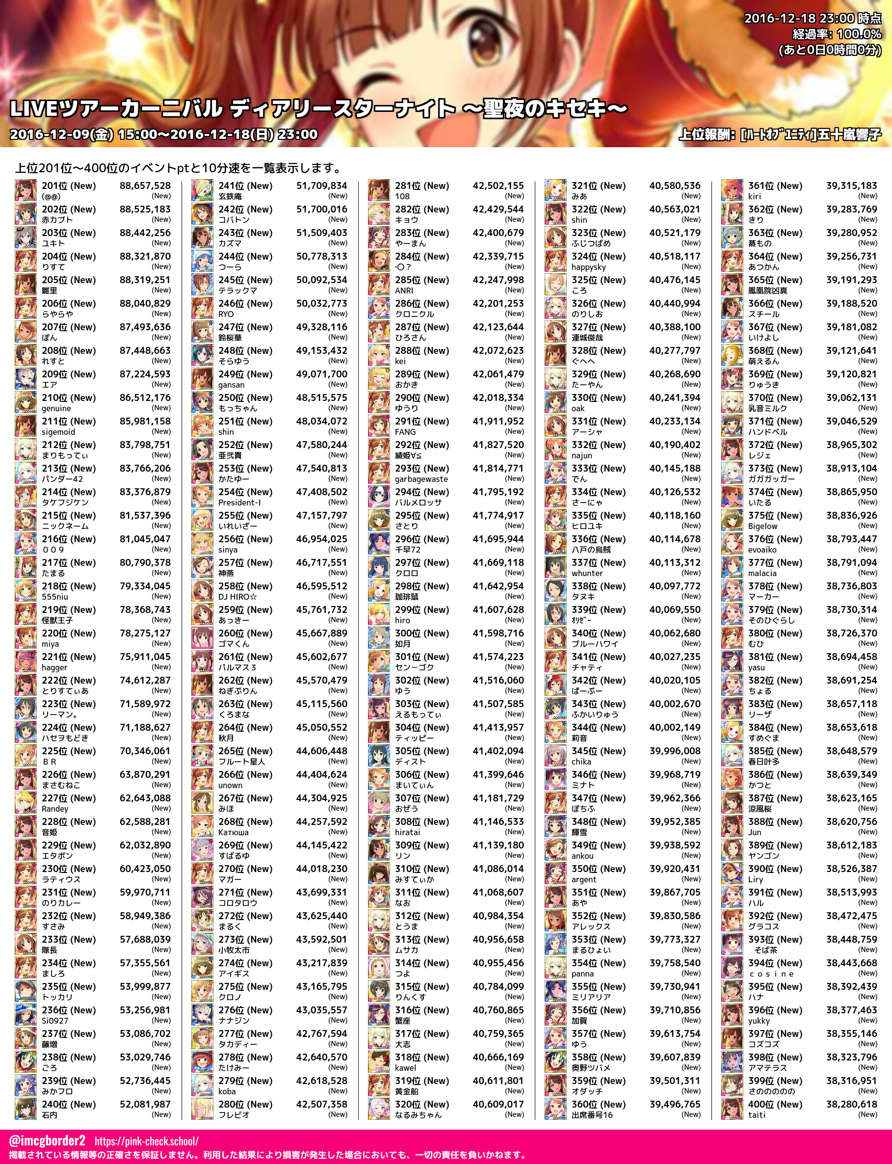 LIVEツアーカーニバル ディアリースターナイト ~聖夜のキセキ~ 結果集計完了