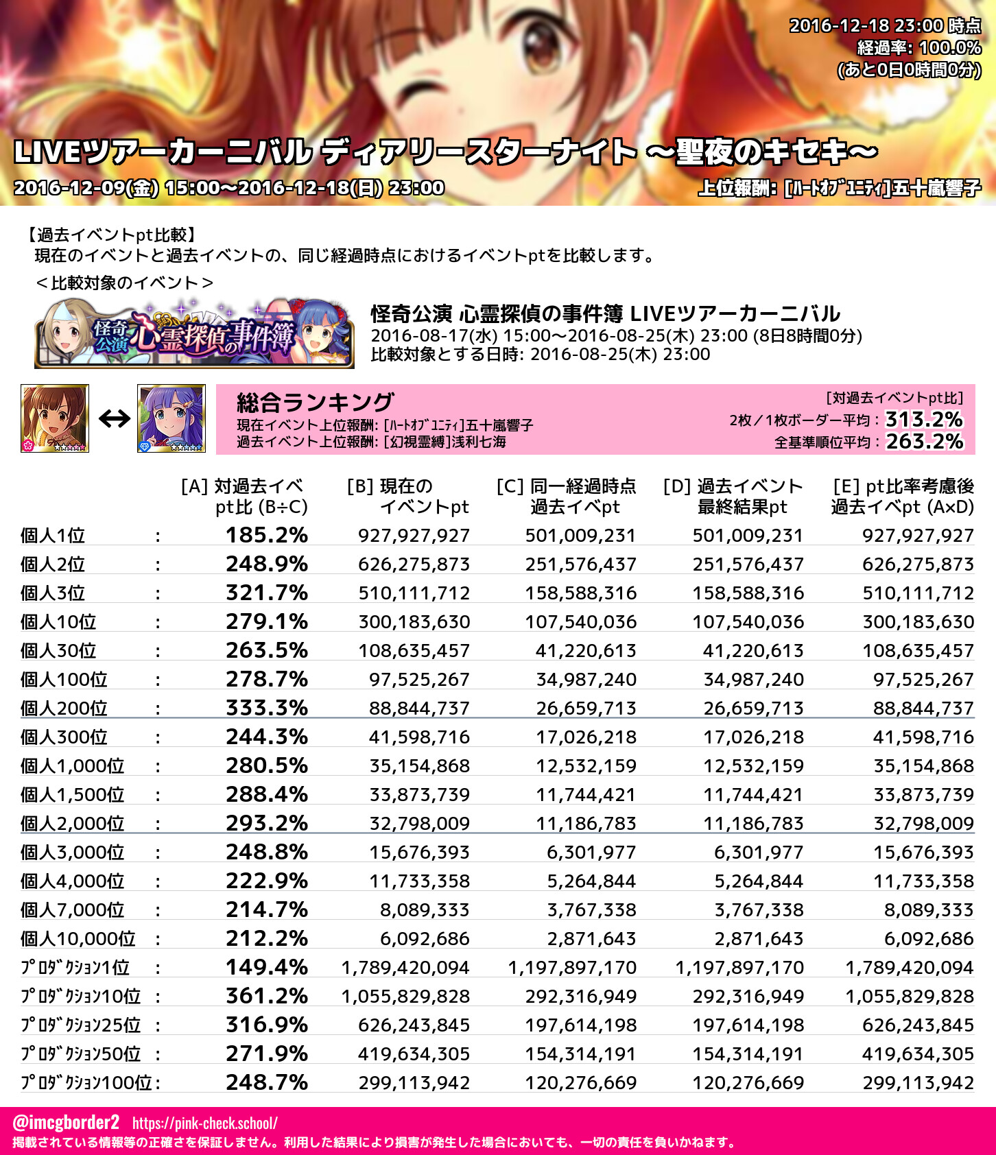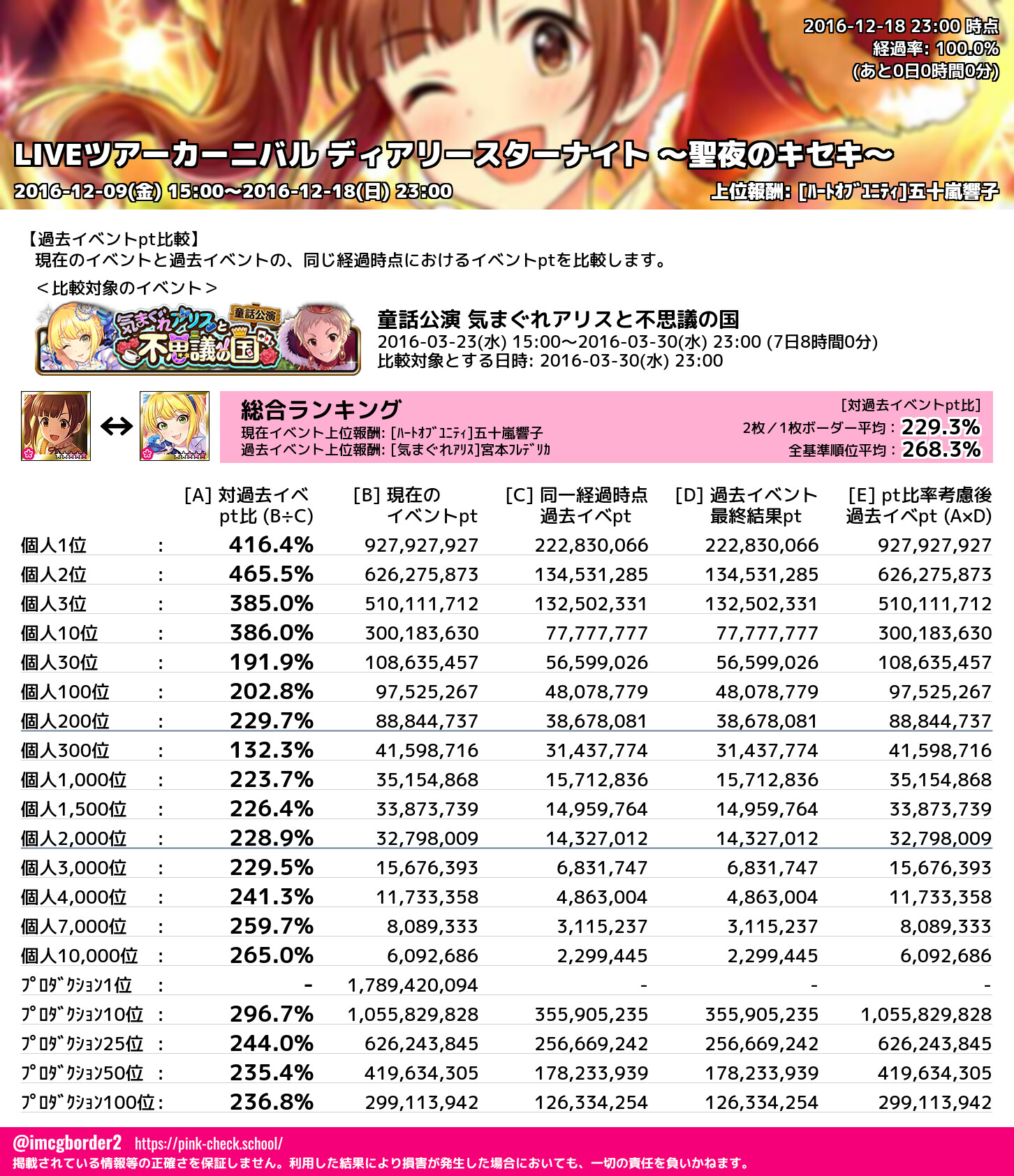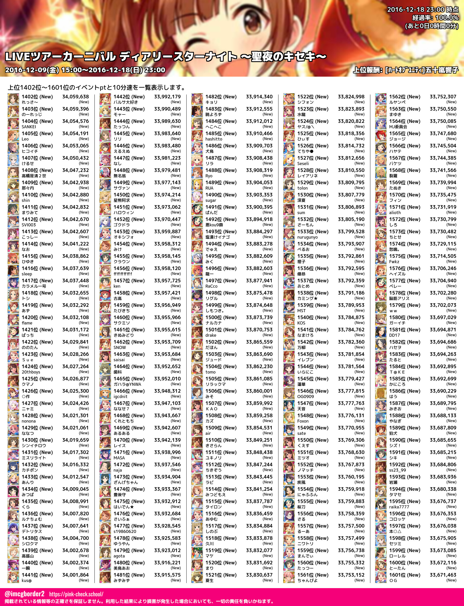LIVEツアーカーニバル ディアリースターナイト ~聖夜のキセキ~ 結果集計完了